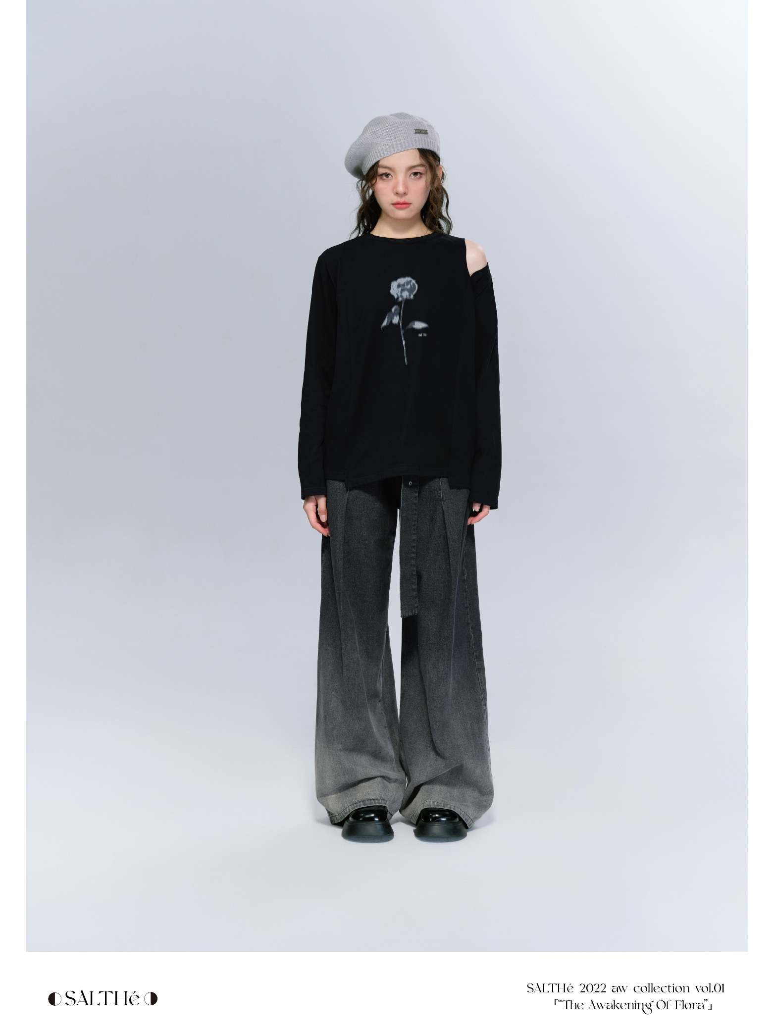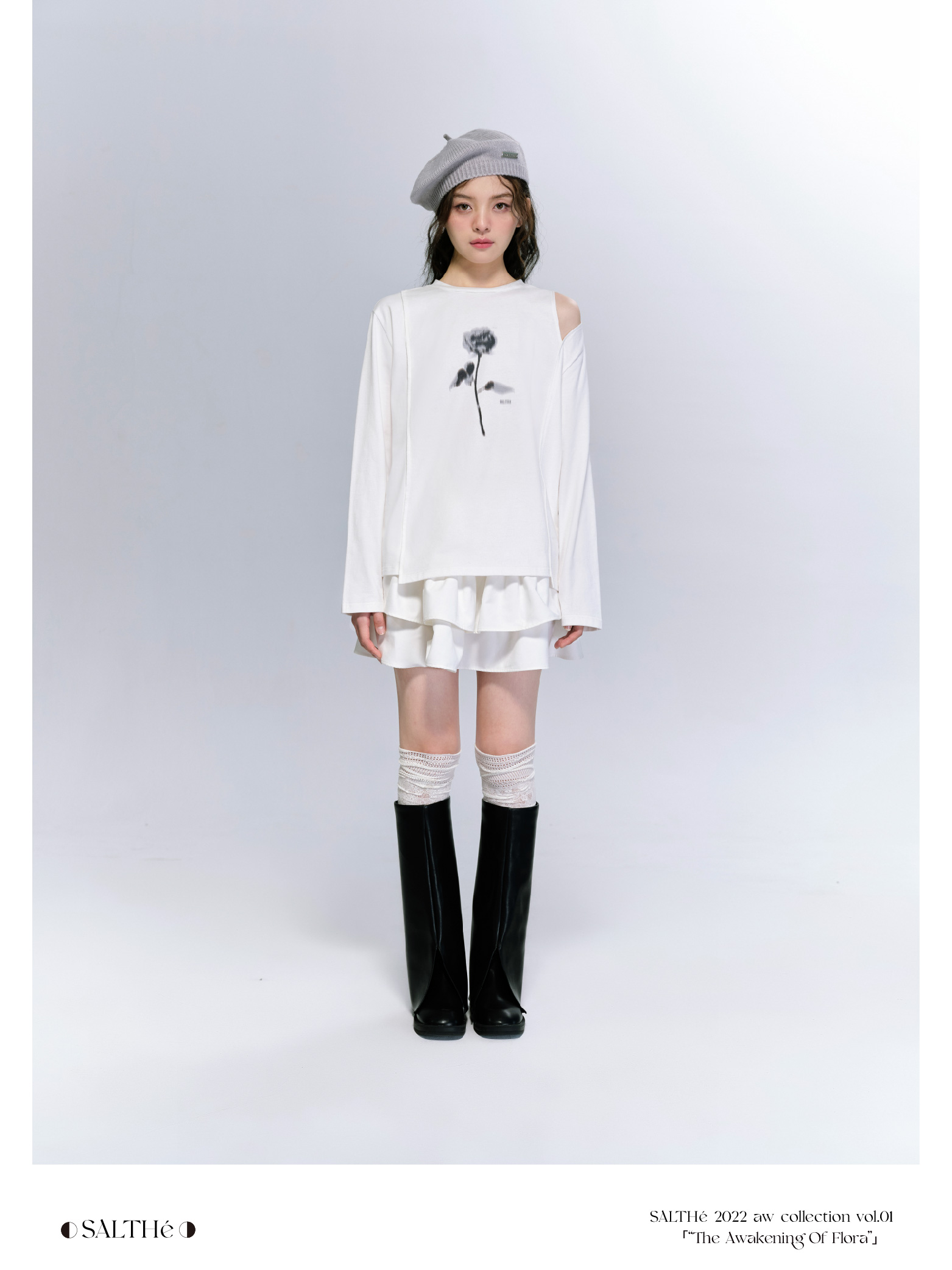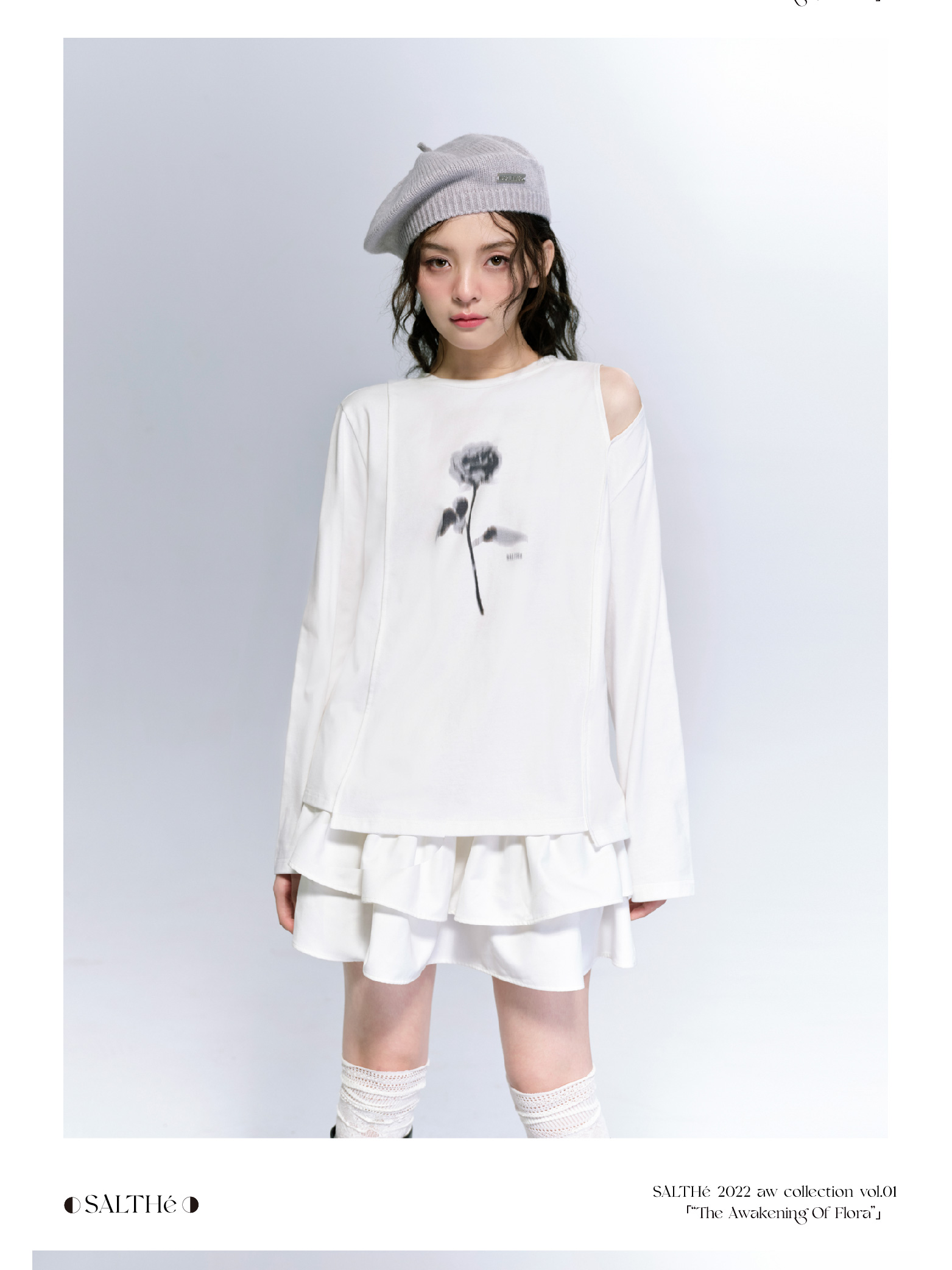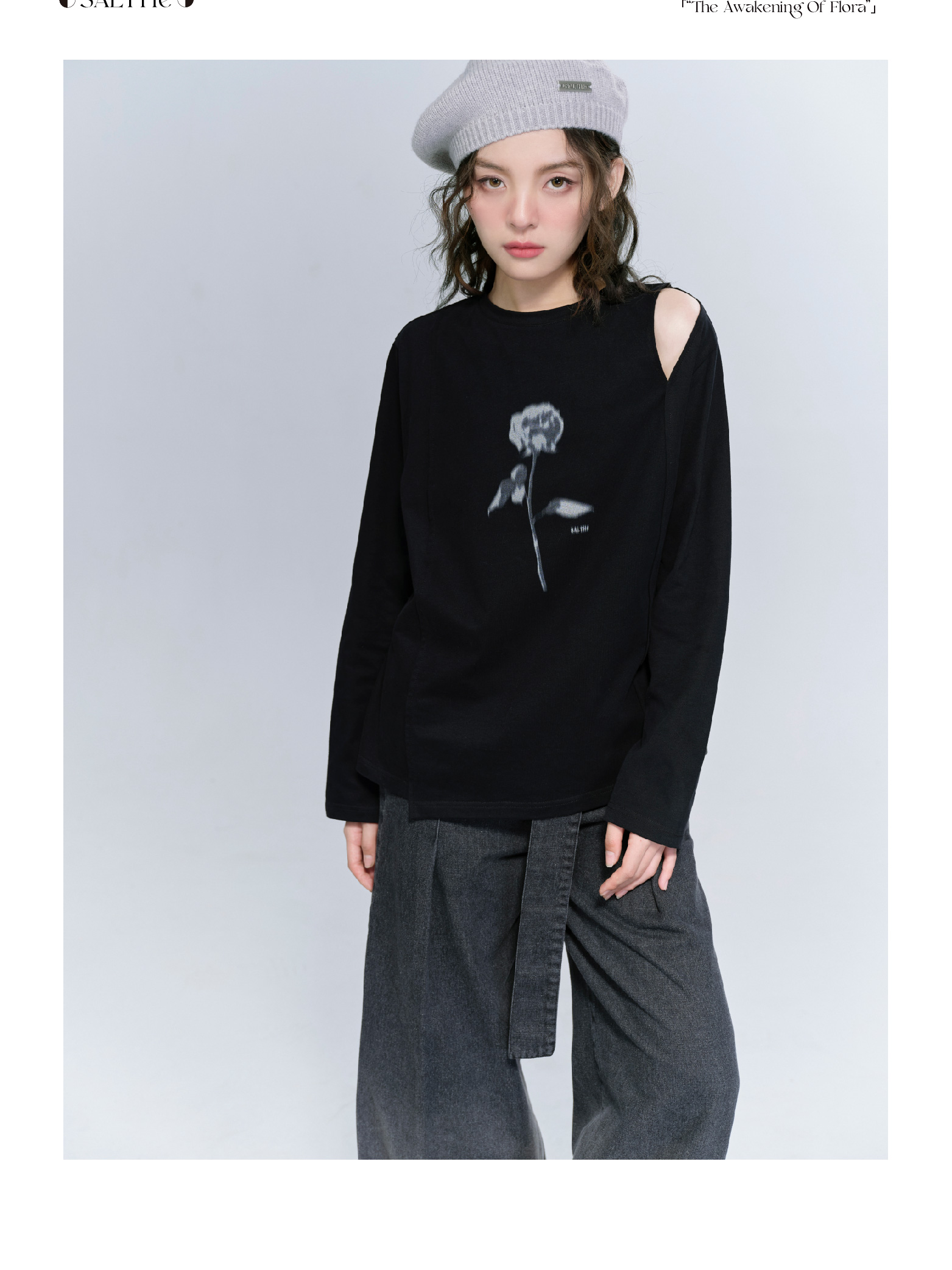 Rose Phantom Off the Shoulder Hollow Long T-shirt