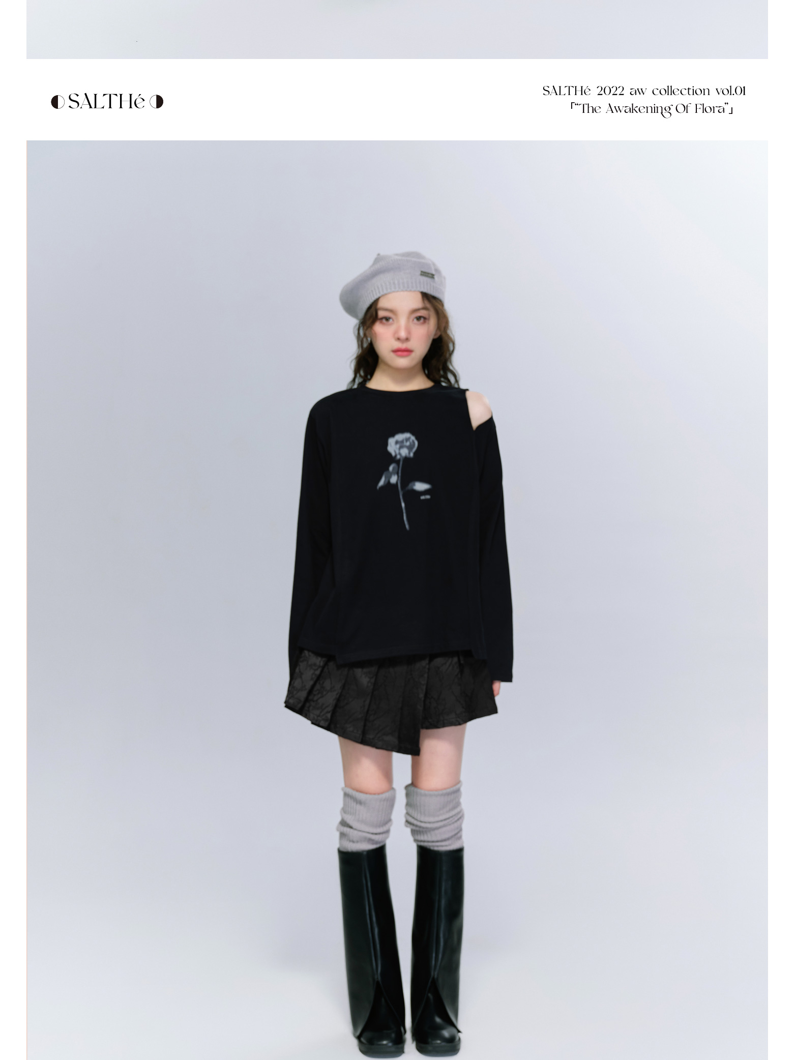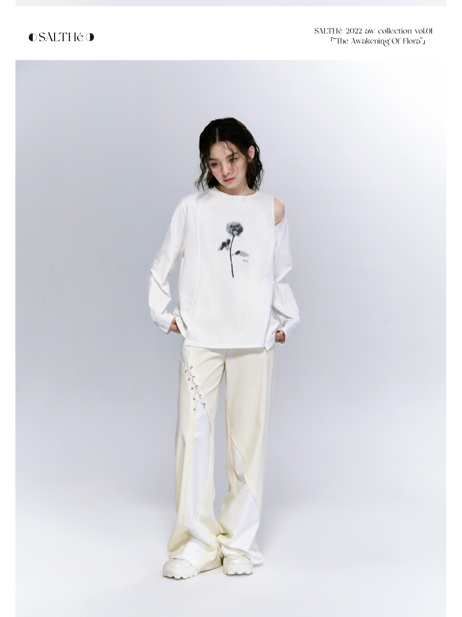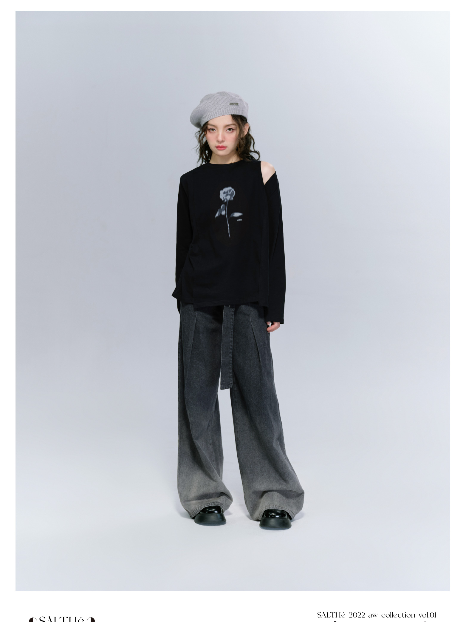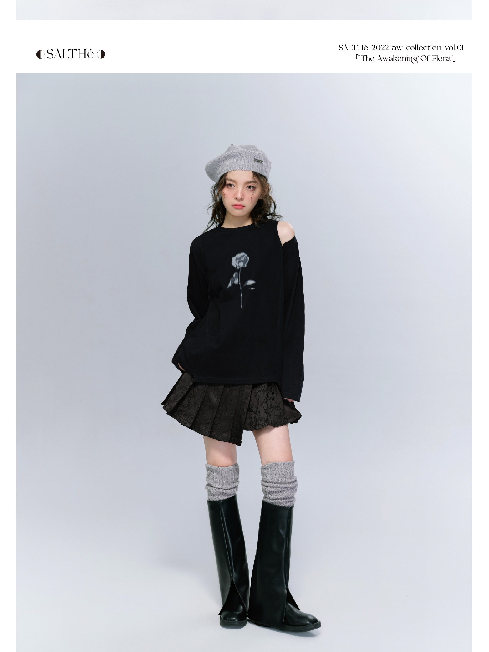 Rose Phantom Off the Shoulder Hollow Long T-shirt