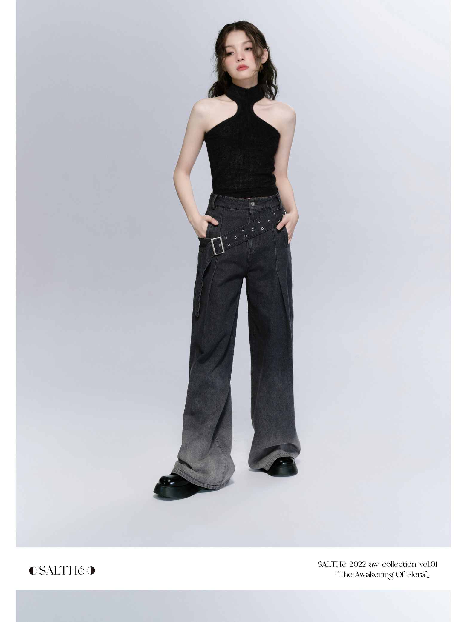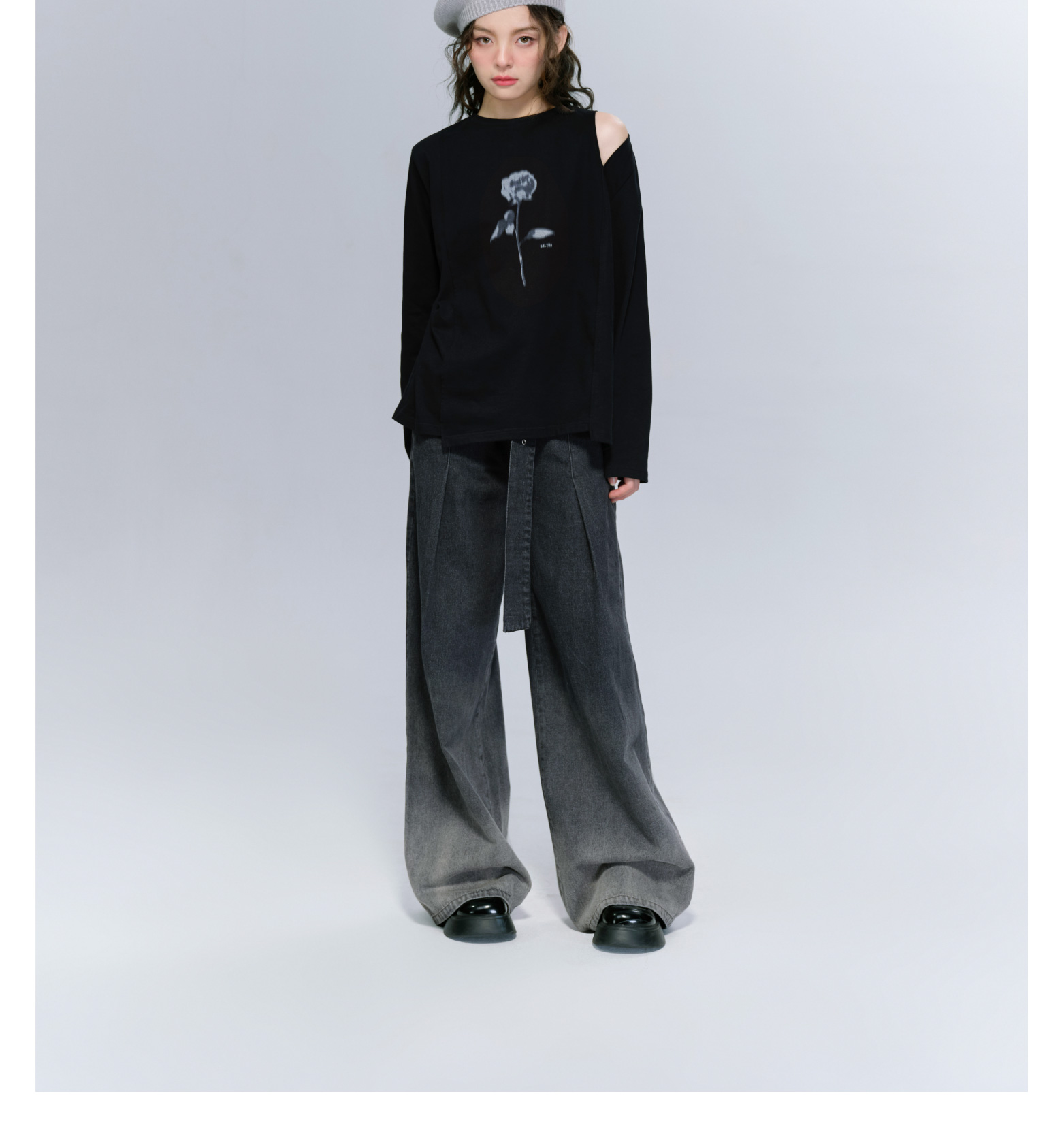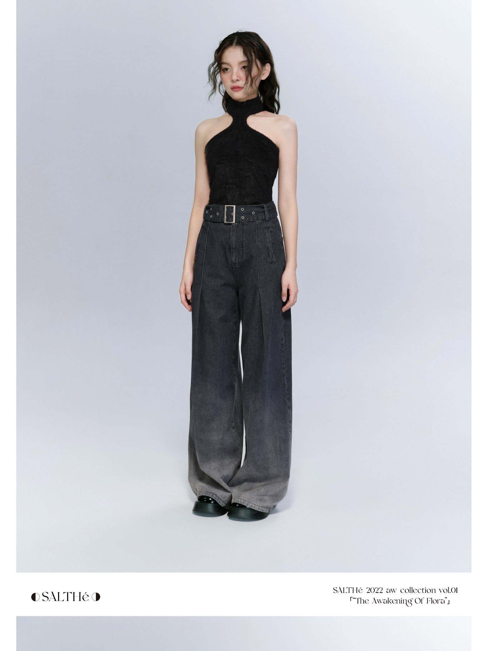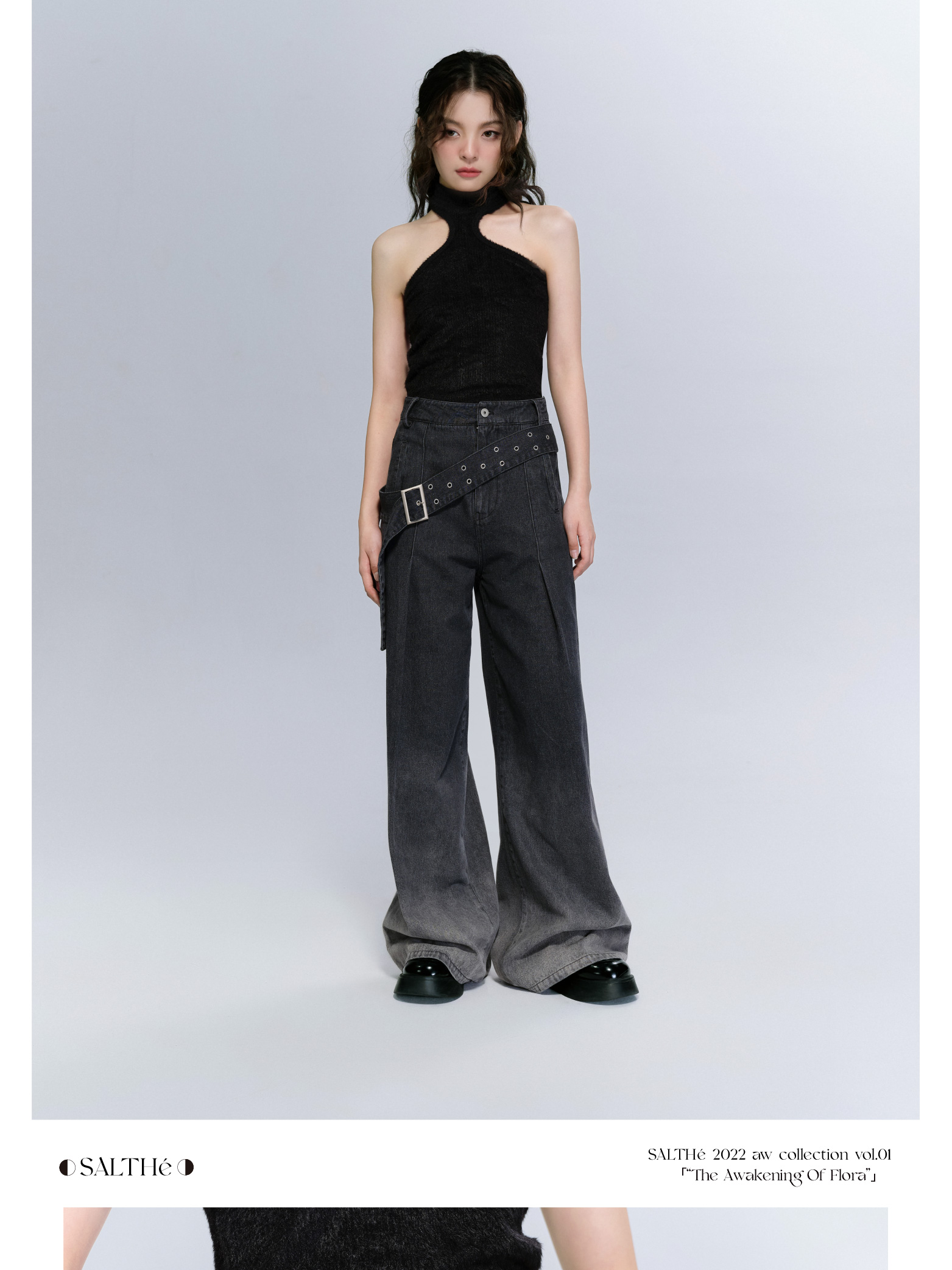 Wide Waist Belt Gradient Loose High Waist Jeans