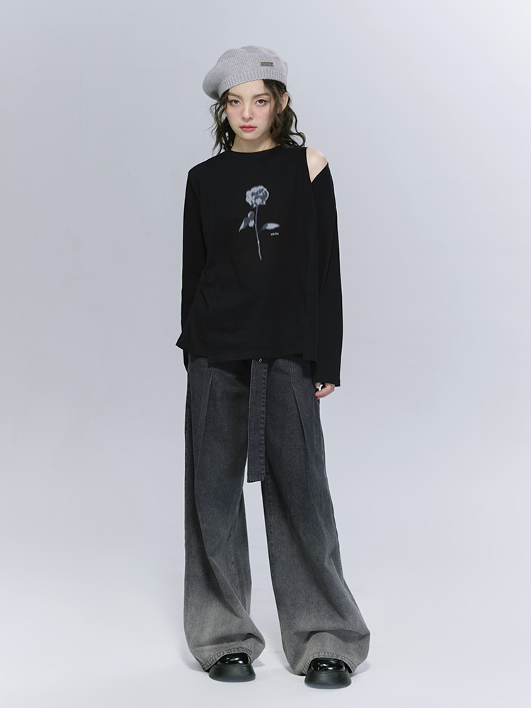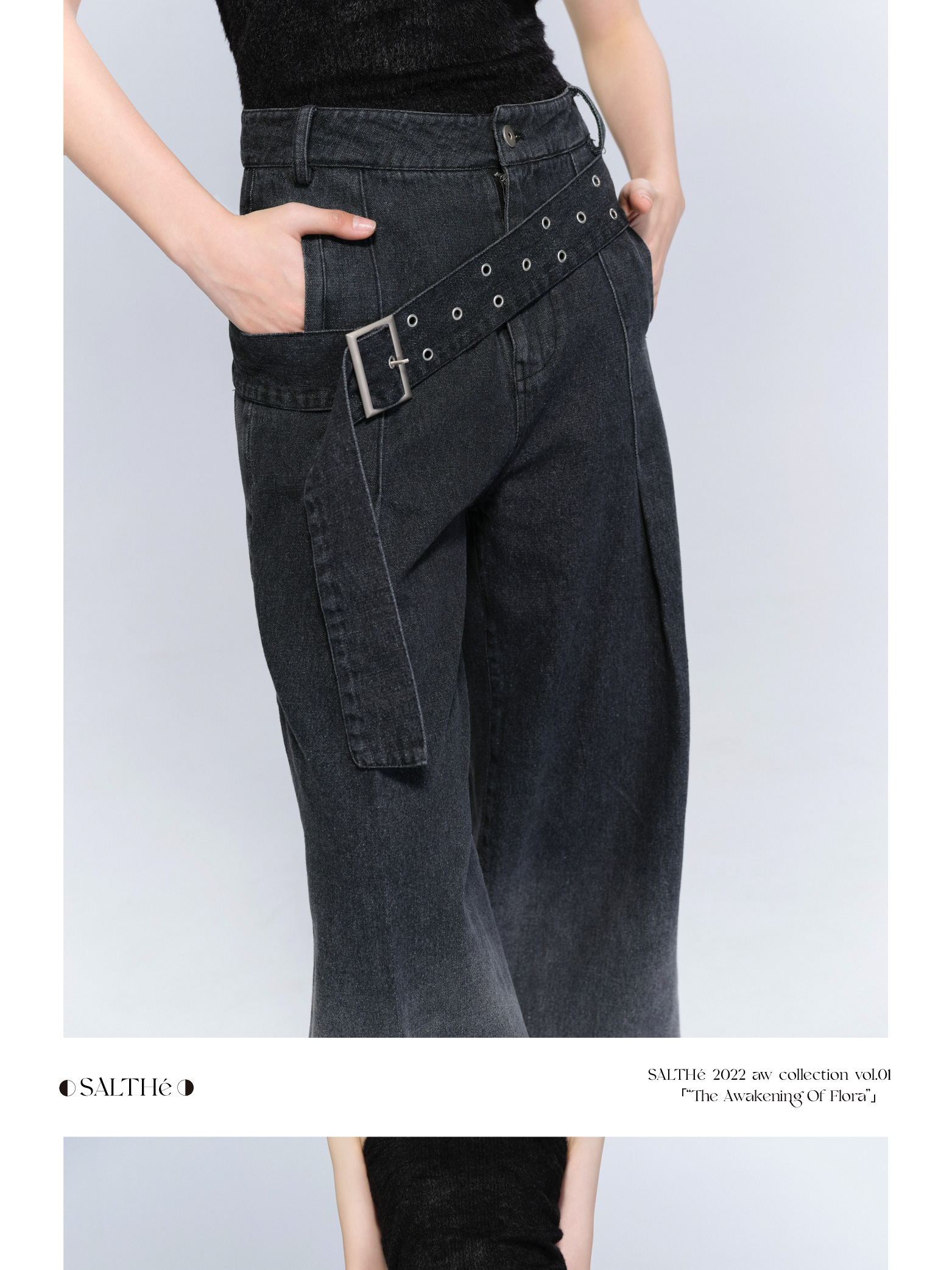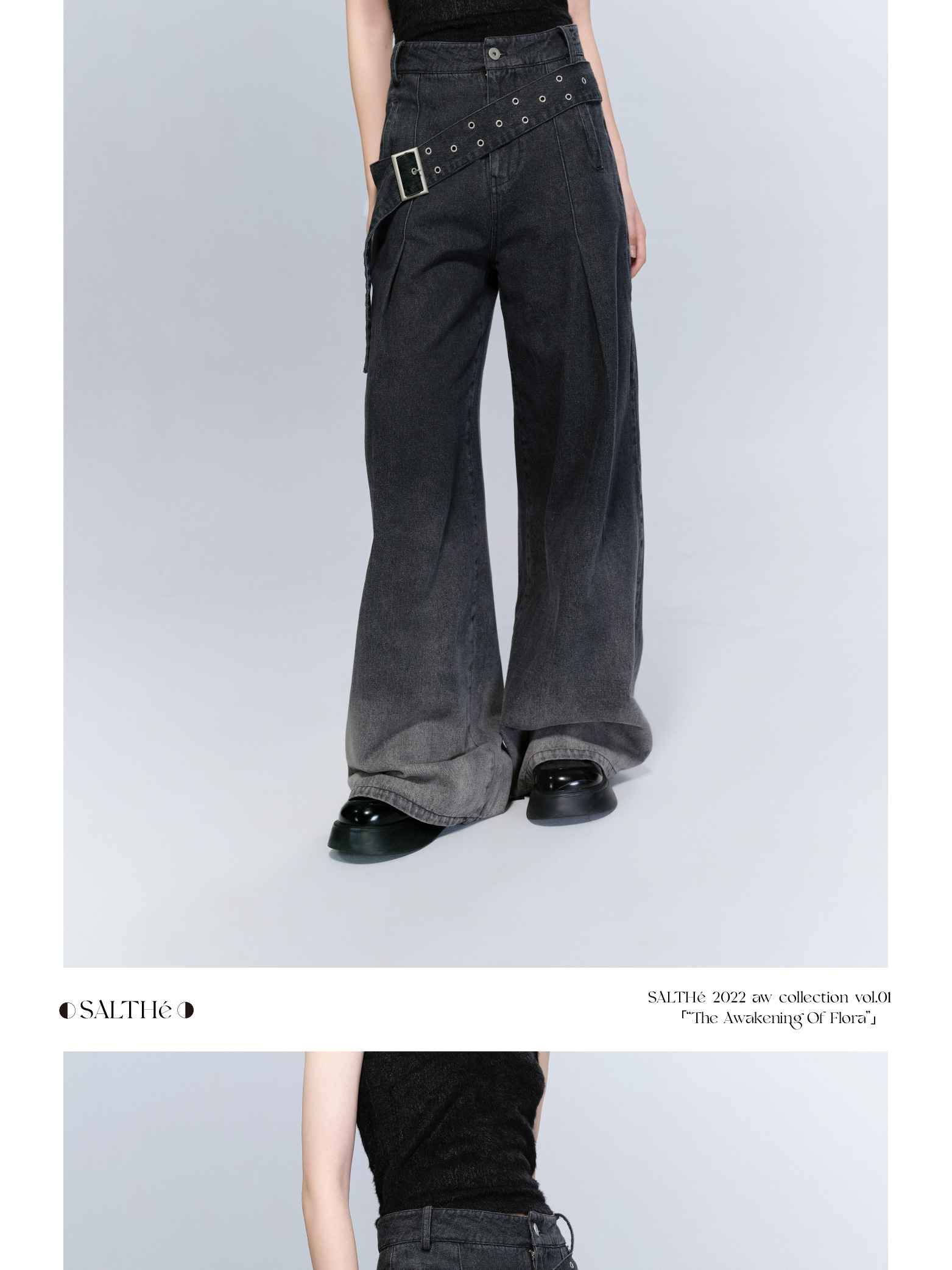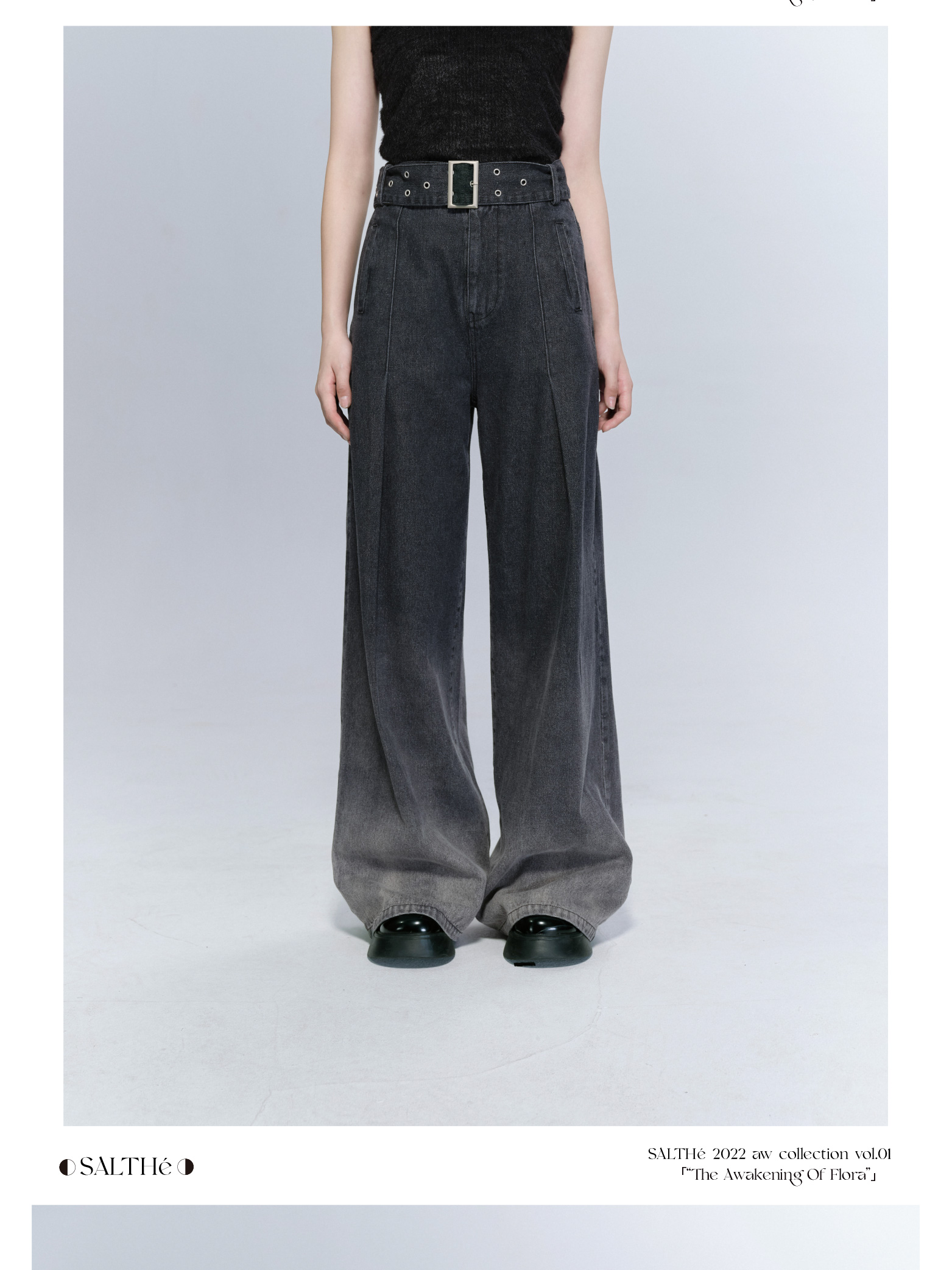 Wide Waist Belt Gradient Loose High Waist Jeans