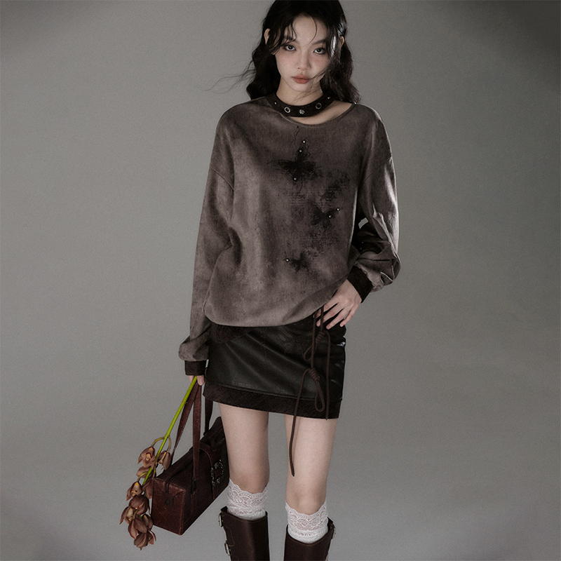 Withered Butterfly Sand Dune Round Neck Printed Hoodie
