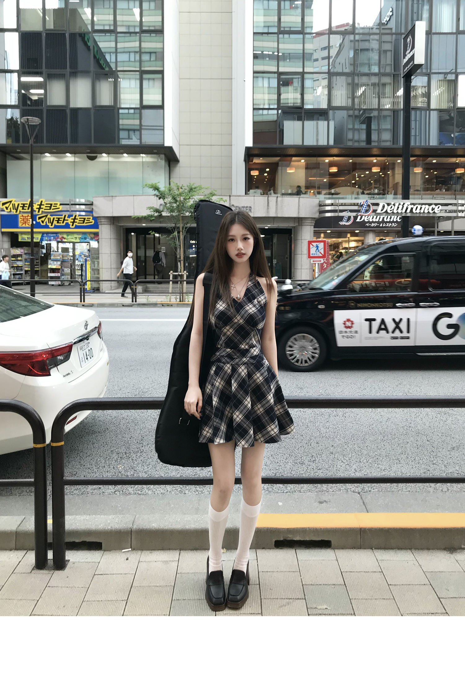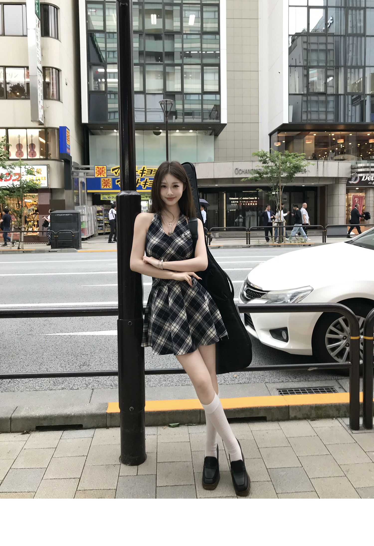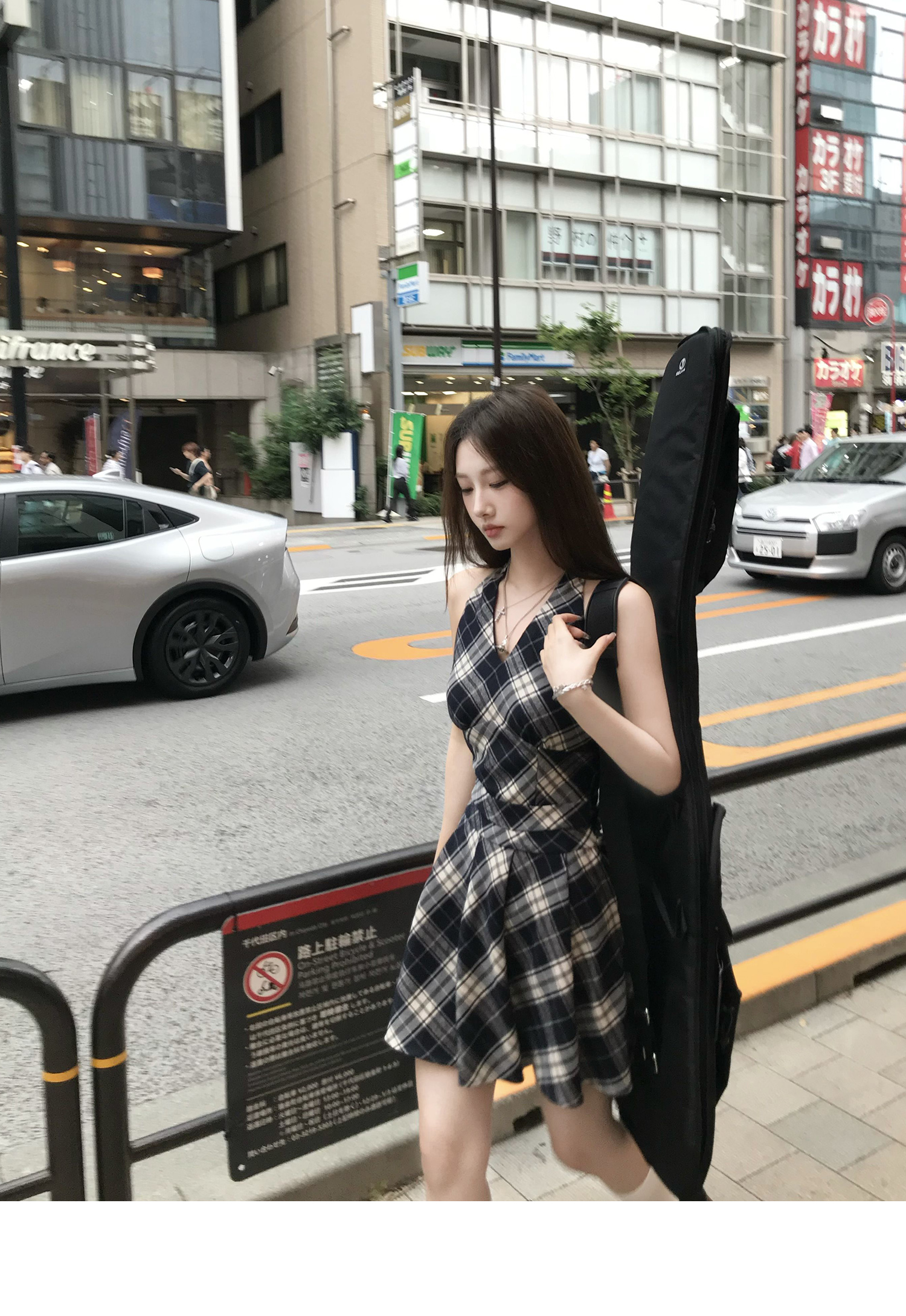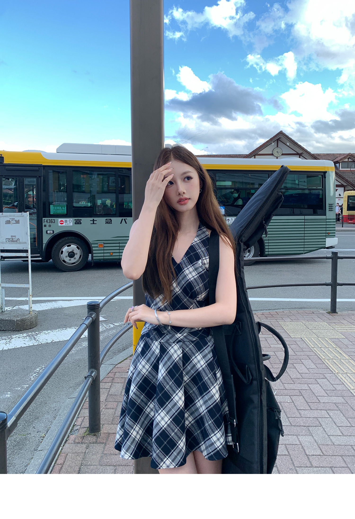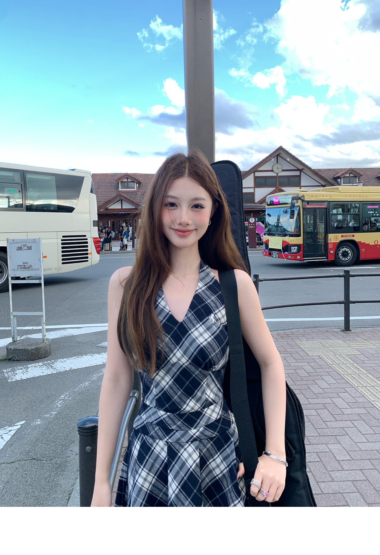 Showa Girls Checkered Dress - V-Neck Halterneck Strap Skirt for Summer