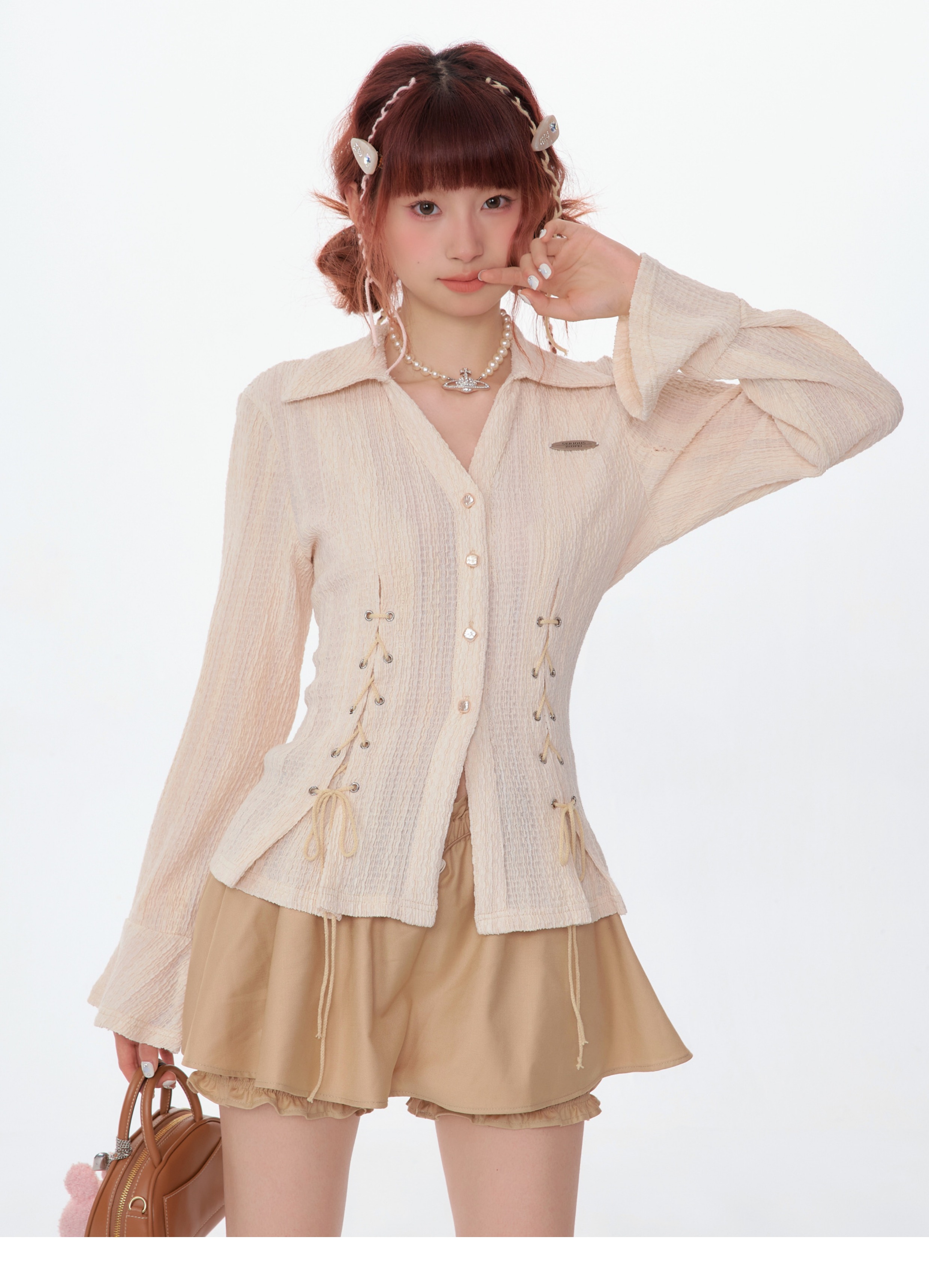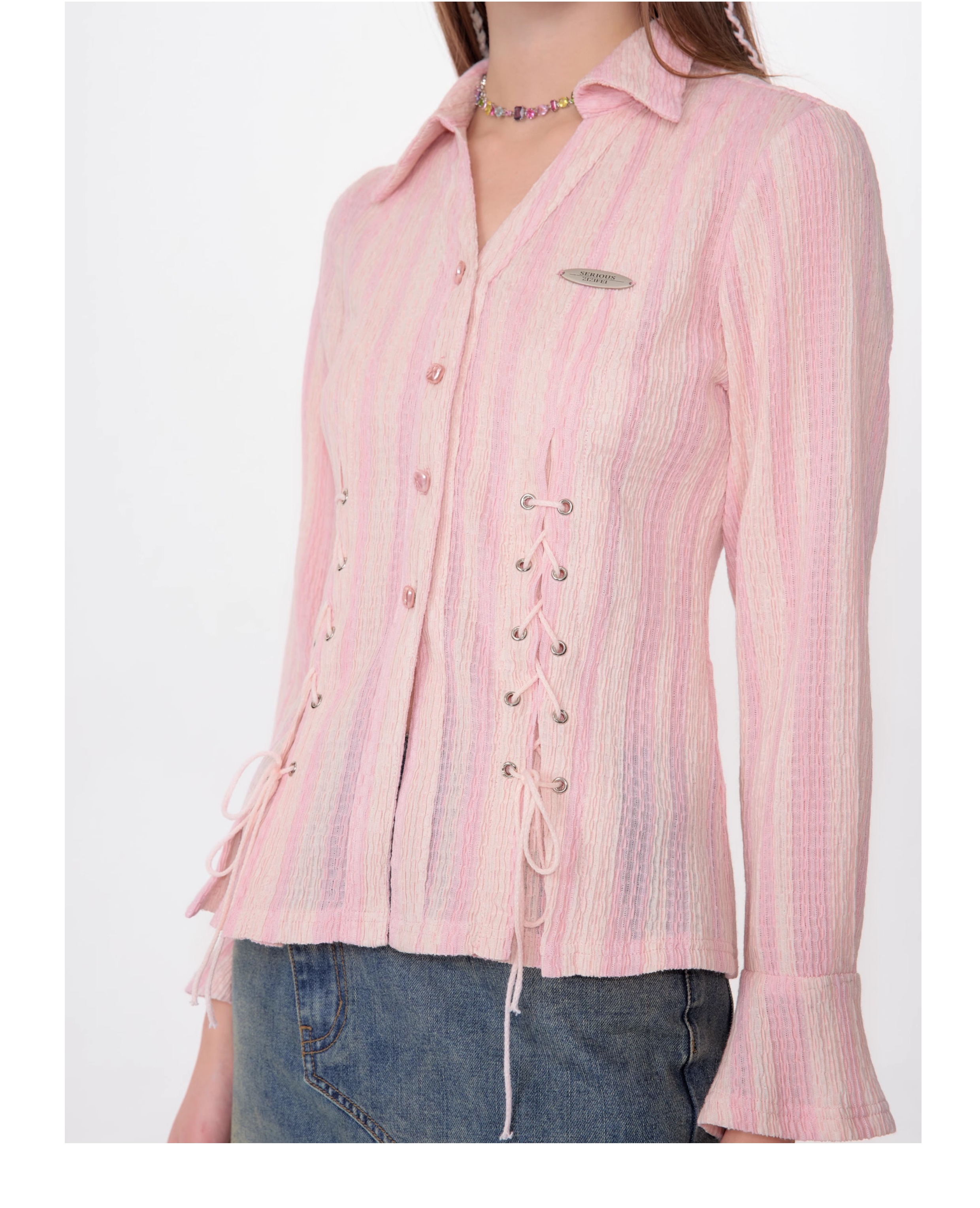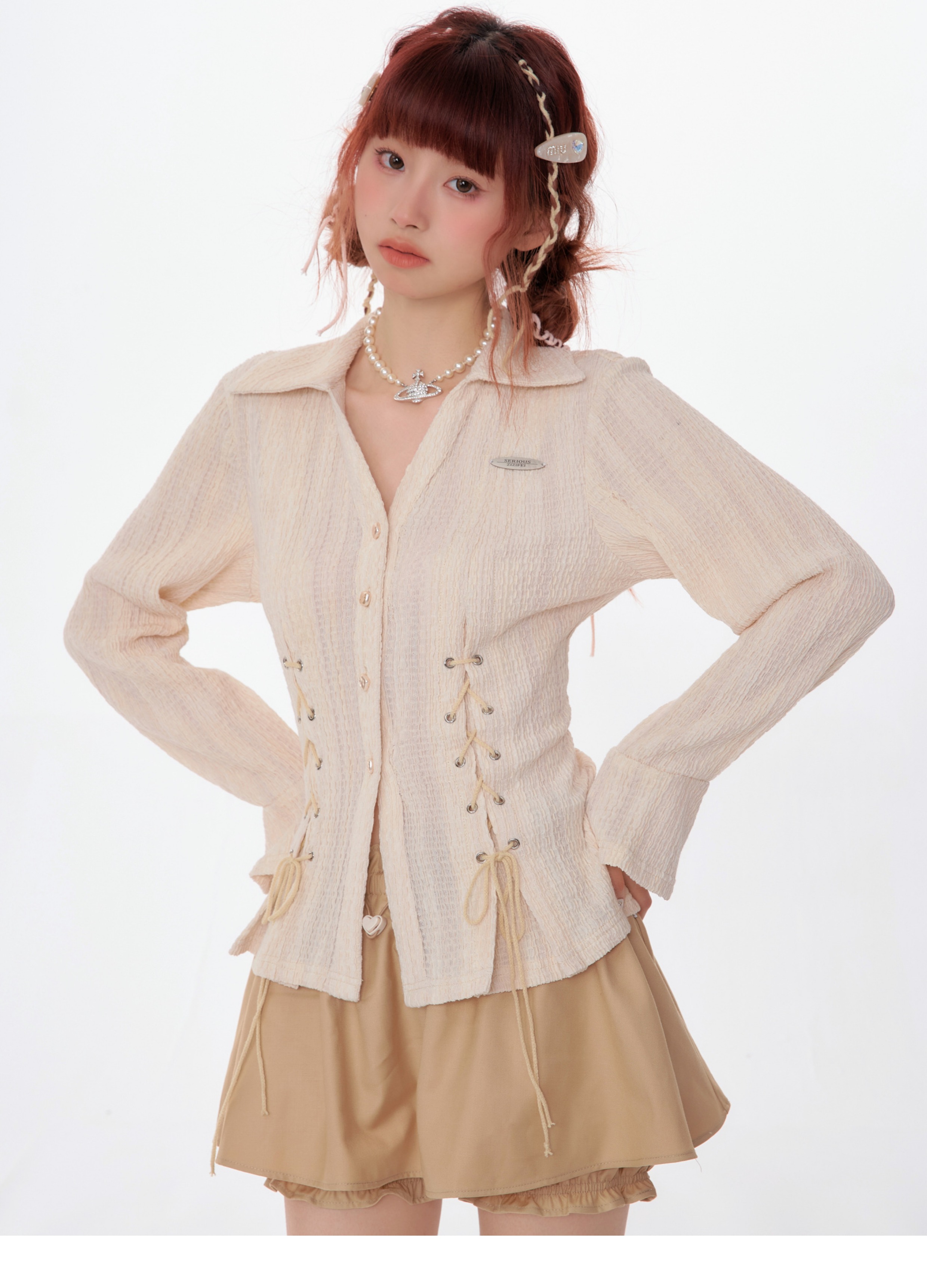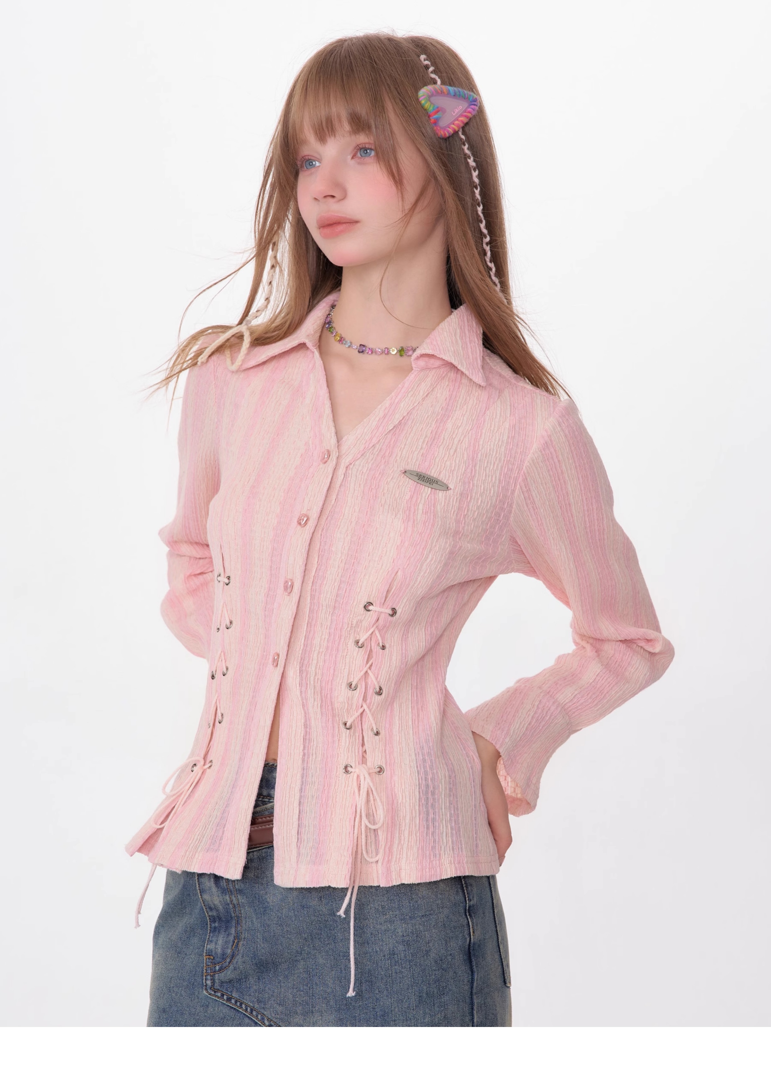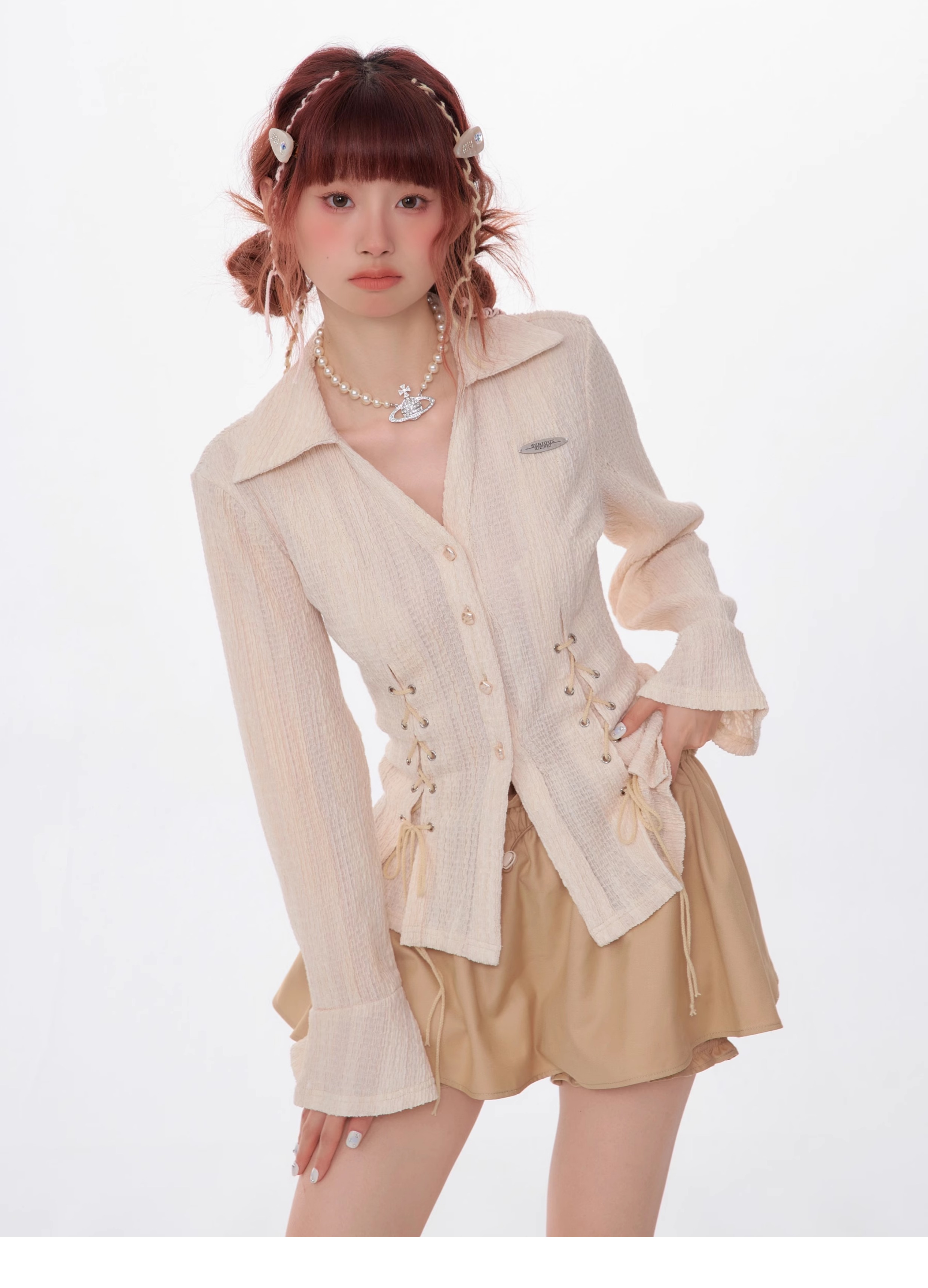 Lace-Up Textured Top | Slim Fit Retro Design for Spring/Summer