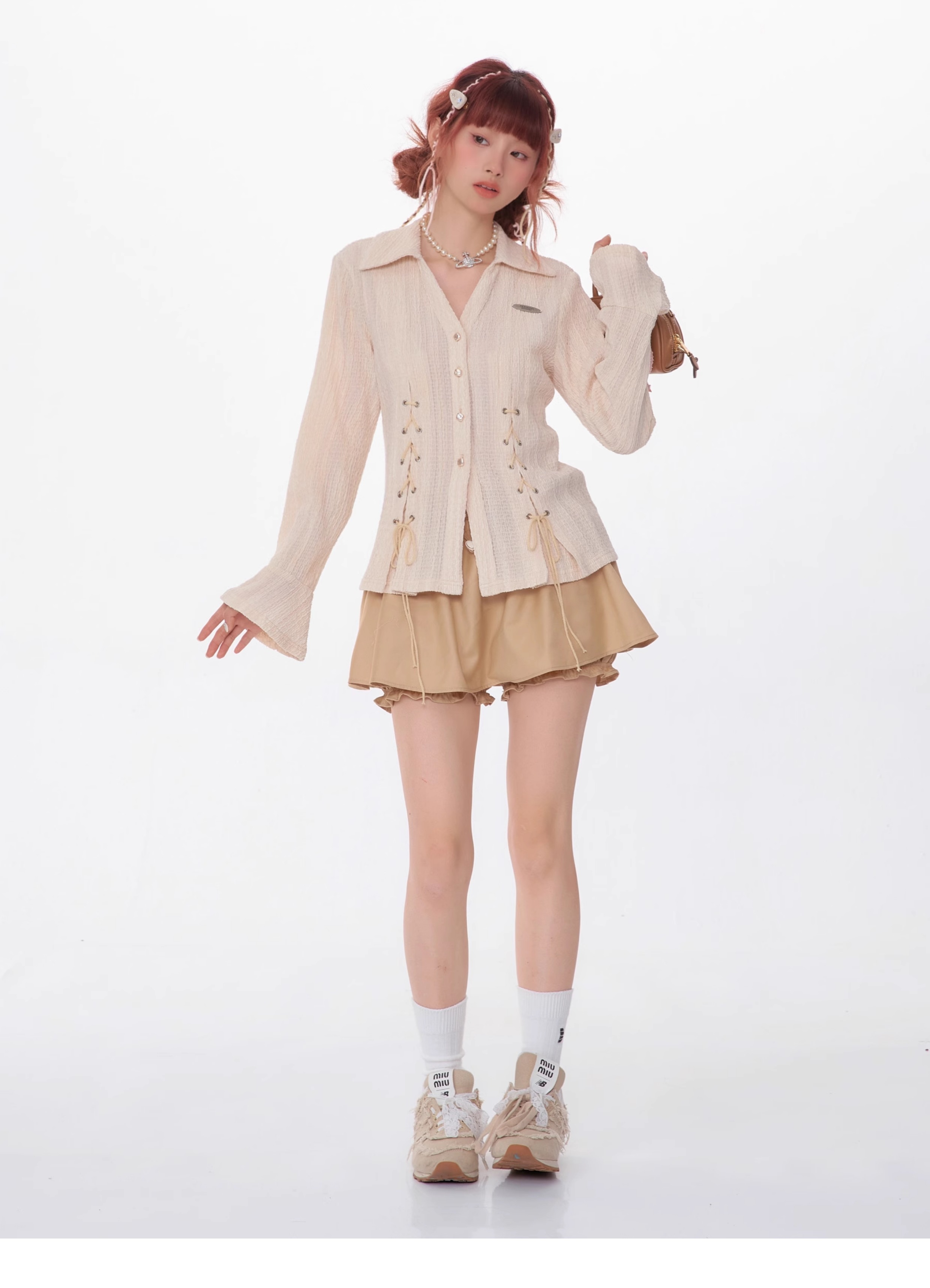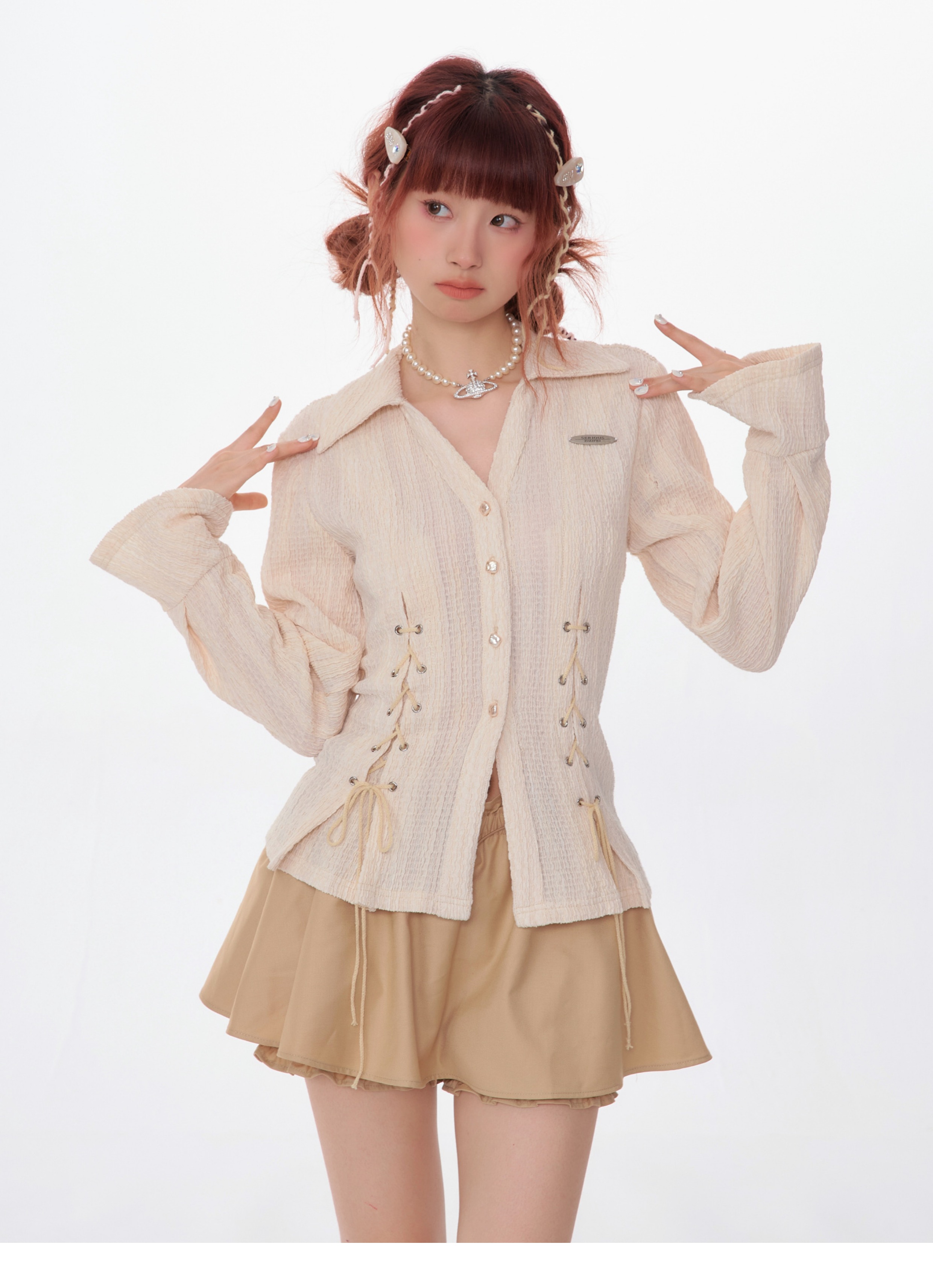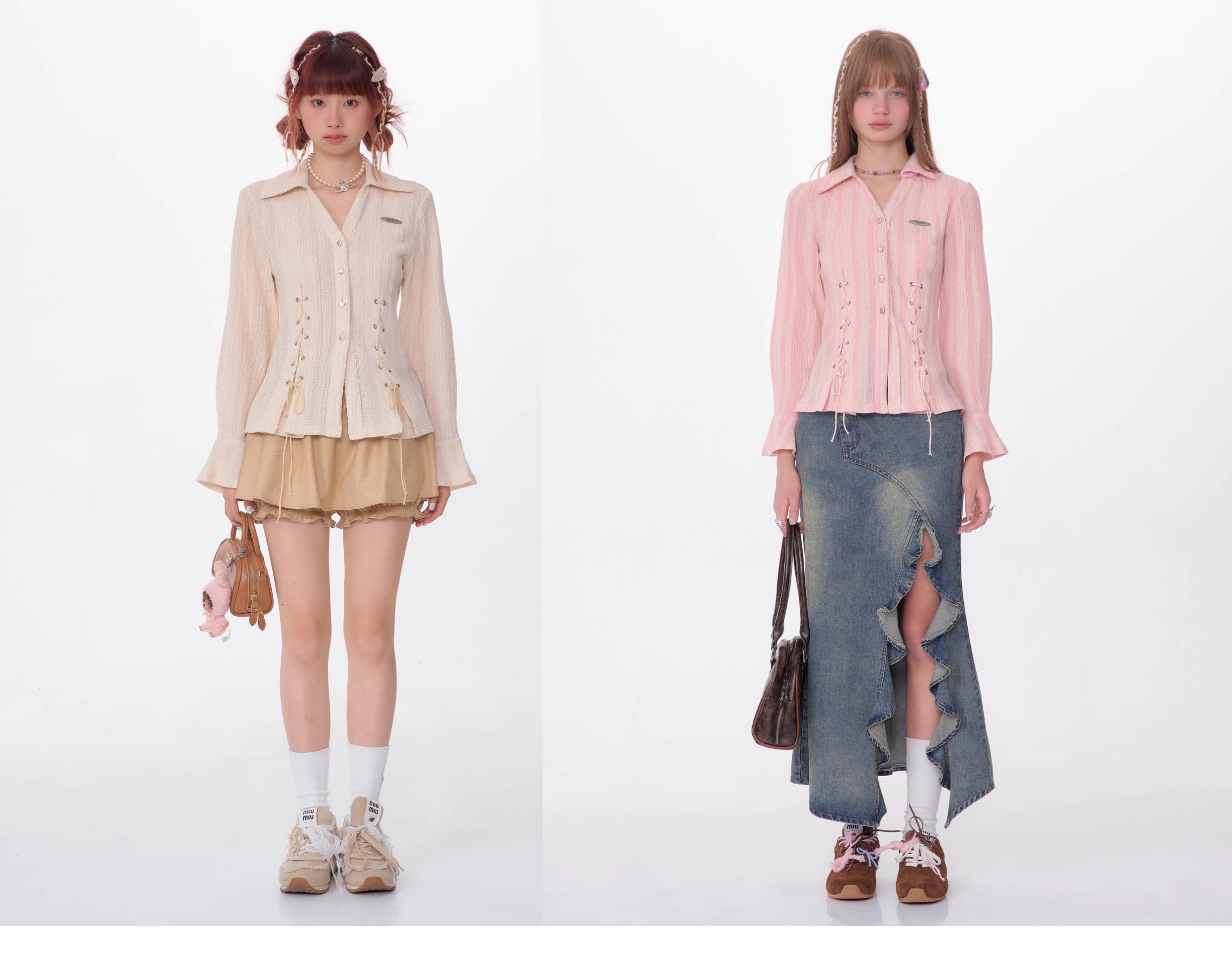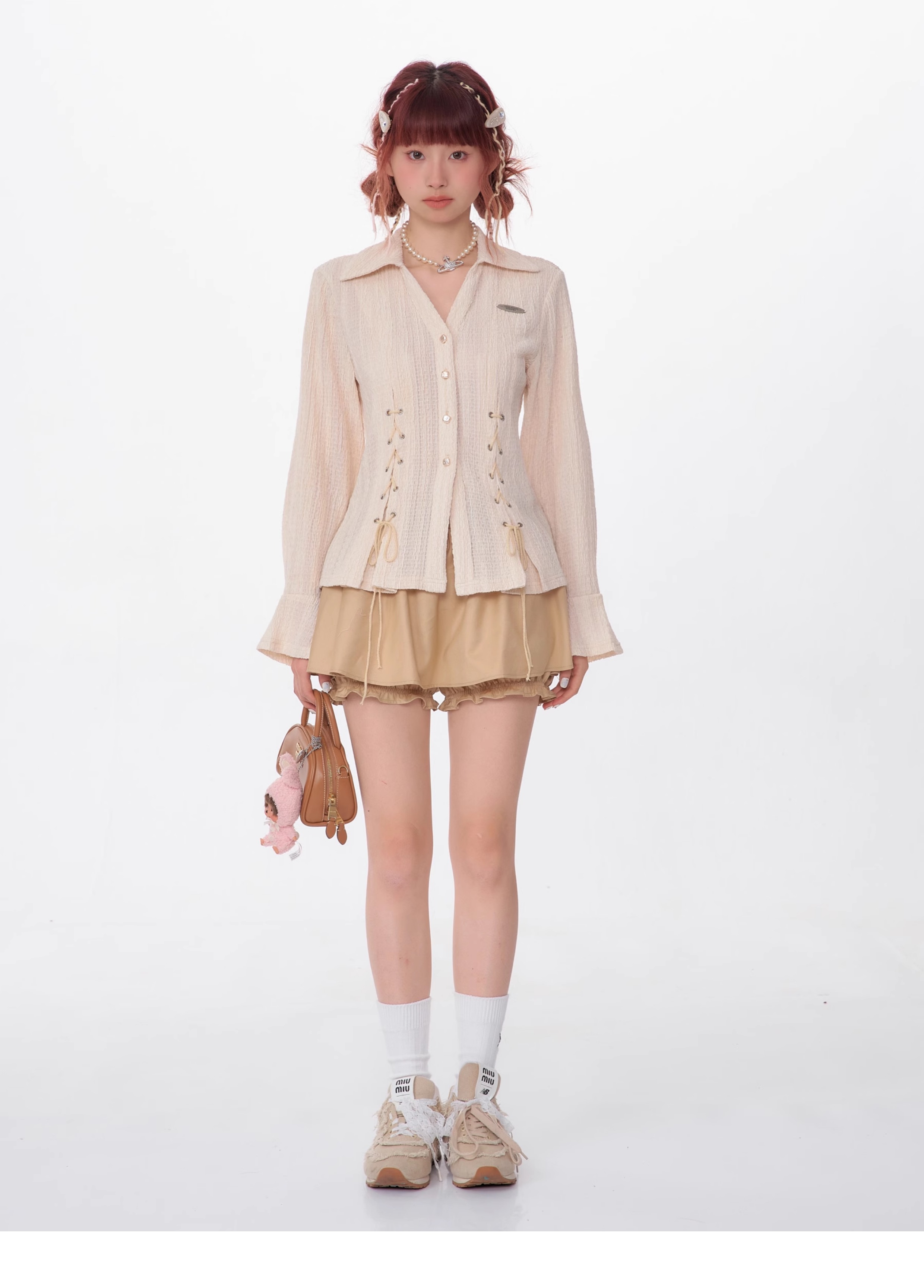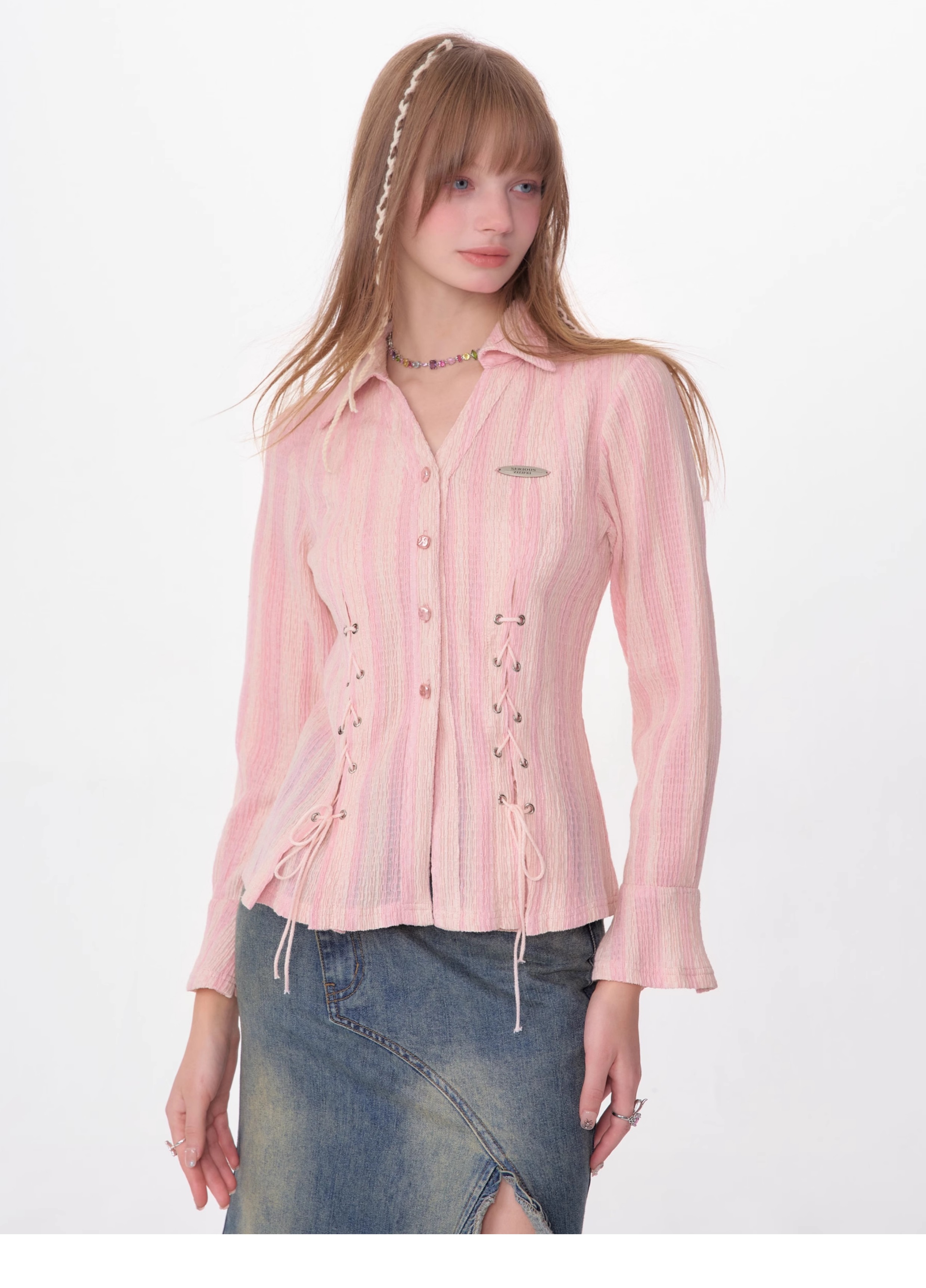 Lace-Up Textured Top | Slim Fit Retro Design for Spring/Summer
