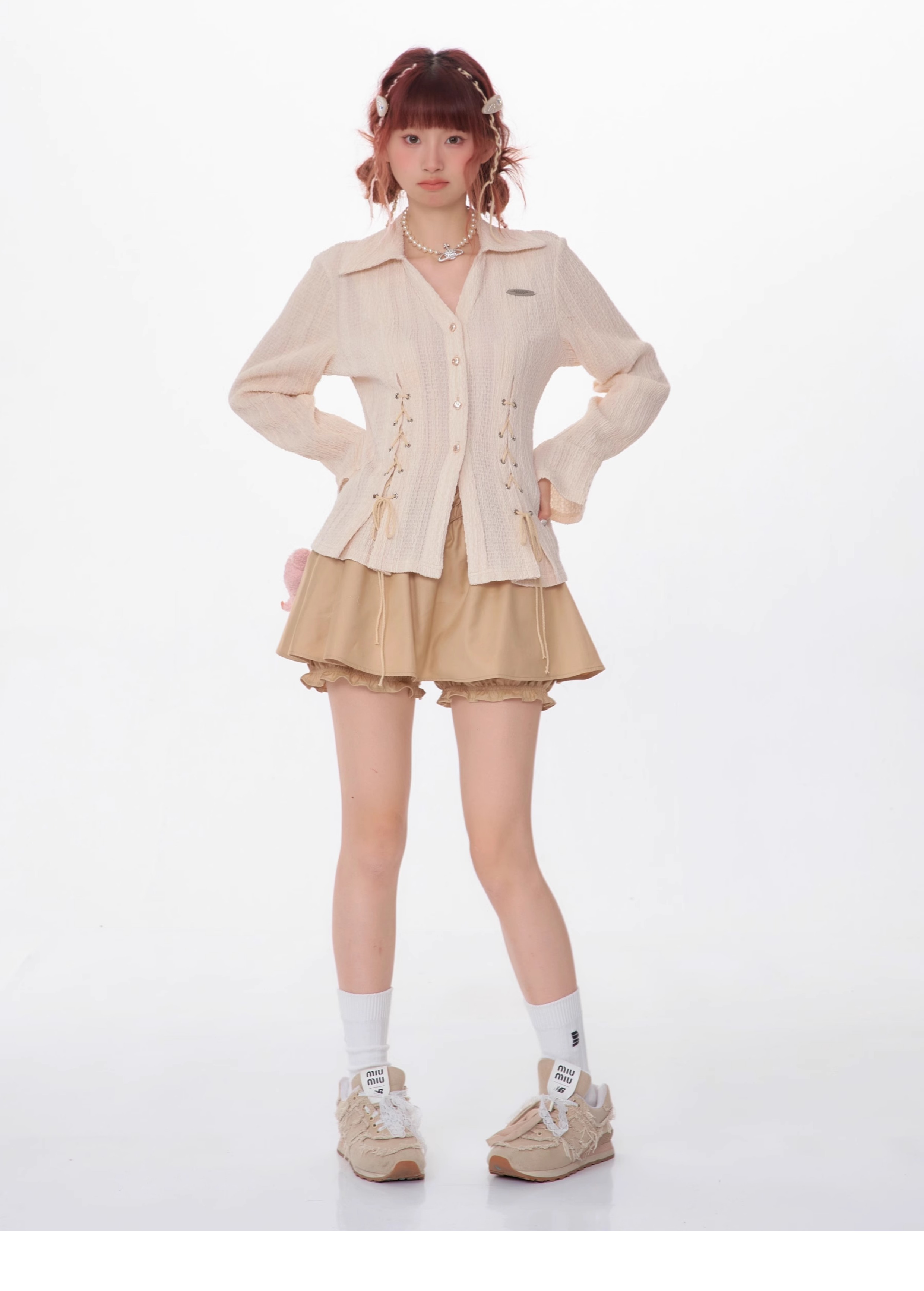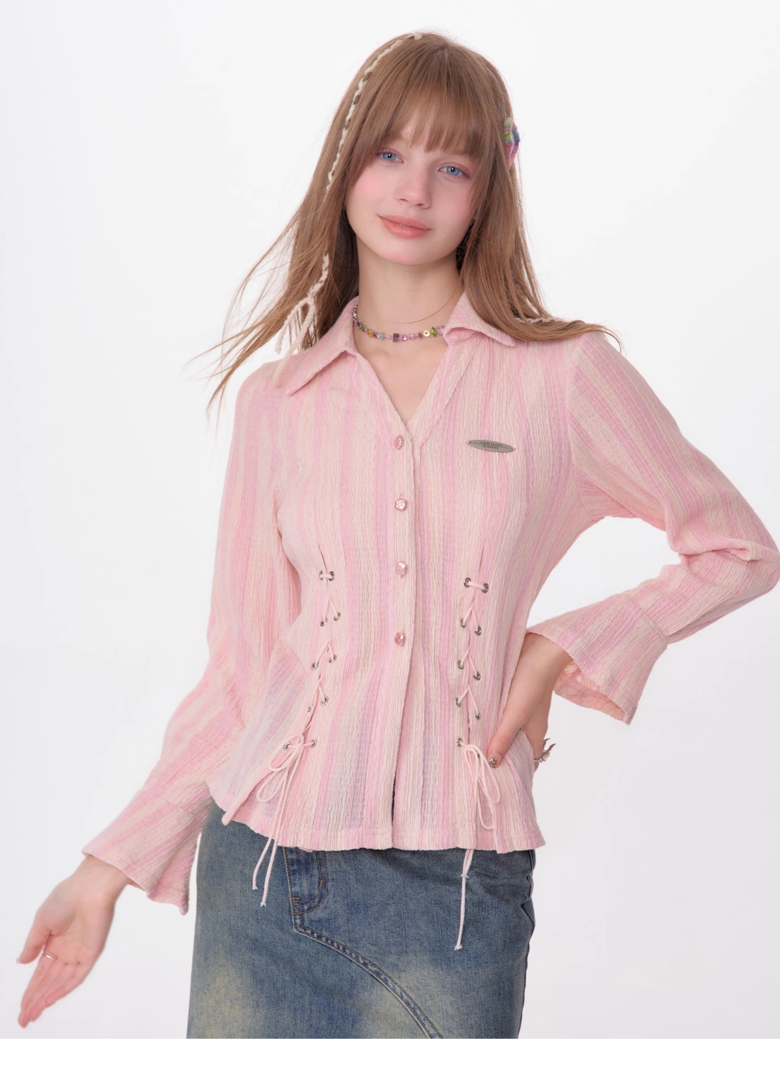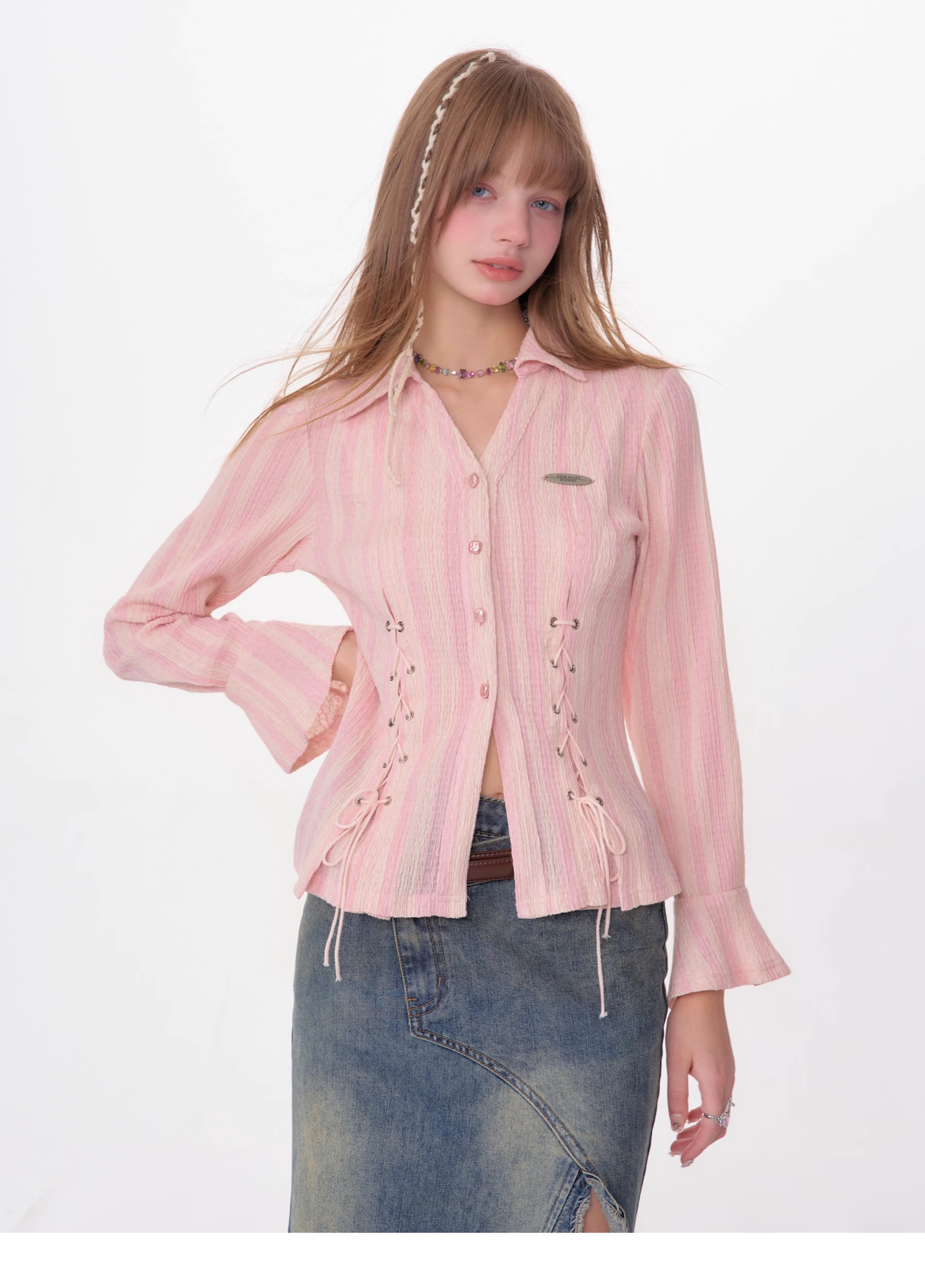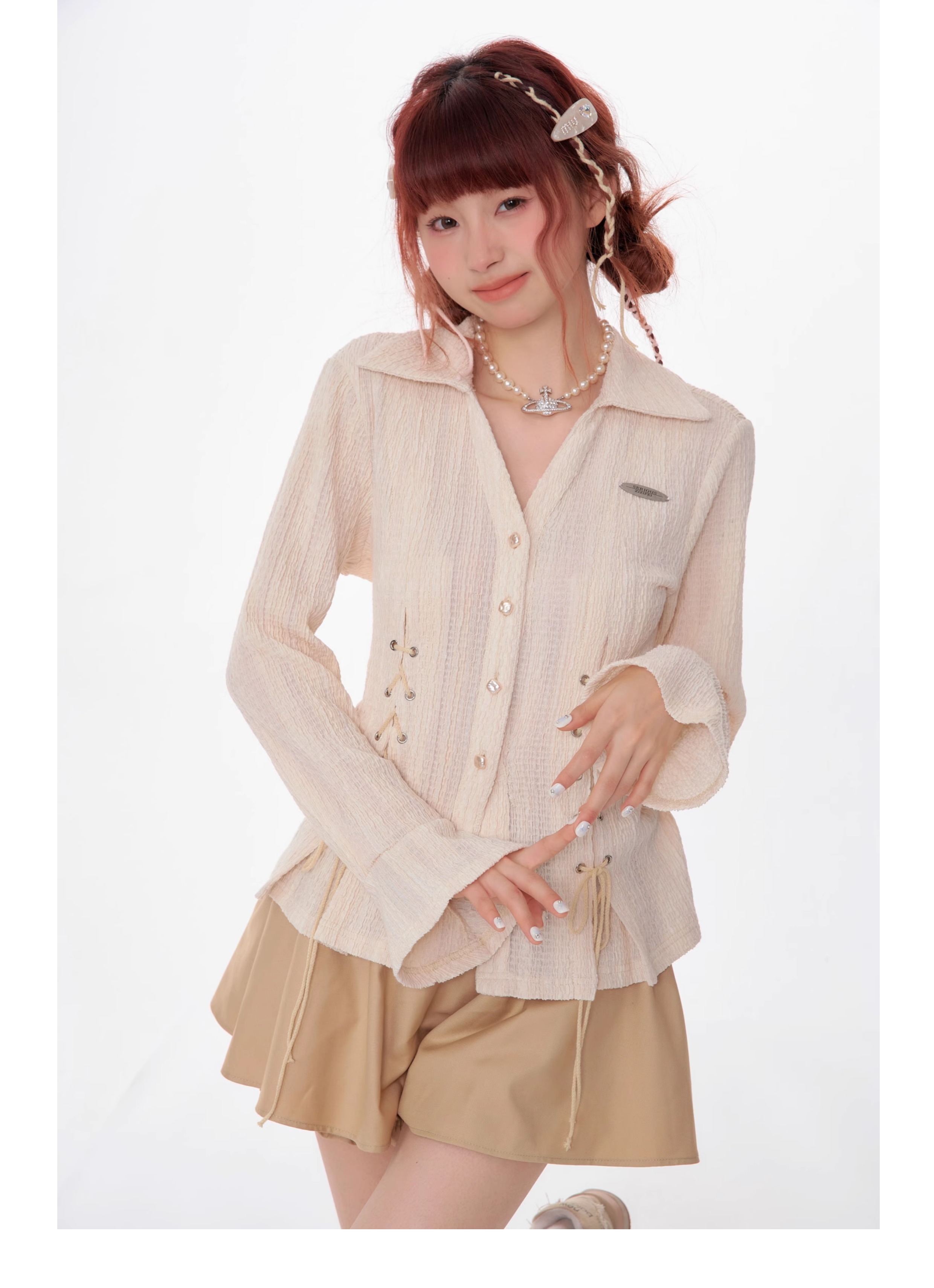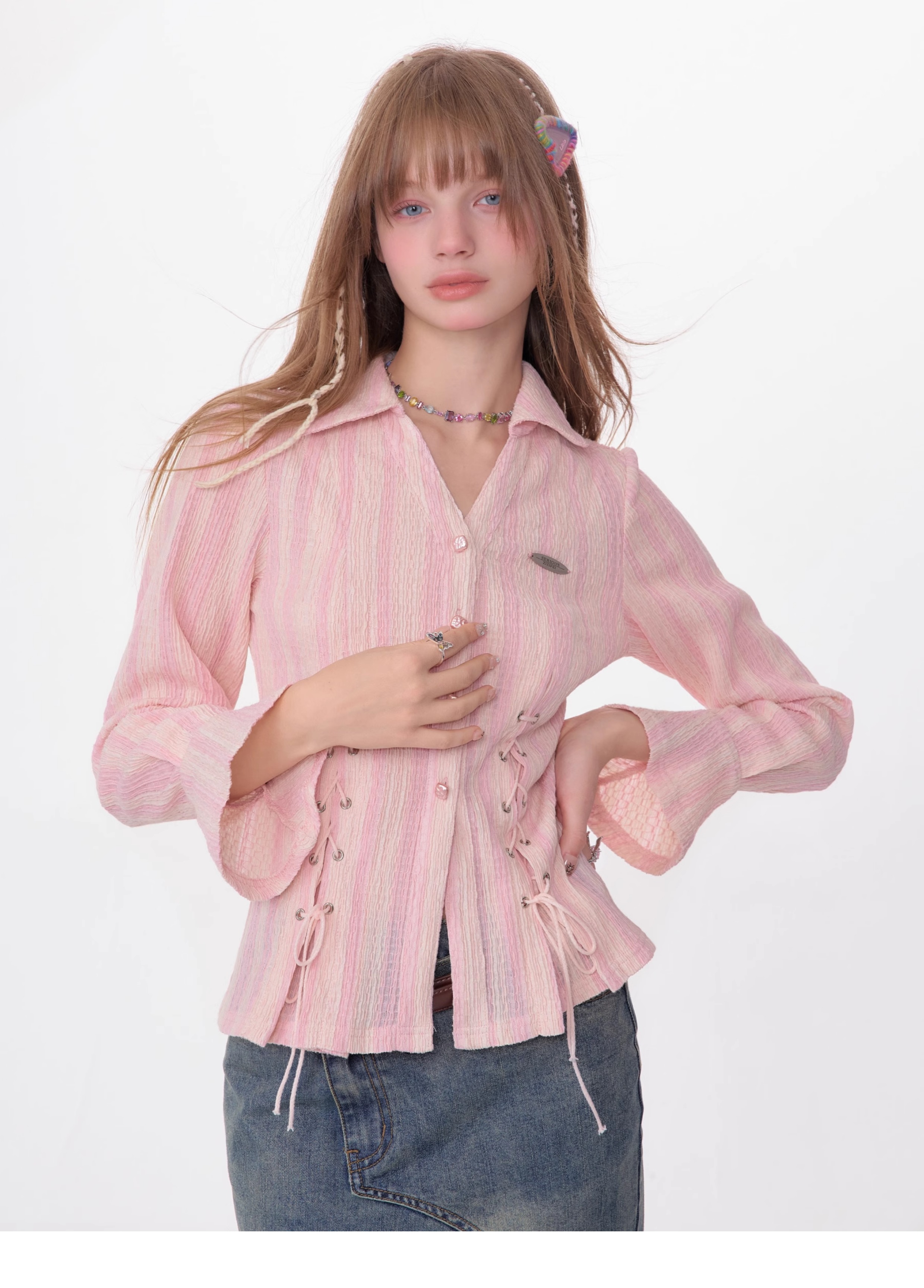 Lace-Up Textured Top | Slim Fit Retro Design for Spring/Summer