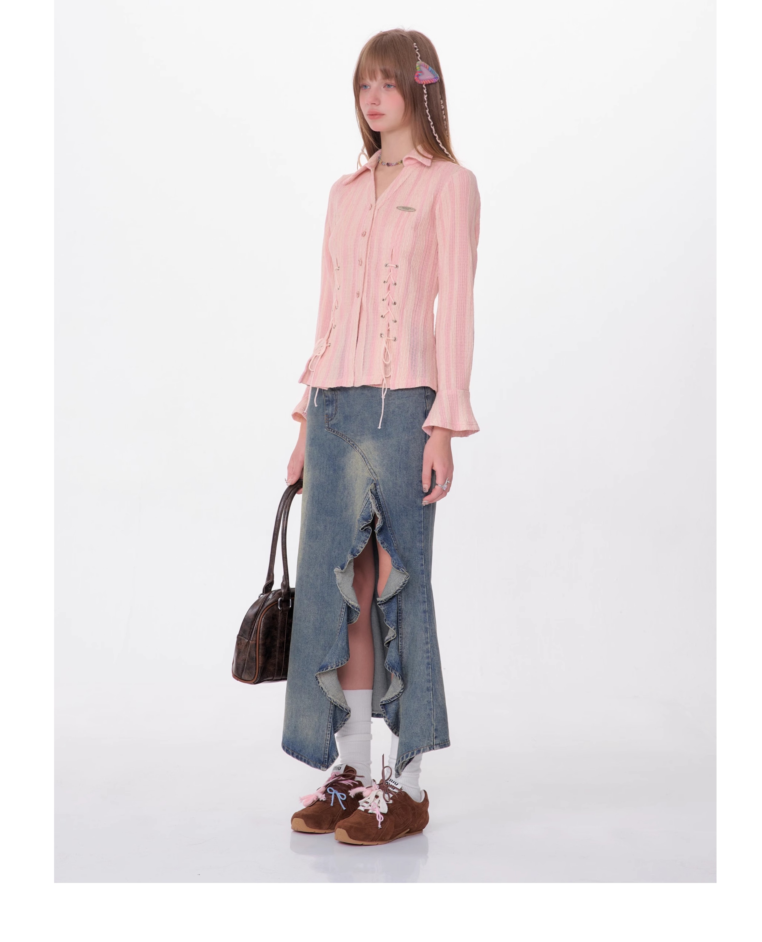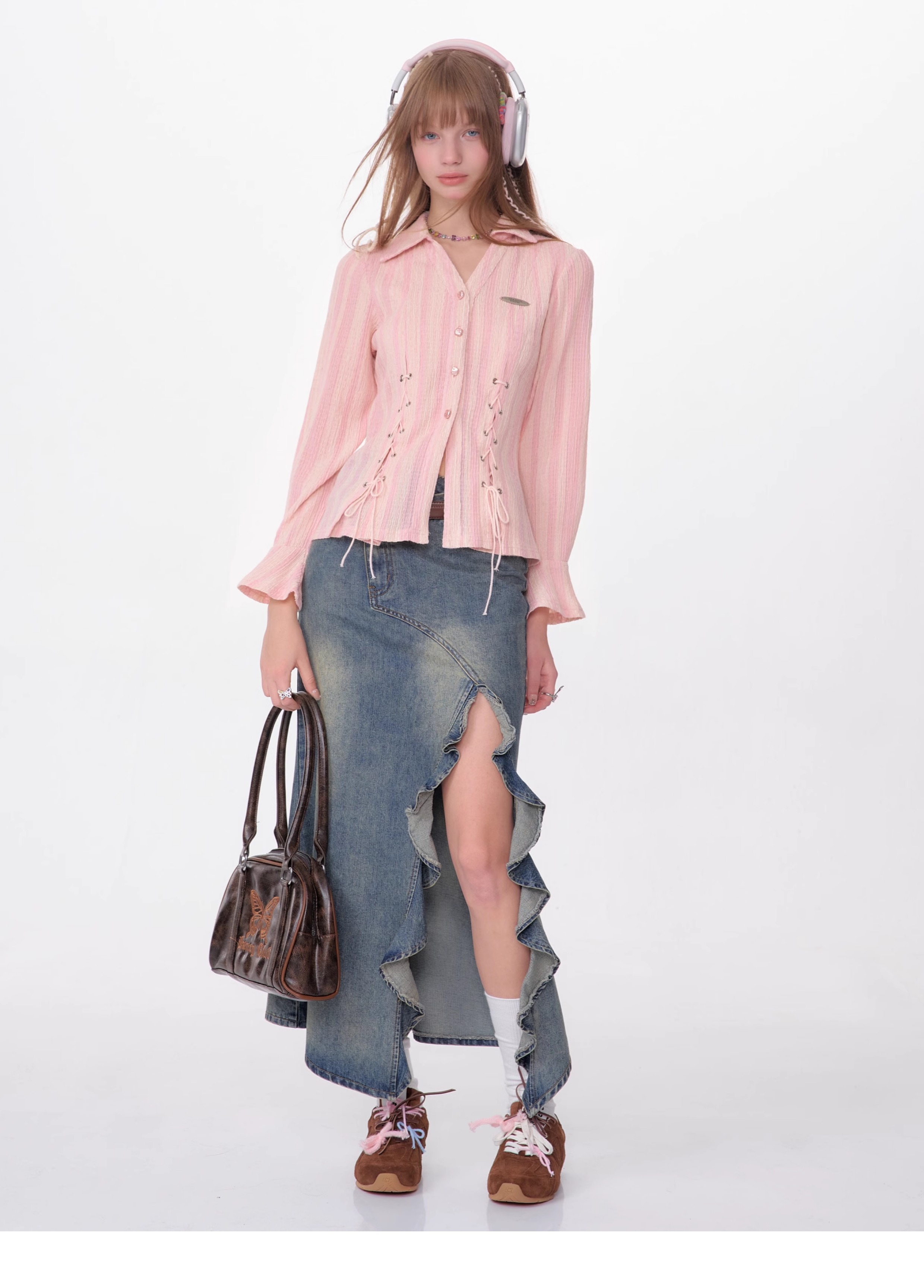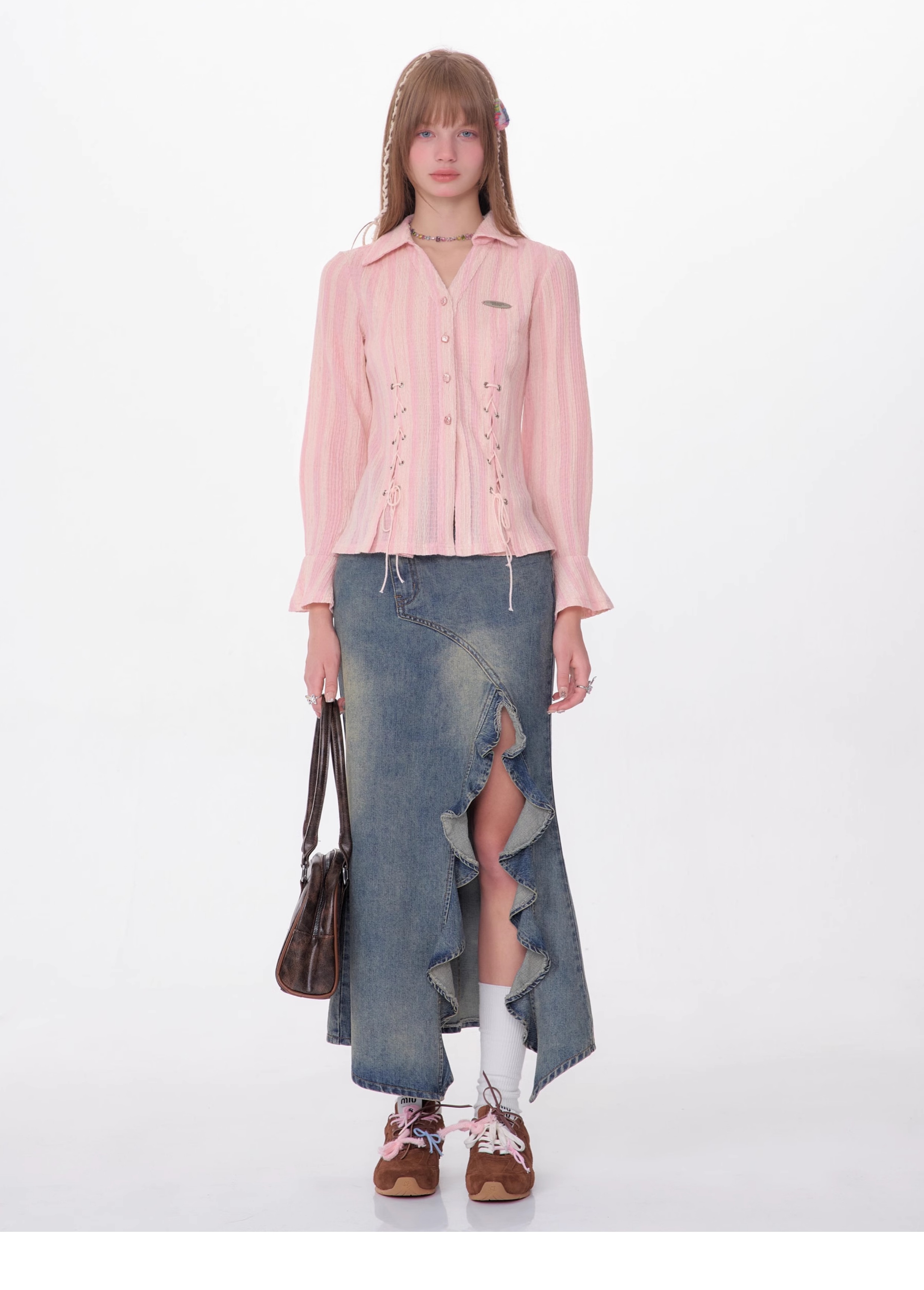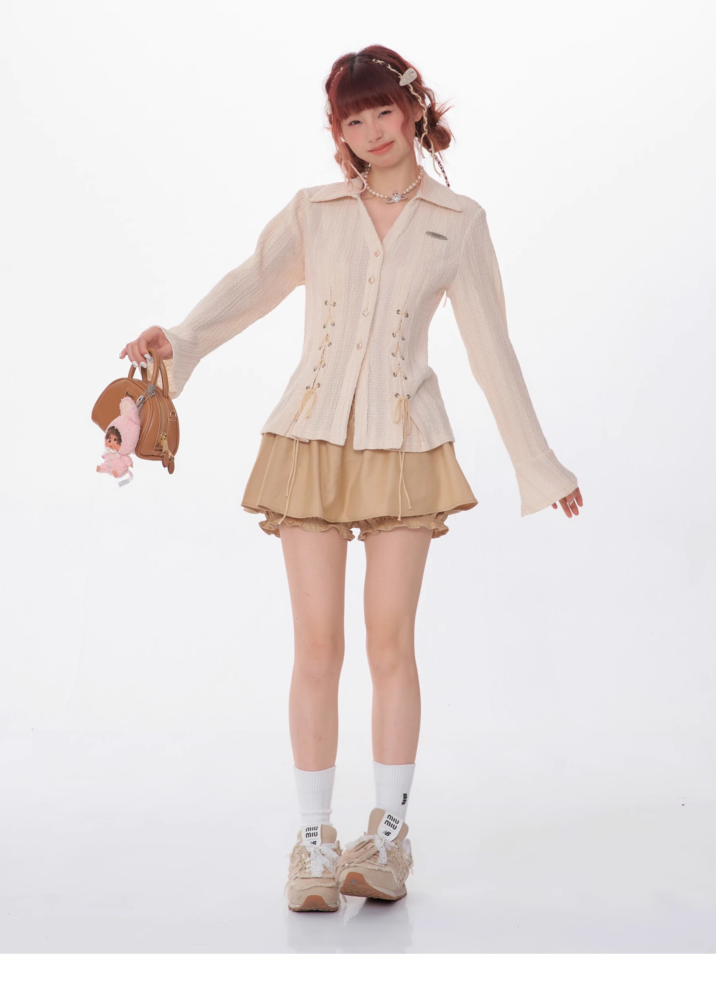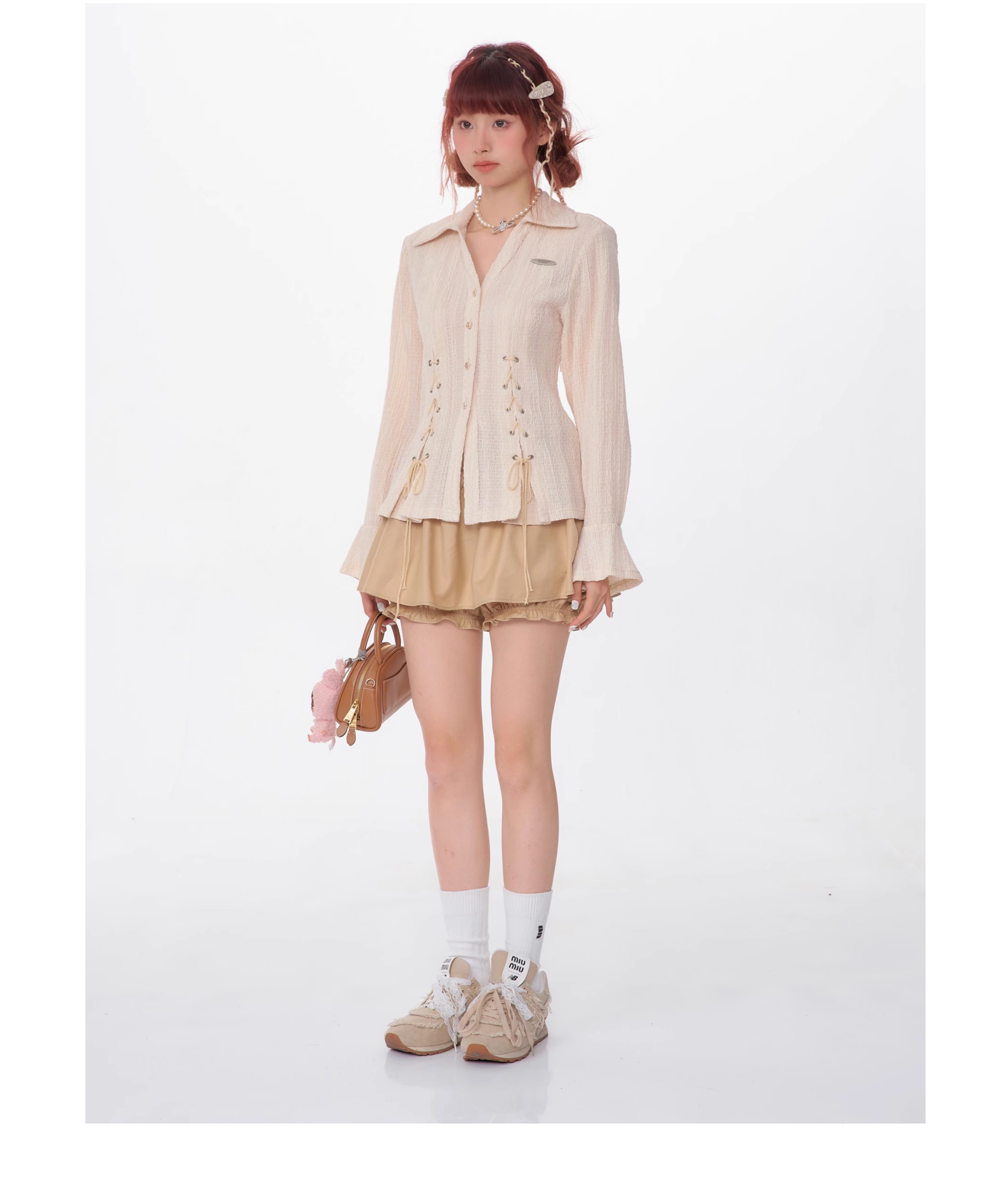Lace-Up Textured Top | Slim Fit Retro Design for Spring/Summer