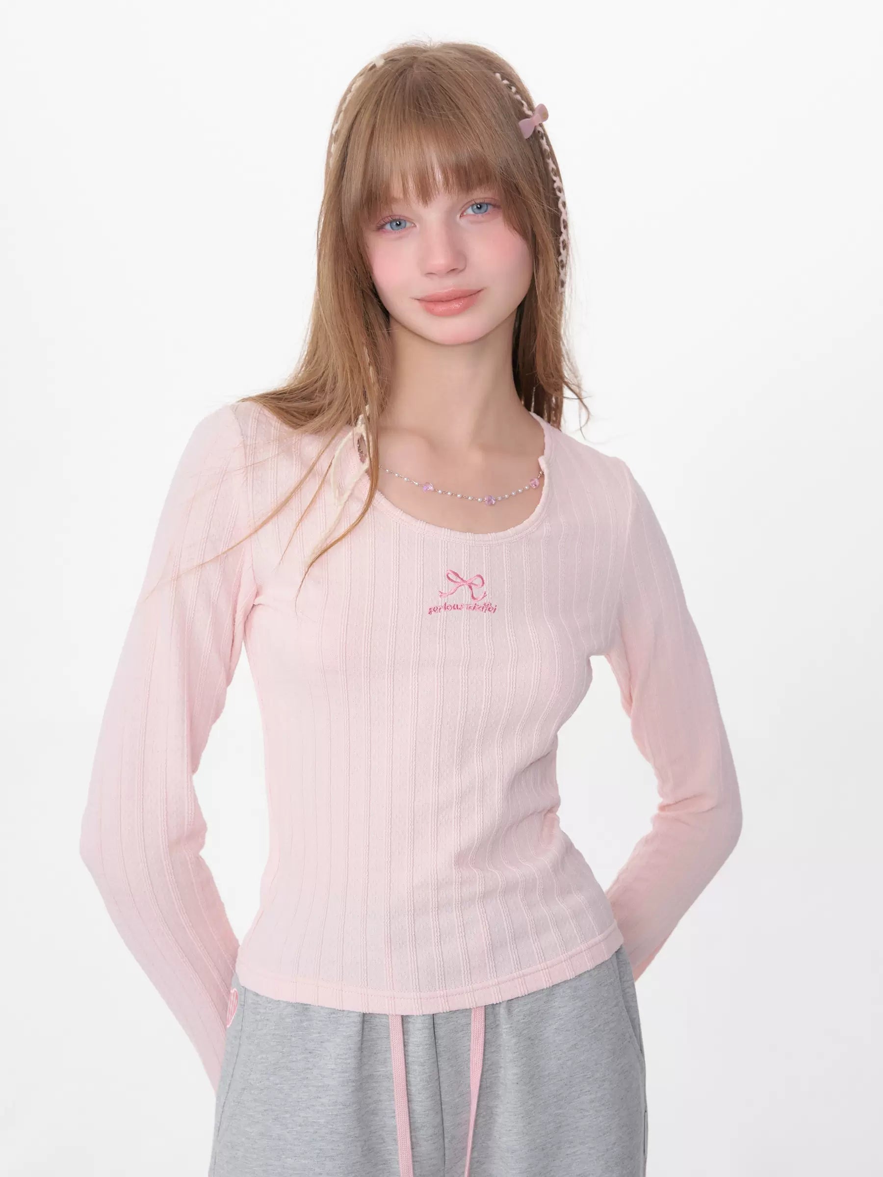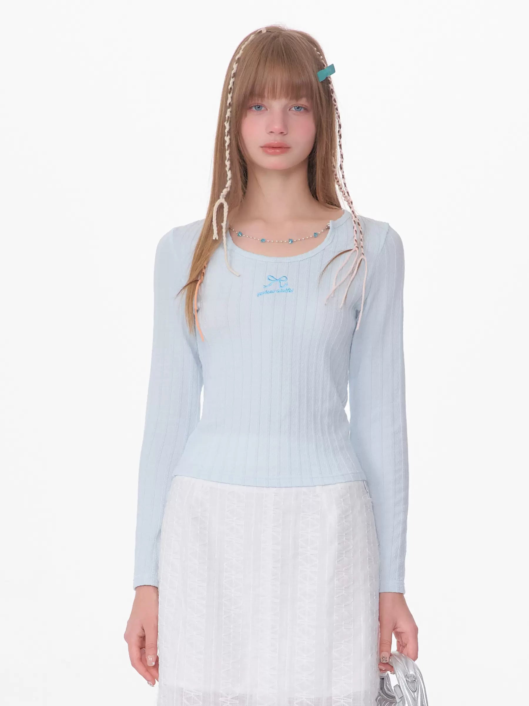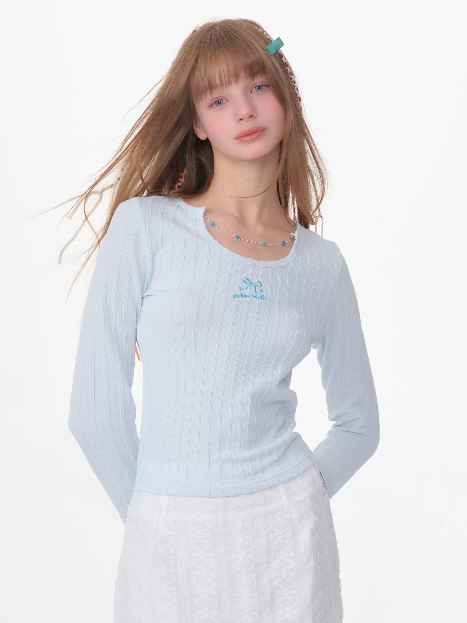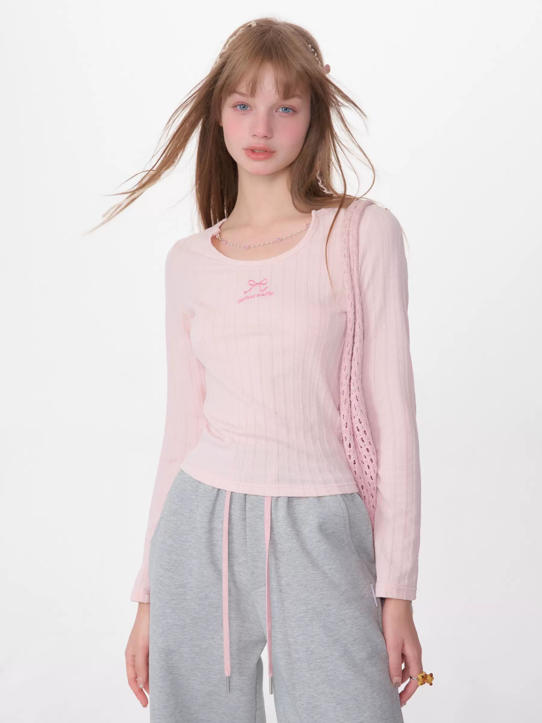Slim Fit Chain Long Sleeve Top | Retro Knitted Design for Spring/Summer