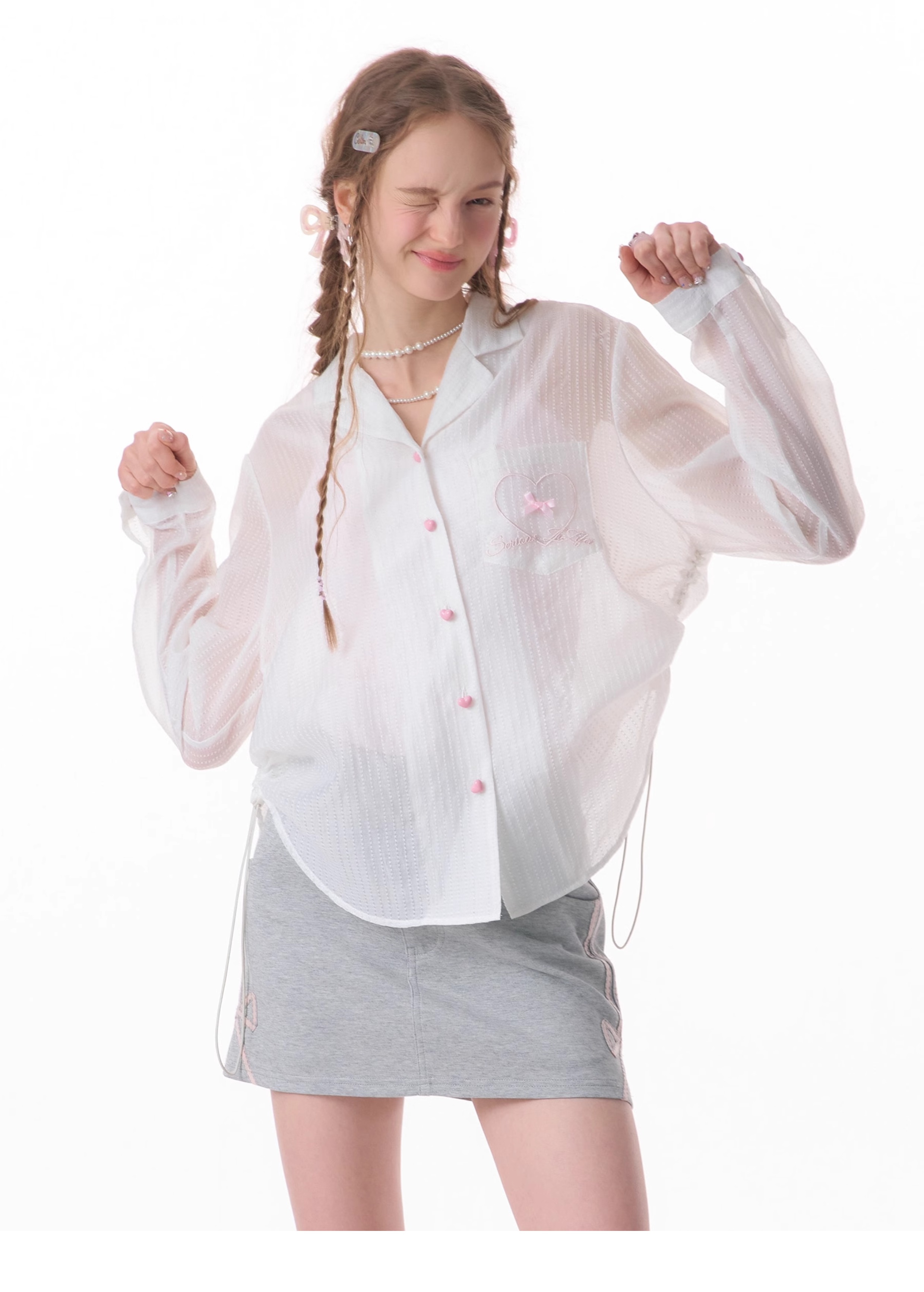 Fine Drawstring Loose Long Sleeve Shirt | High-End Retro Sunscreen Design for Spring/Summer