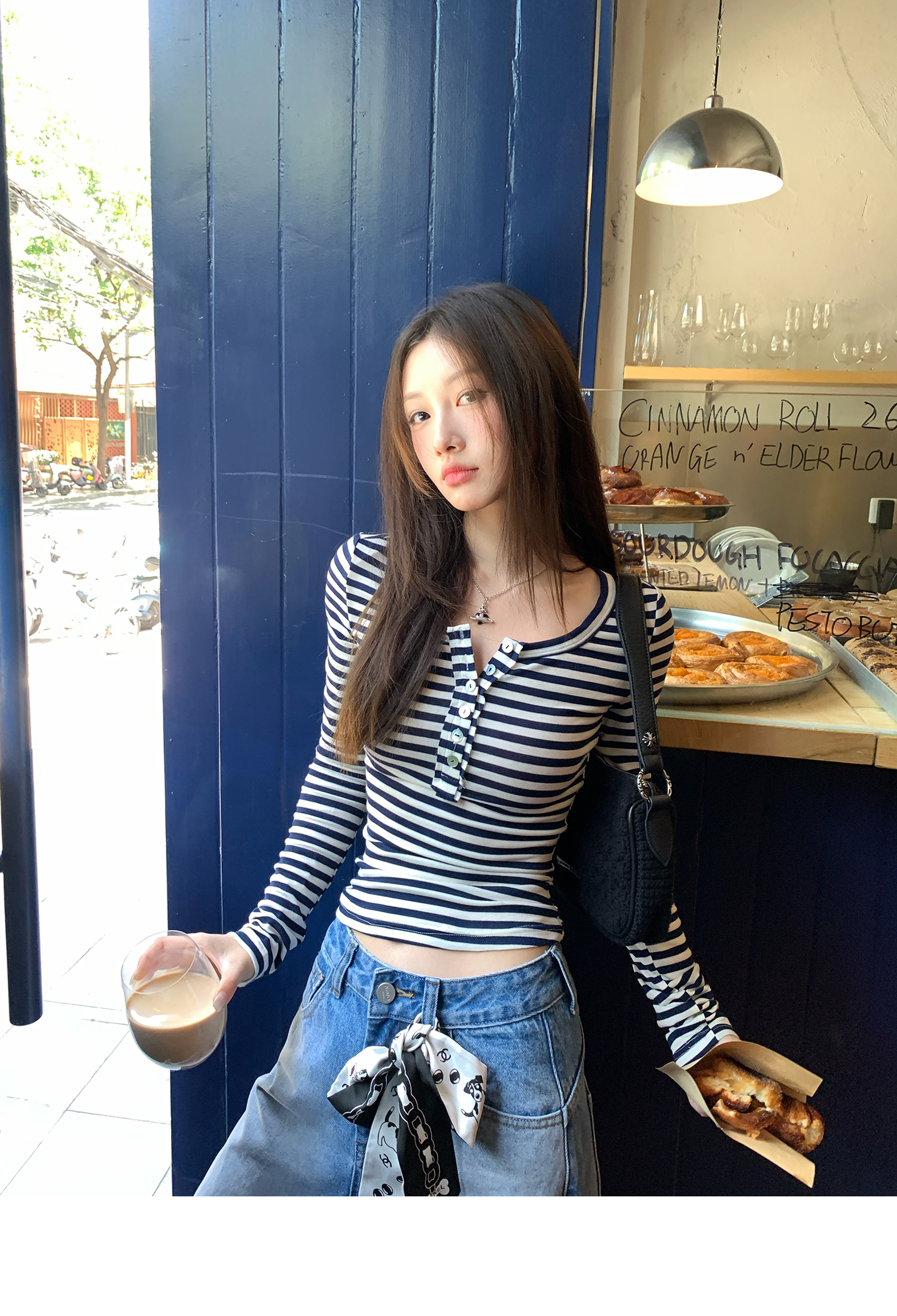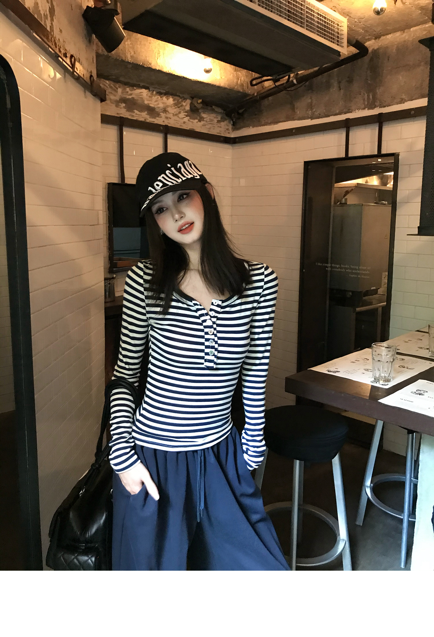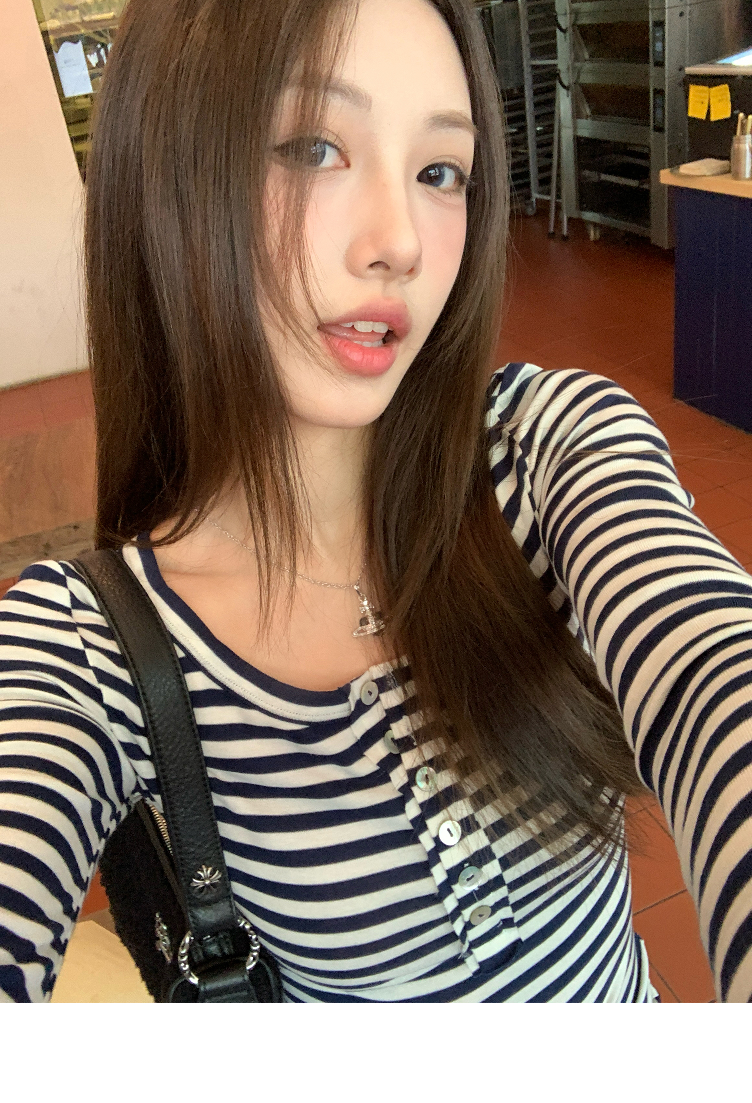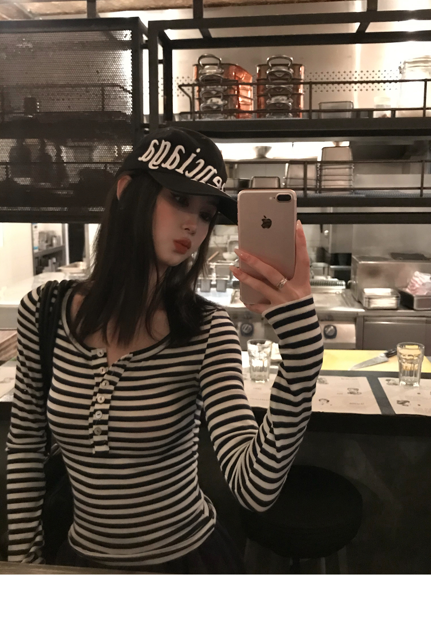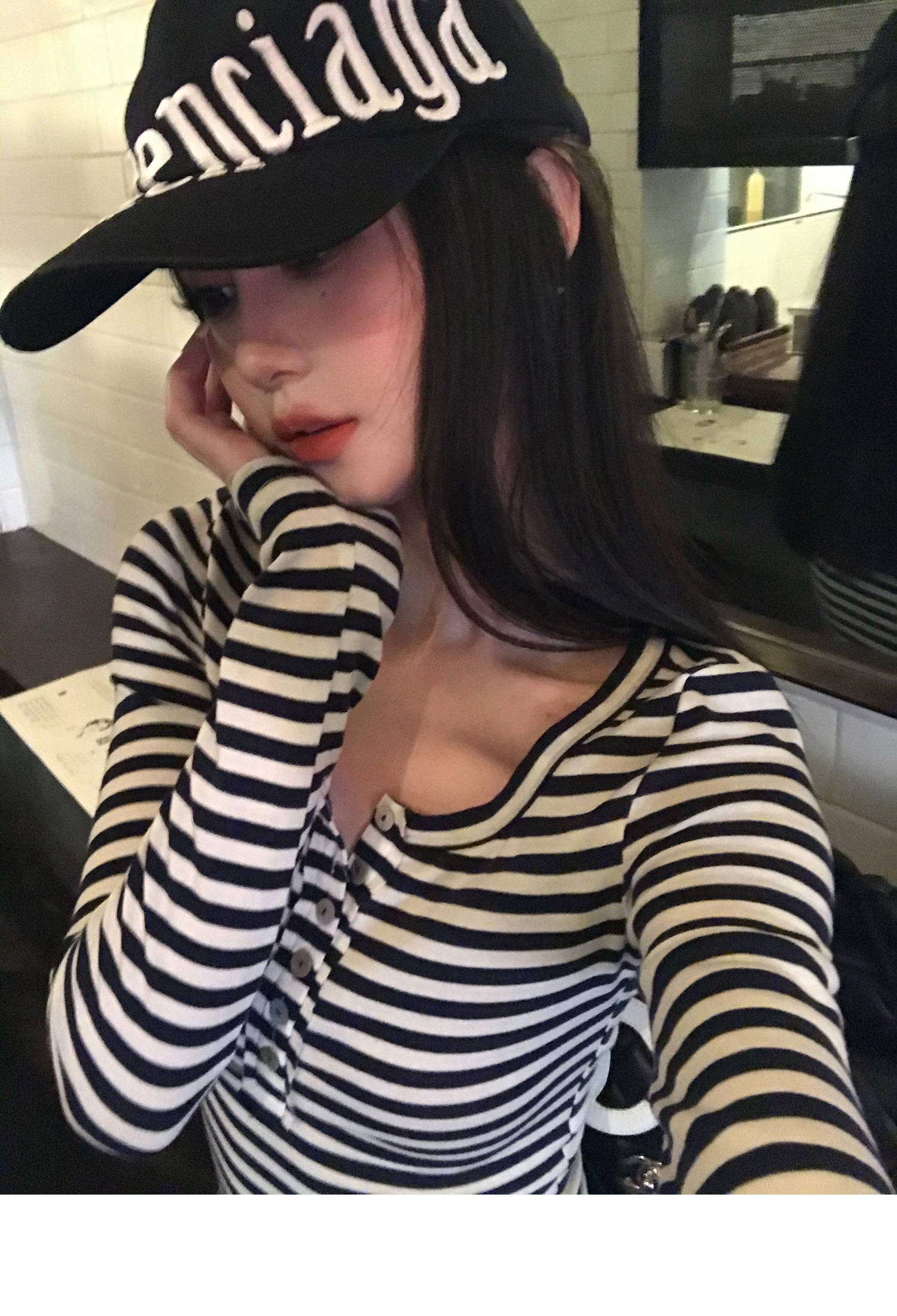 Striped Long-Sleeve T-Shirt - Early Autumn Slim-Fit Sweet & Spicy Style
