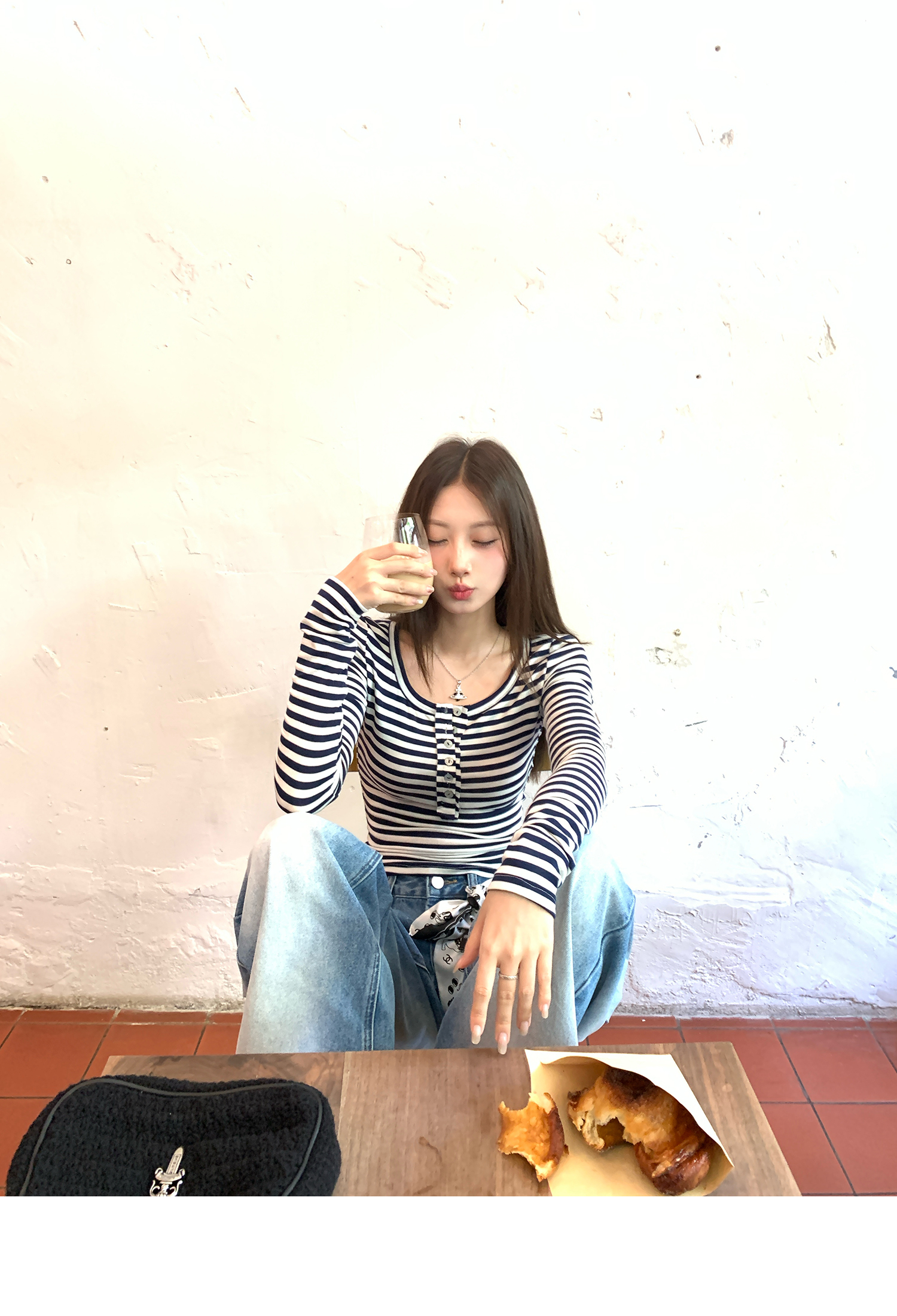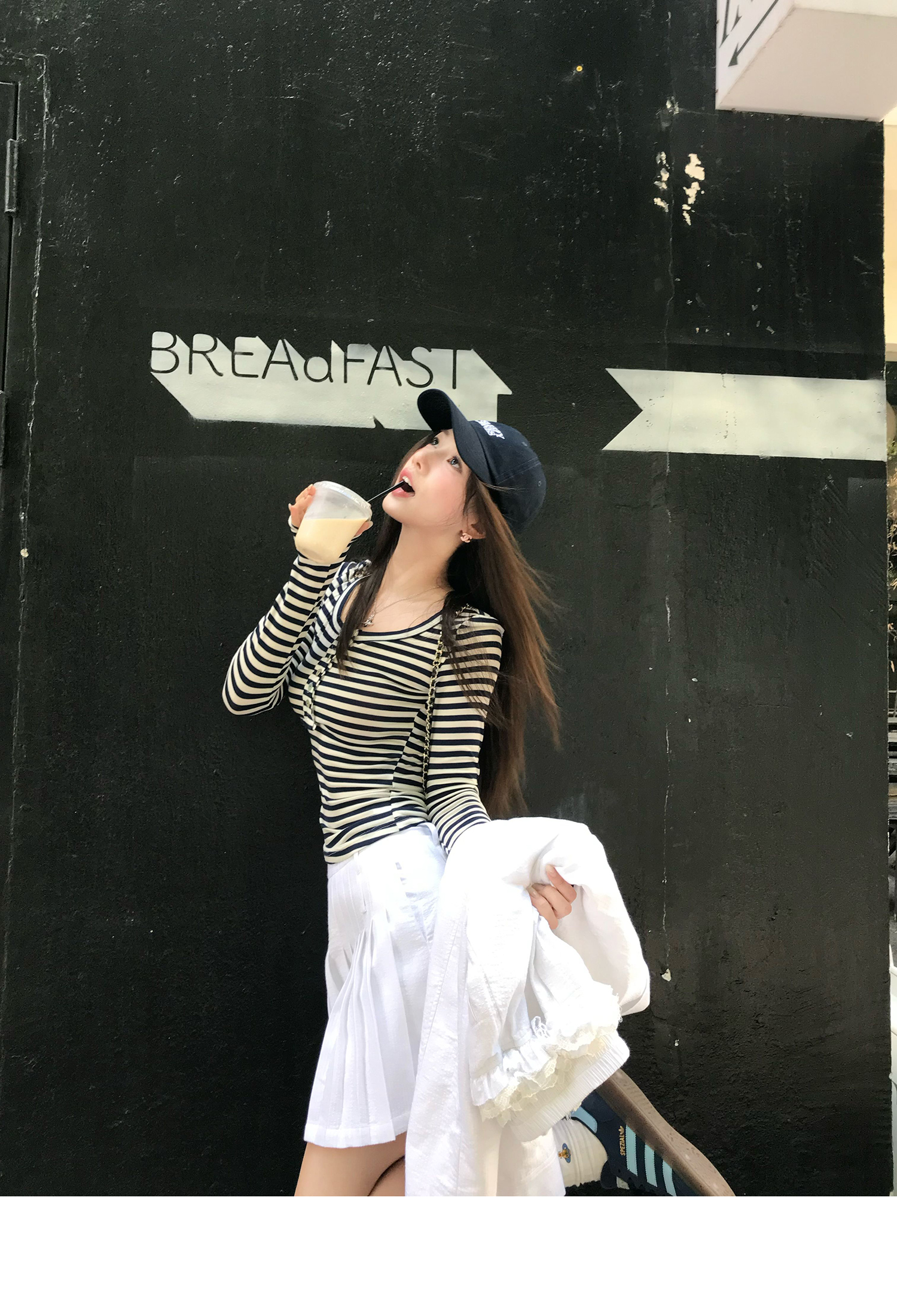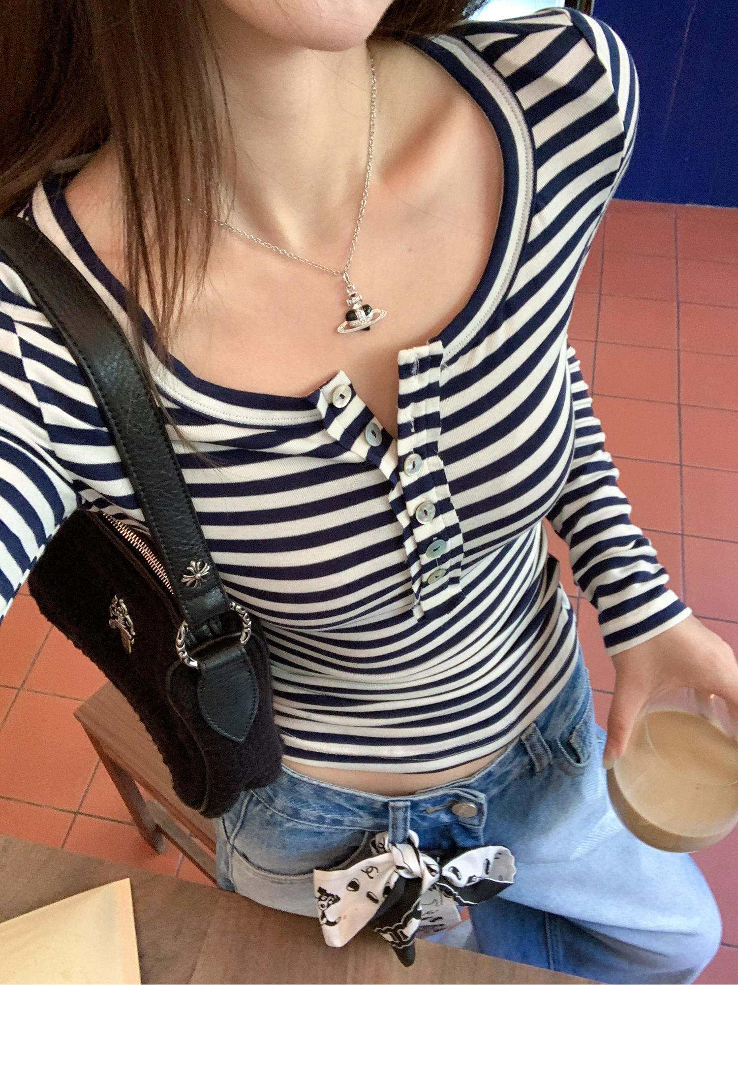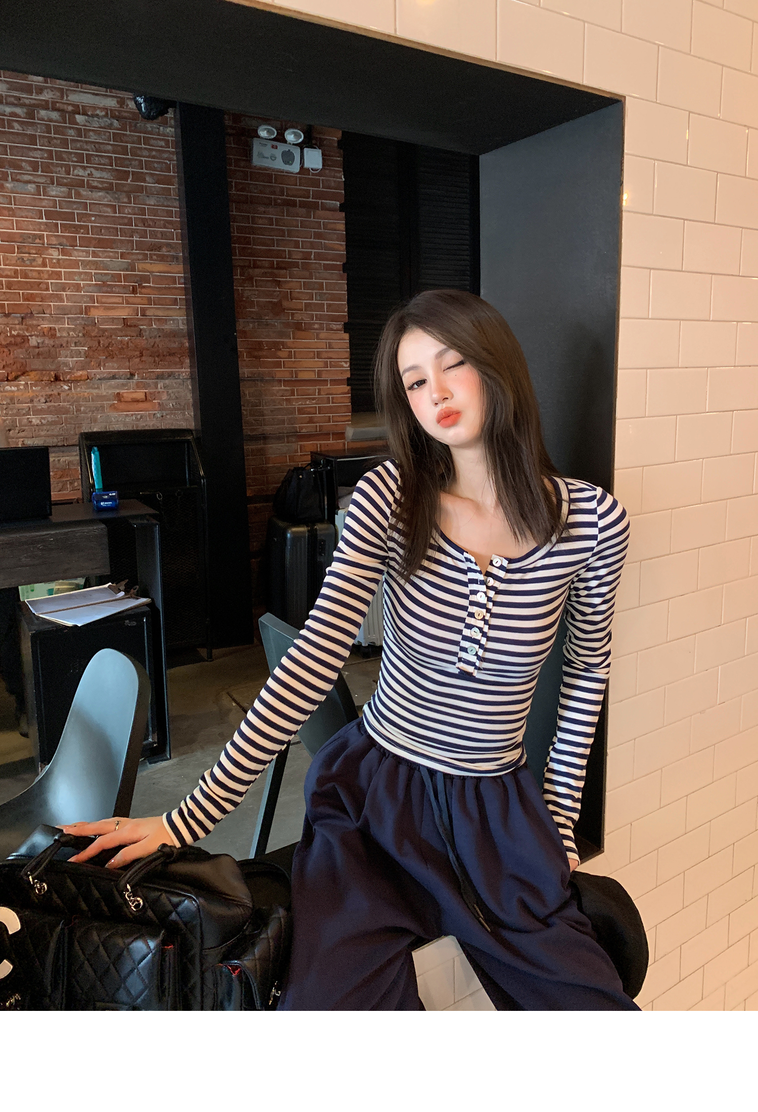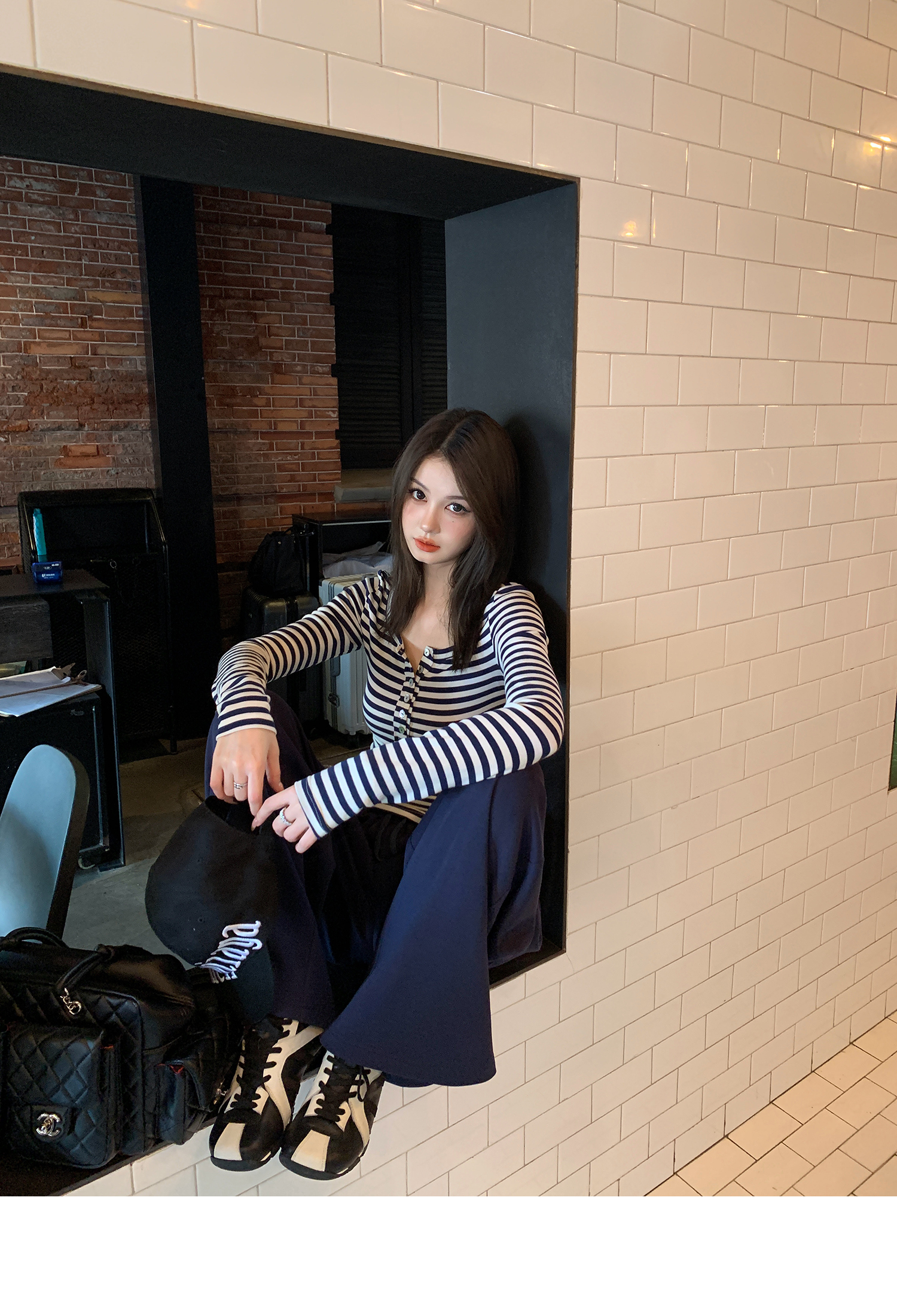 Striped Long-Sleeve T-Shirt - Early Autumn Slim-Fit Sweet & Spicy Style