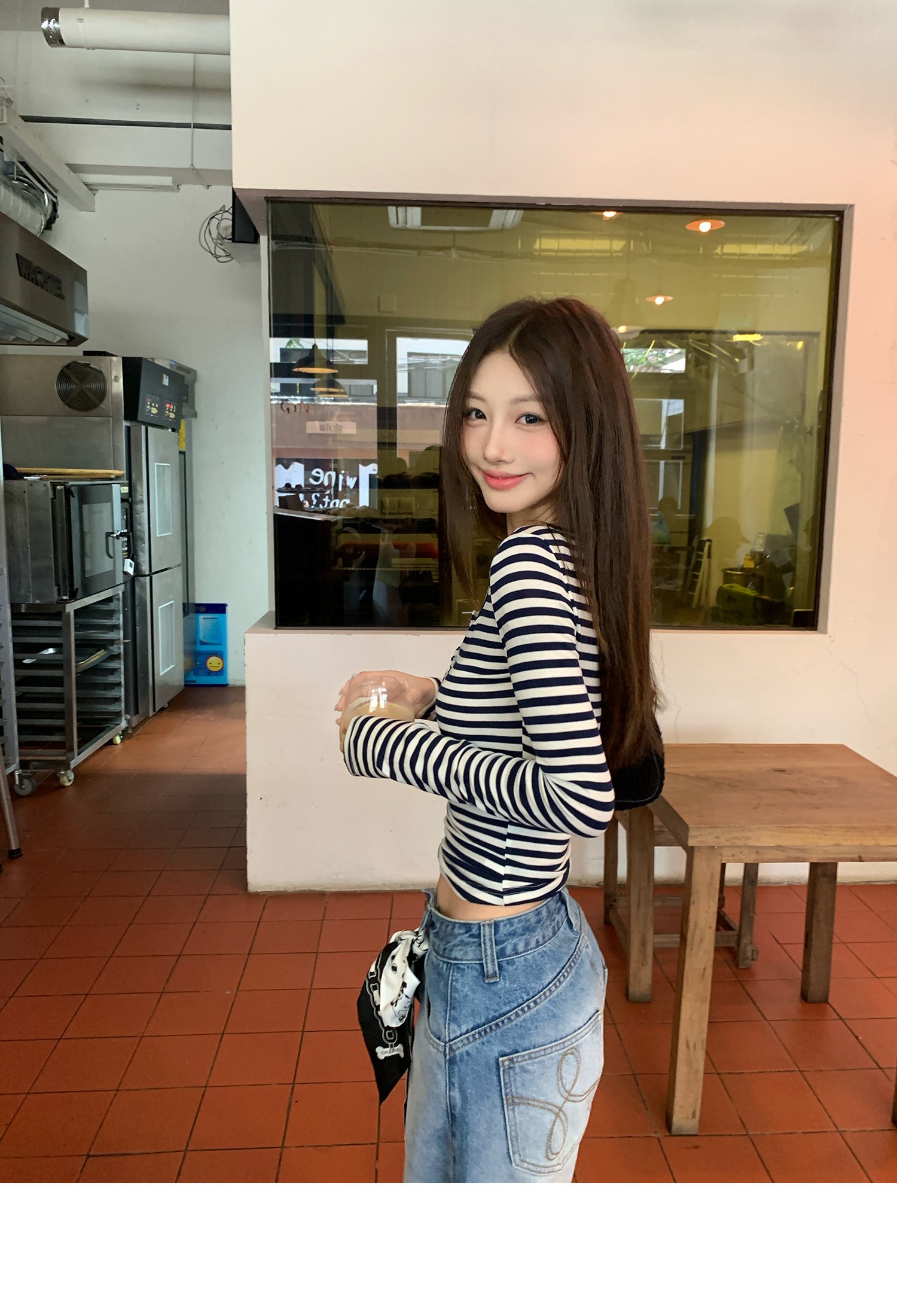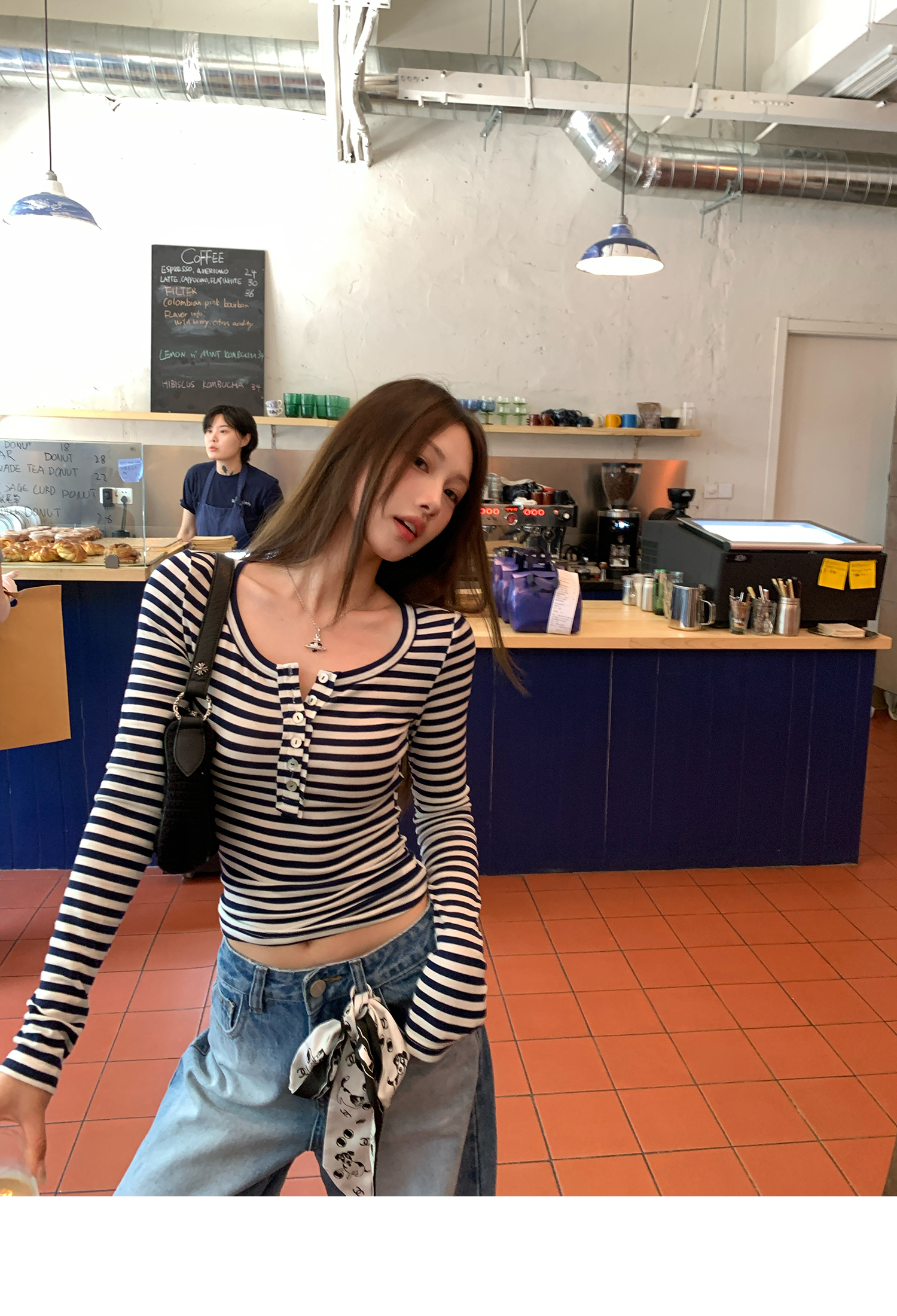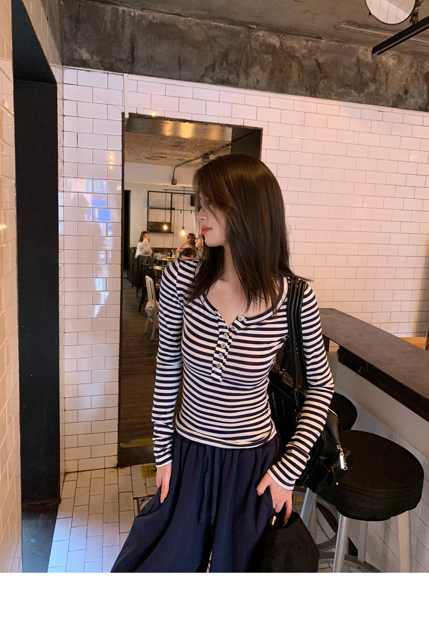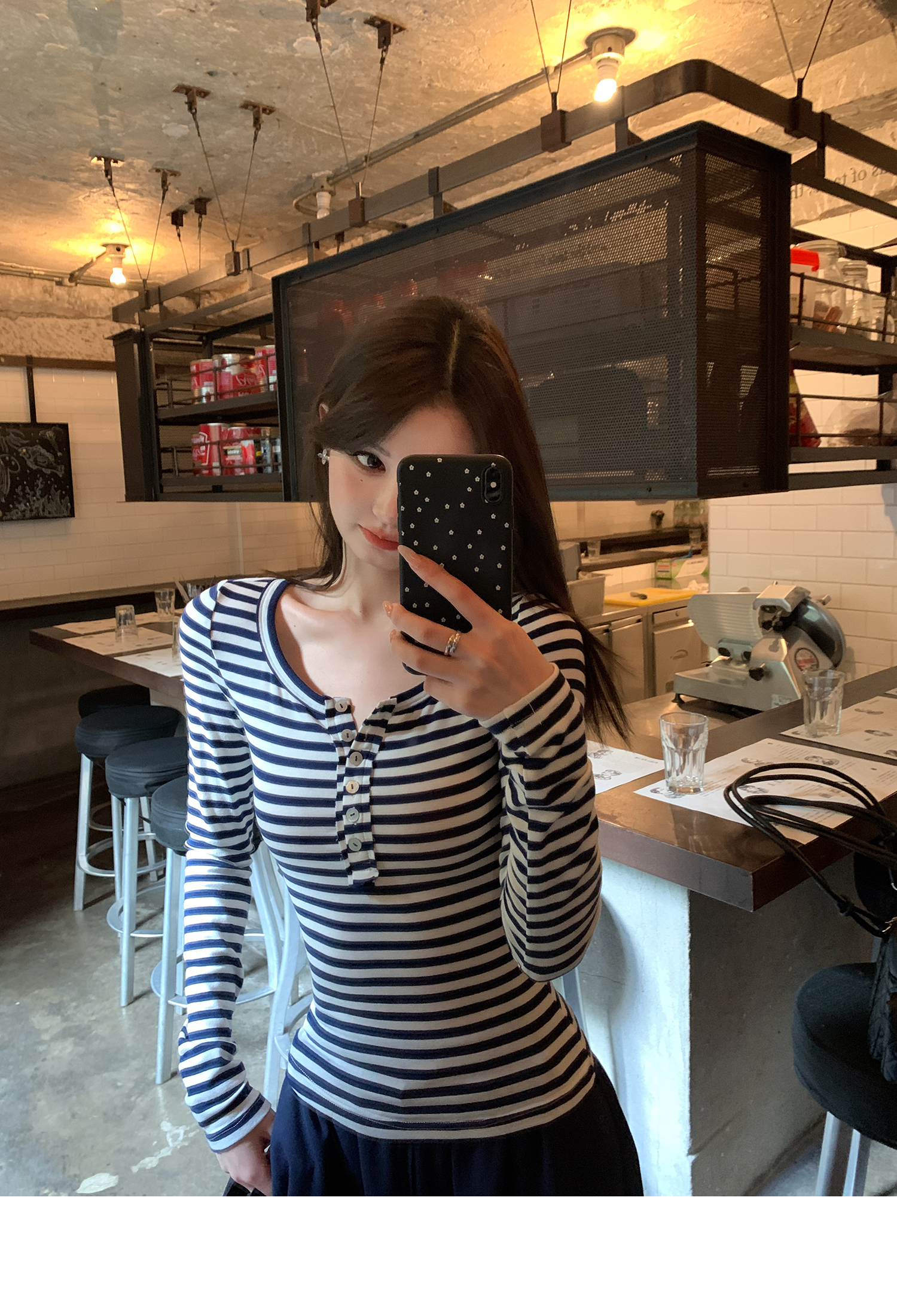 Striped Long-Sleeve T-Shirt - Early Autumn Slim-Fit Sweet & Spicy Style