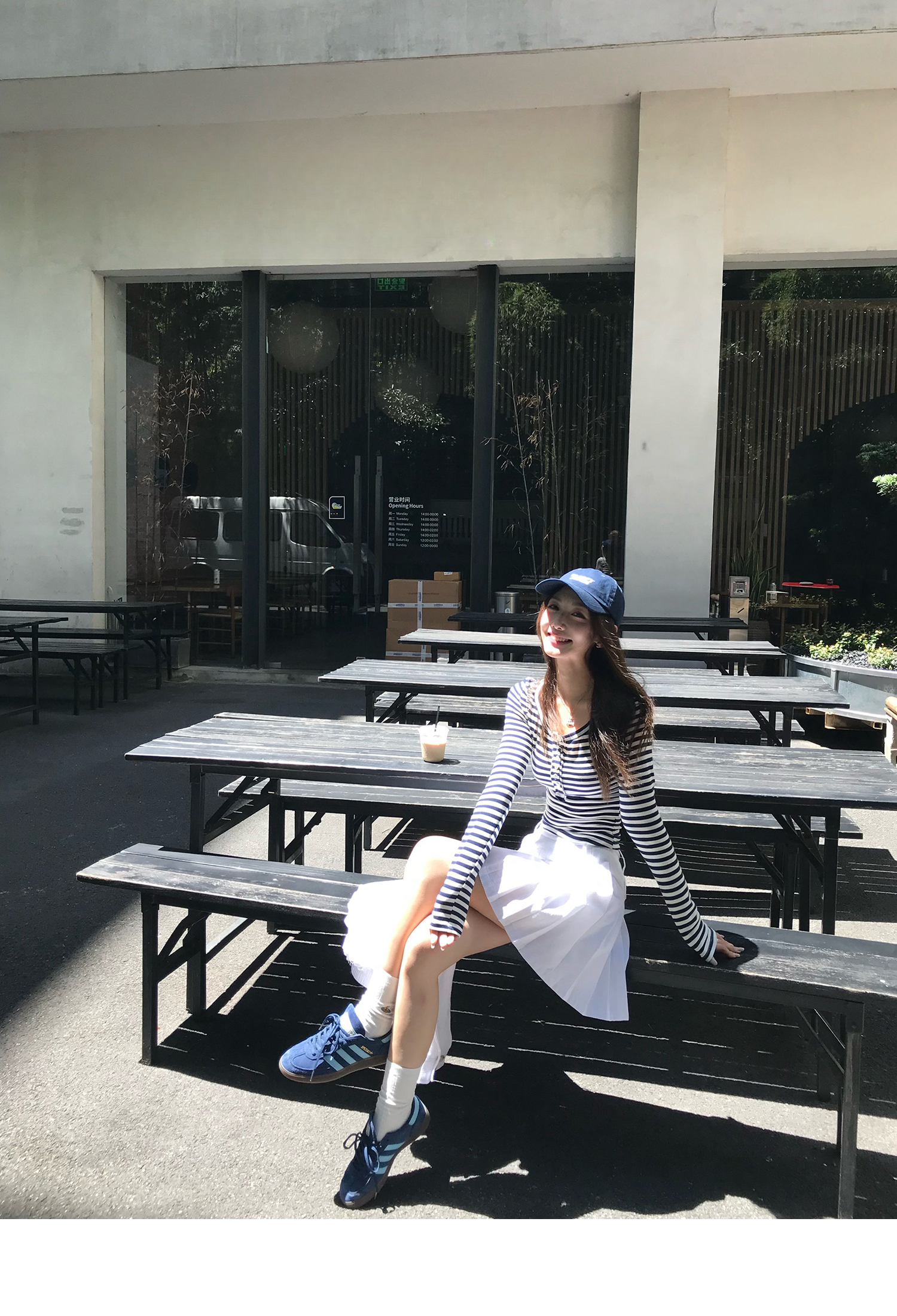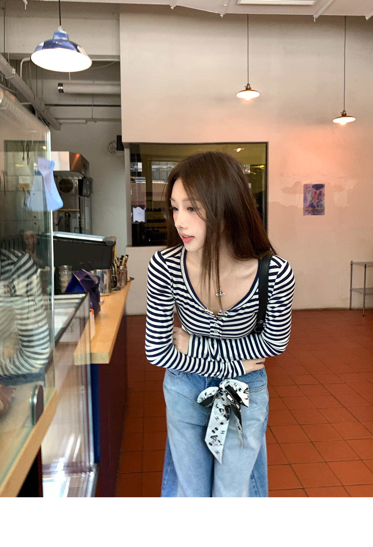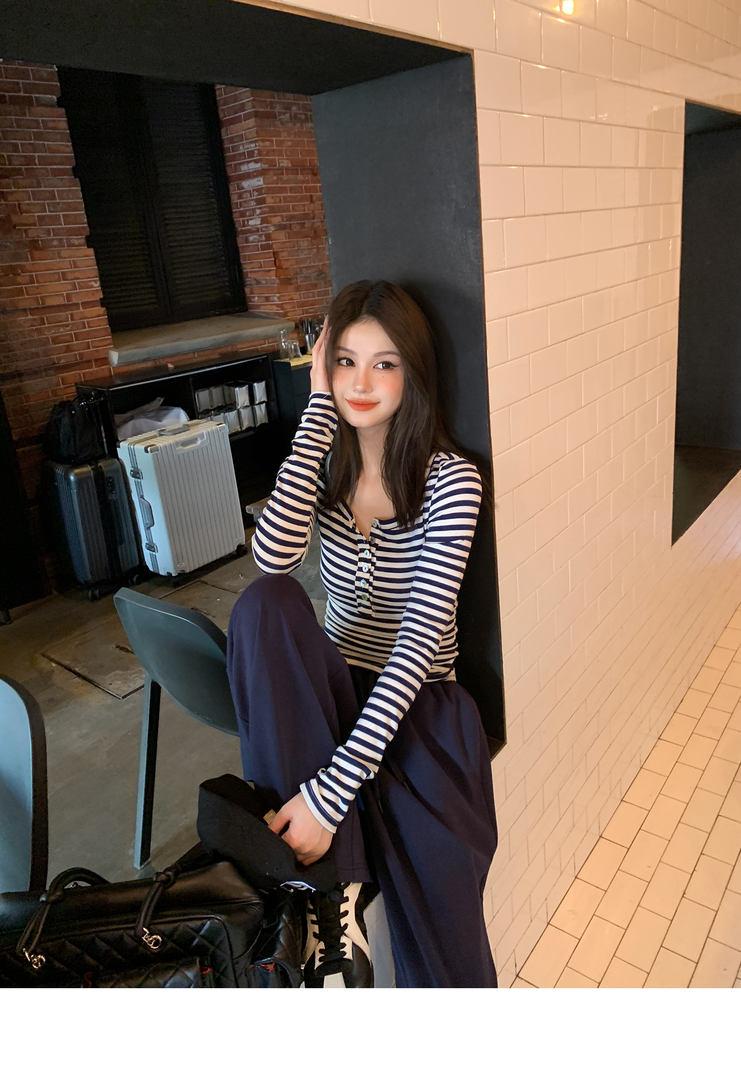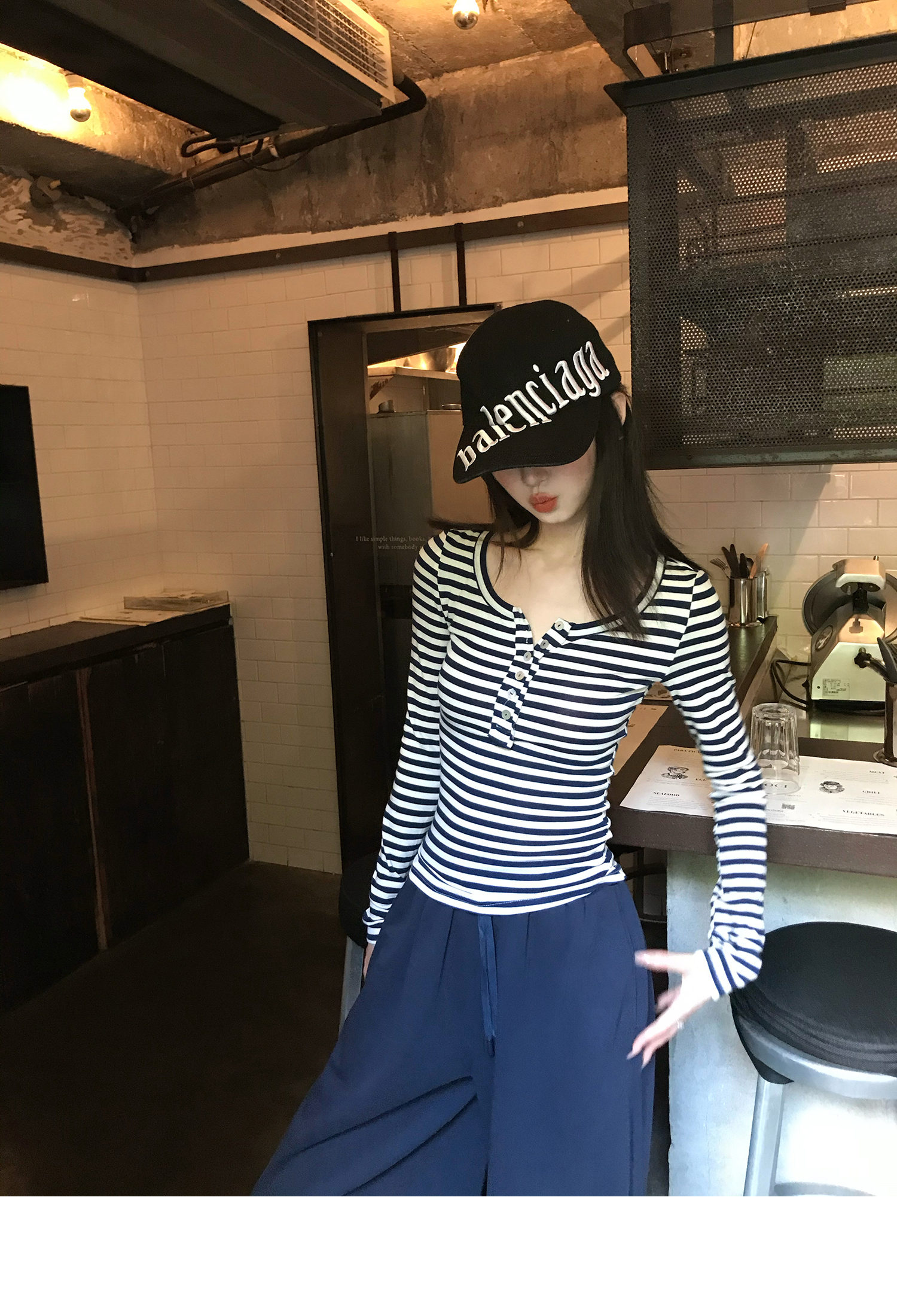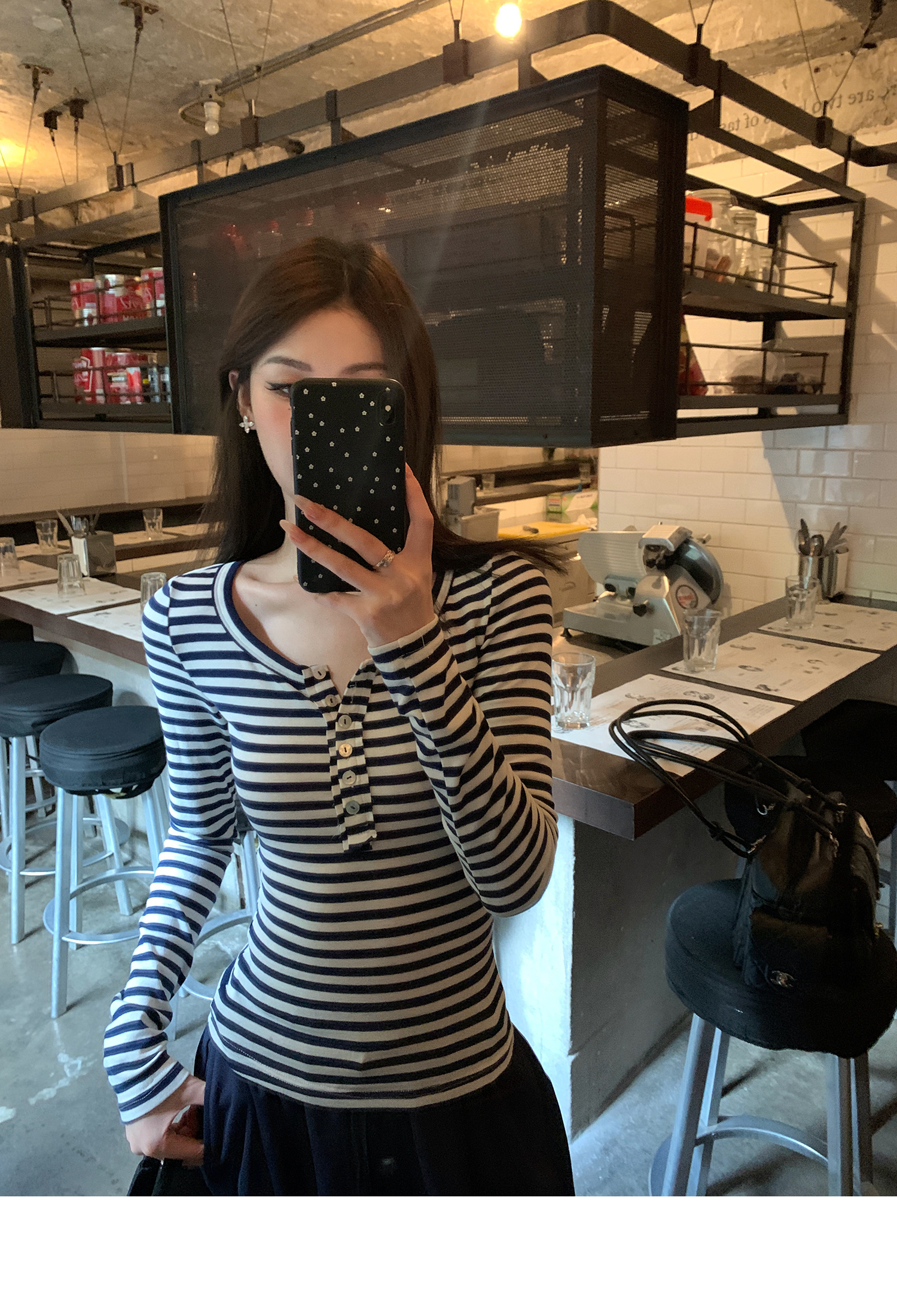 Striped Long-Sleeve T-Shirt - Early Autumn Slim-Fit Sweet & Spicy Style