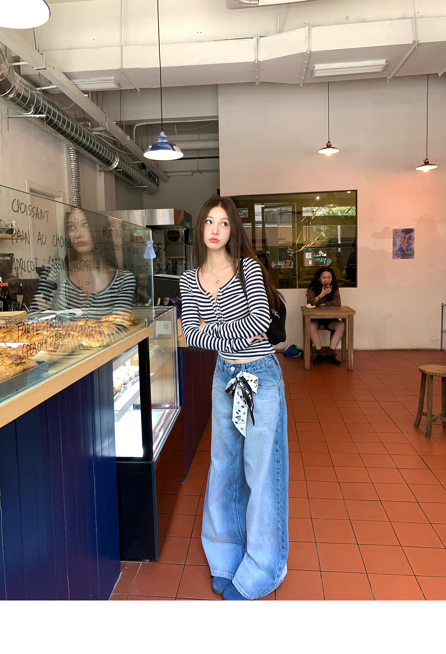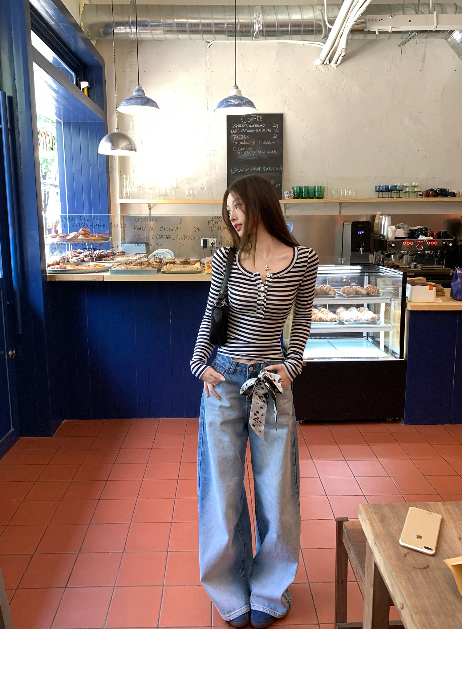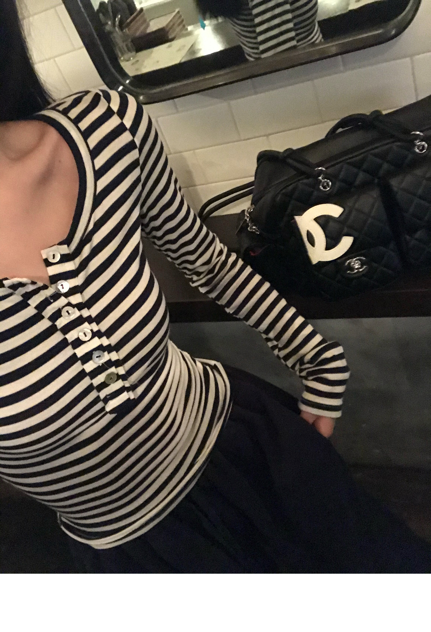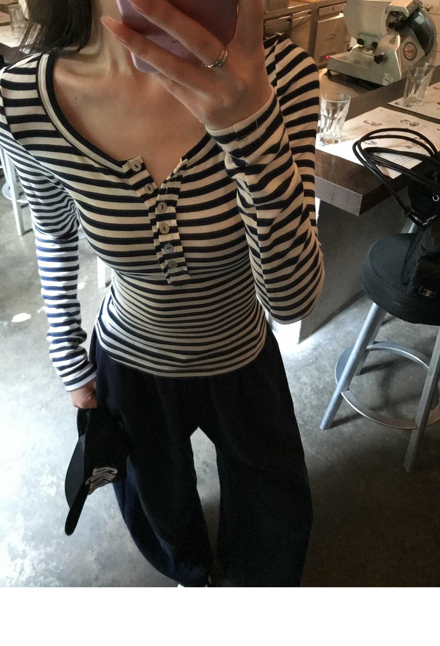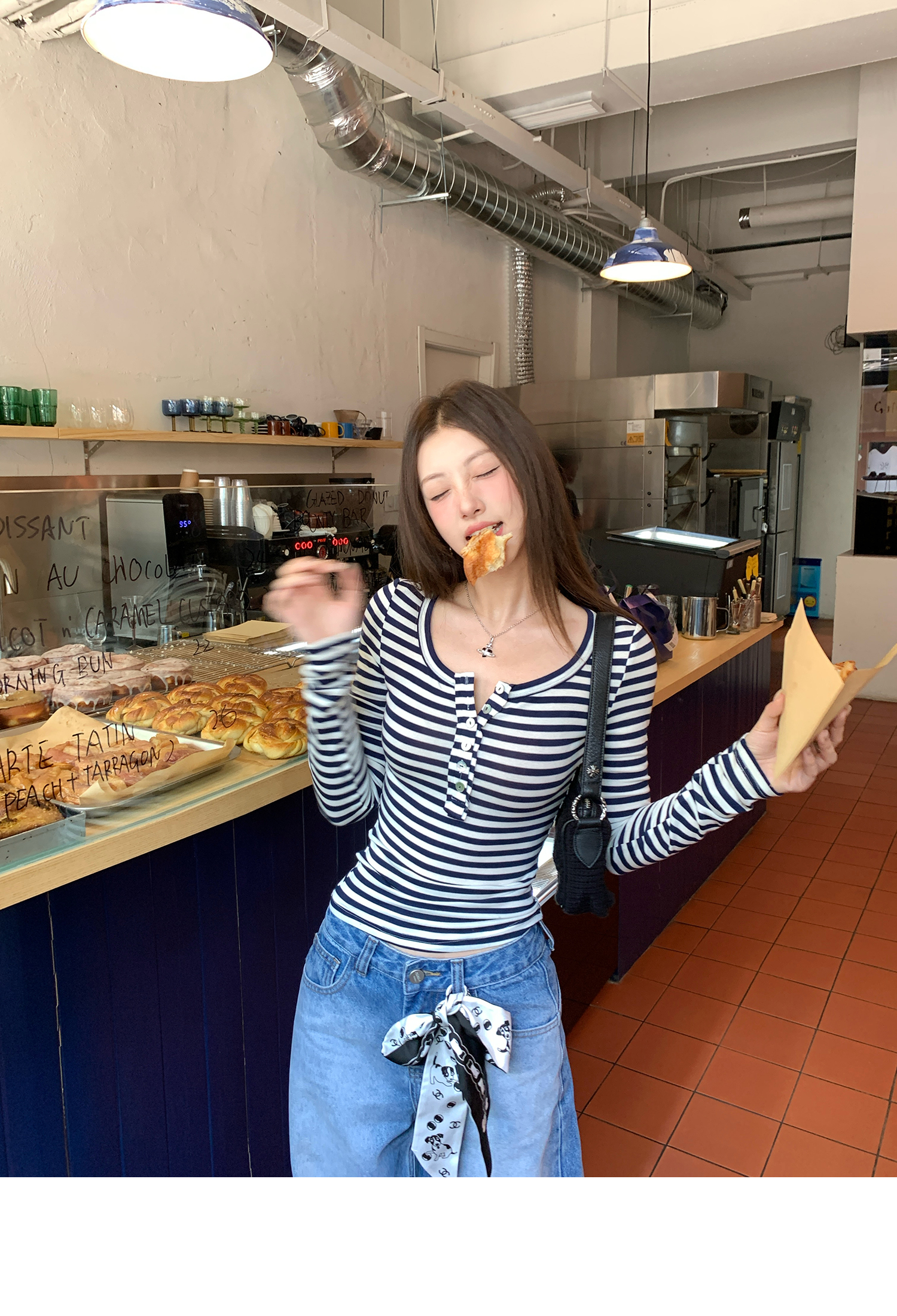 Striped Long-Sleeve T-Shirt - Early Autumn Slim-Fit Sweet & Spicy Style