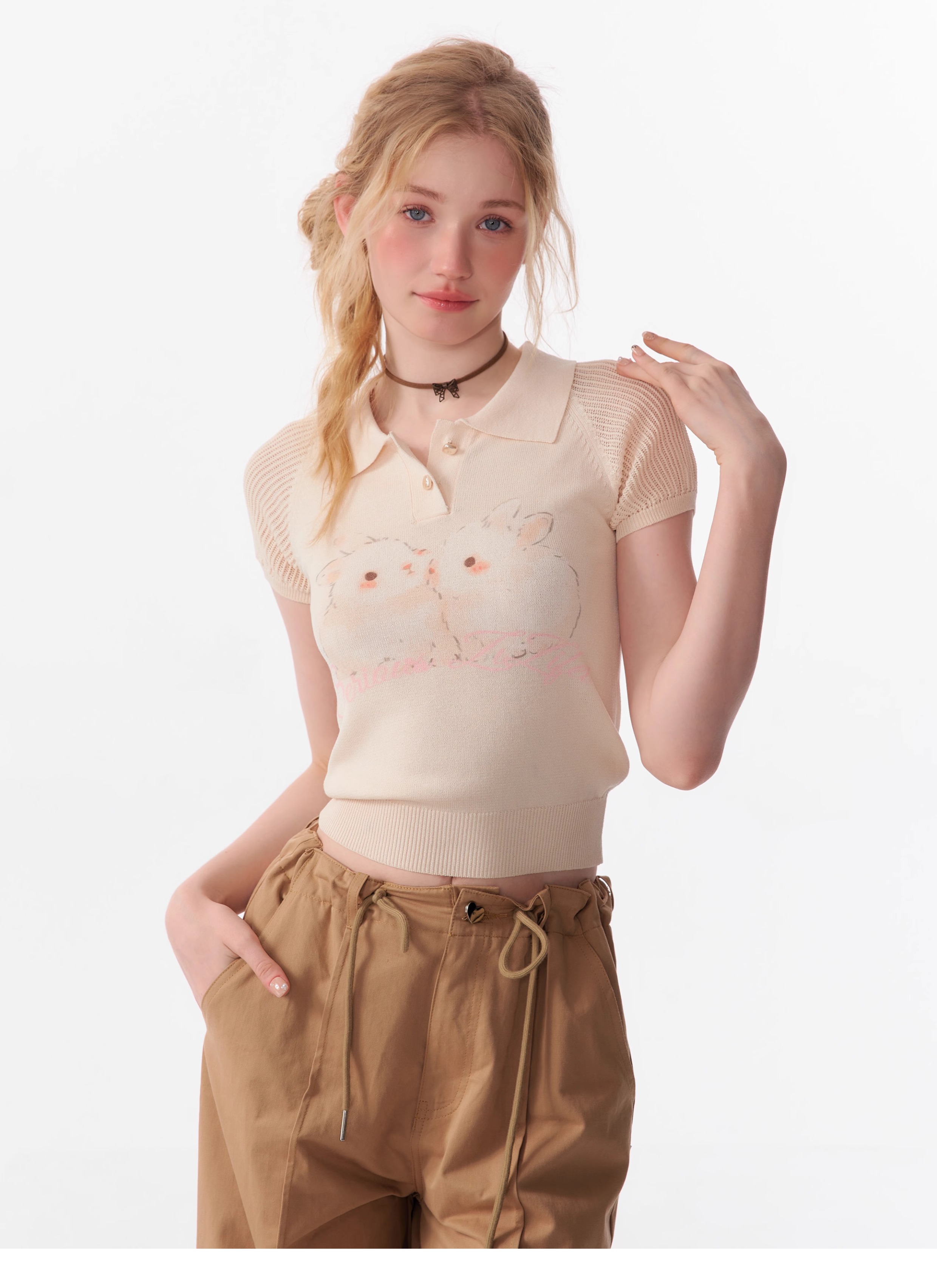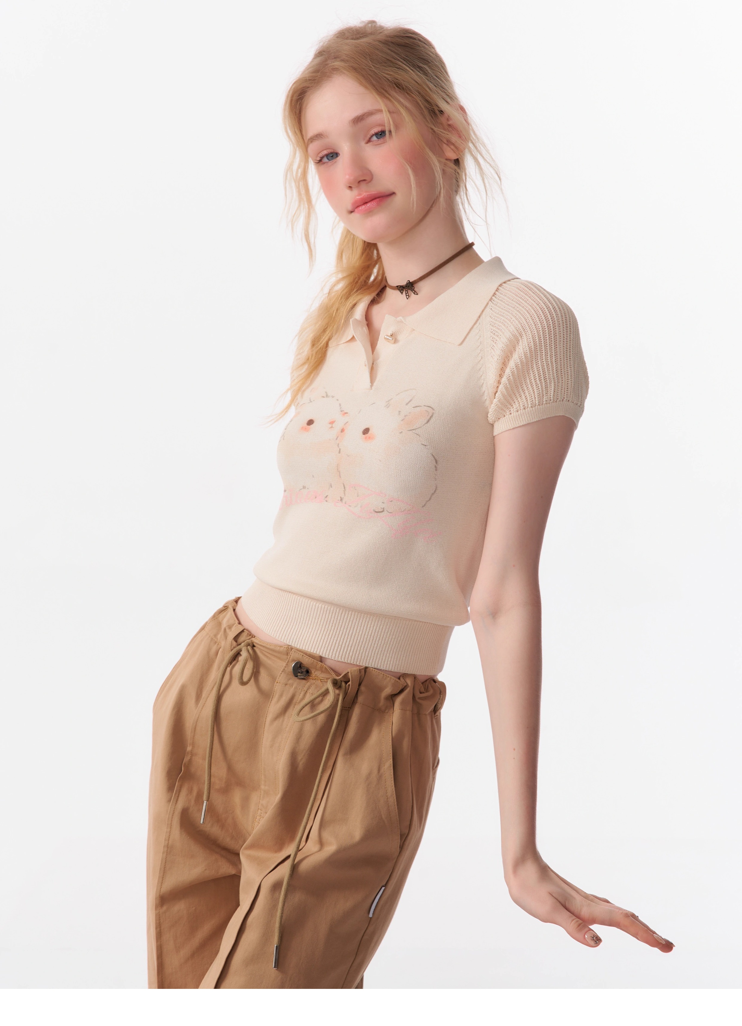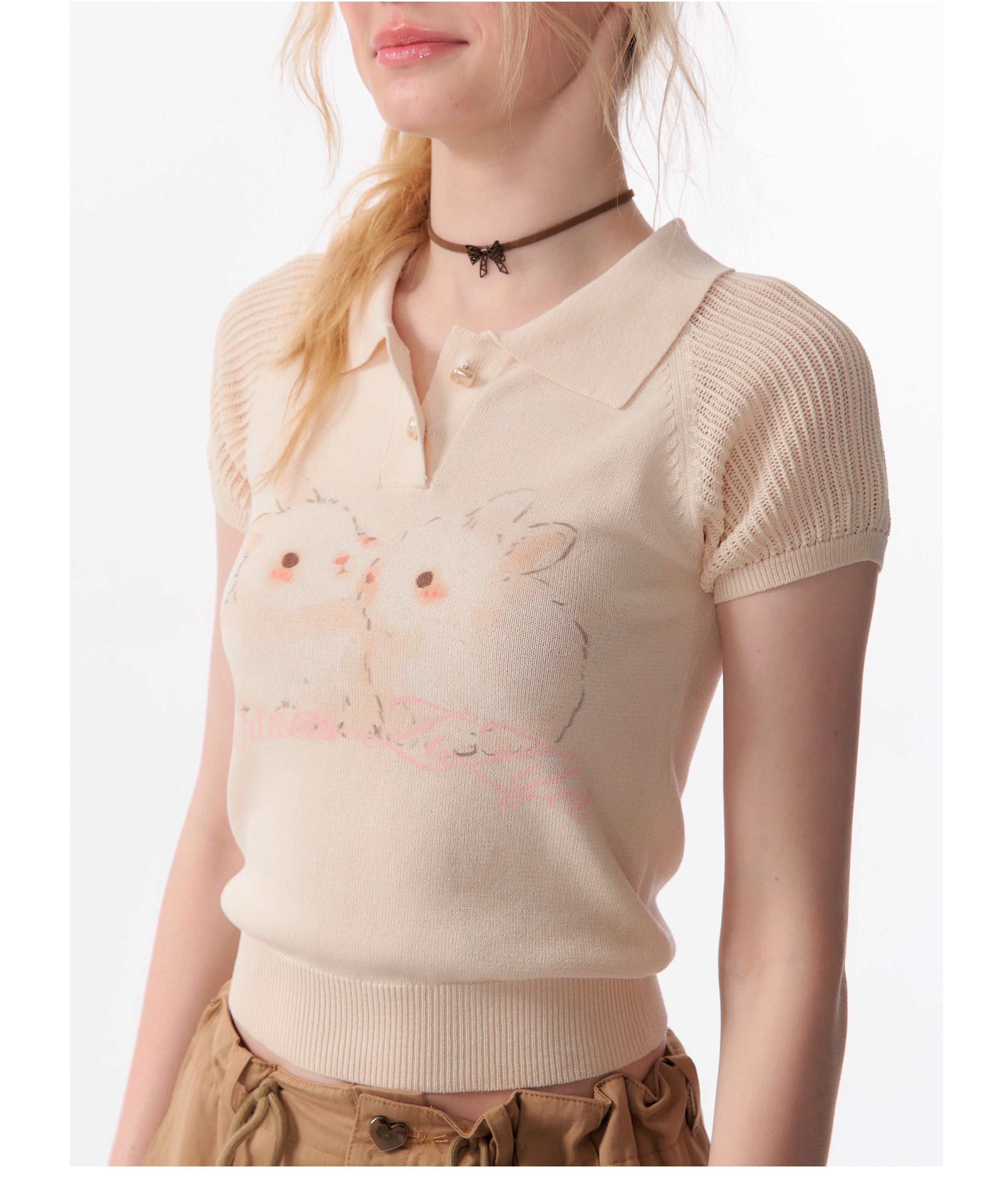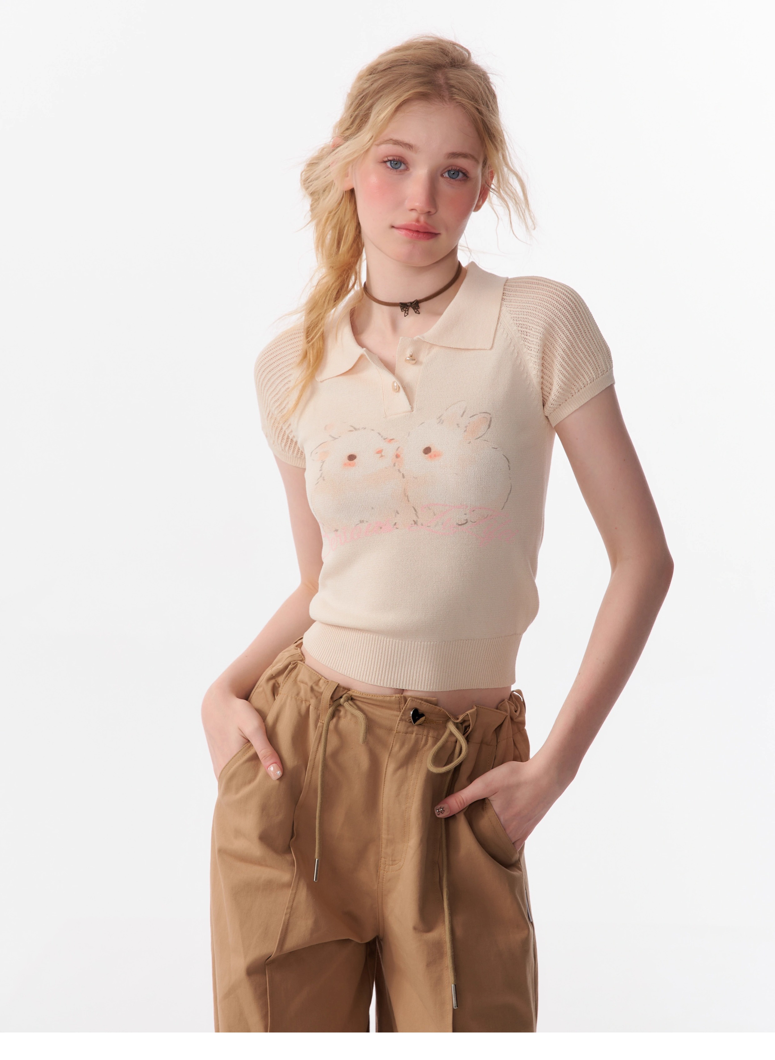 Rabbit Printed Polo T-shirt | Hollow Half Sleeve Retro Design for Summer