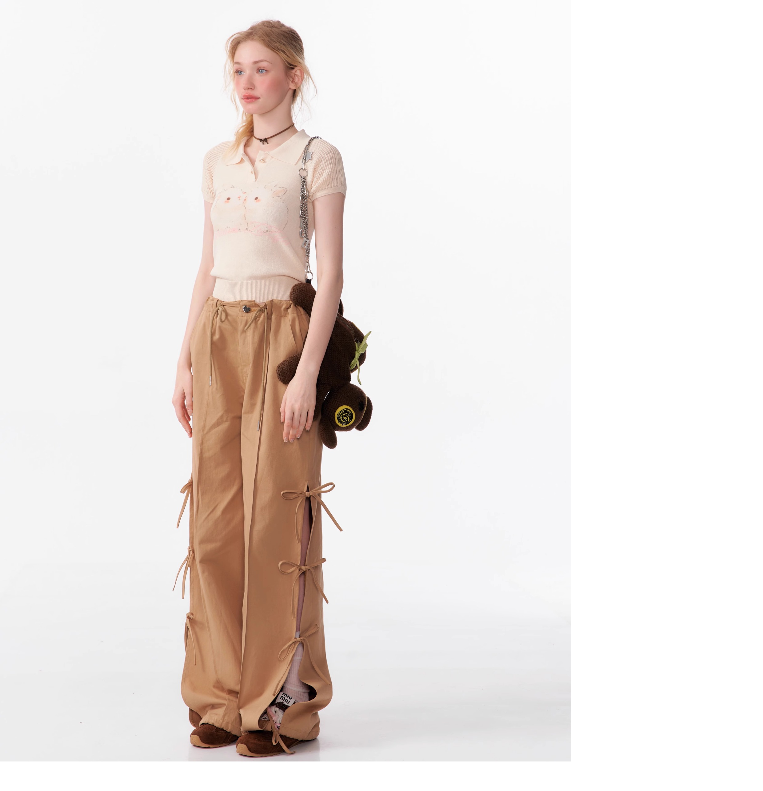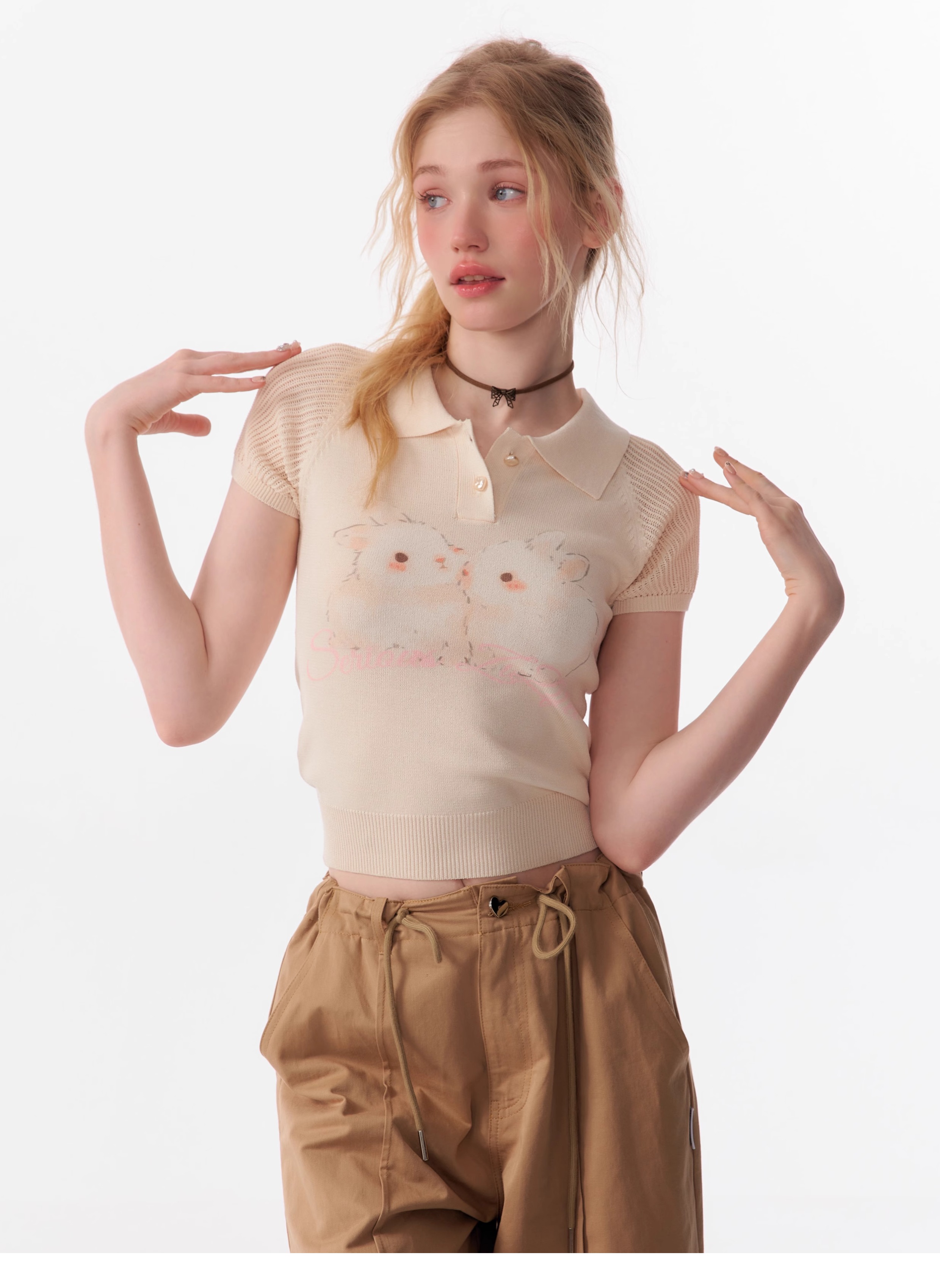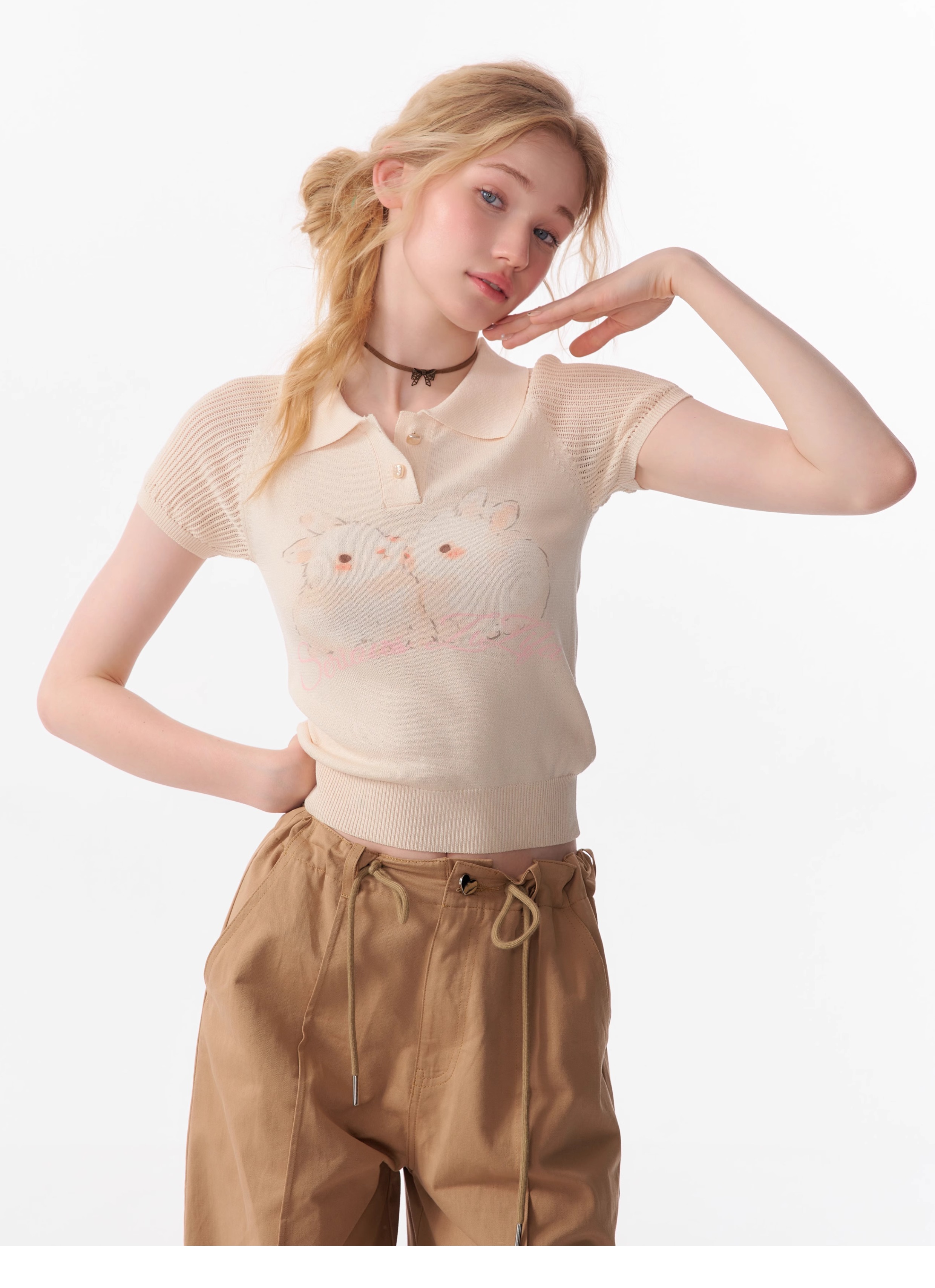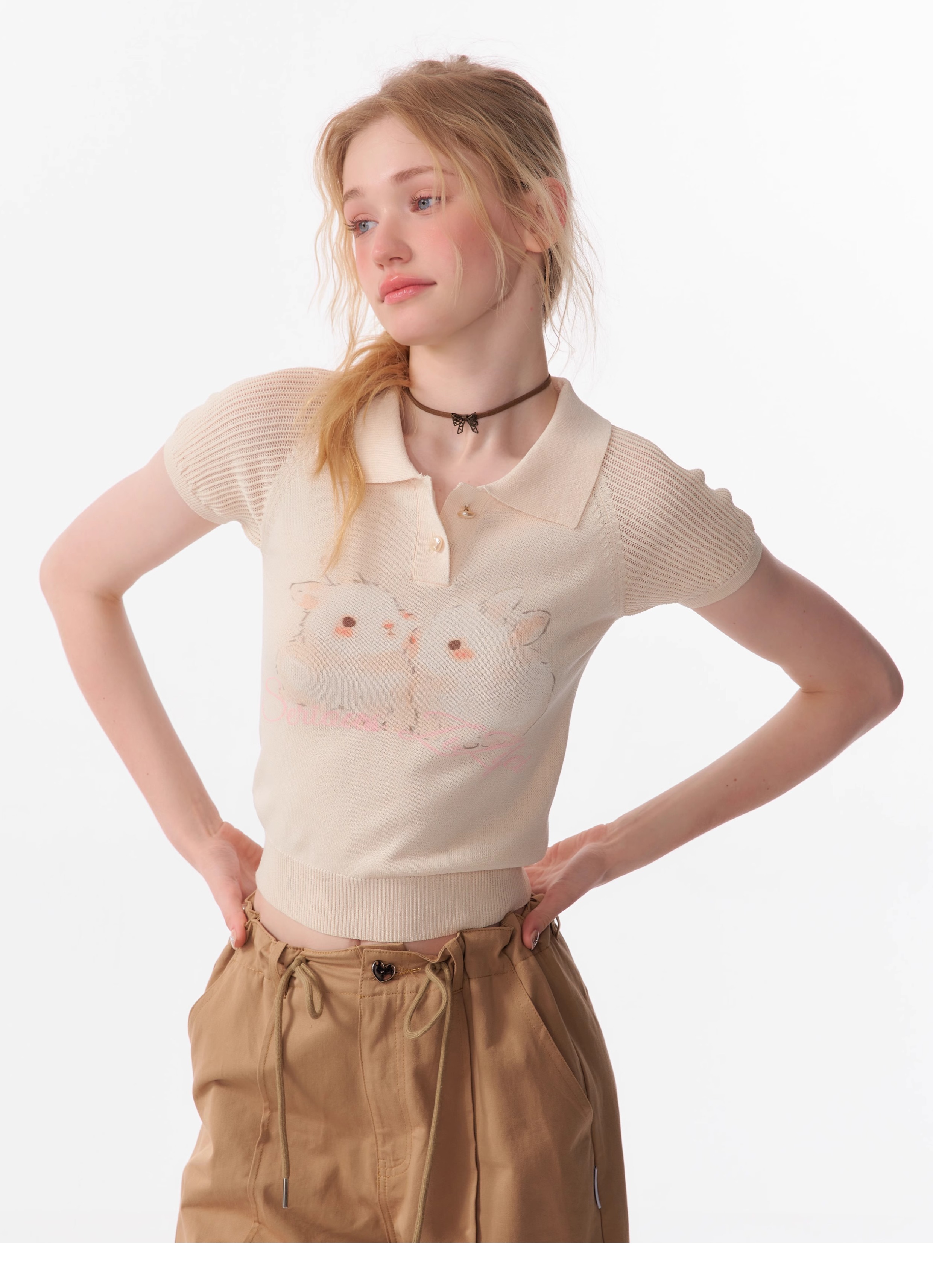 Rabbit Printed Polo T-shirt | Hollow Half Sleeve Retro Design for Summer