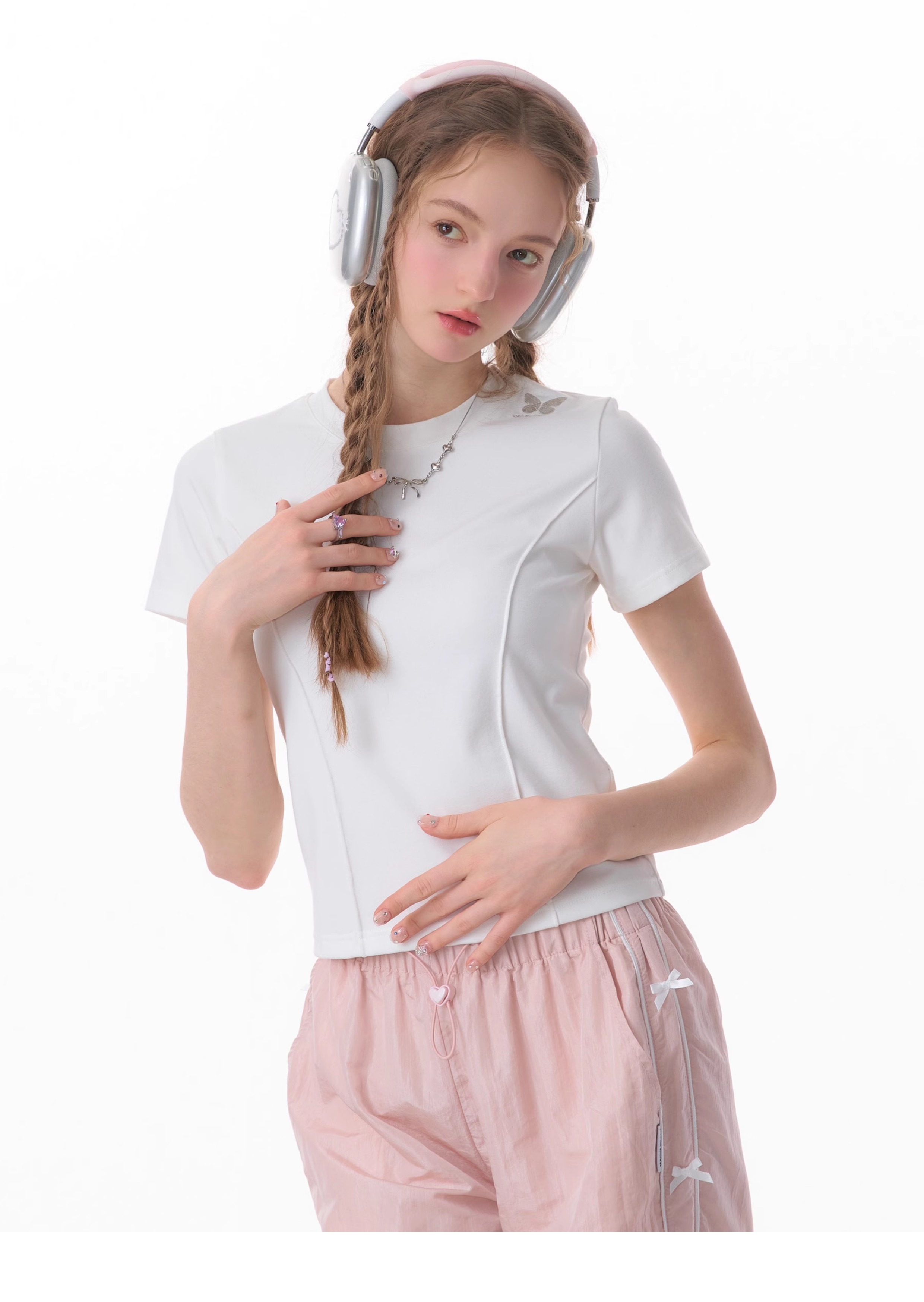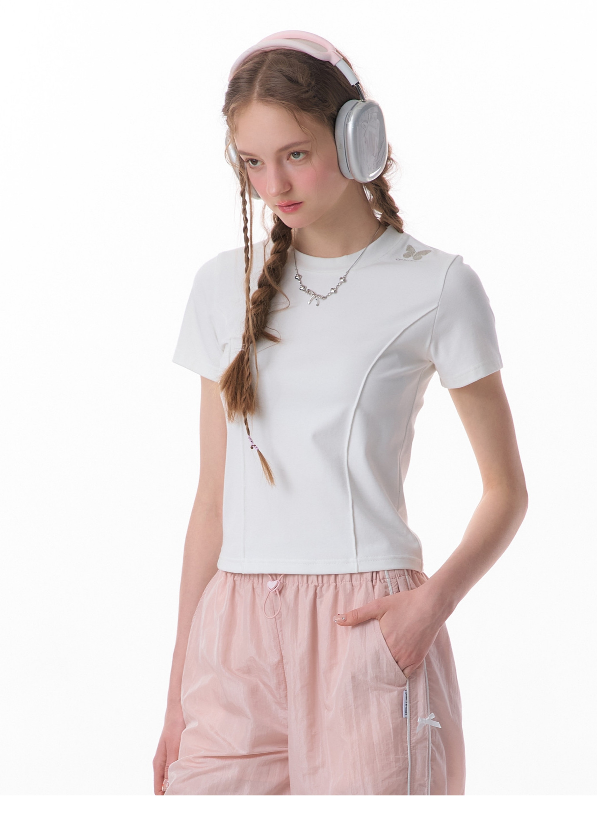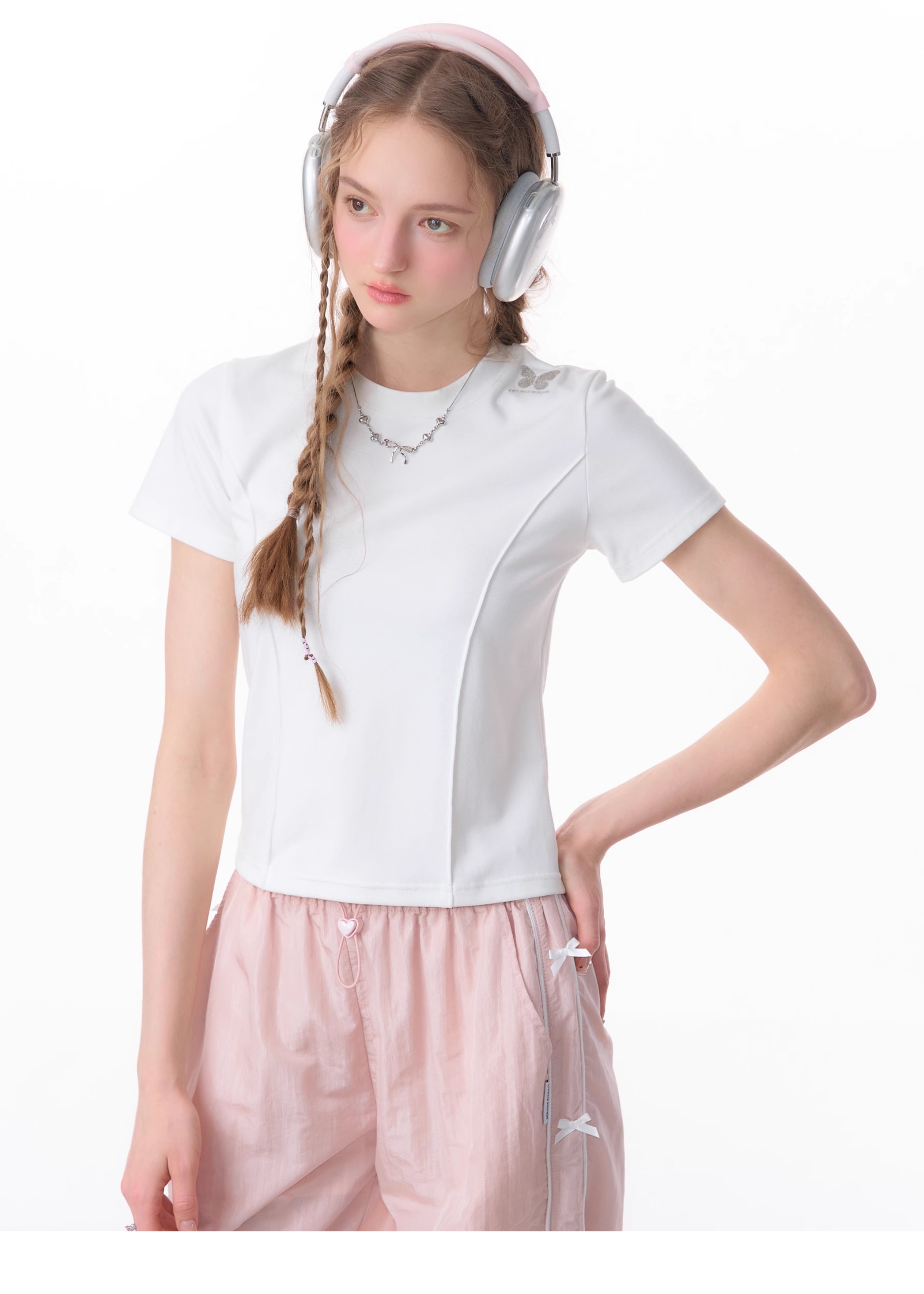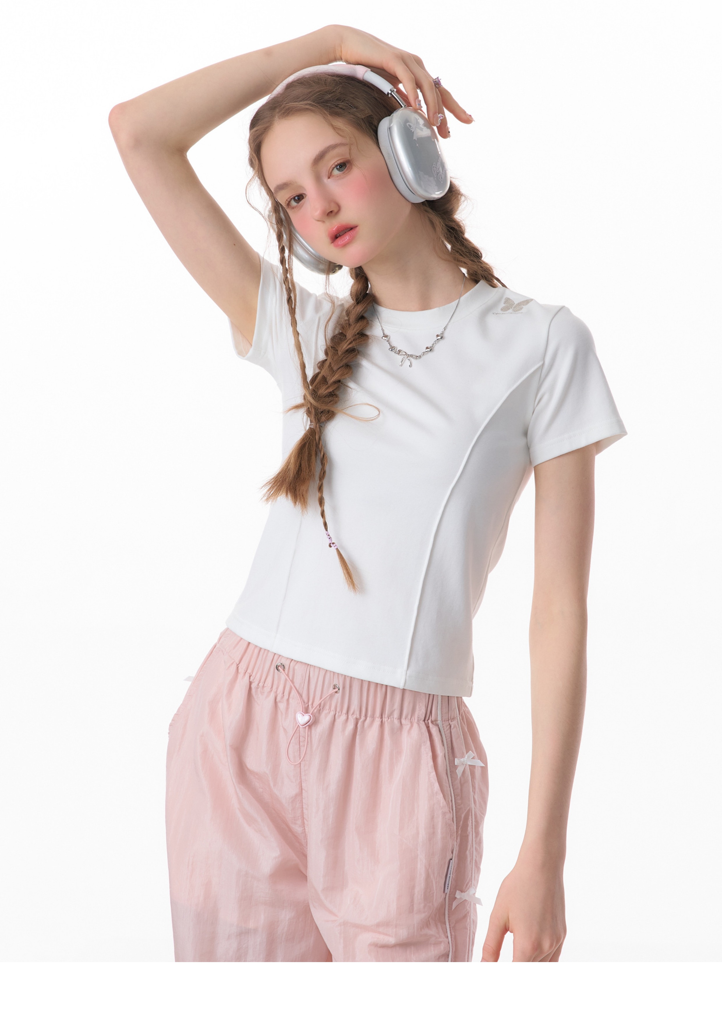 Butterfly Embroidered Right Shoulder T-shirt | Slim Fit Retro Design for Summer