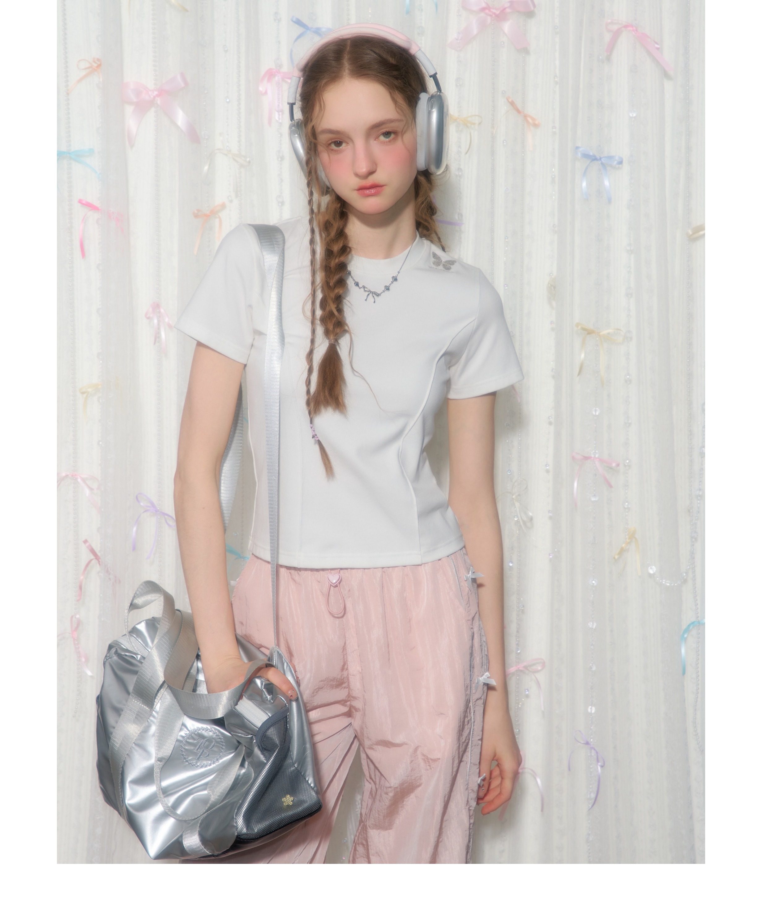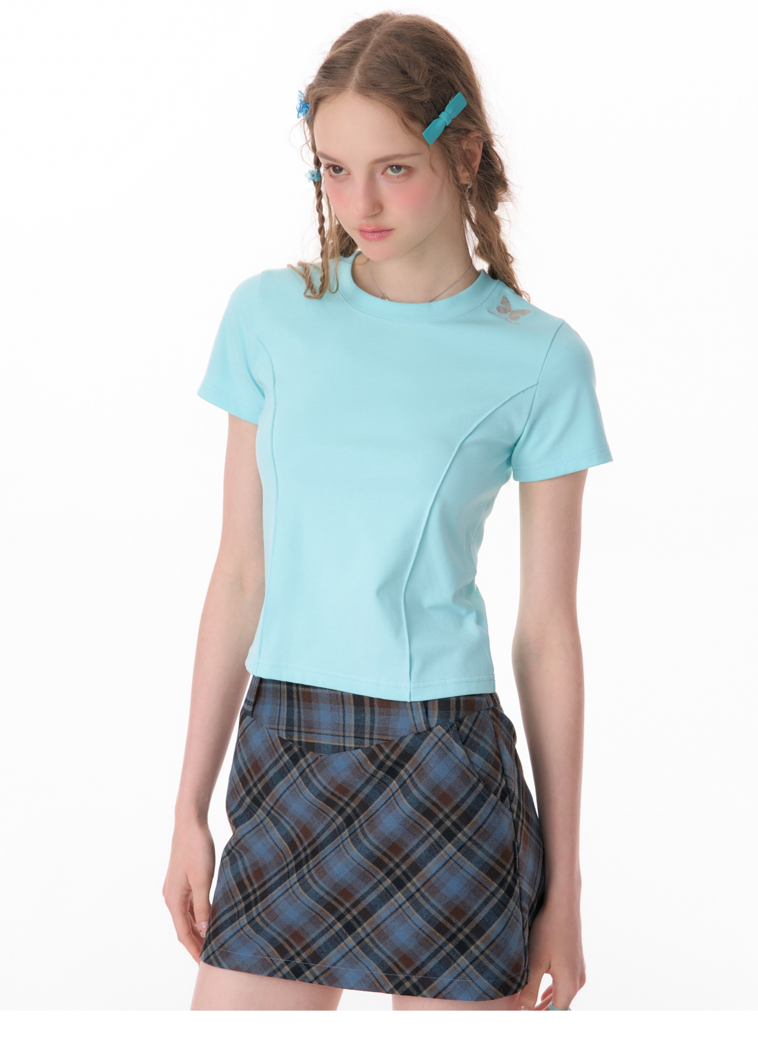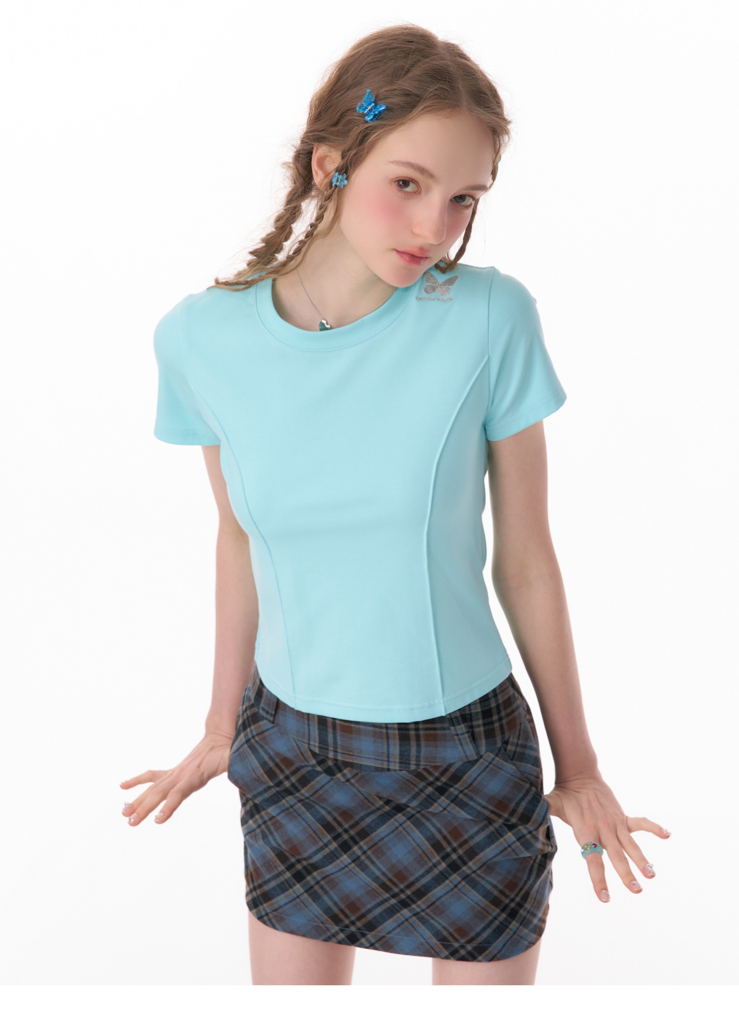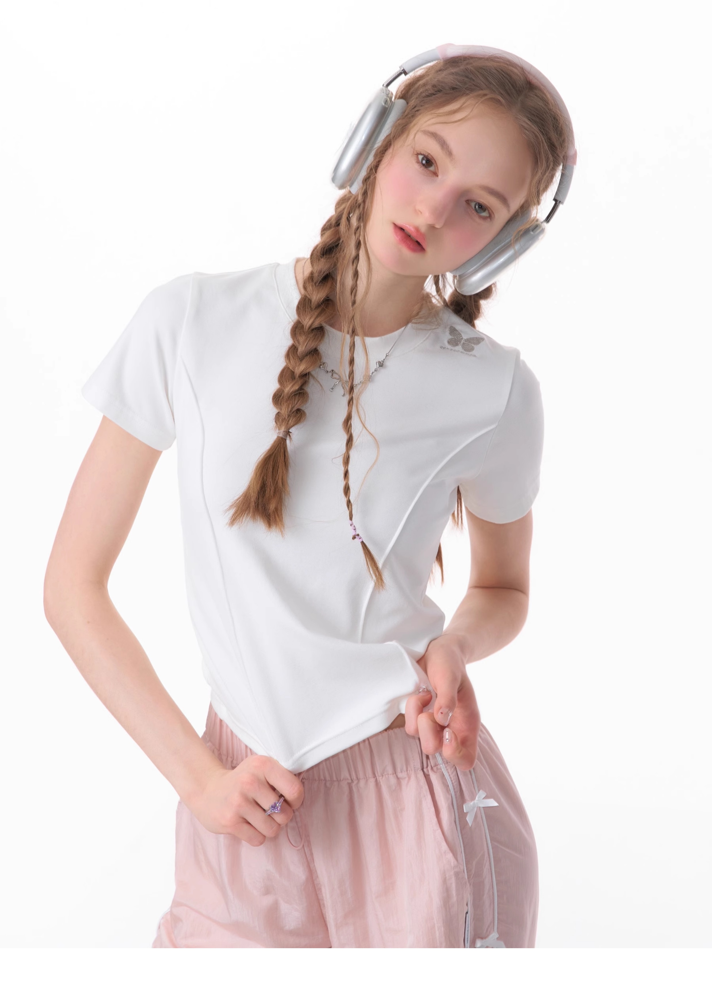 Butterfly Embroidered Right Shoulder T-shirt | Slim Fit Retro Design for Summer