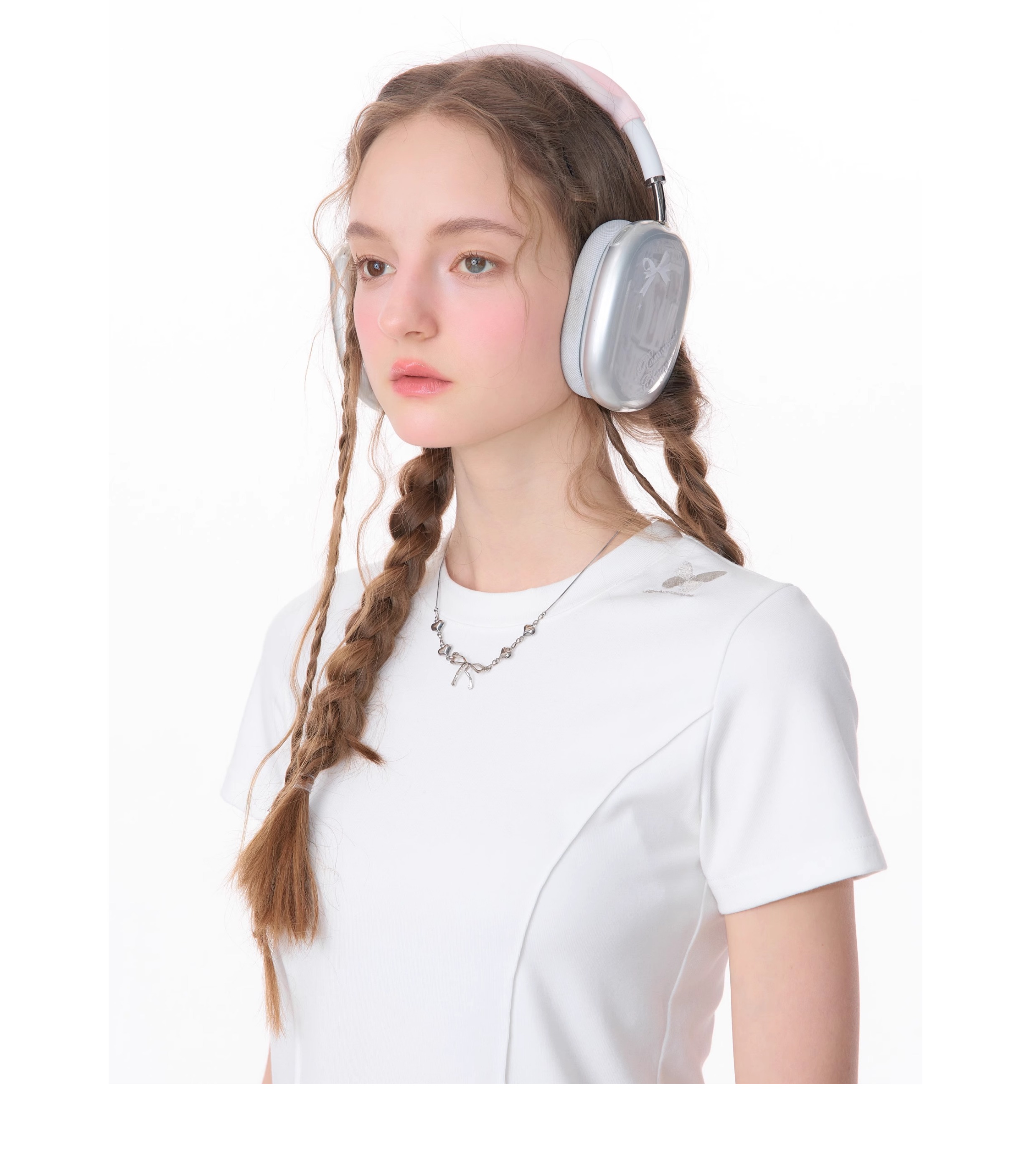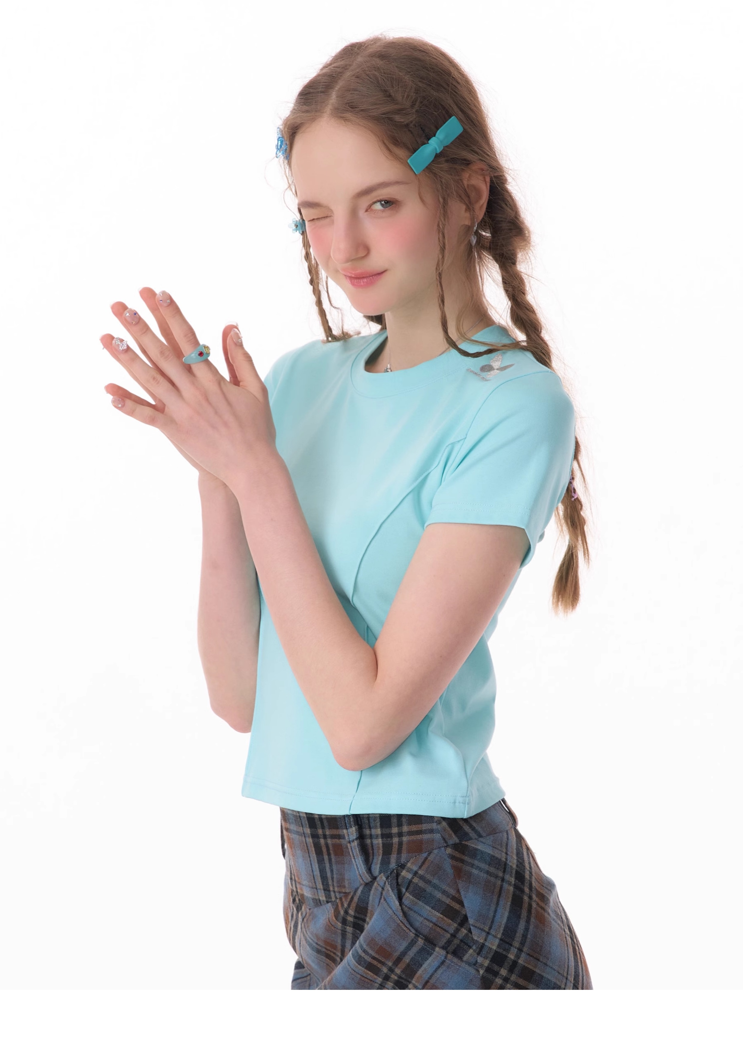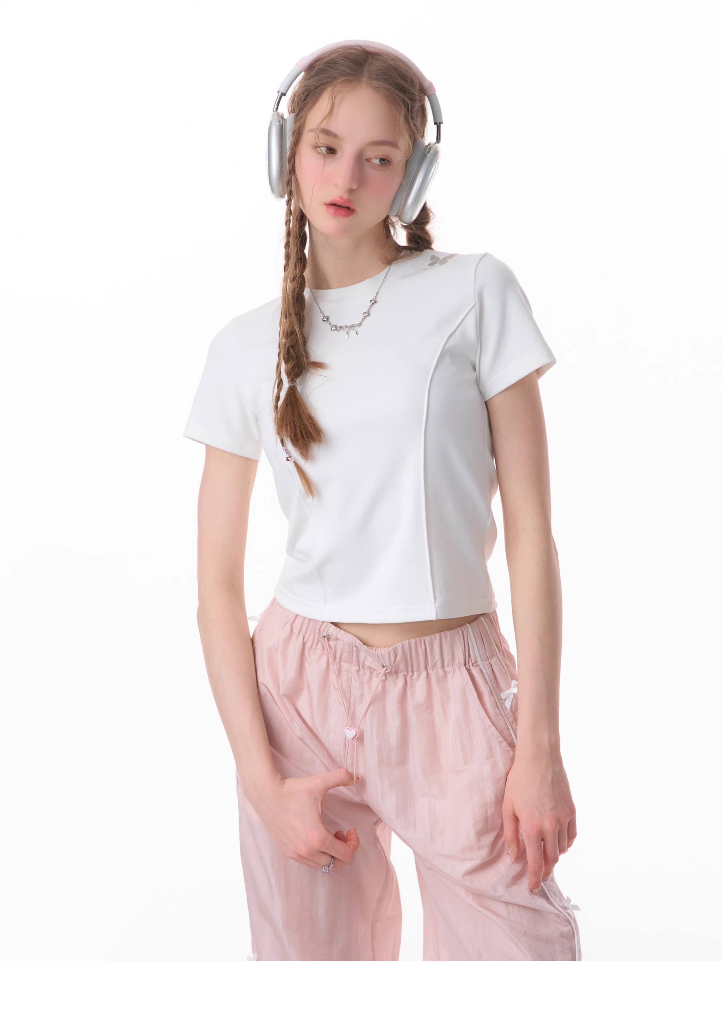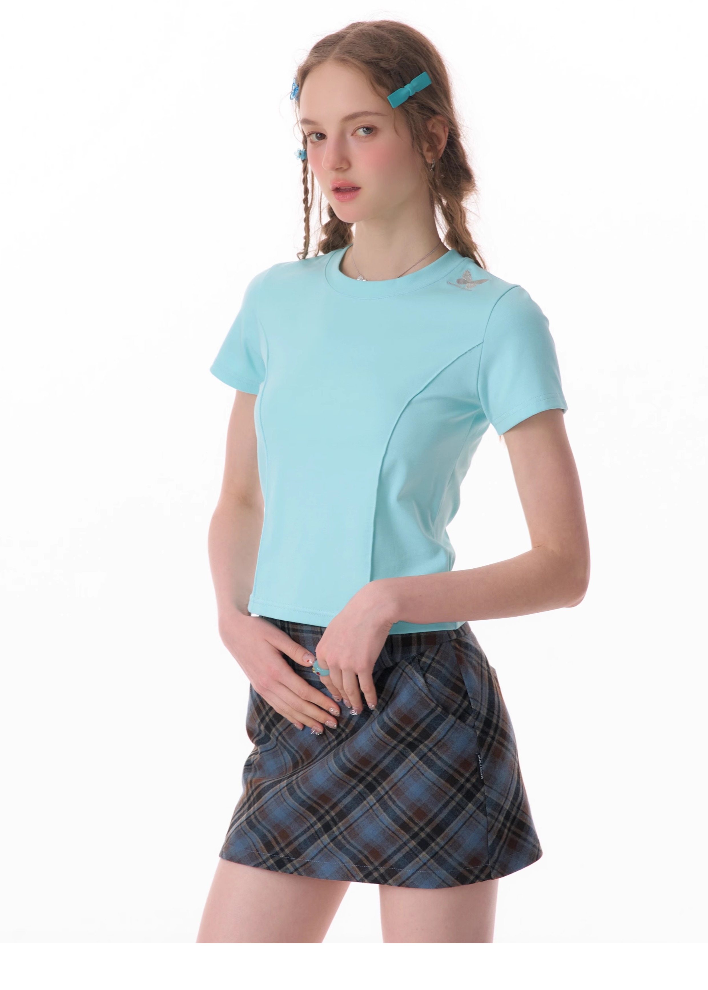Butterfly Embroidered Right Shoulder T-shirt | Slim Fit Retro Design for Summer
