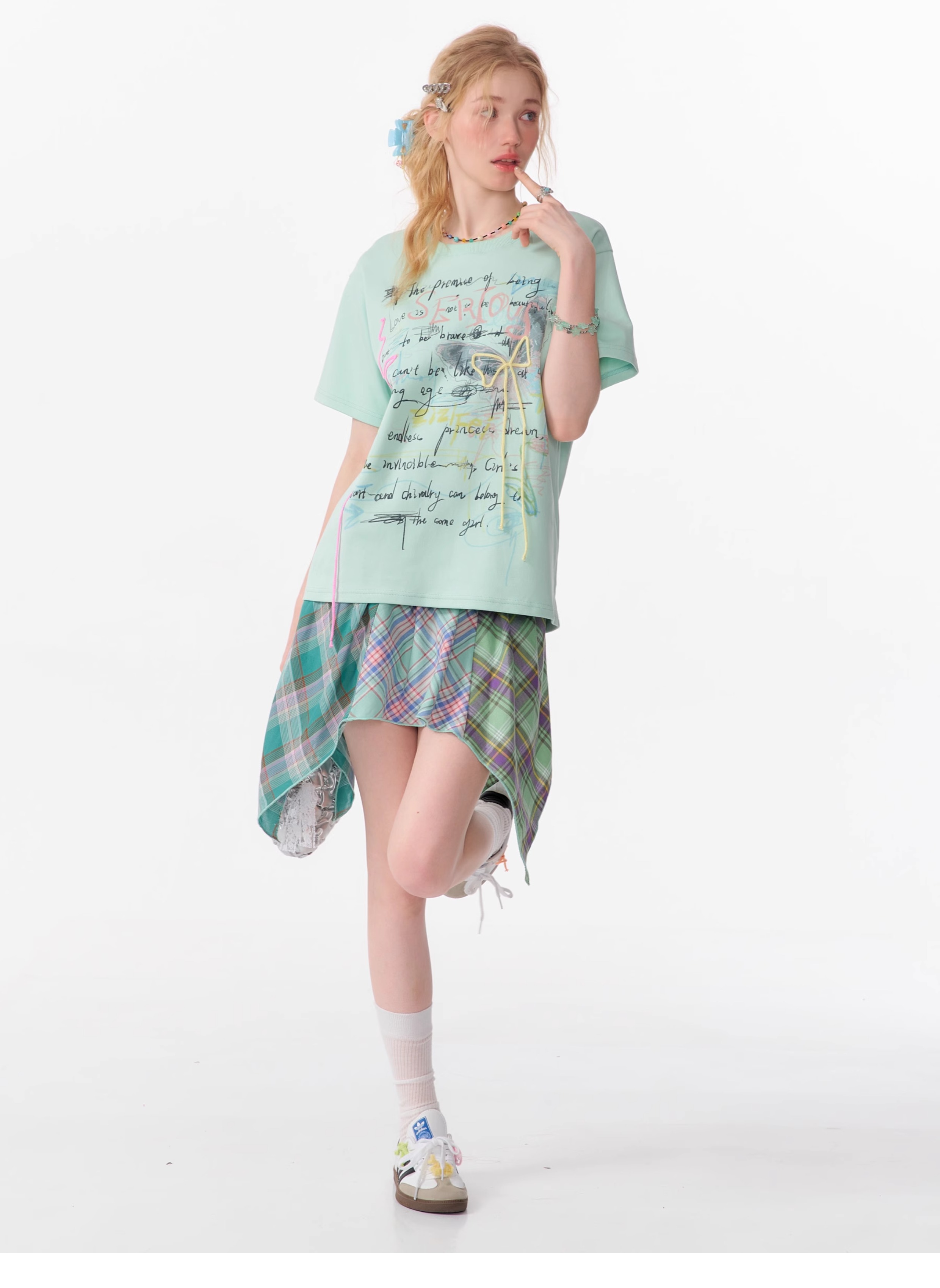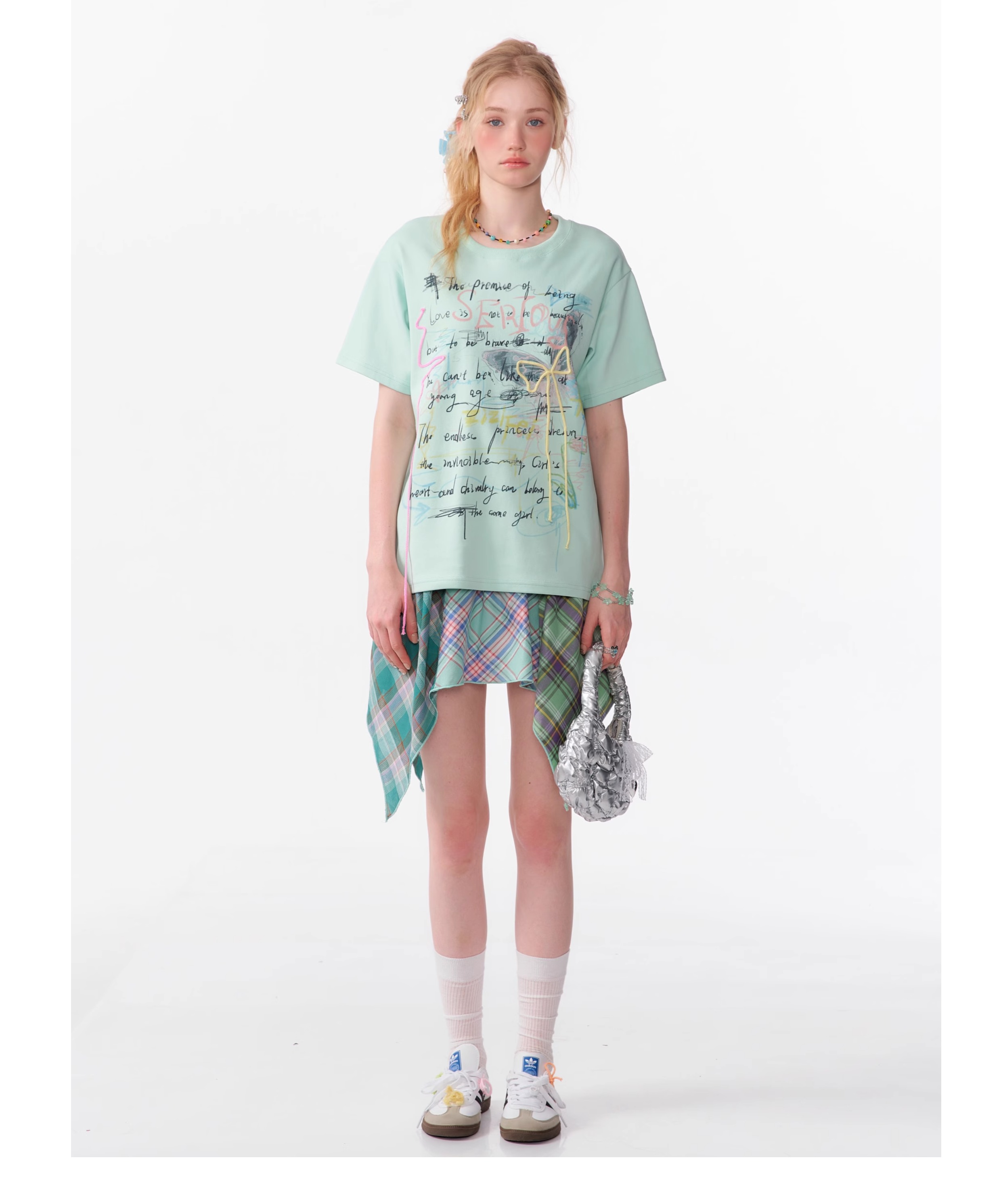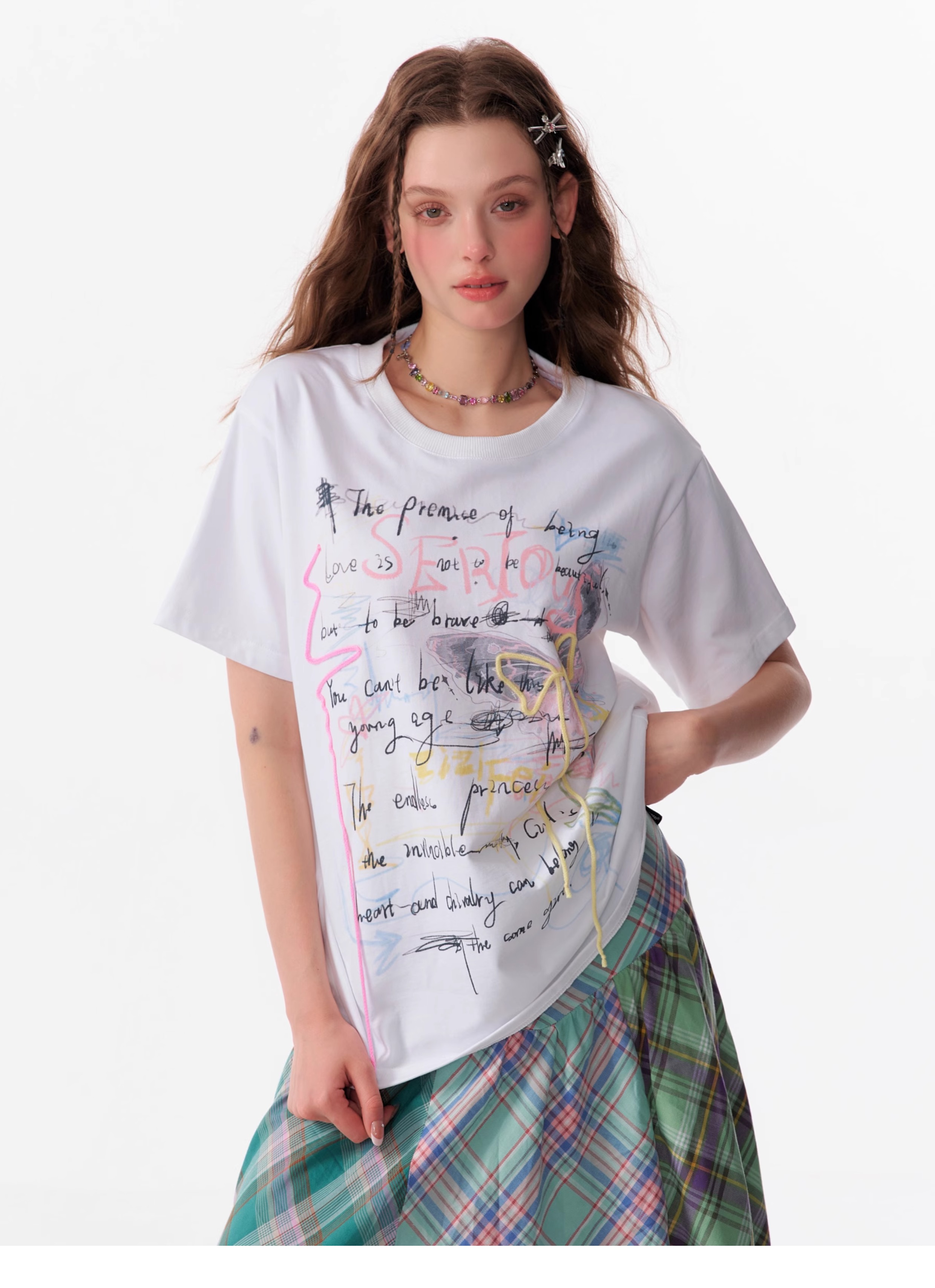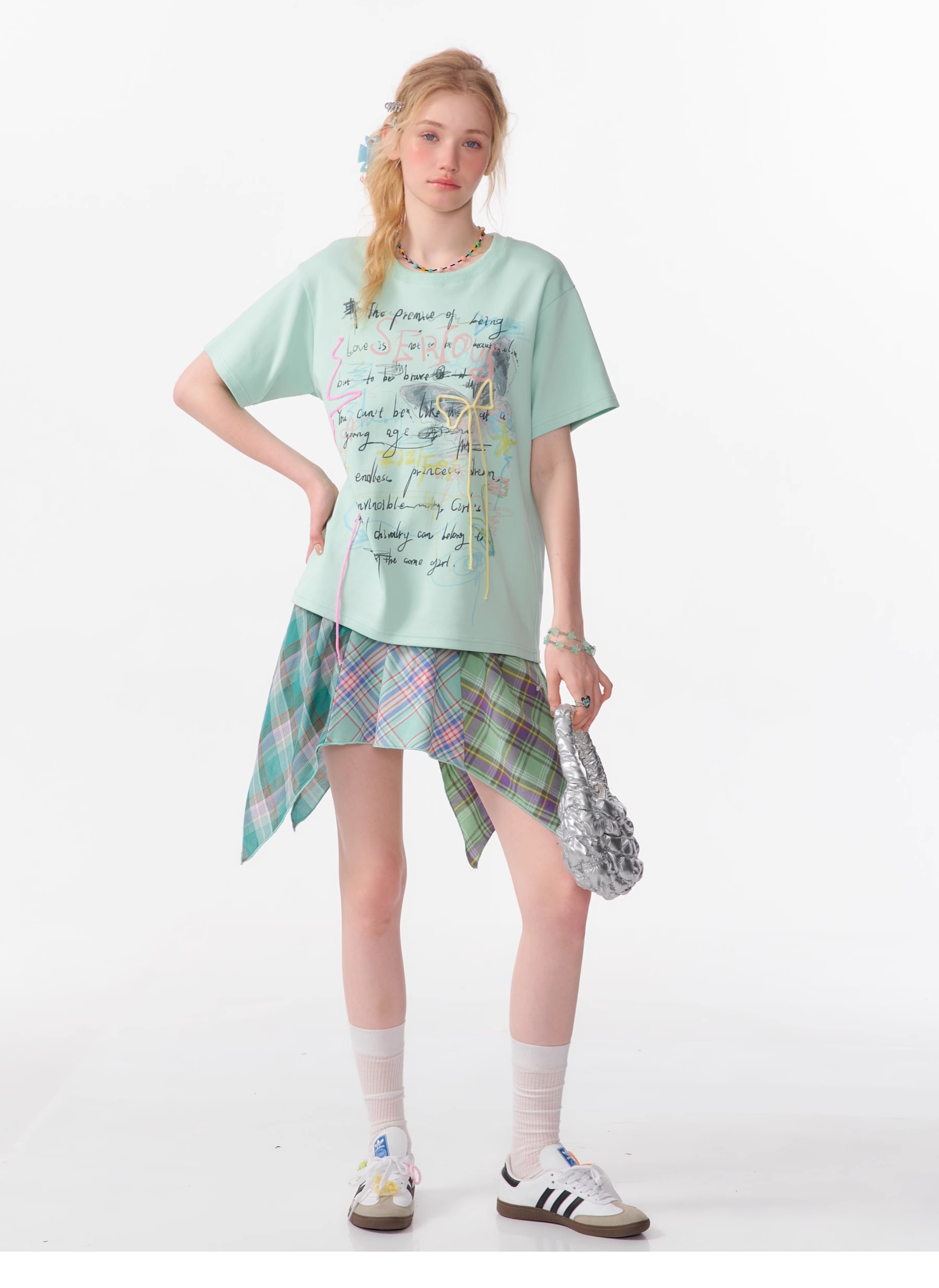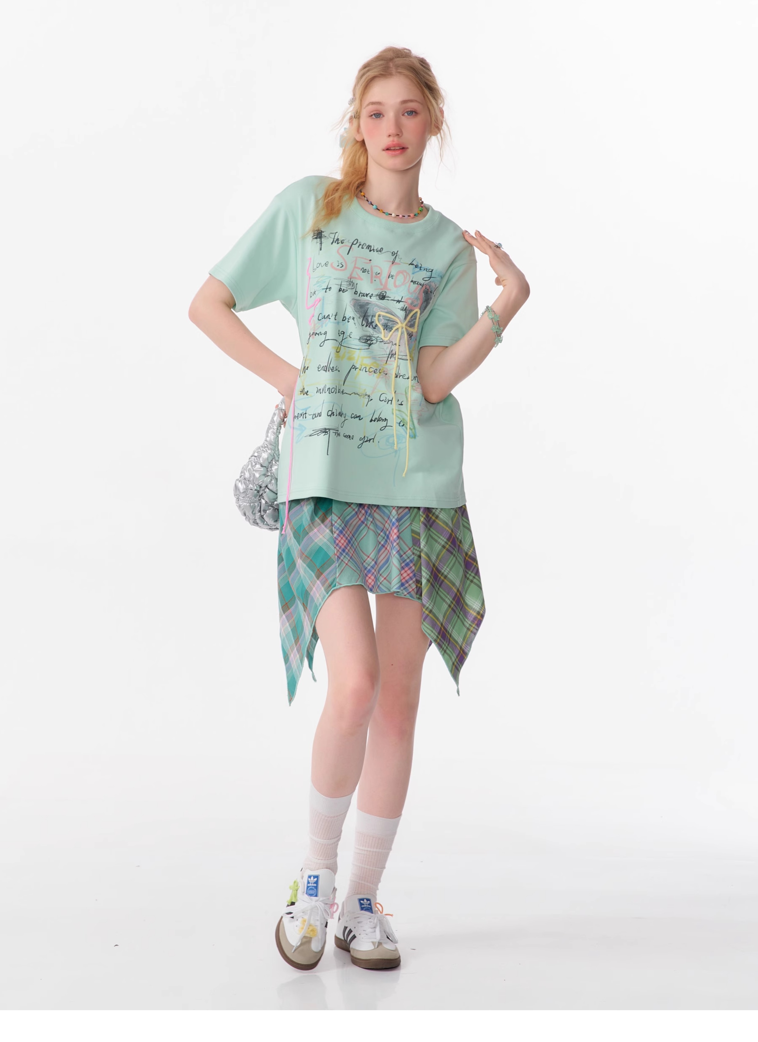 Graffiti Printed Bow T-shirt | Retro English Print Design for Summer