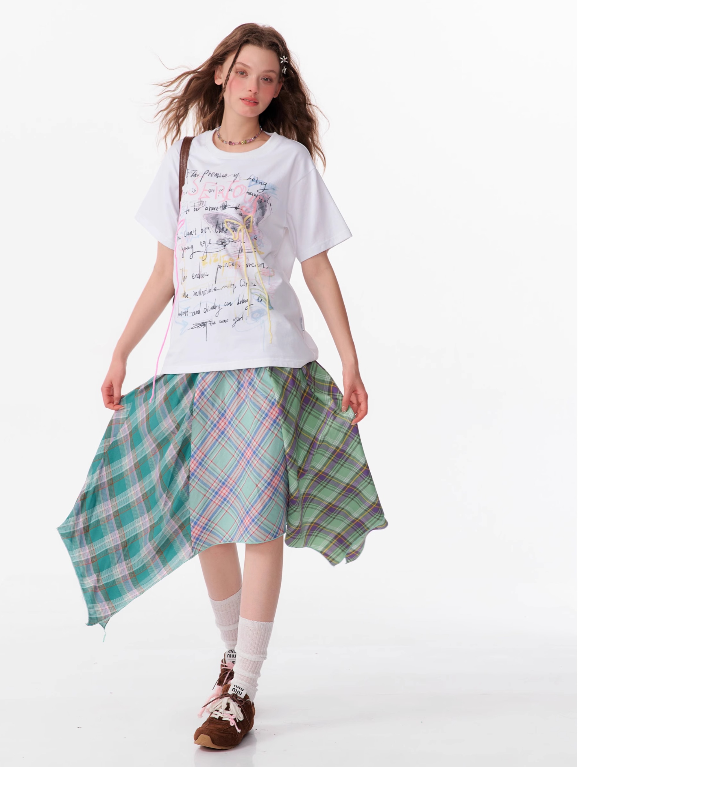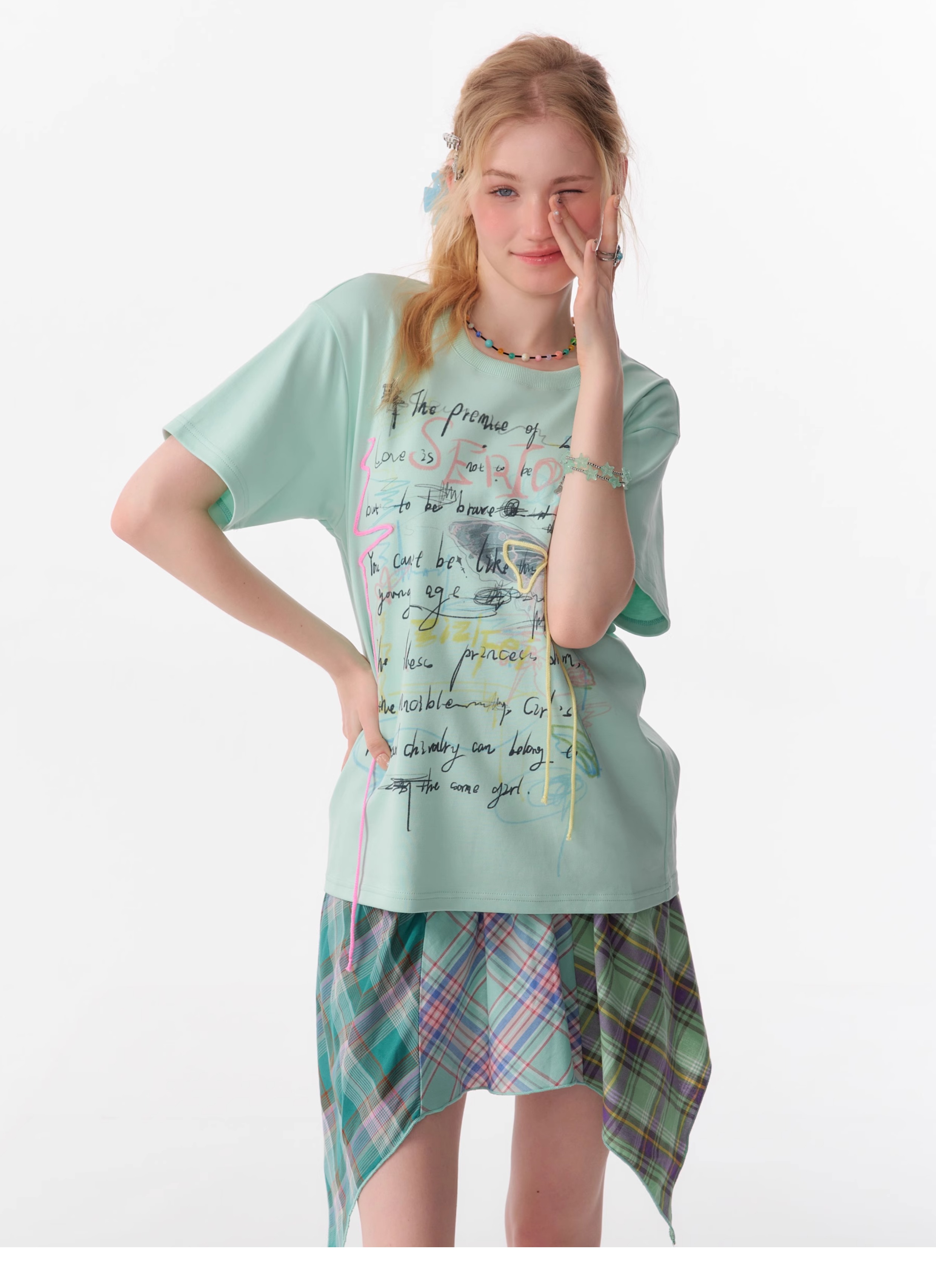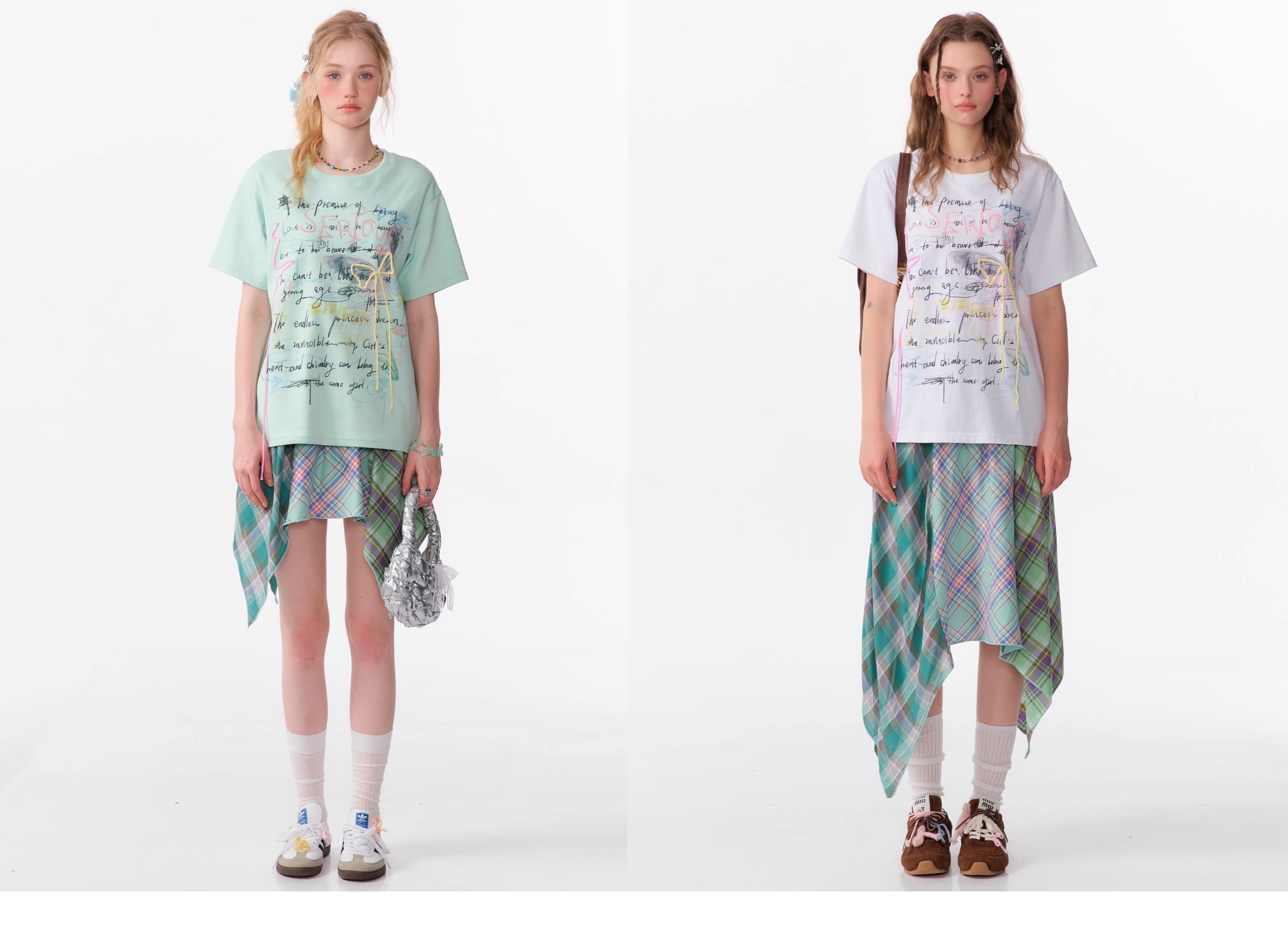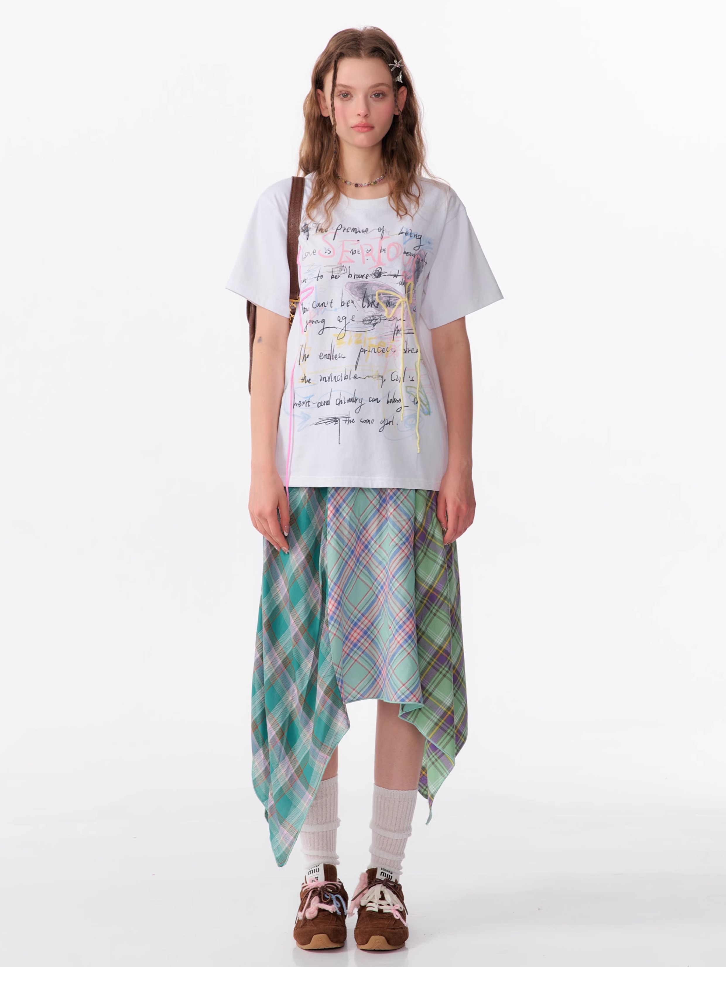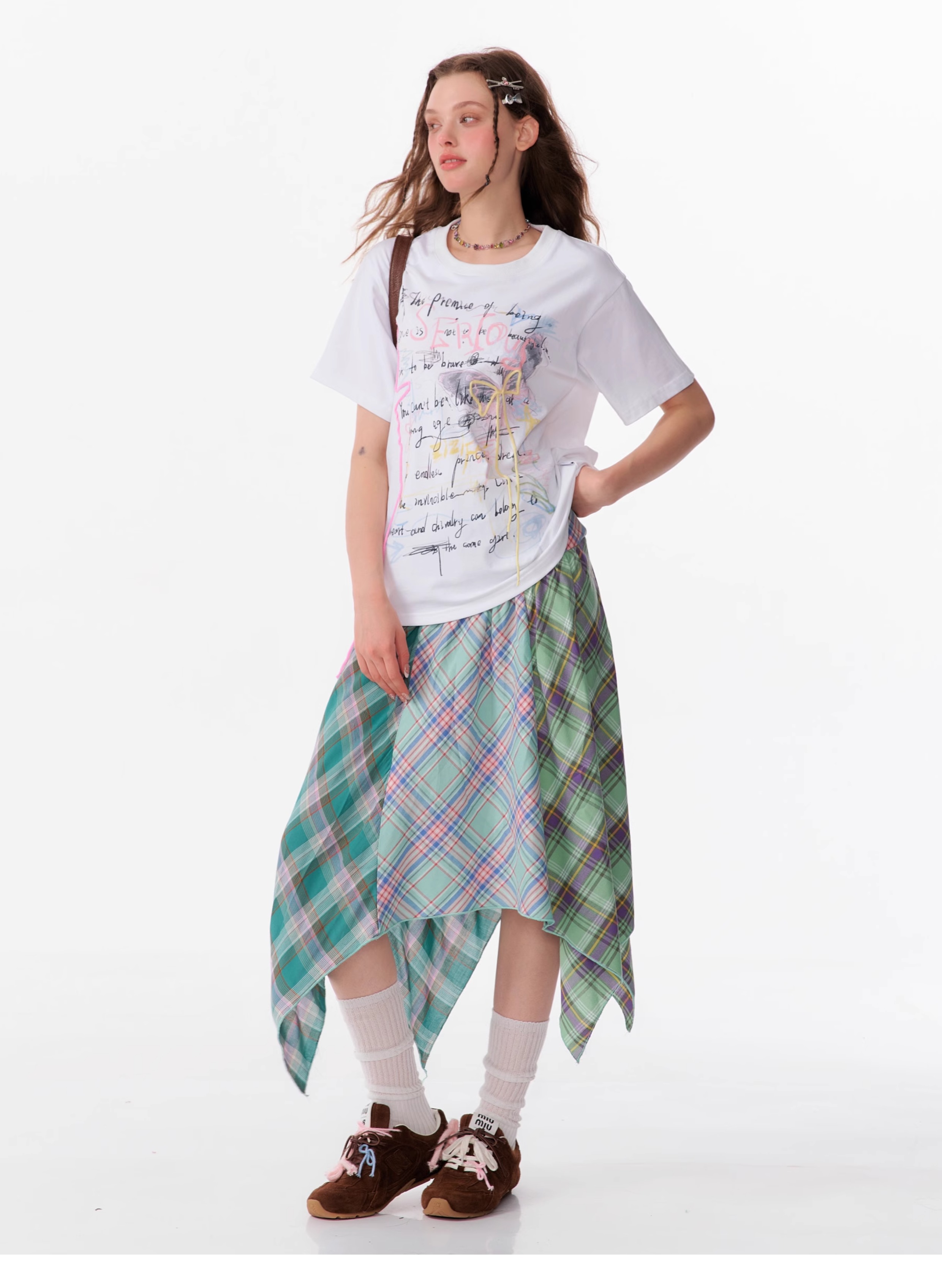Graffiti Printed Bow T-shirt | Retro English Print Design for Summer