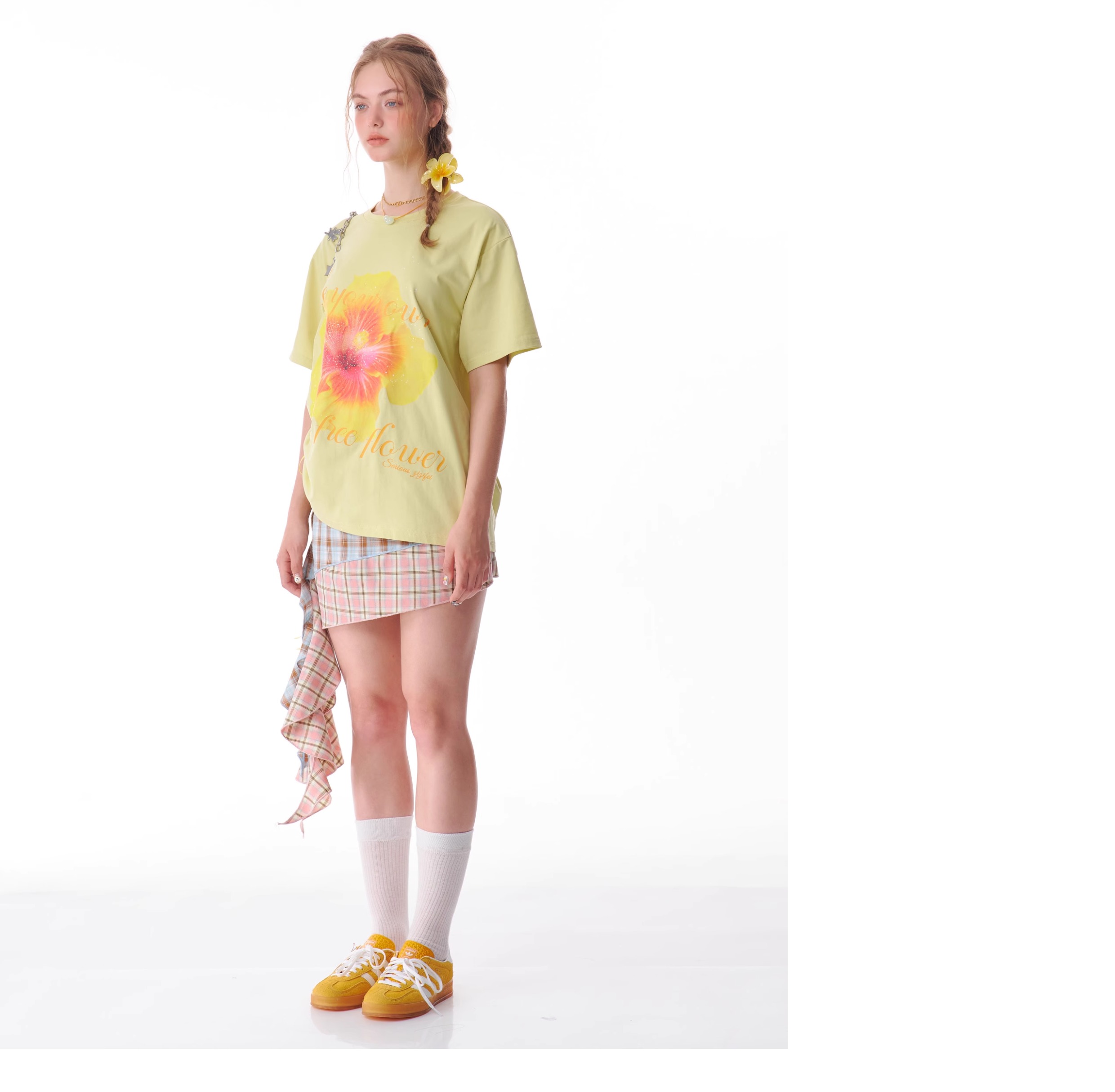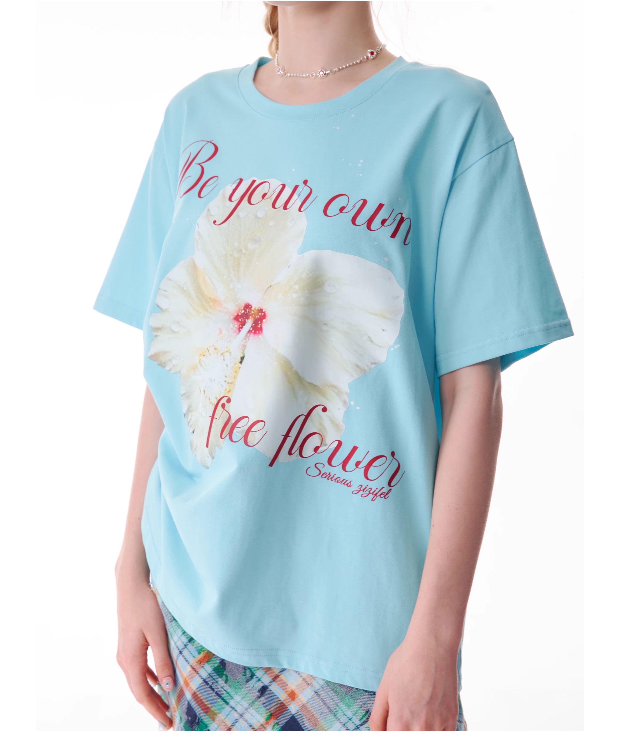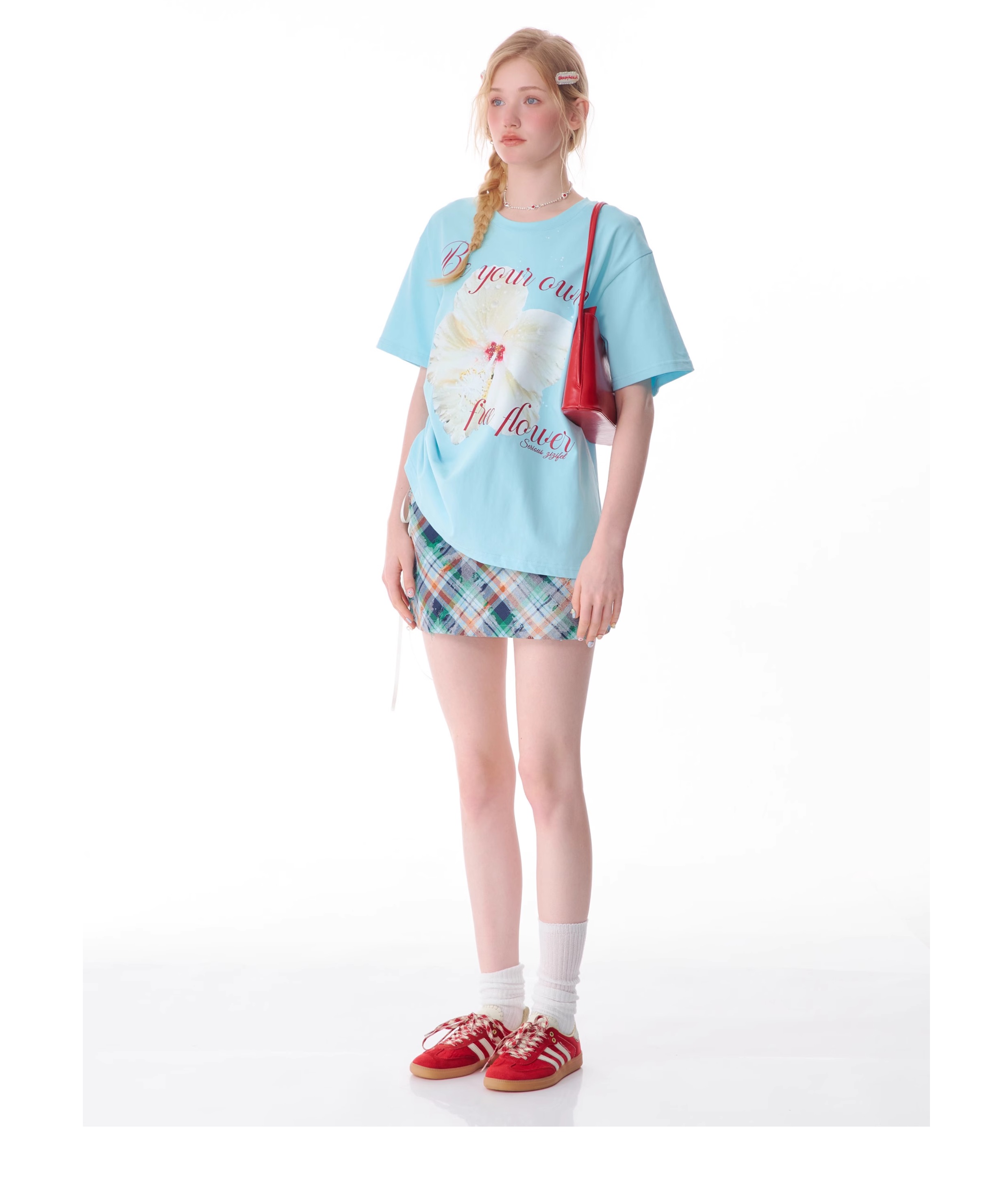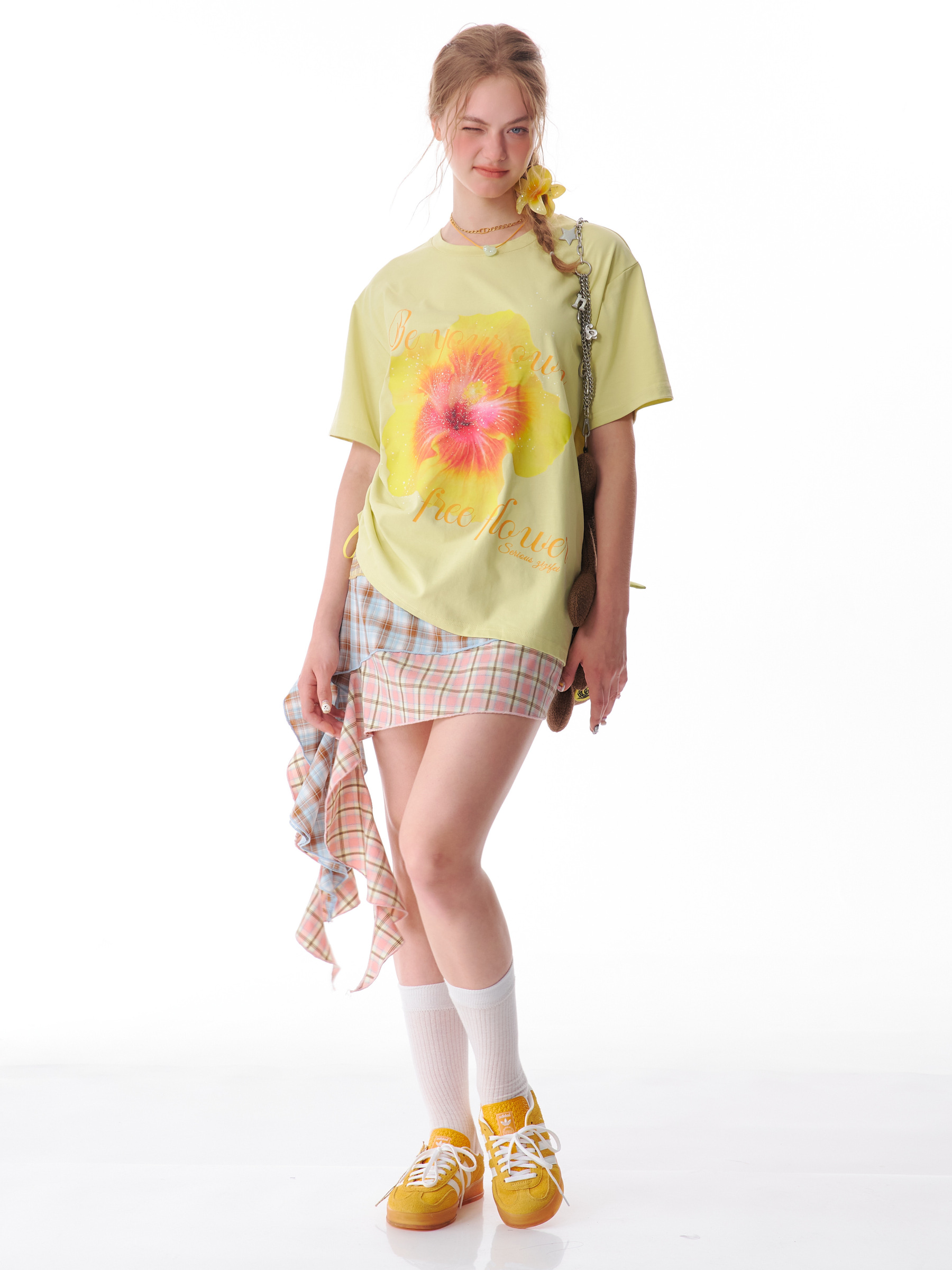Flower Printed Drawstring T-shirt | Loose Round Neck Retro Design for Summer