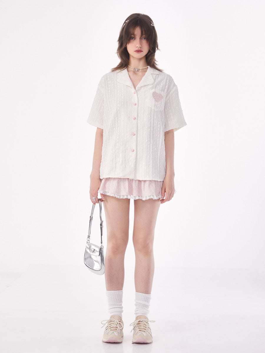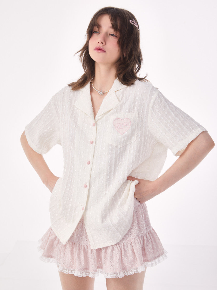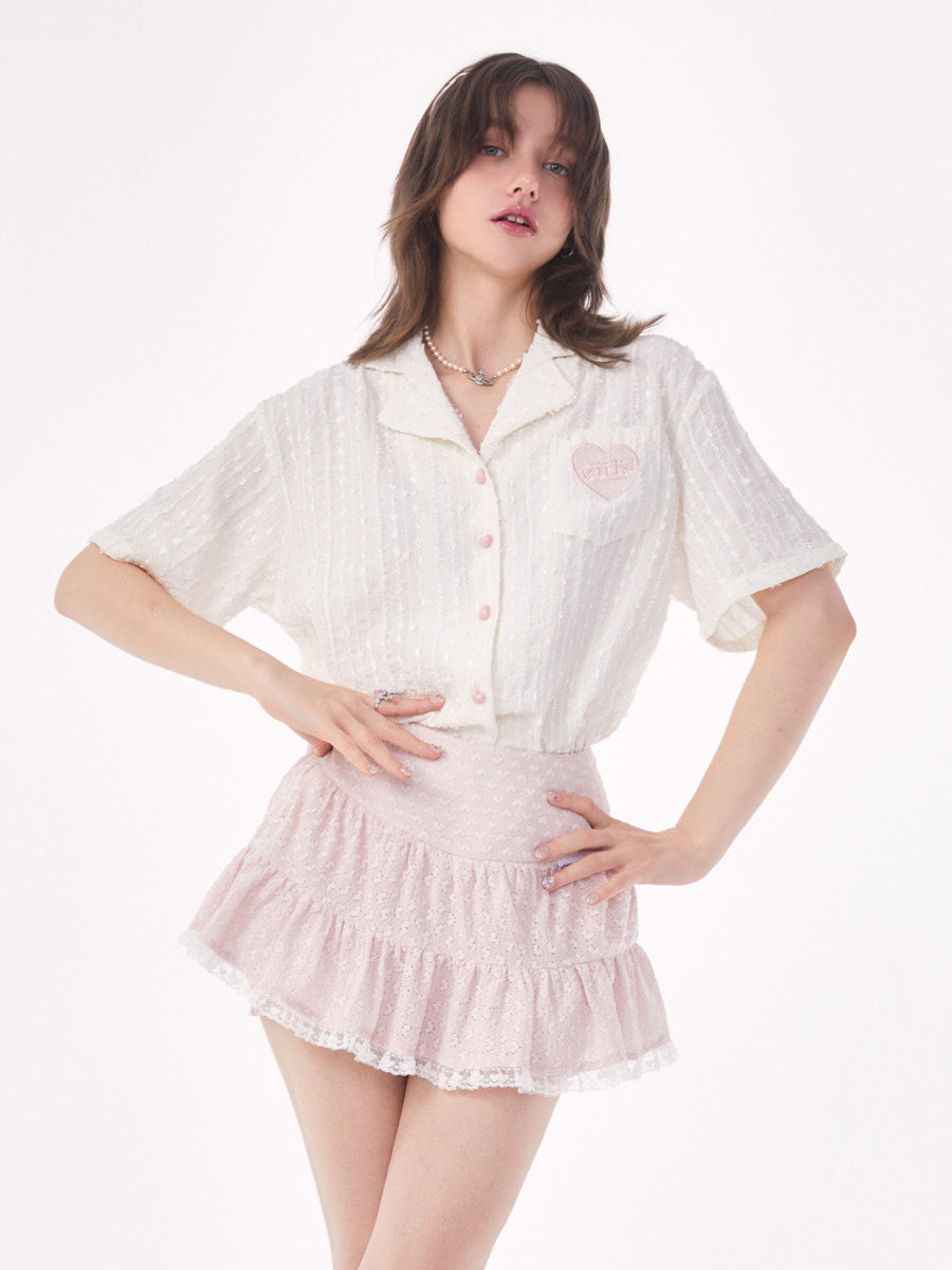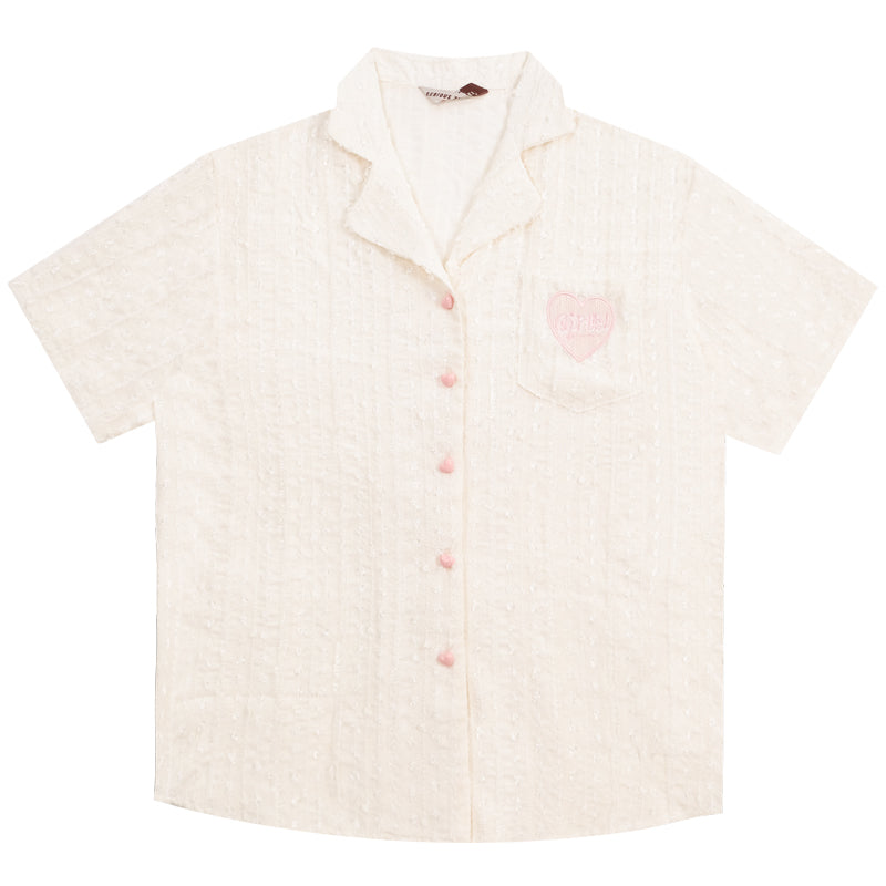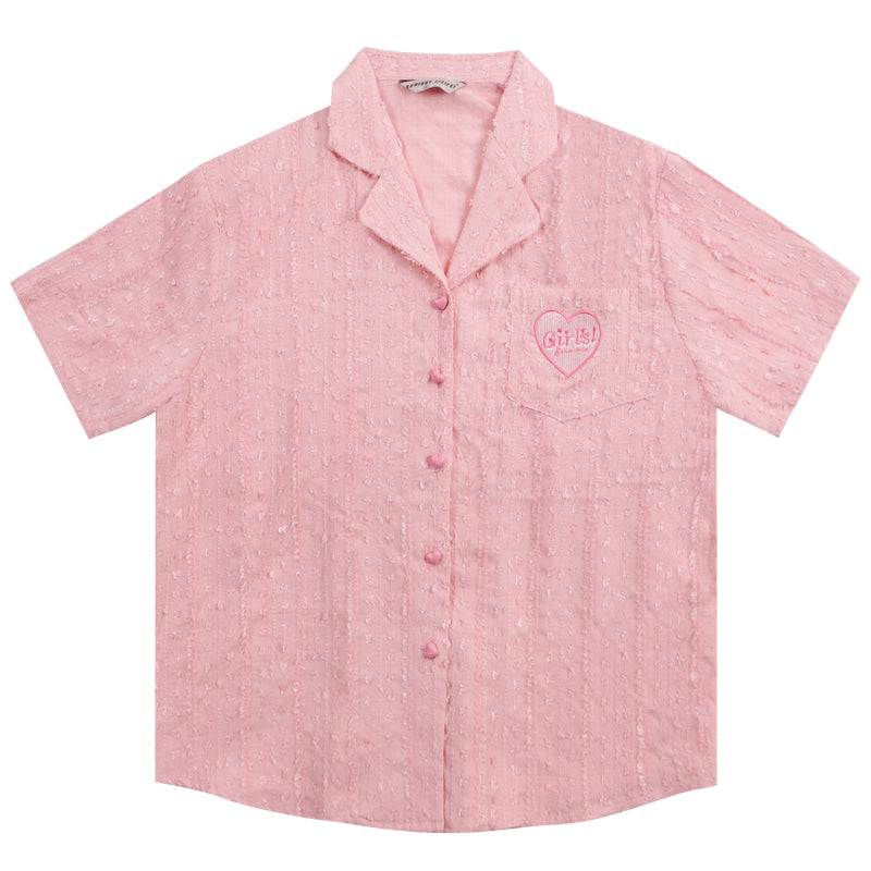 사랑 자수 탑 - 분홍색 짧은 슬리브 셔츠