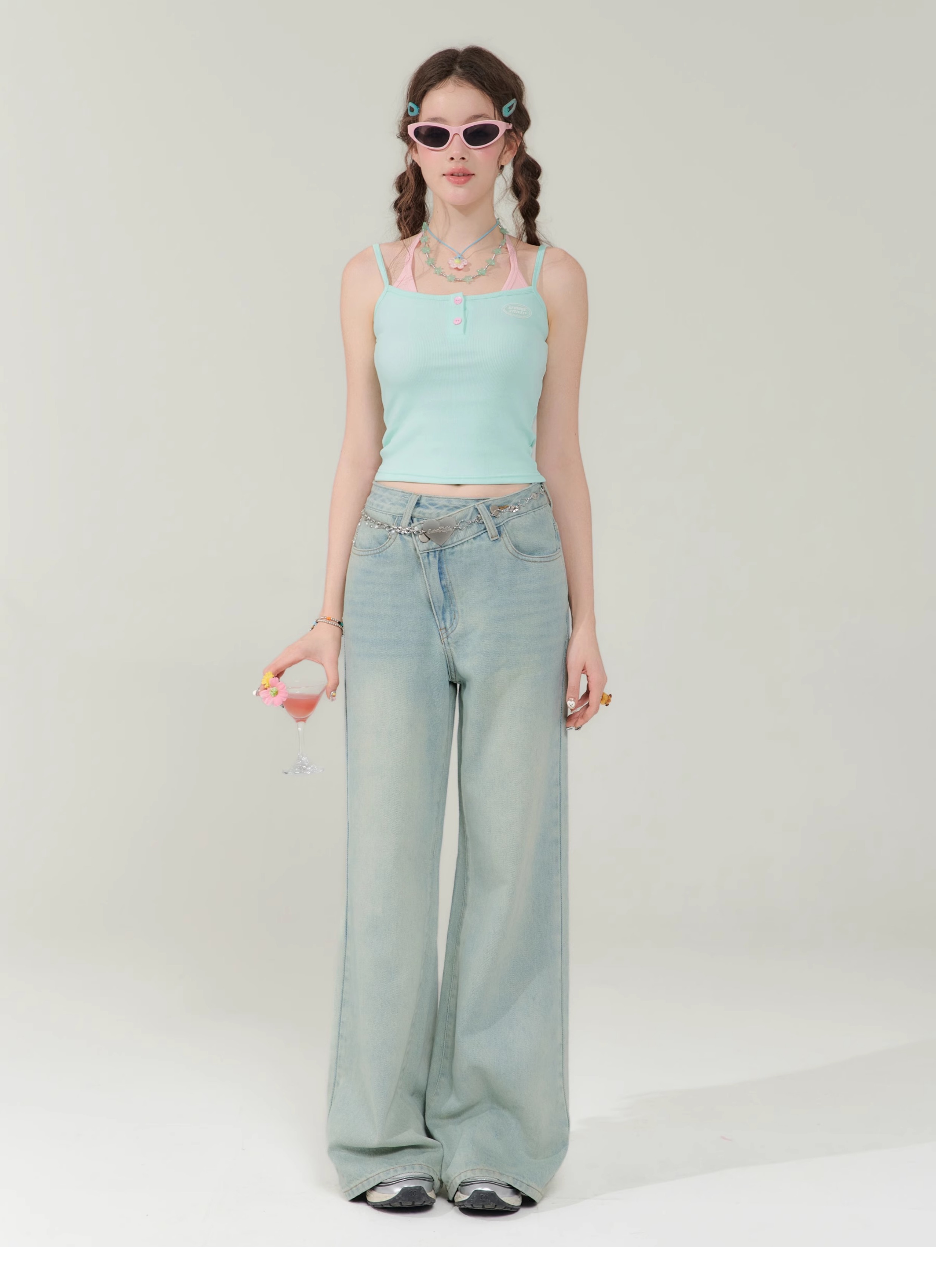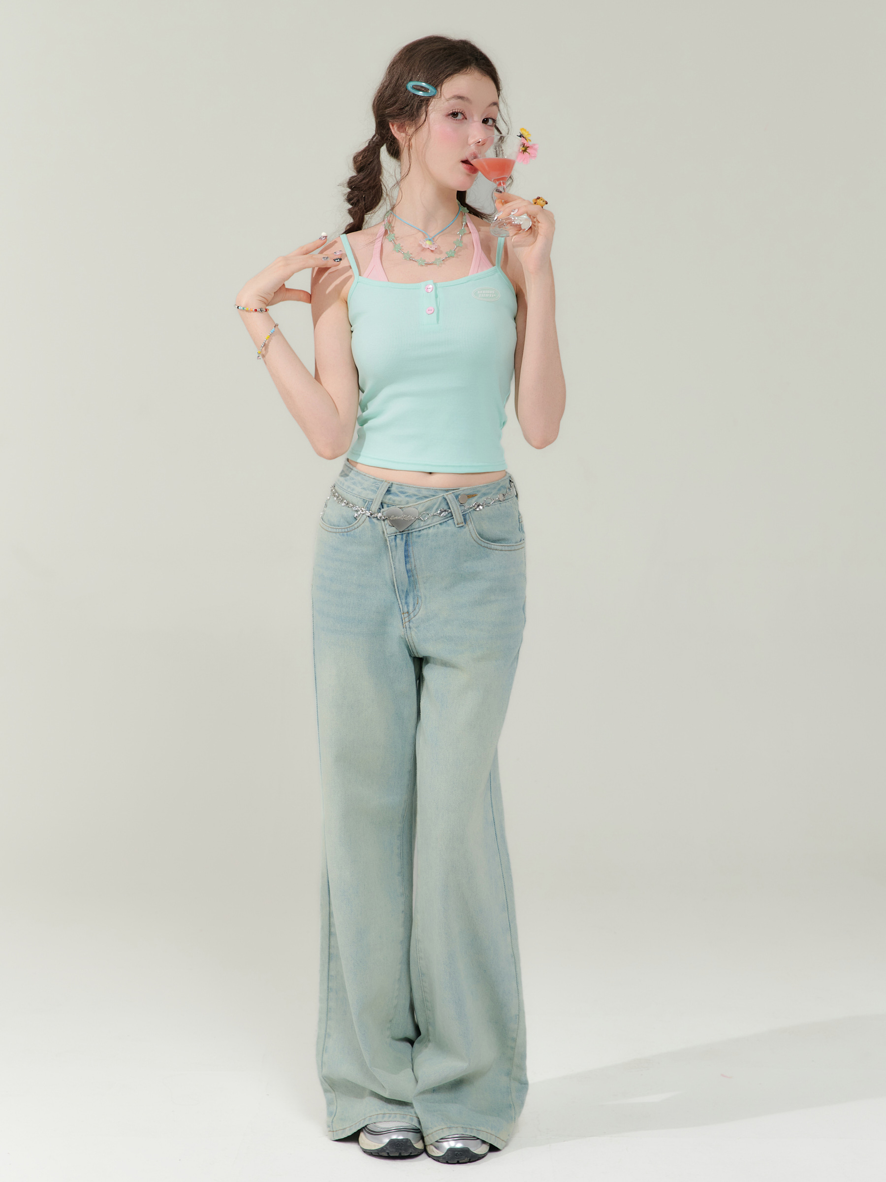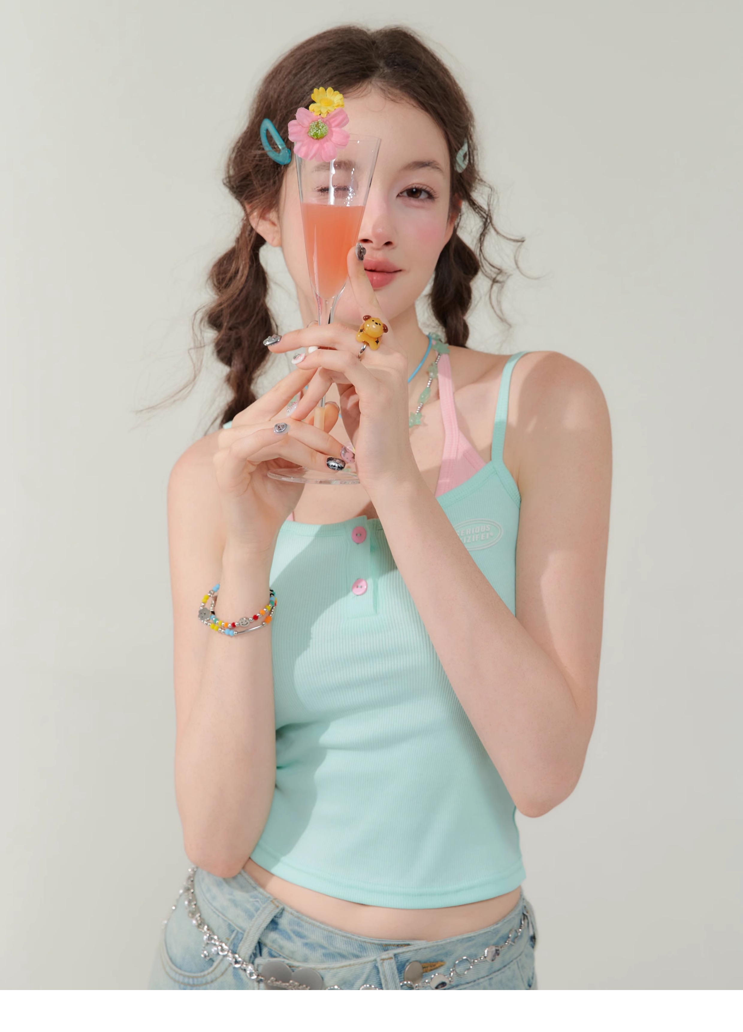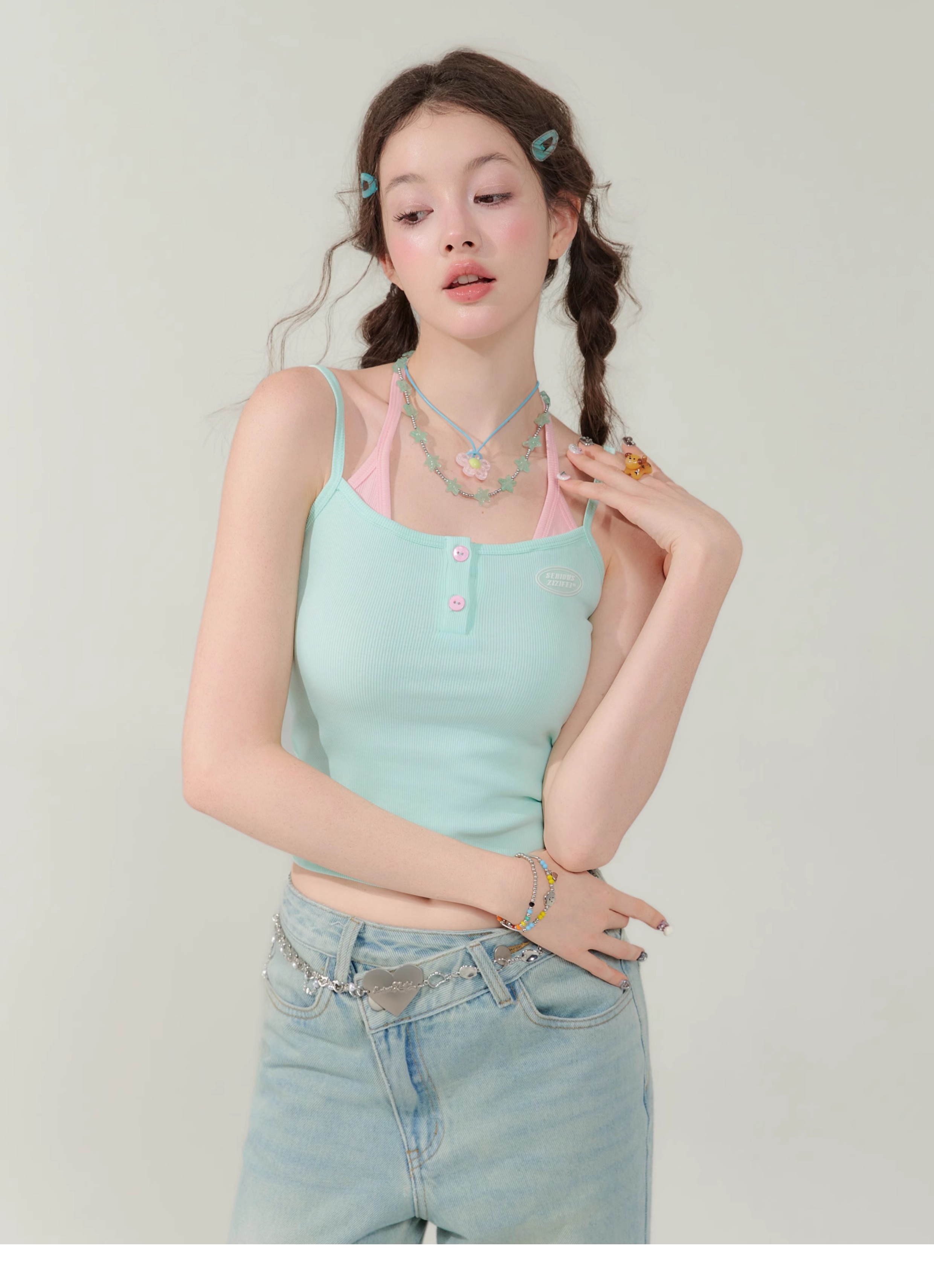 Spicy Girl Fake Two-Piece Top | Contrast Color Strap Sleeveless Retro Design