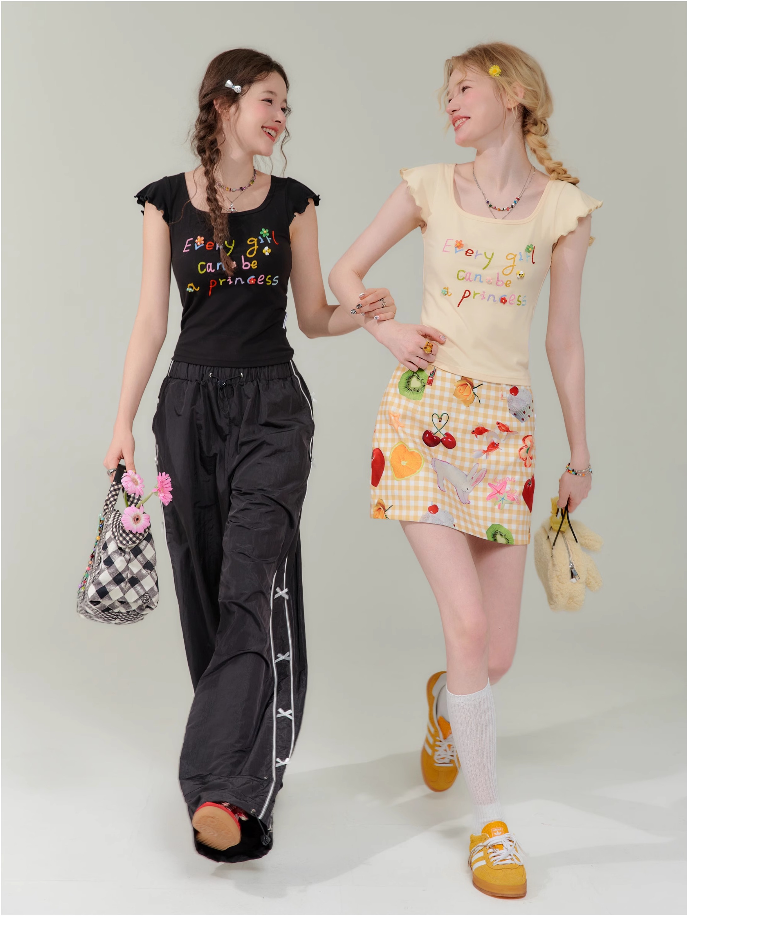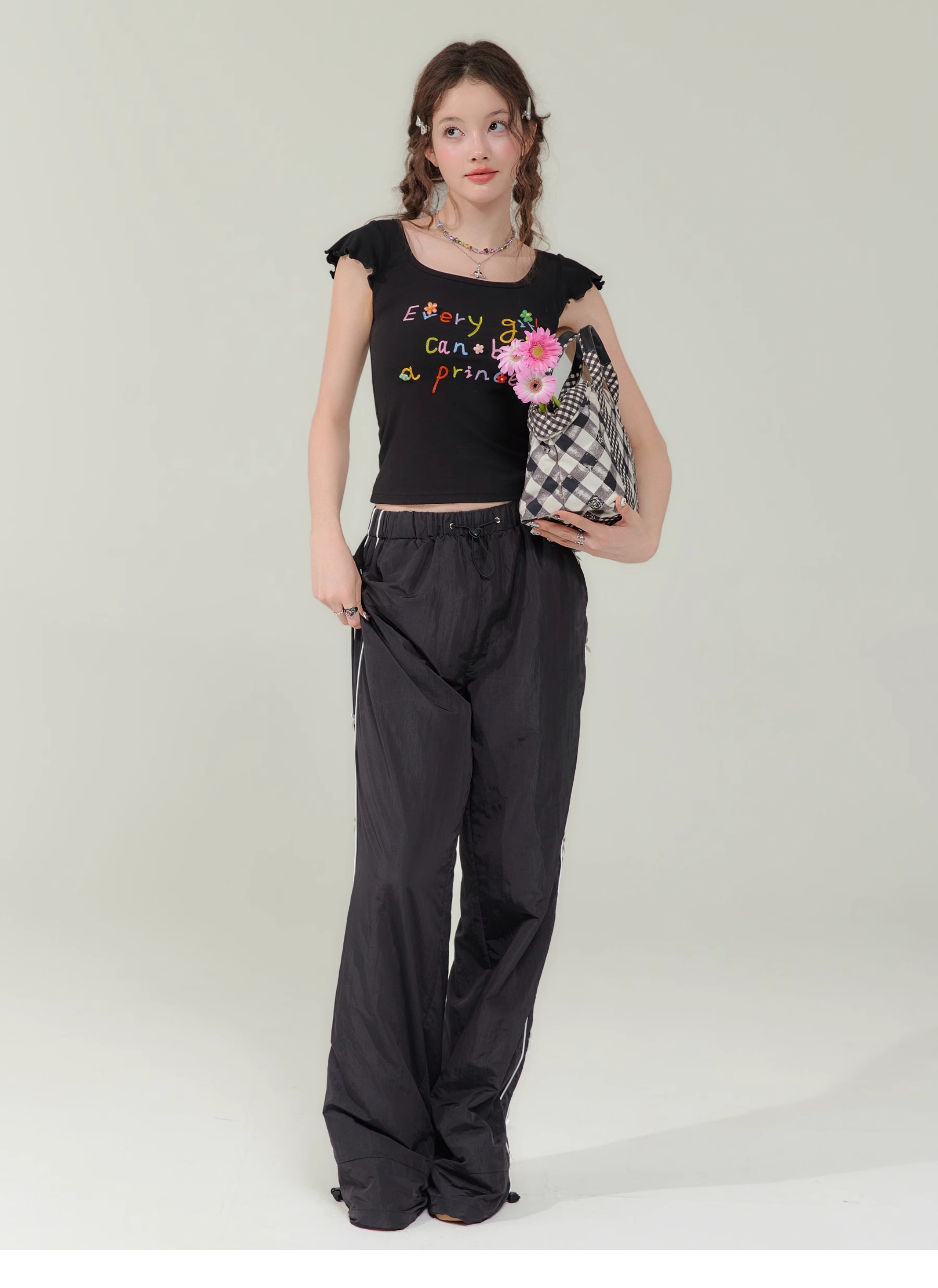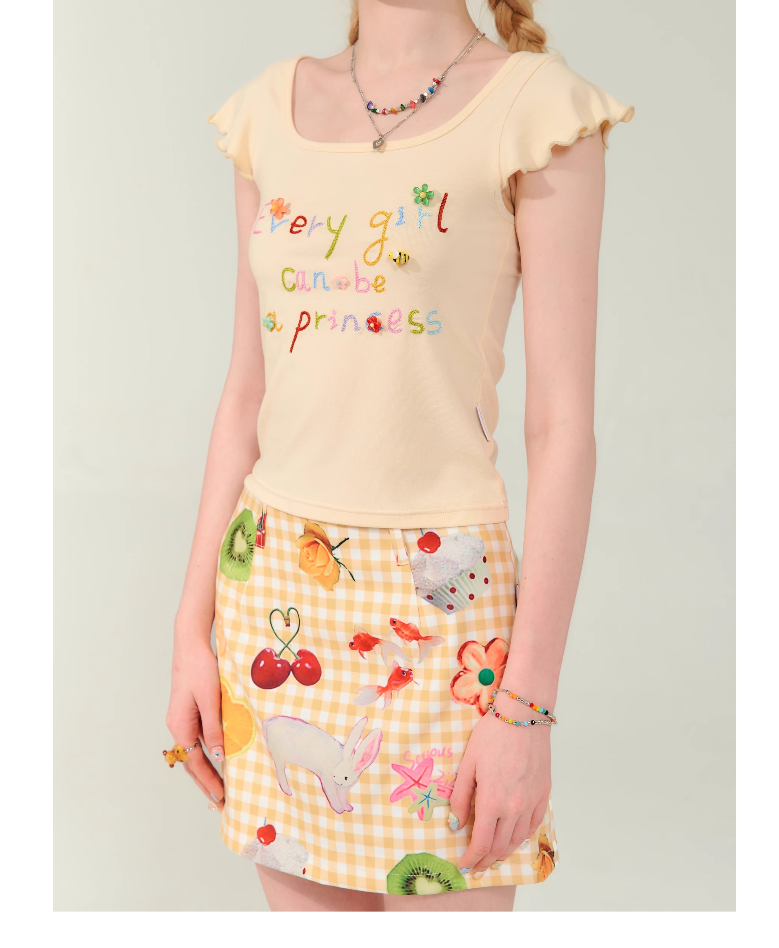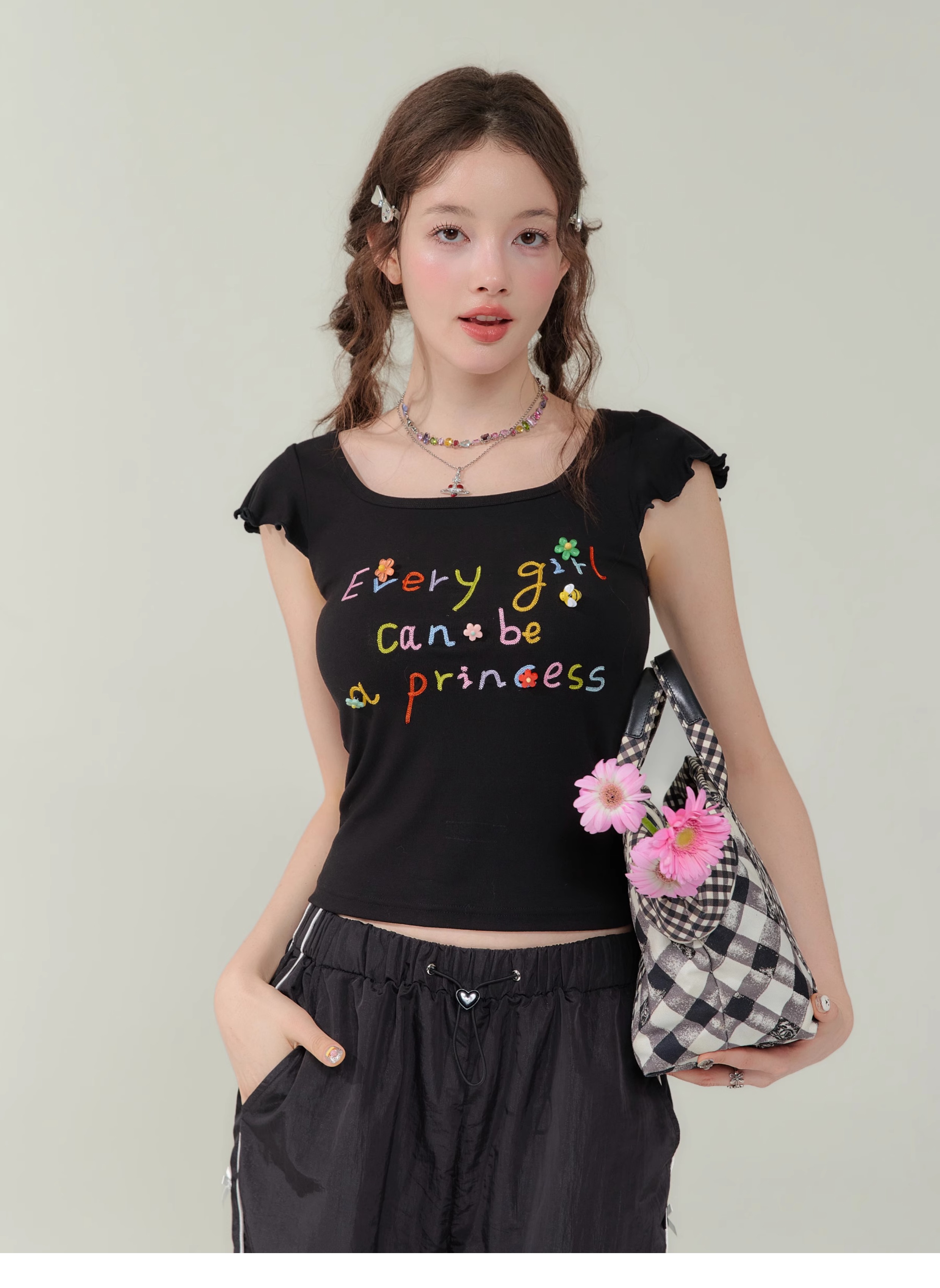 Square Neck Slim Fit Embroidered Tank Top | Retro Flying Sleeve Design