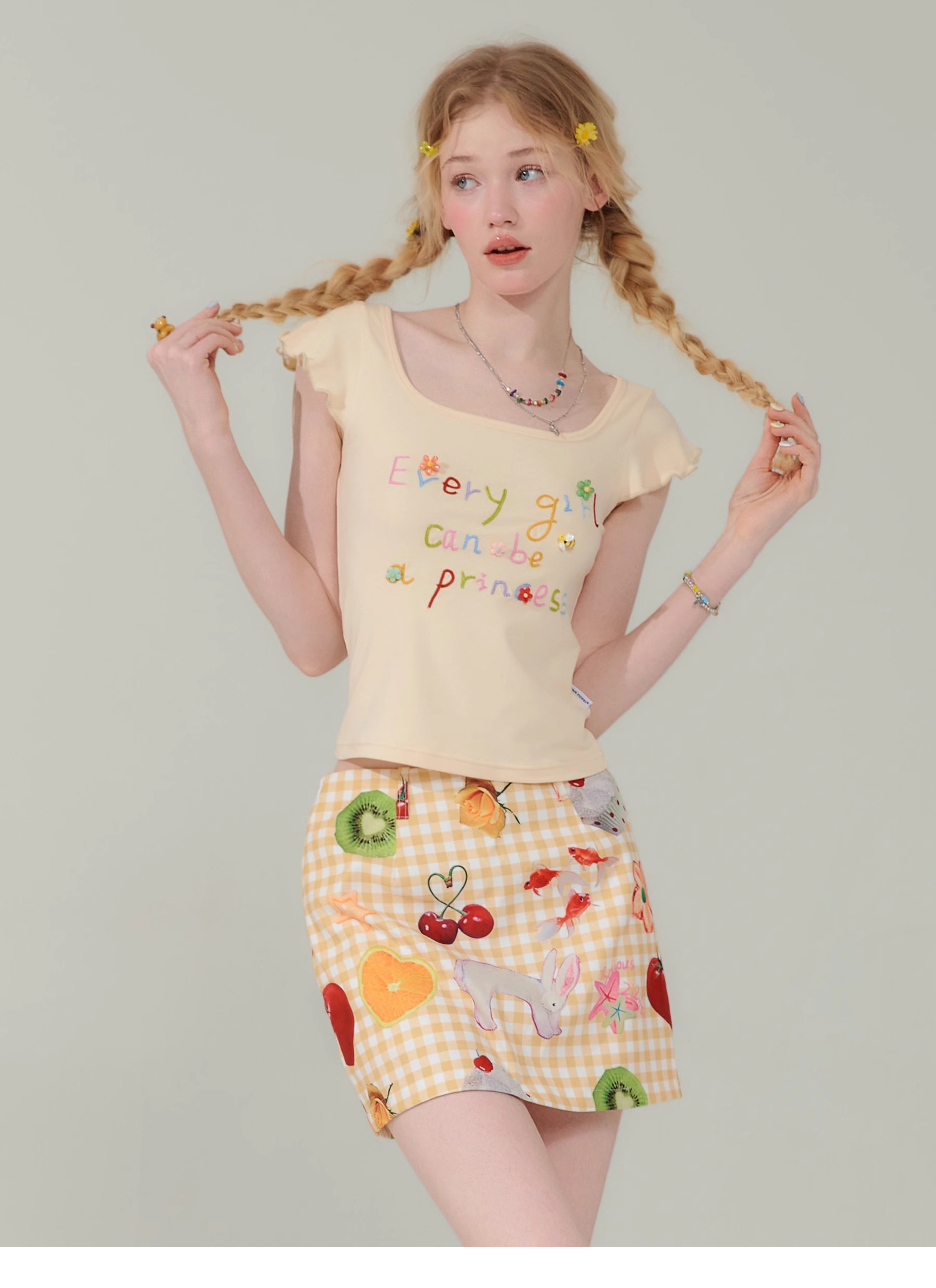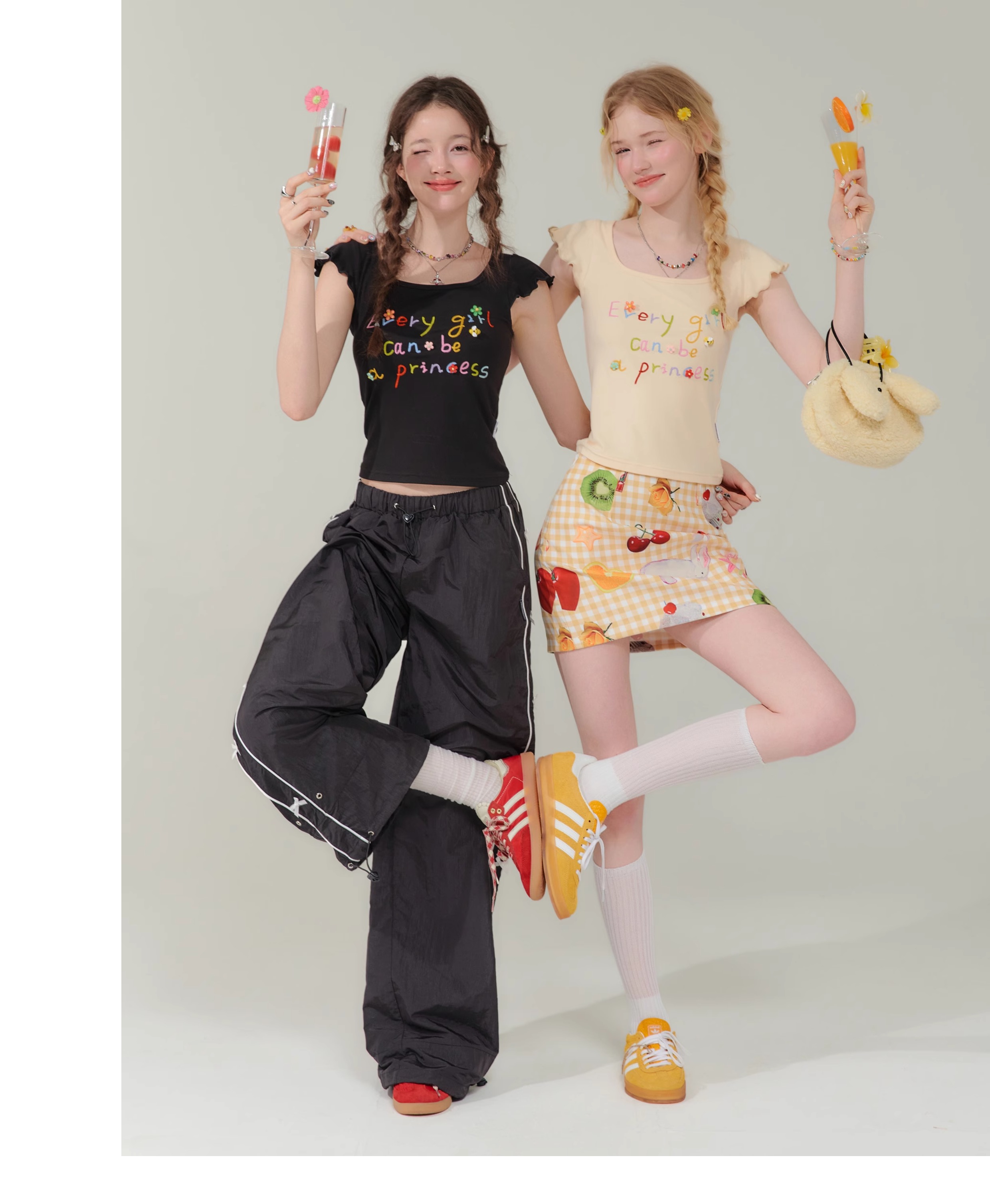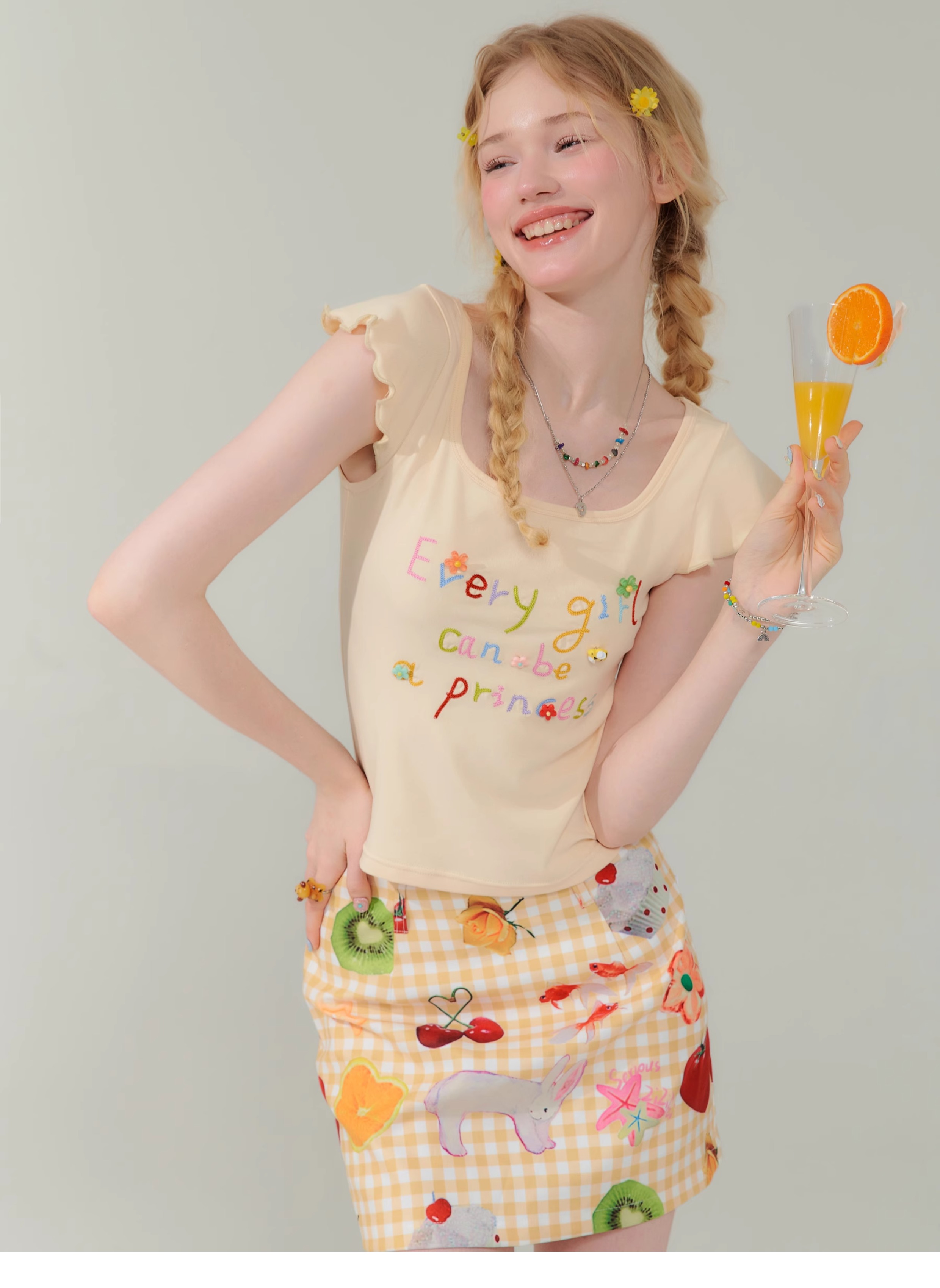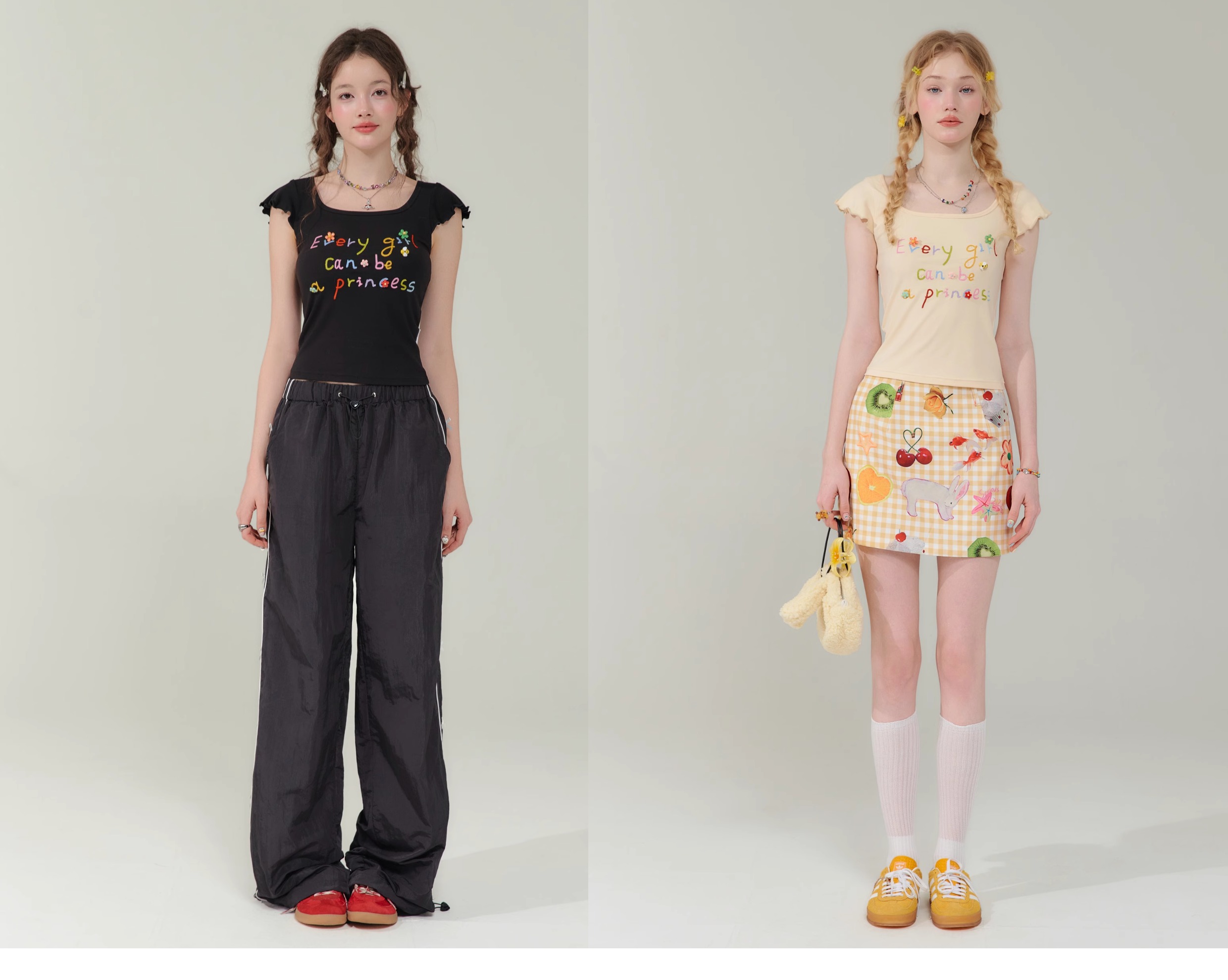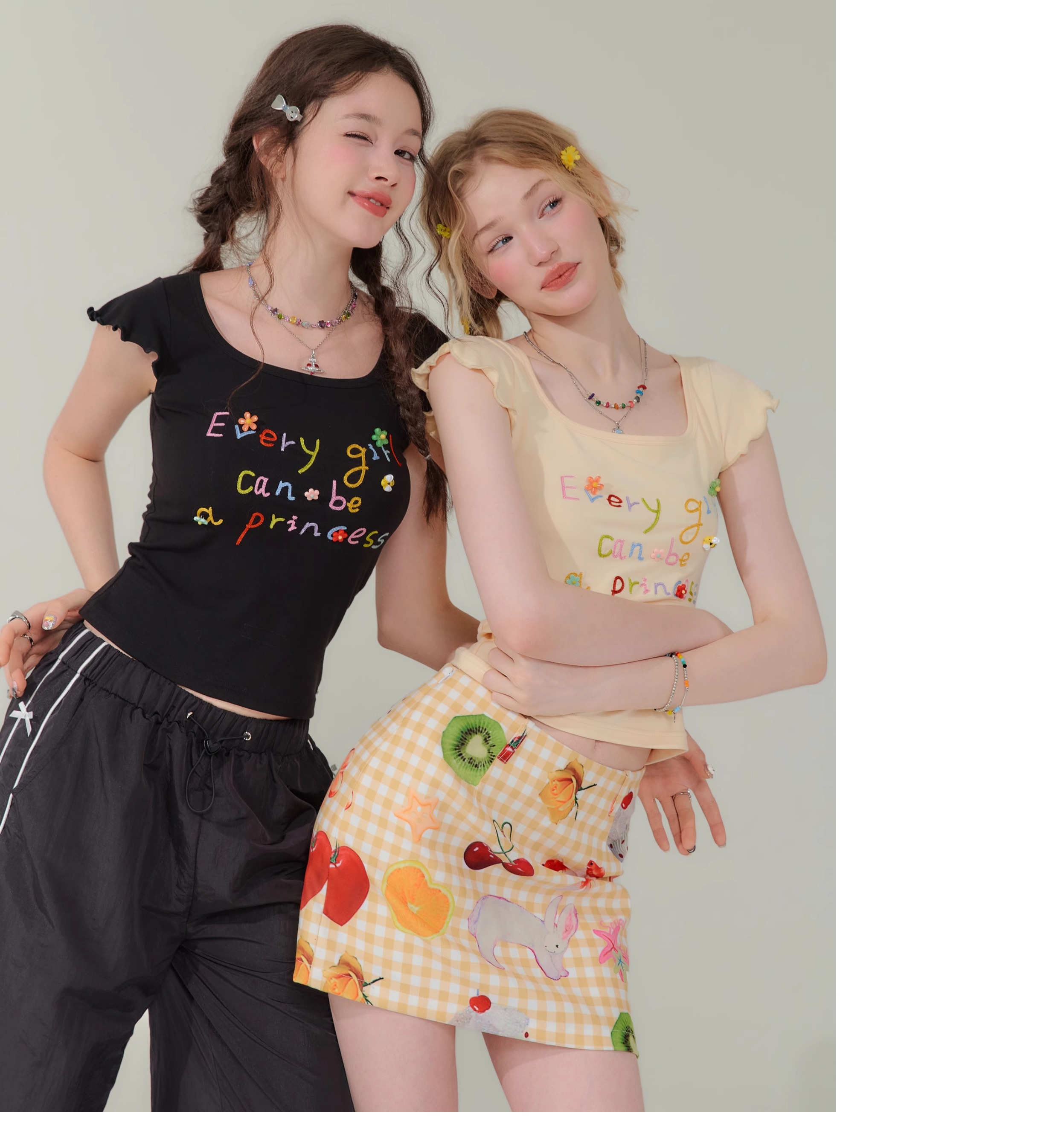 Square Neck Slim Fit Embroidered Tank Top | Retro Flying Sleeve Design