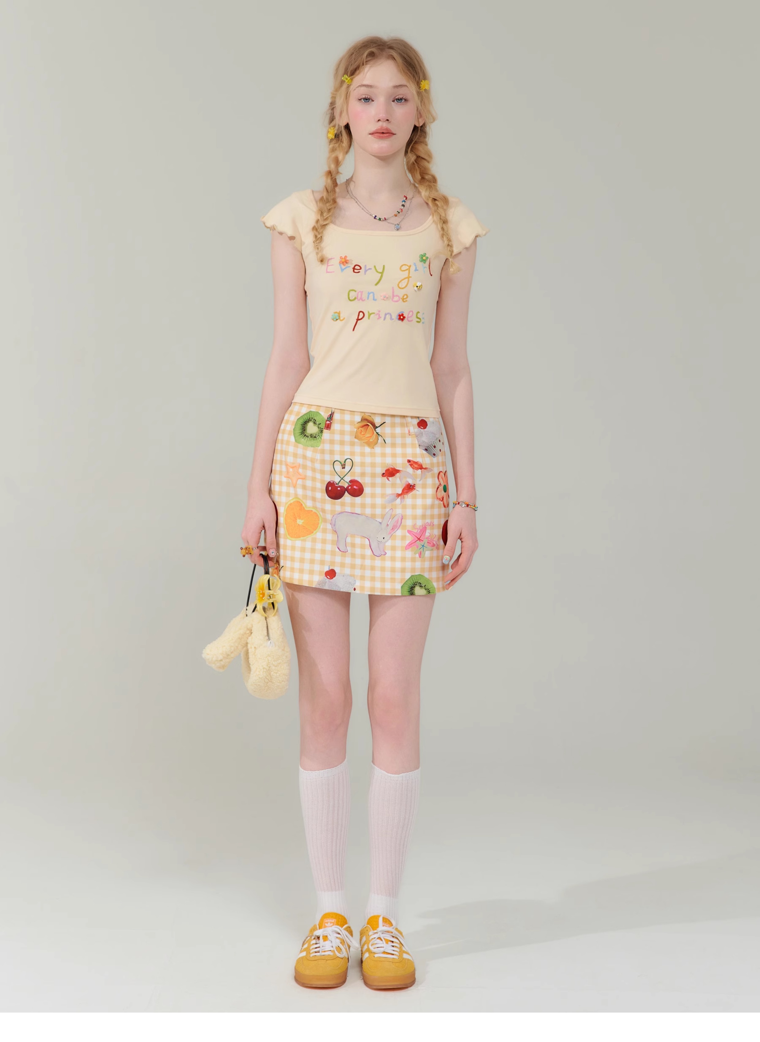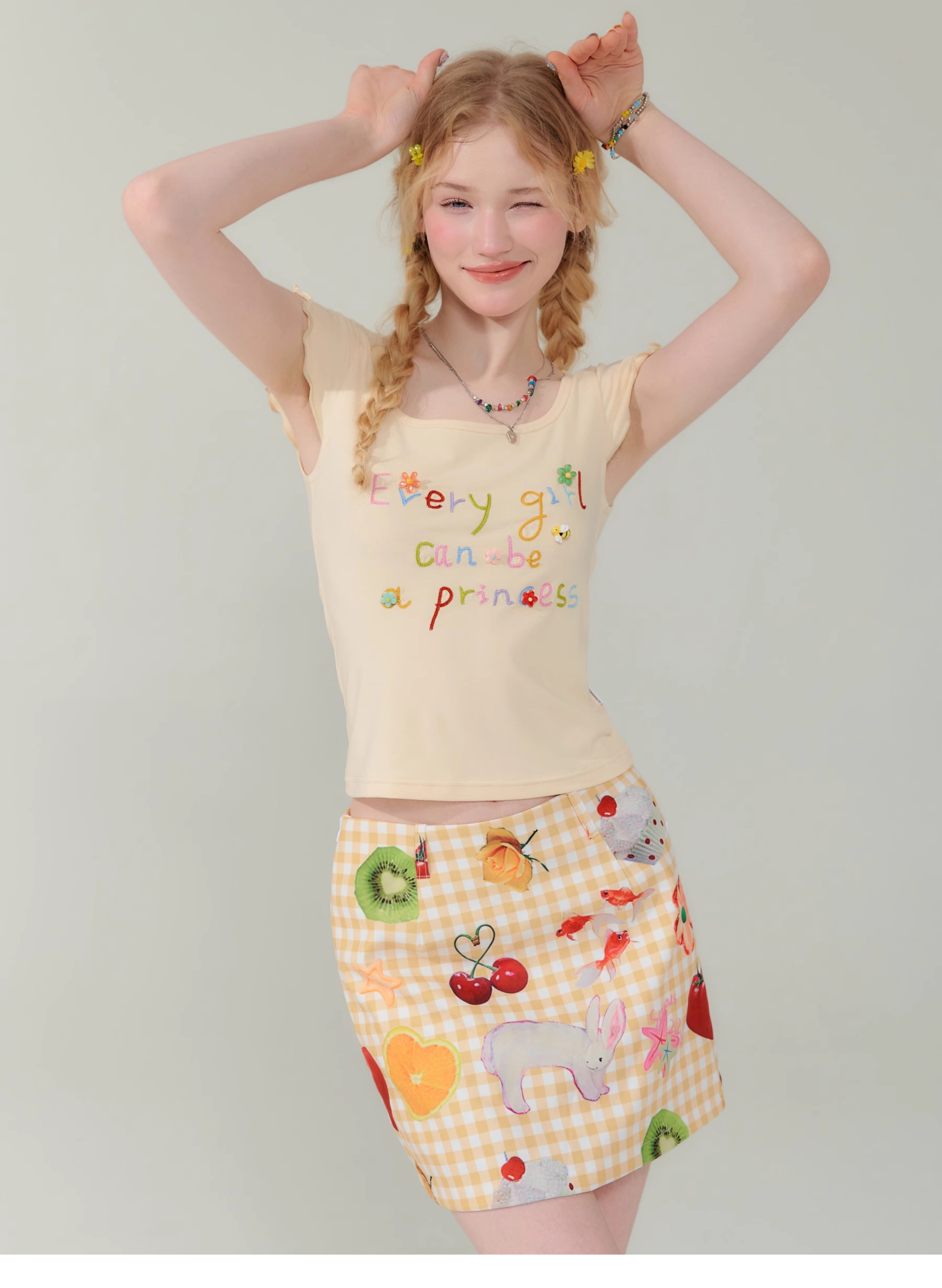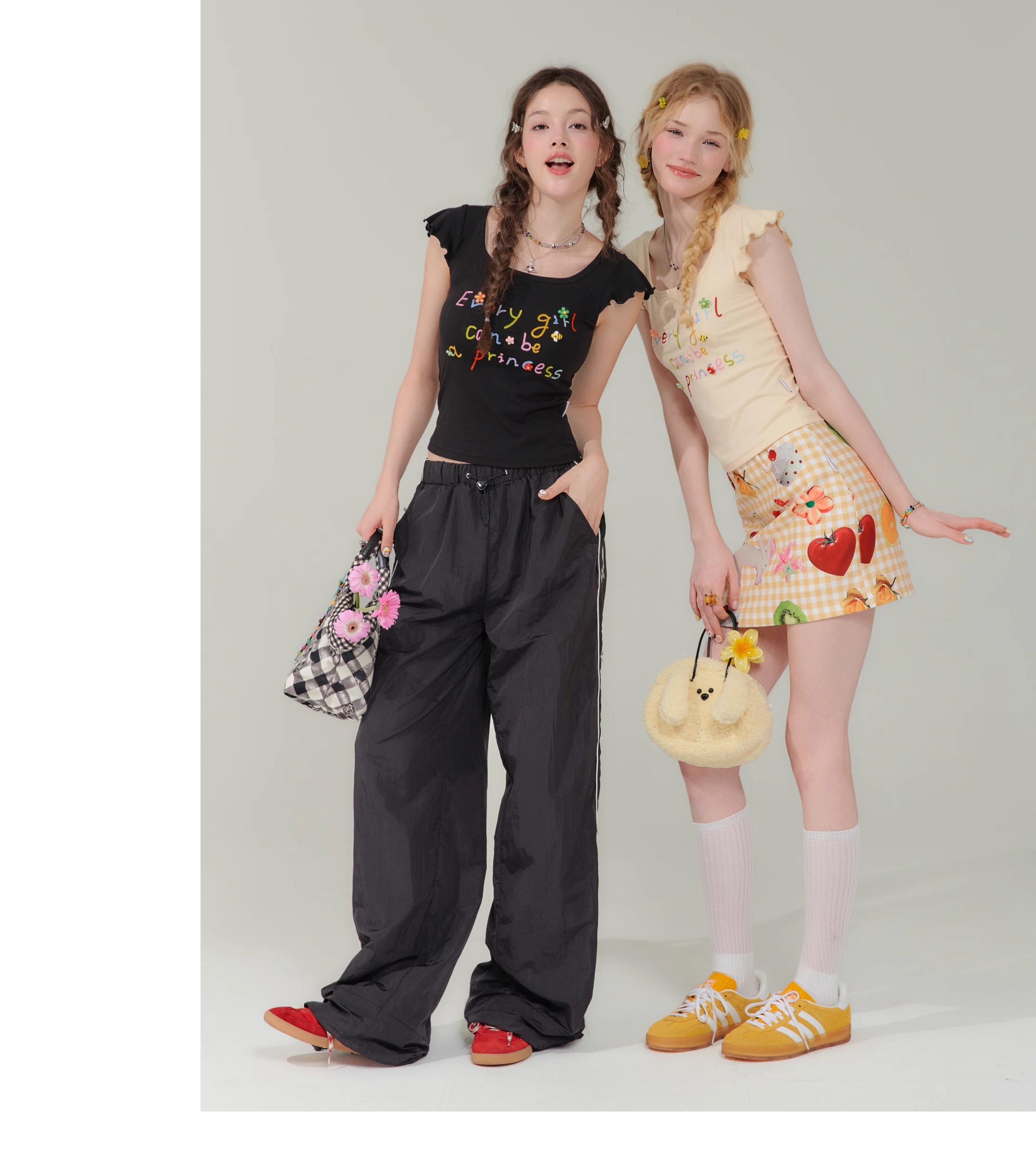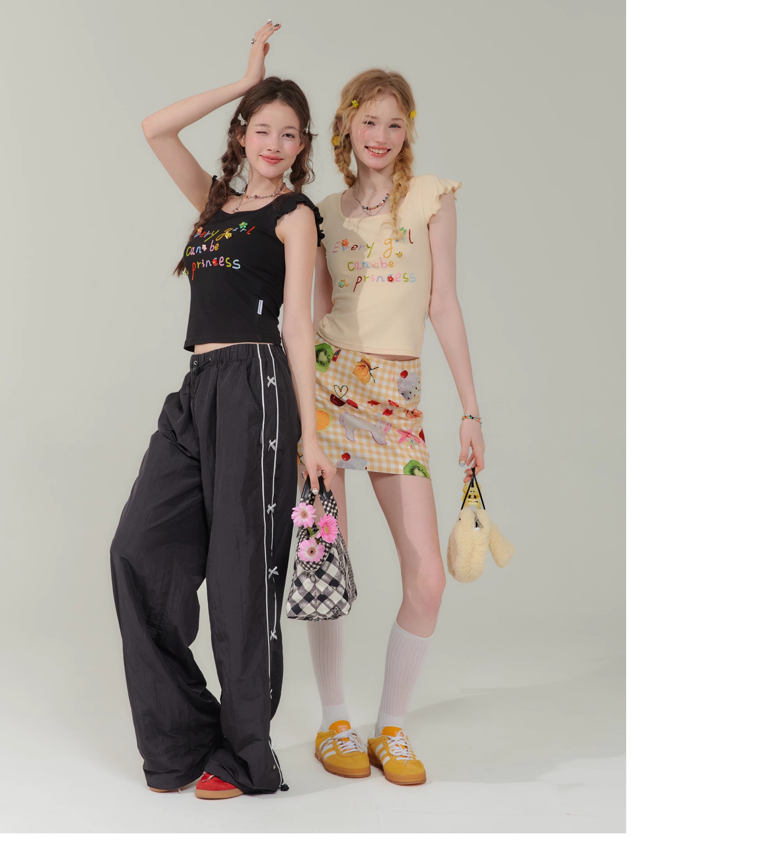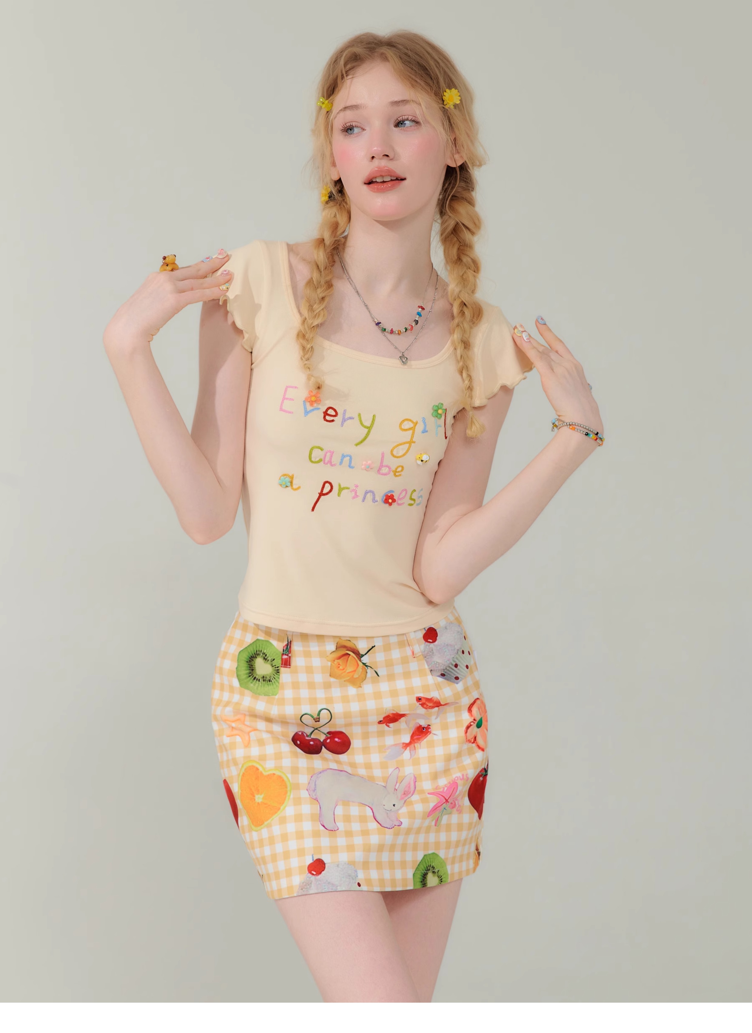 Square Neck Slim Fit Embroidered Tank Top | Retro Flying Sleeve Design