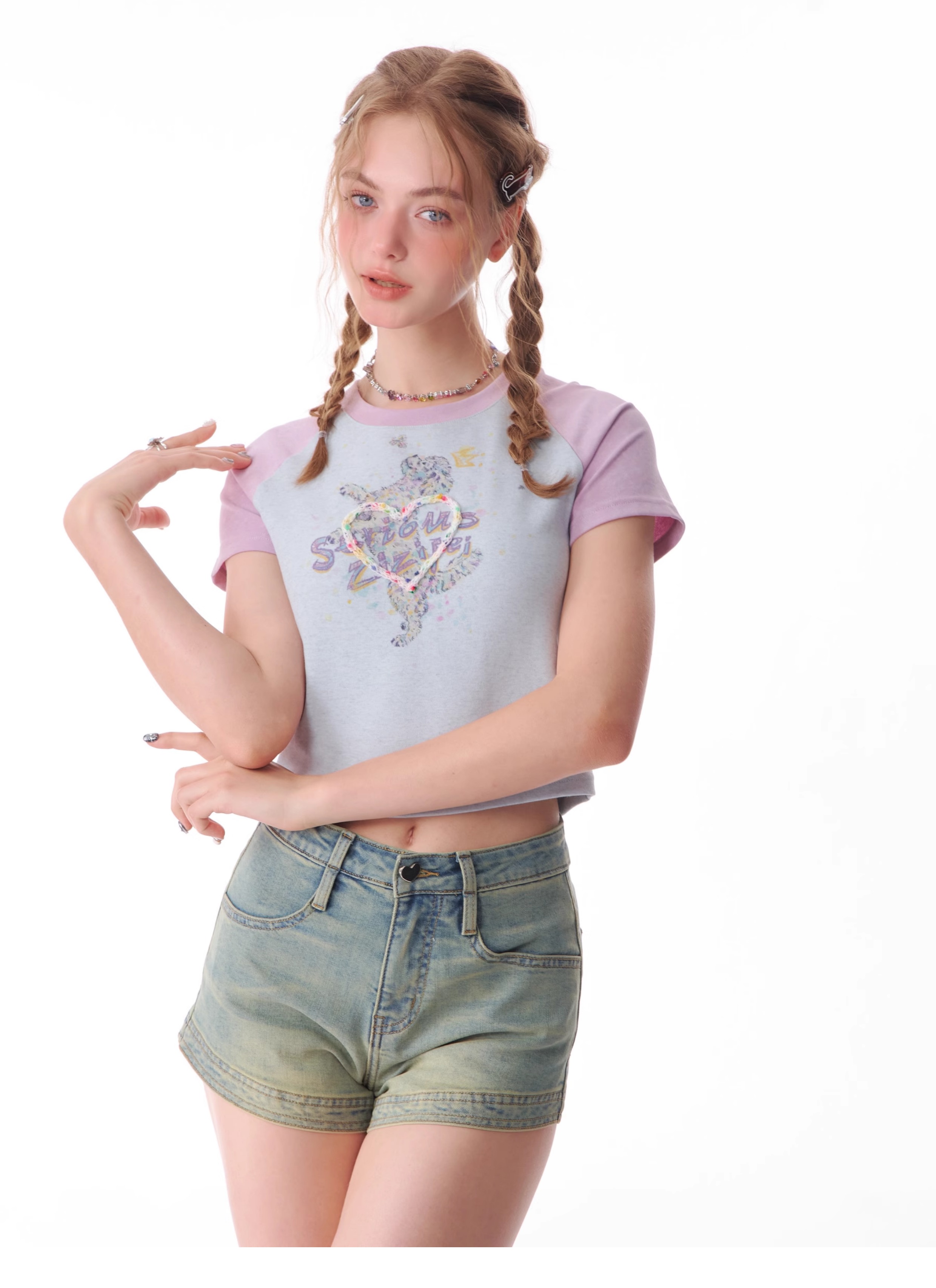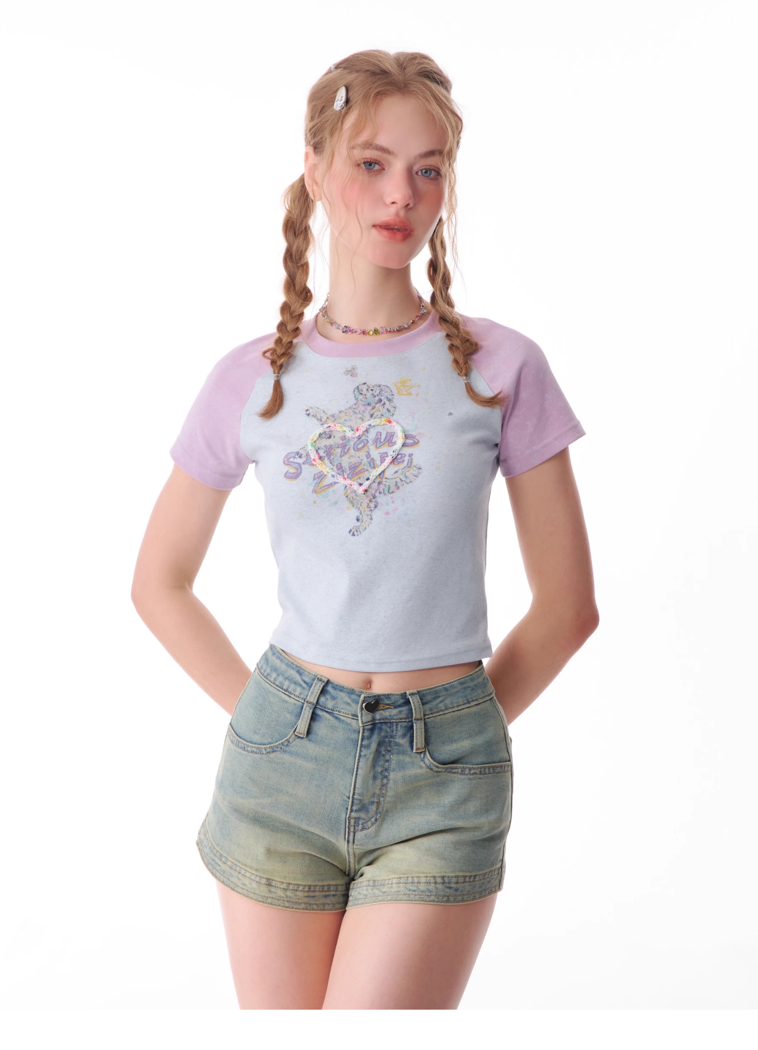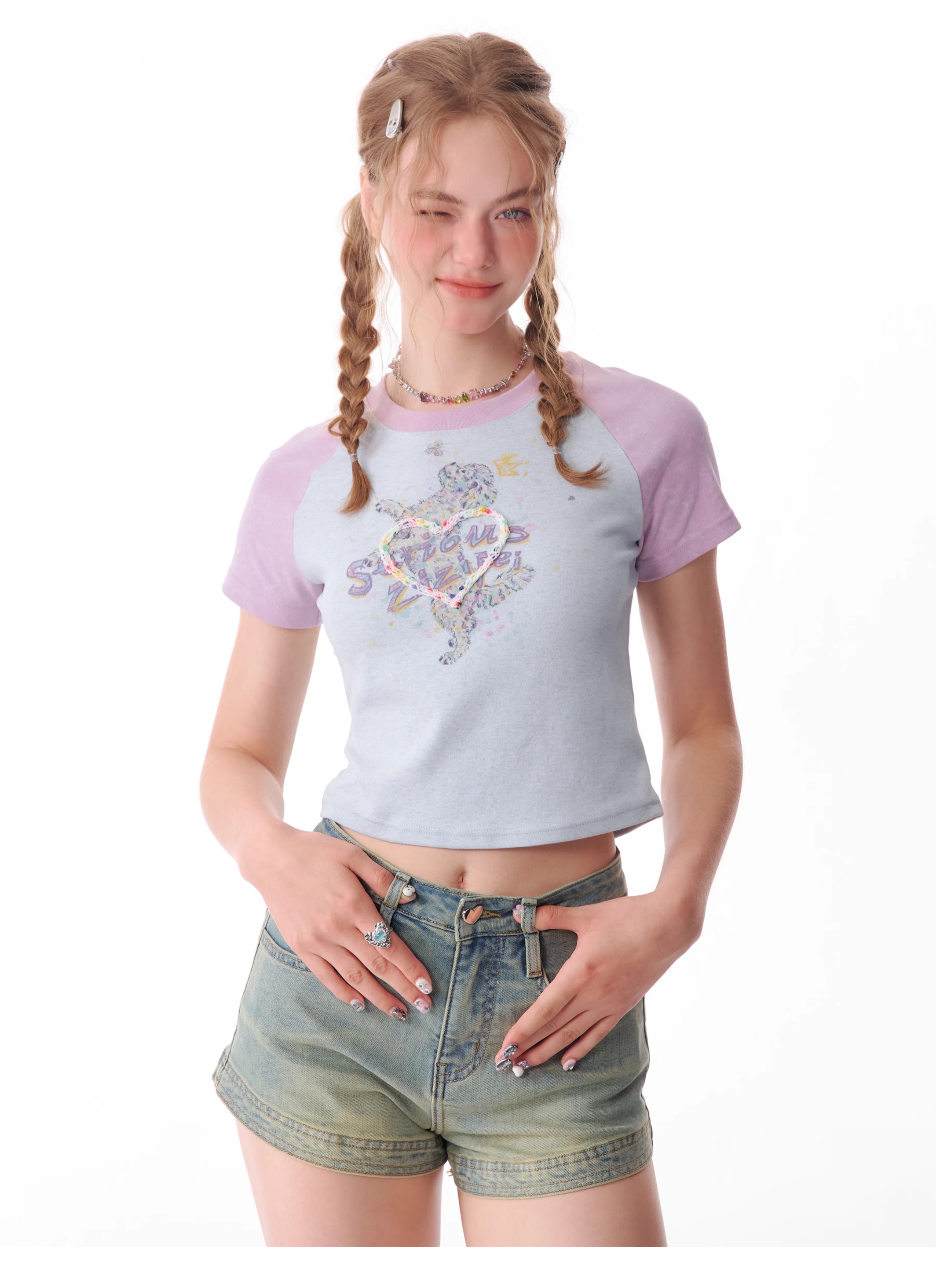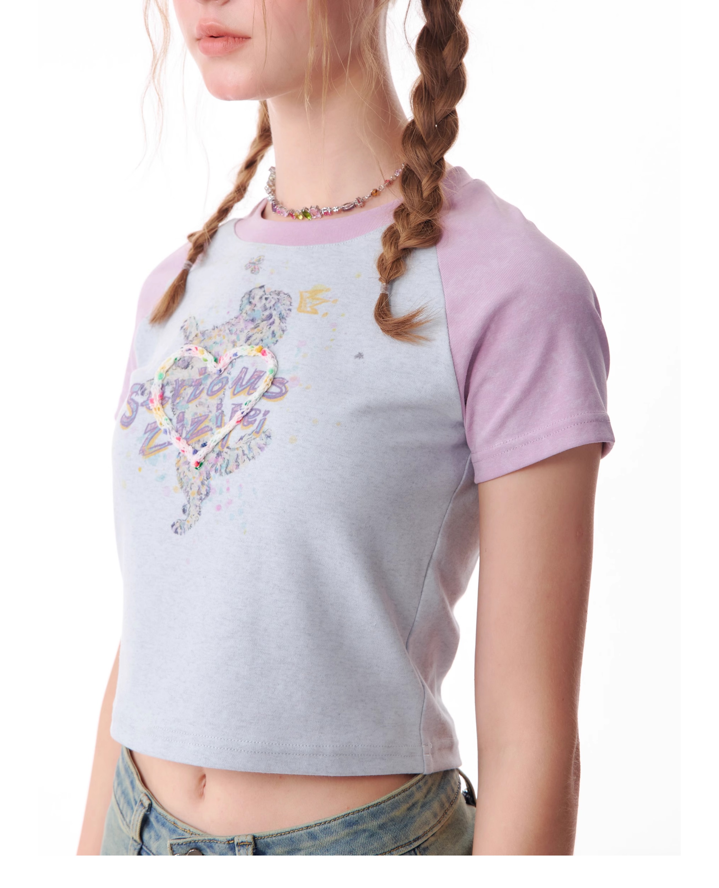 3D Love Dog Print T-shirt | Raglan Sleeve Contrast Design for Summer