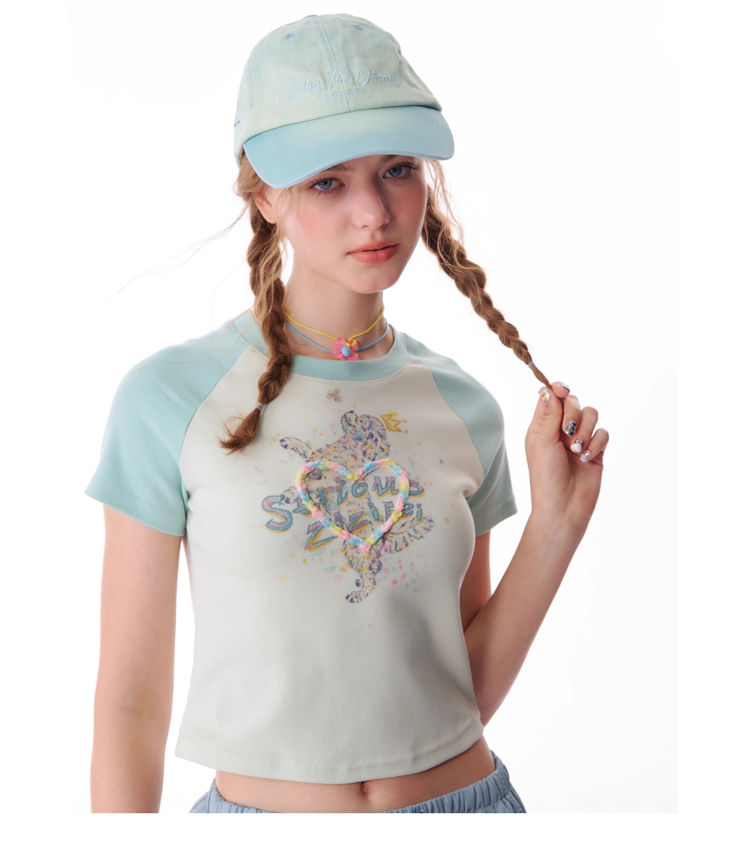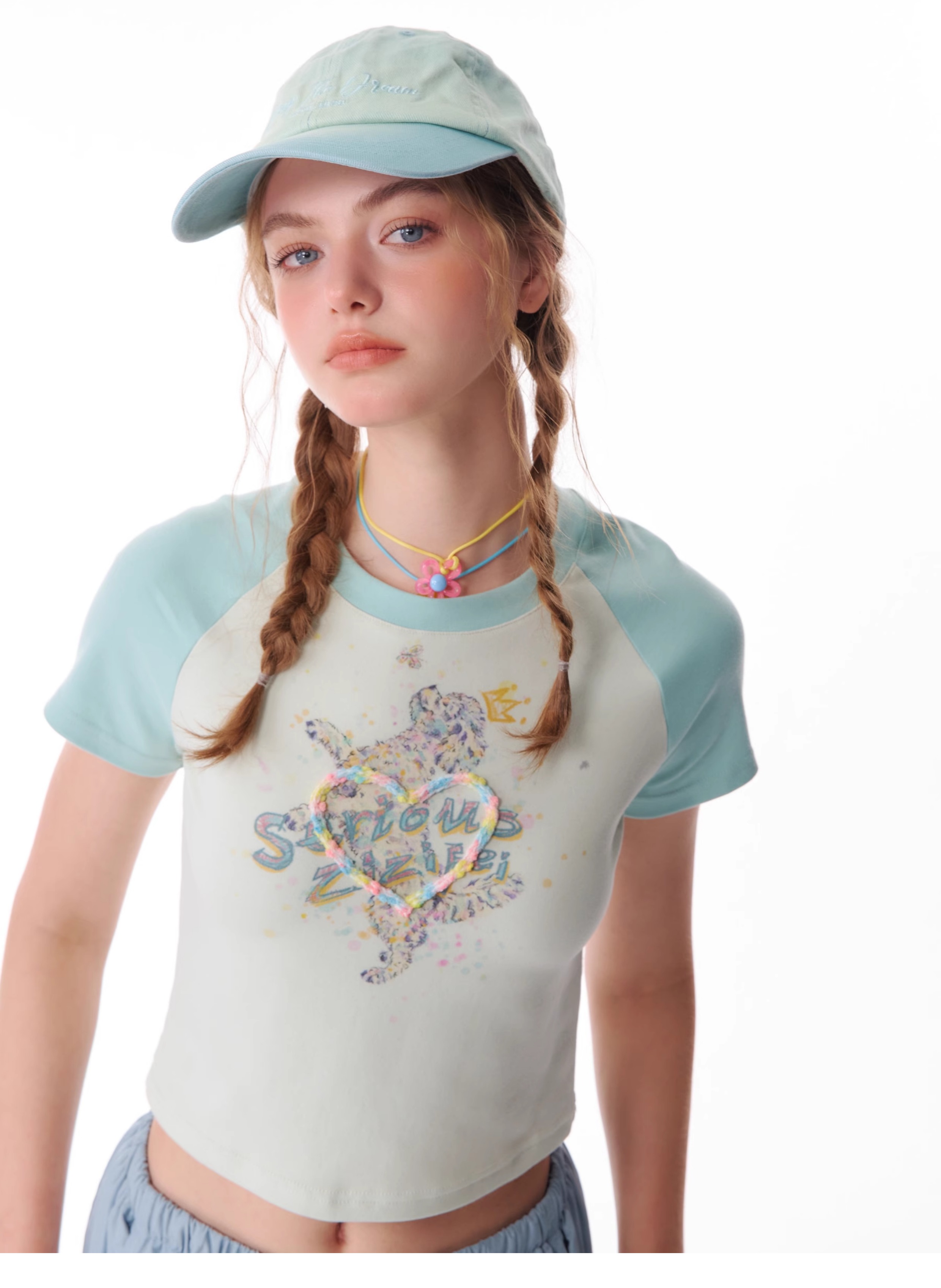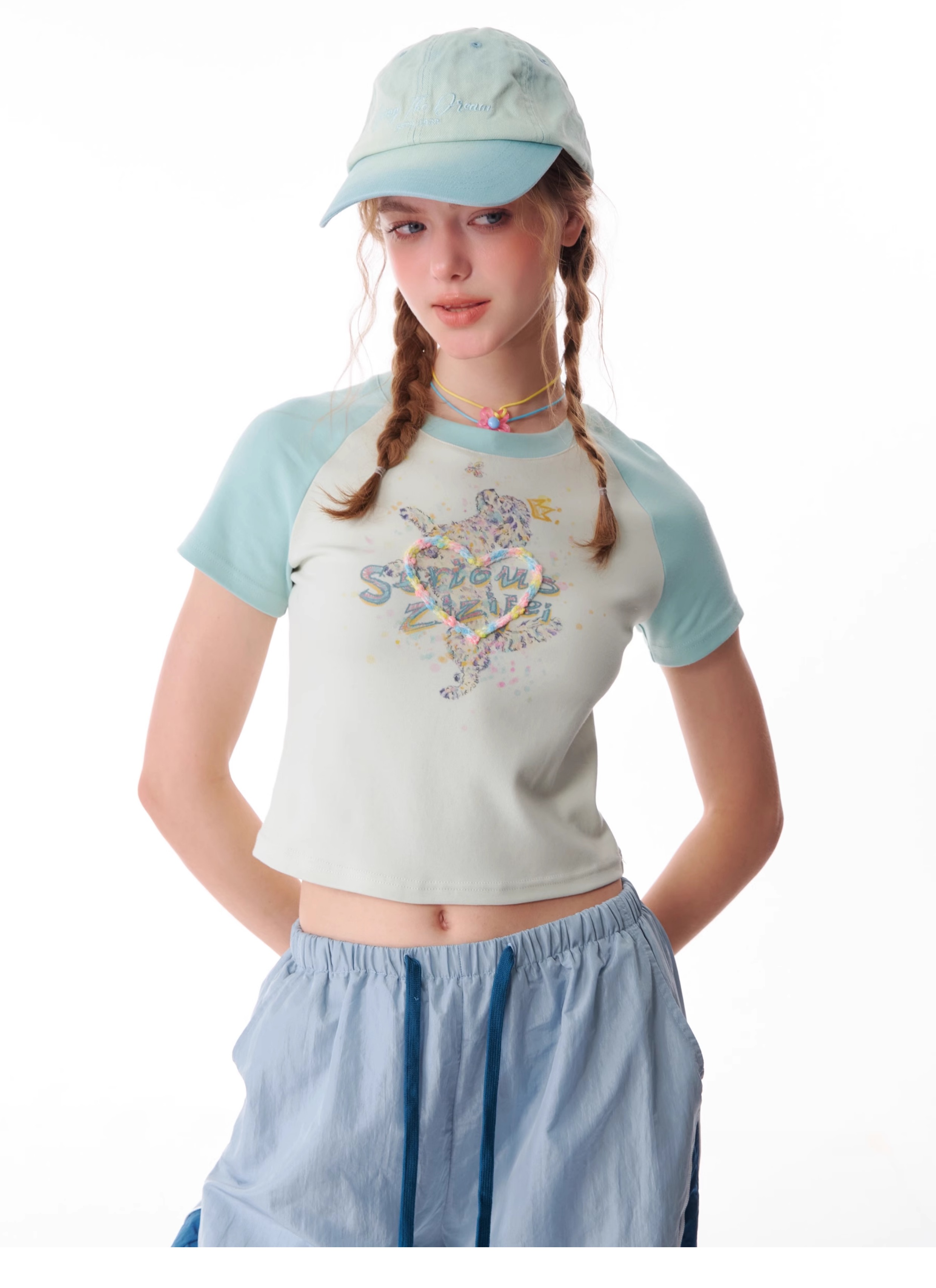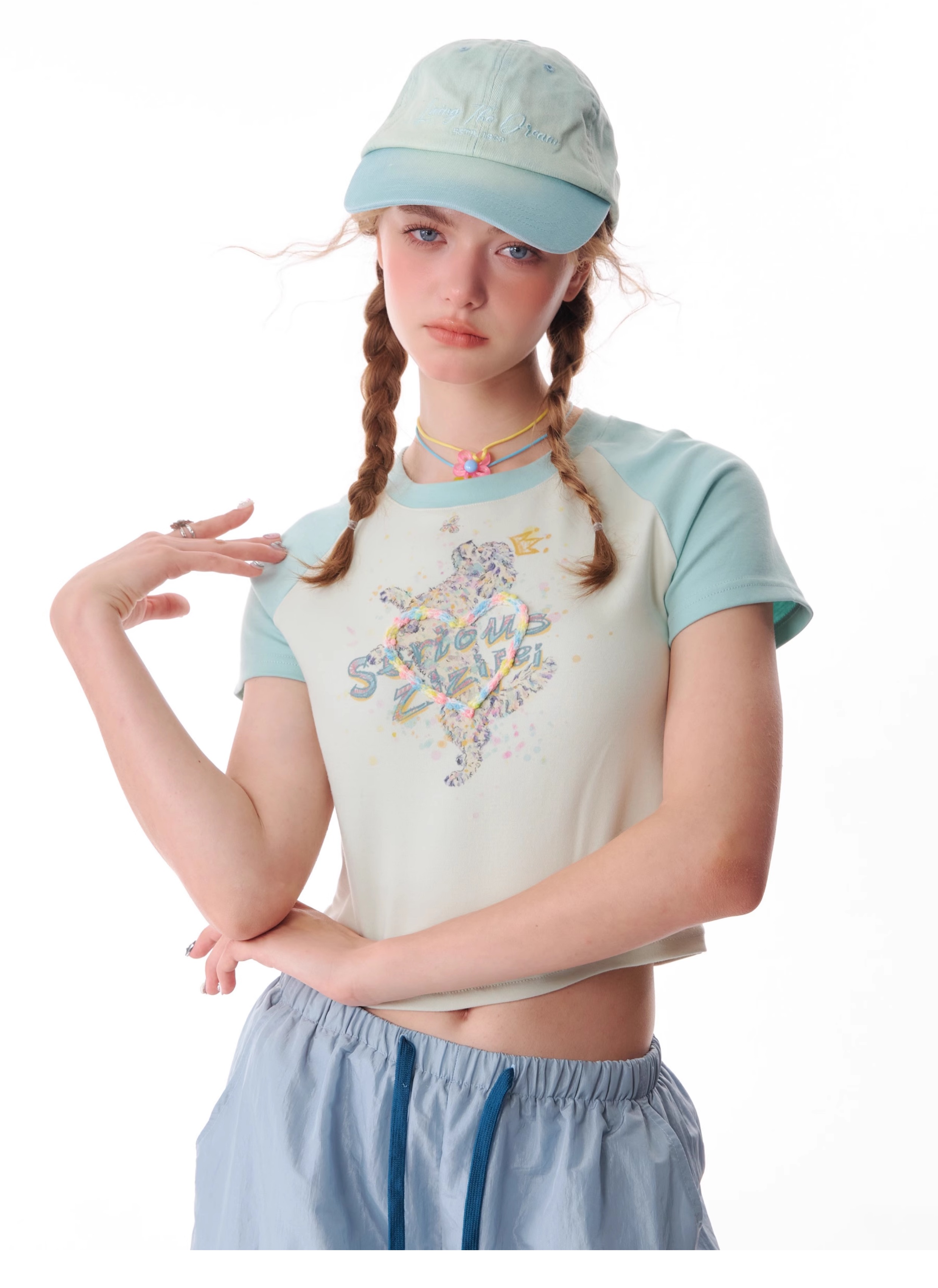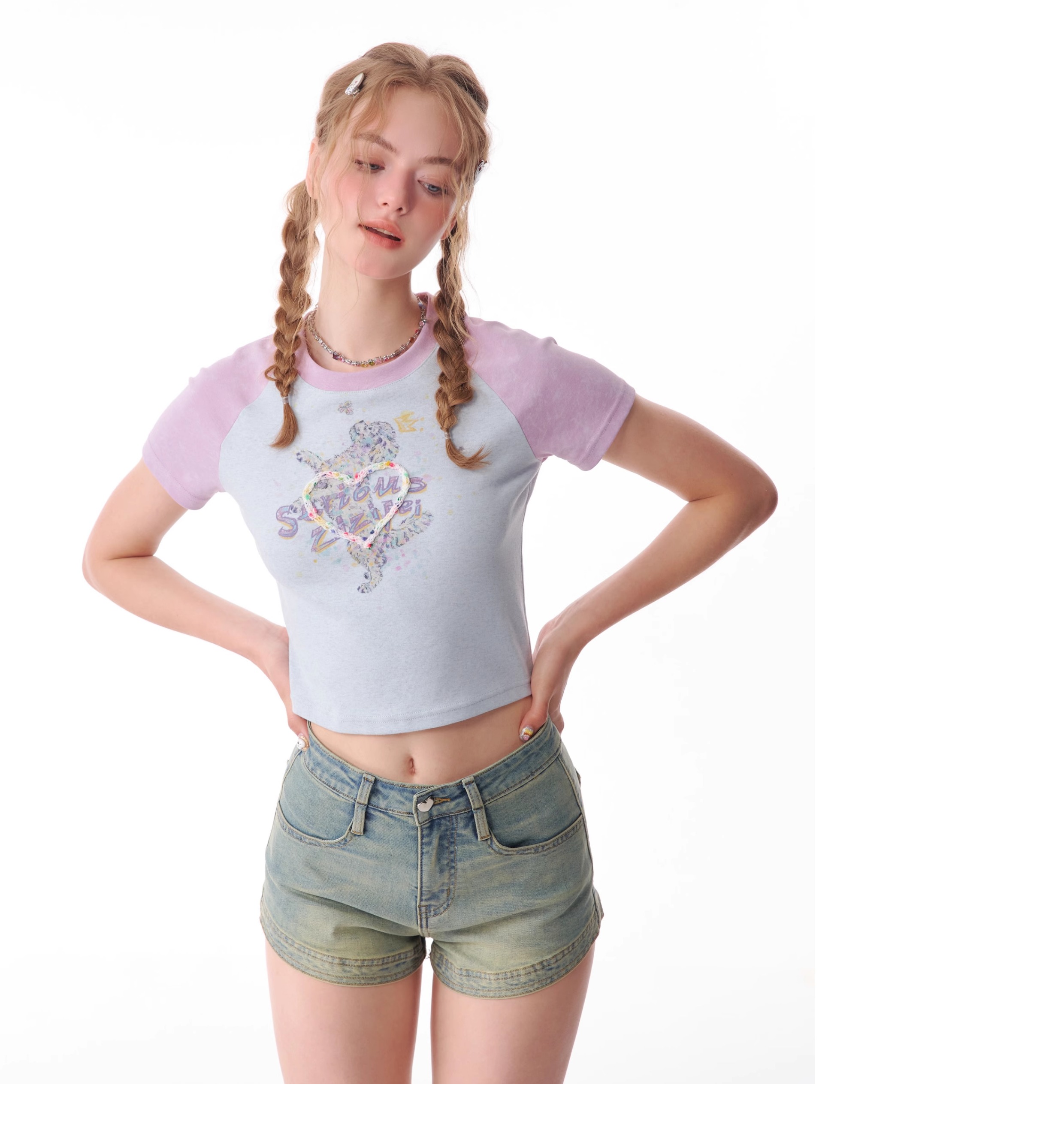 3D Love Dog Print T-shirt | Raglan Sleeve Contrast Design for Summer
