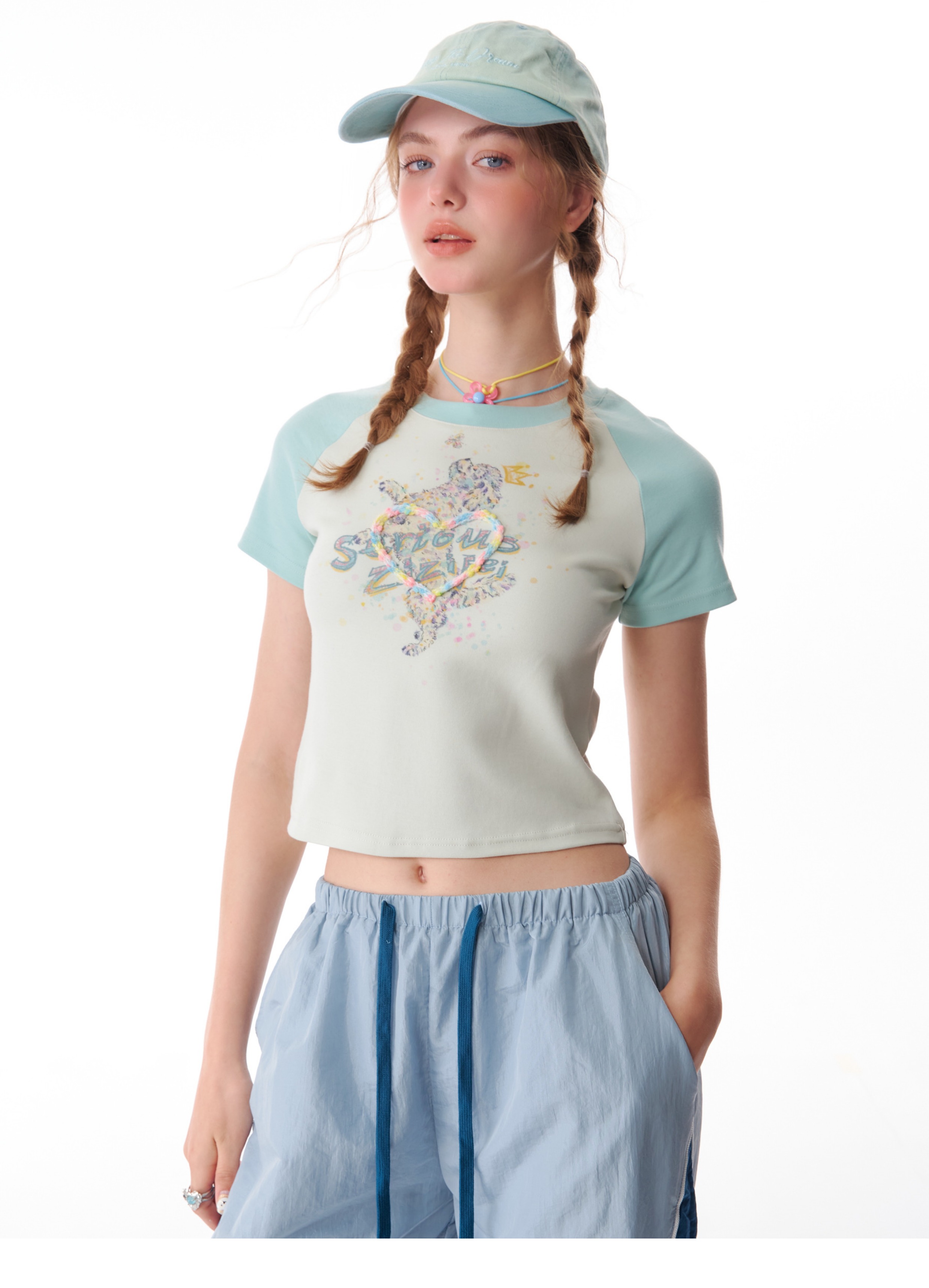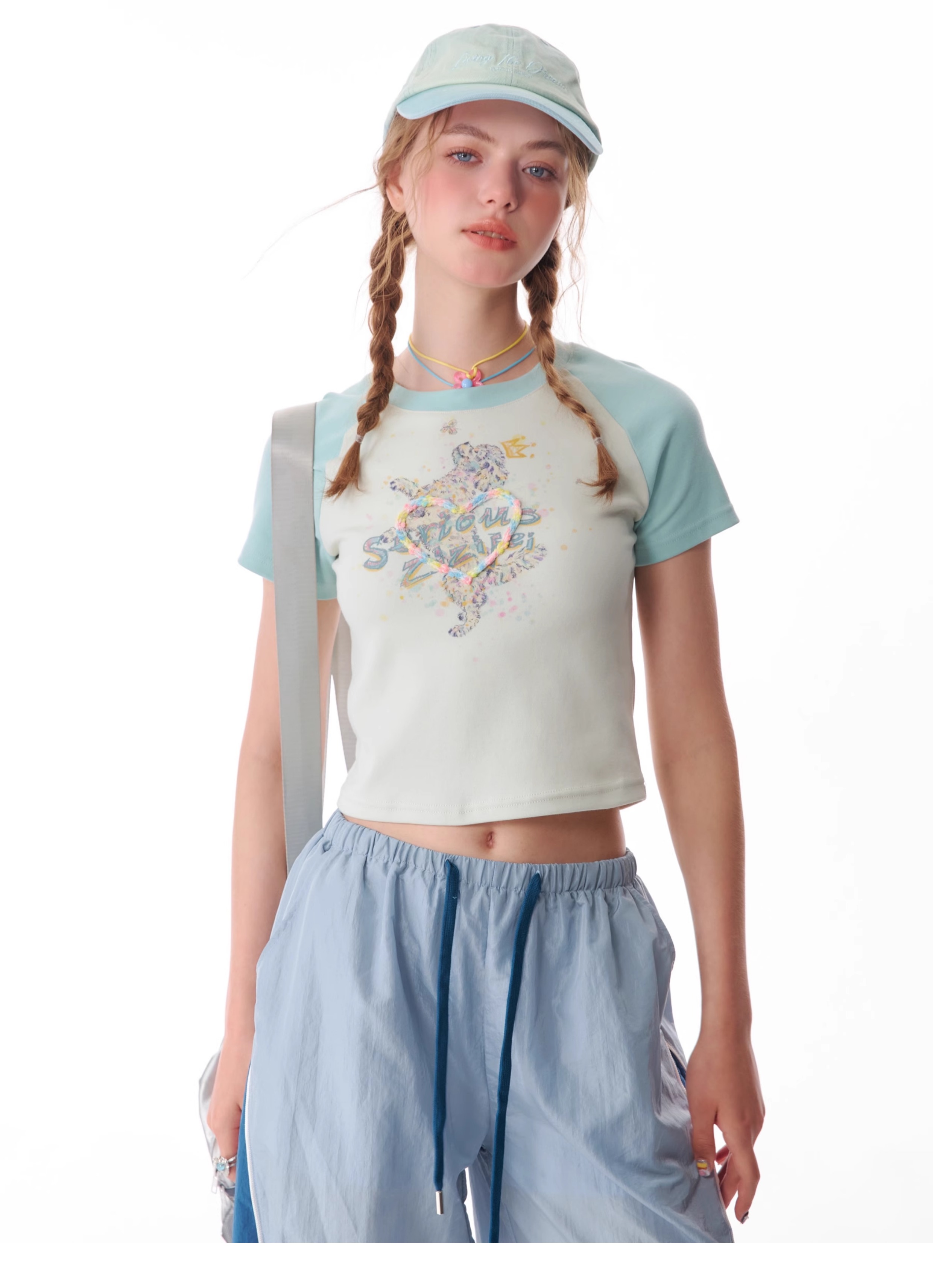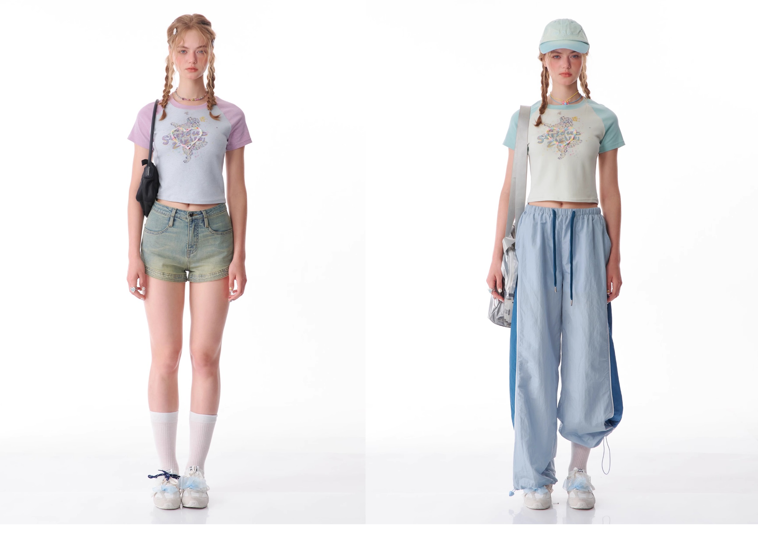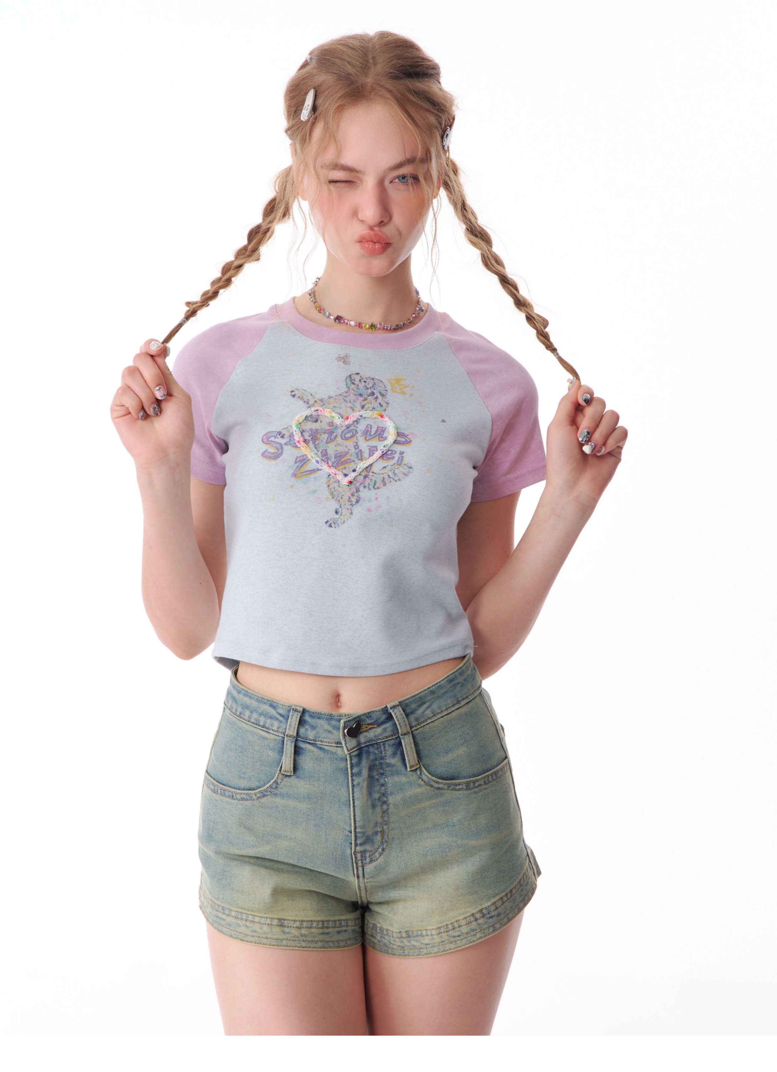 3D Love Dog Print T-shirt | Raglan Sleeve Contrast Design for Summer