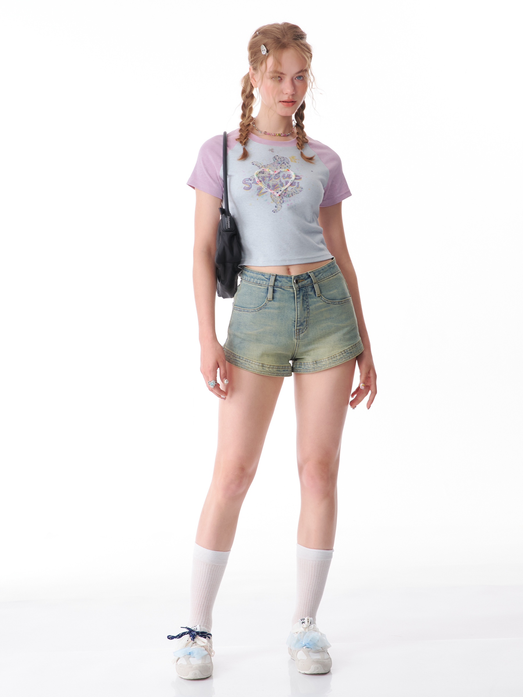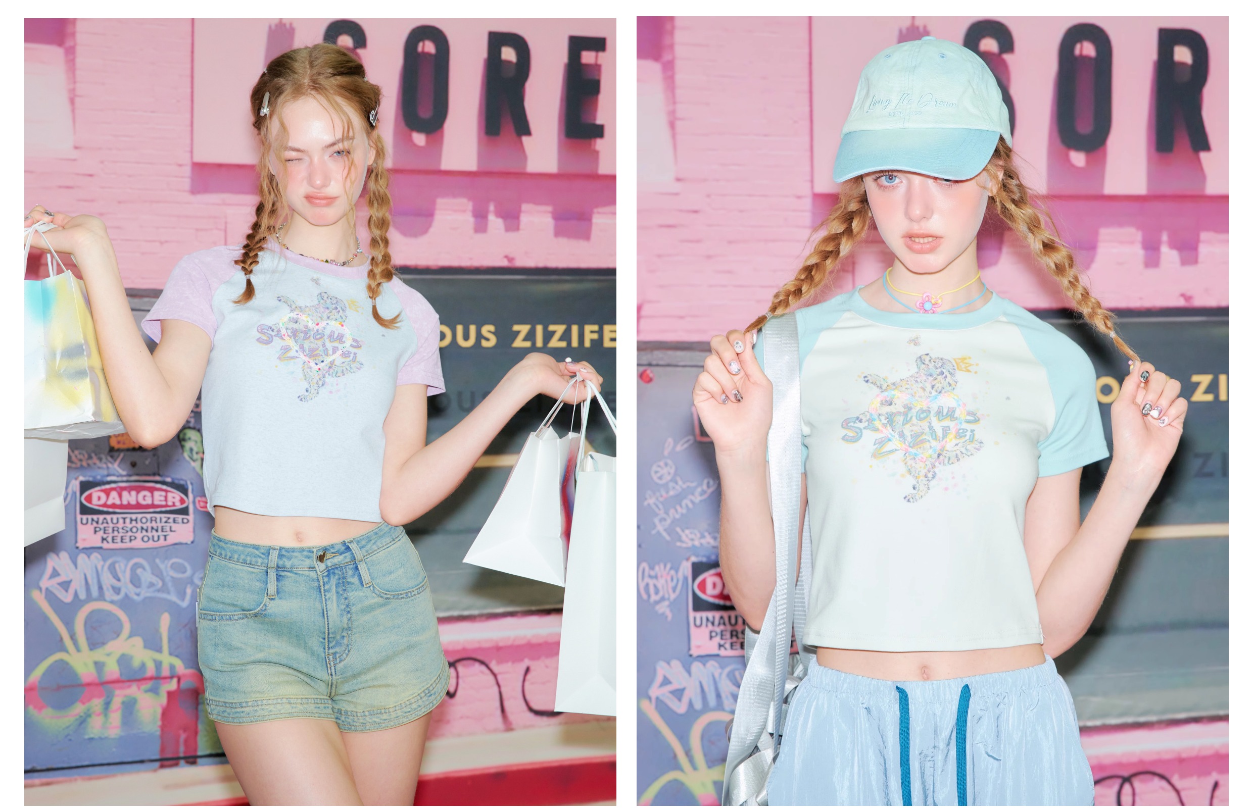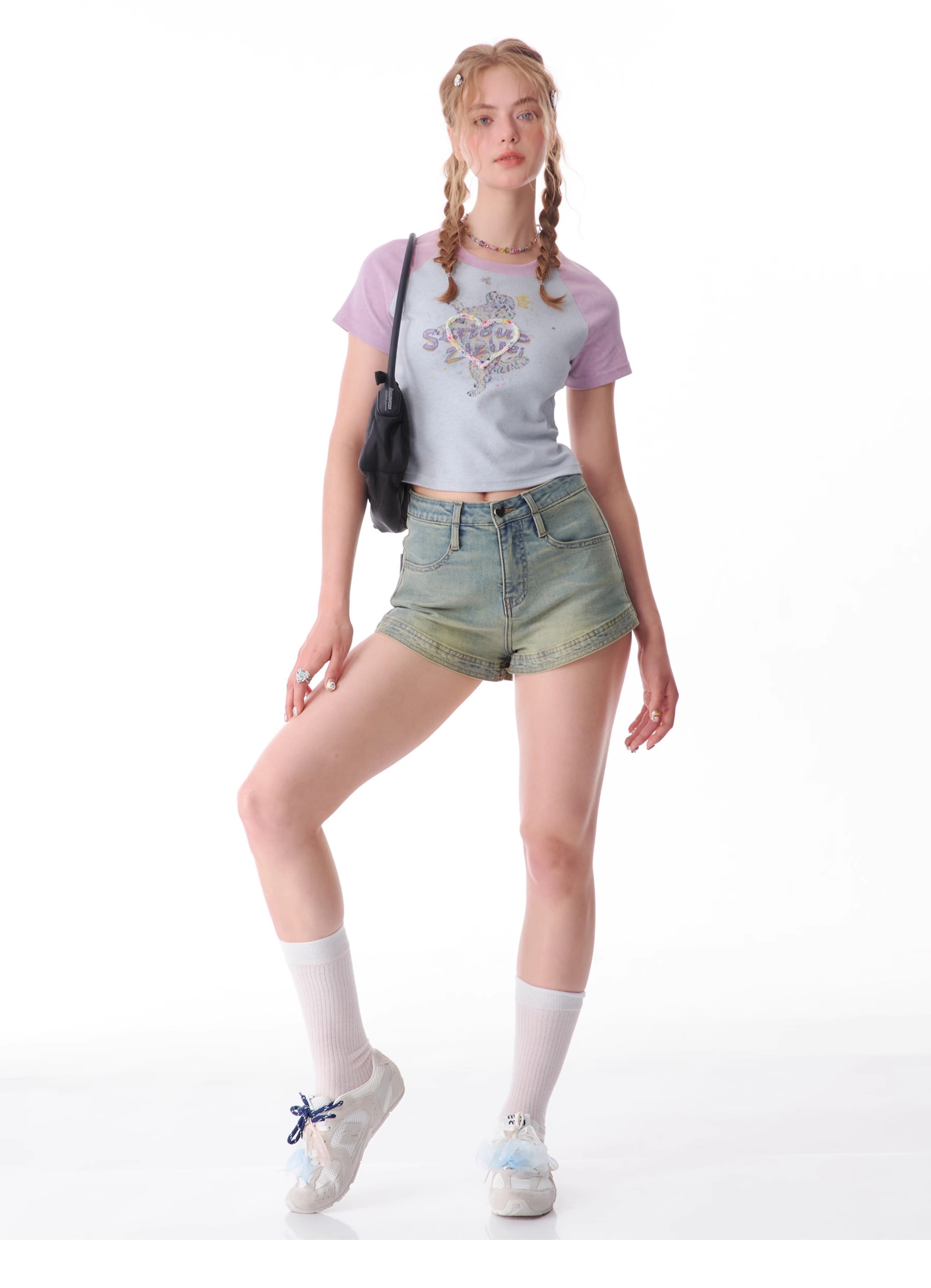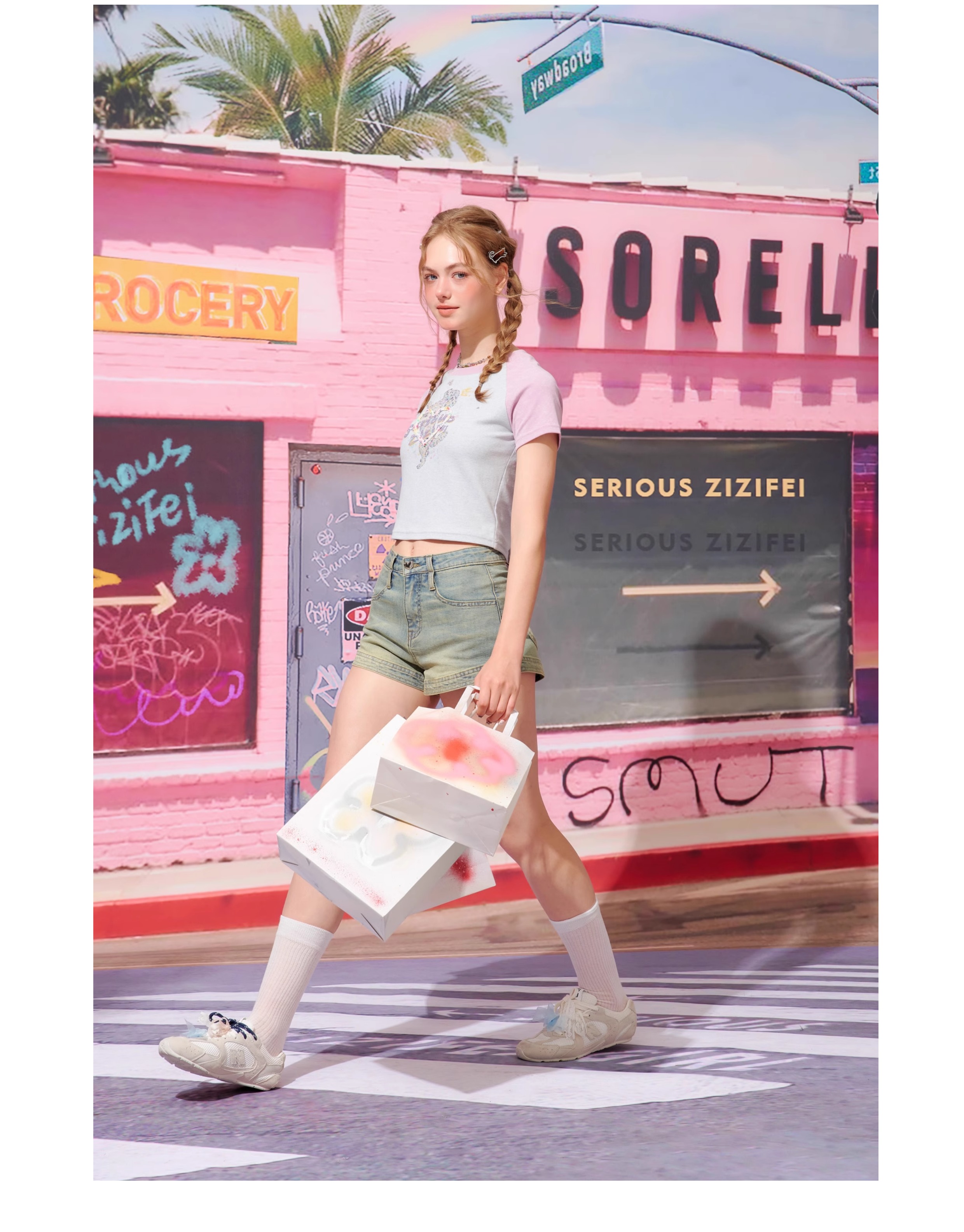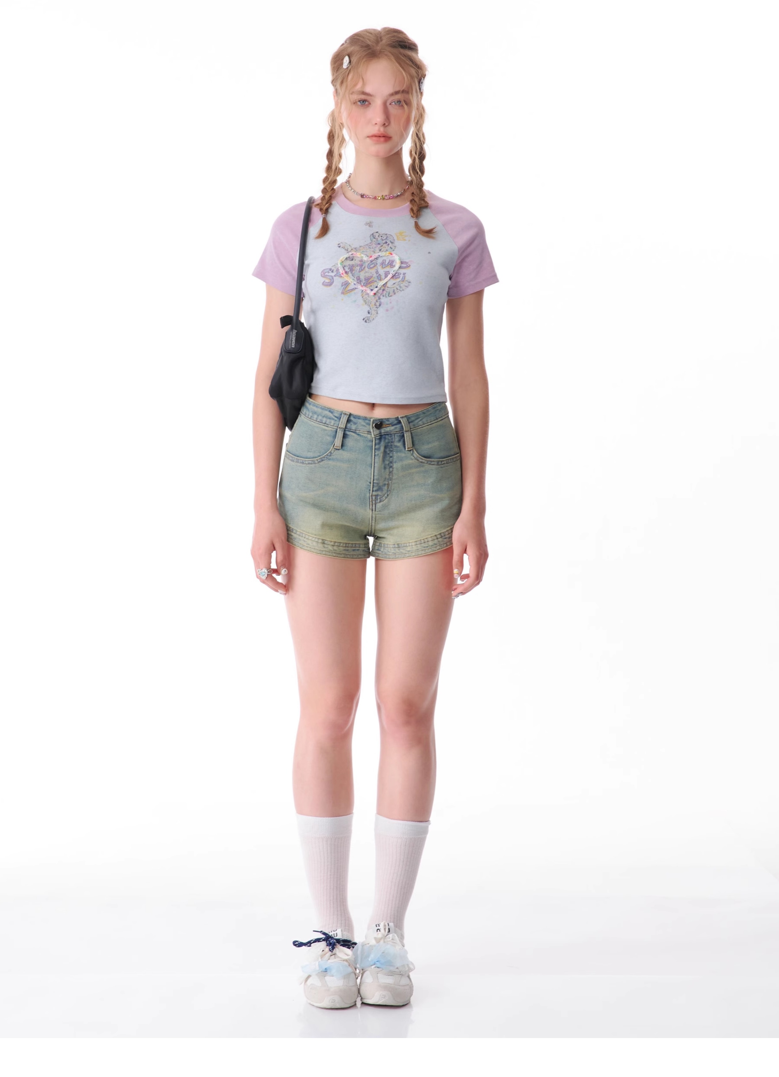 3D Love Dog Print T-shirt | Raglan Sleeve Contrast Design for Summer