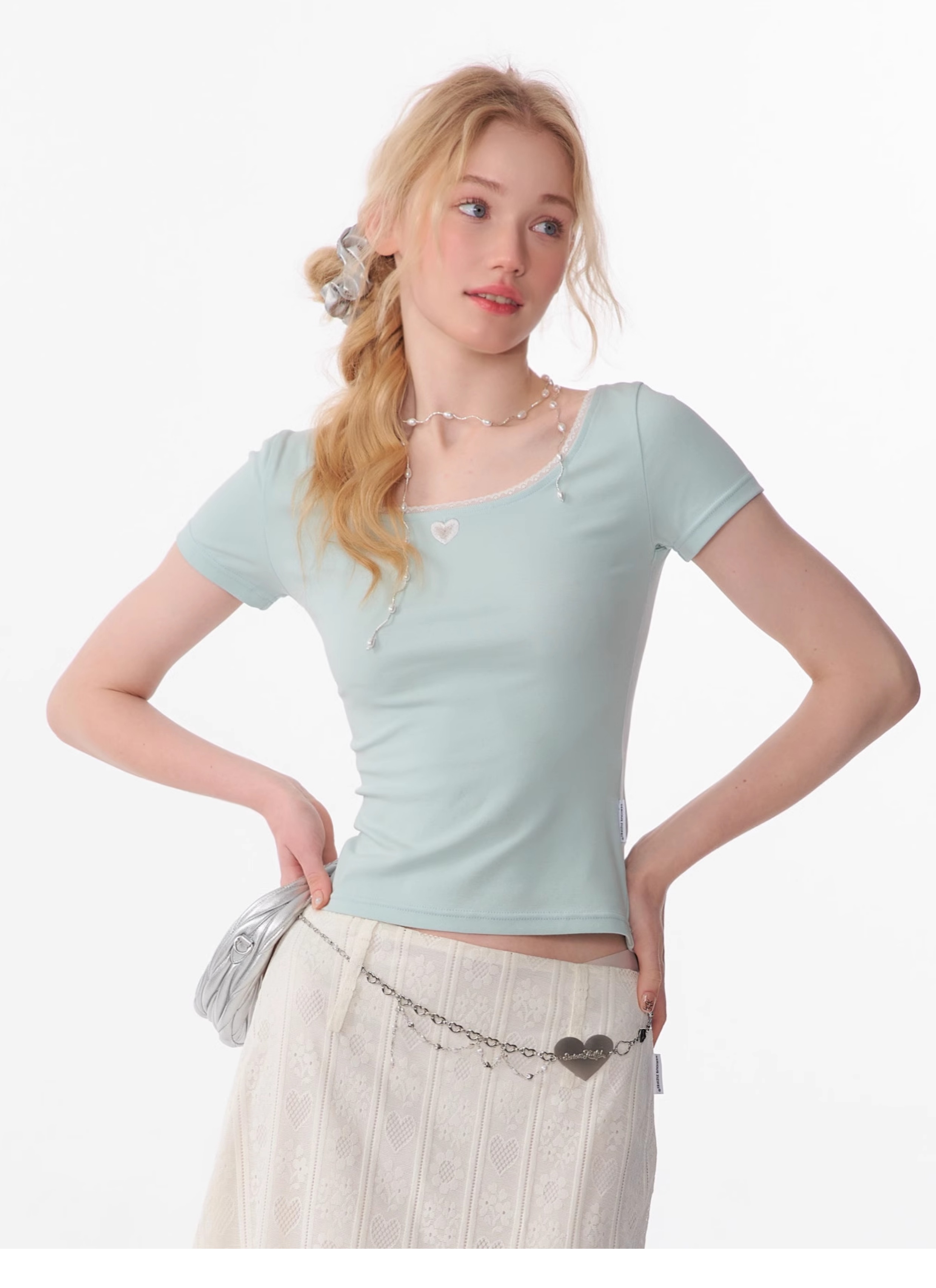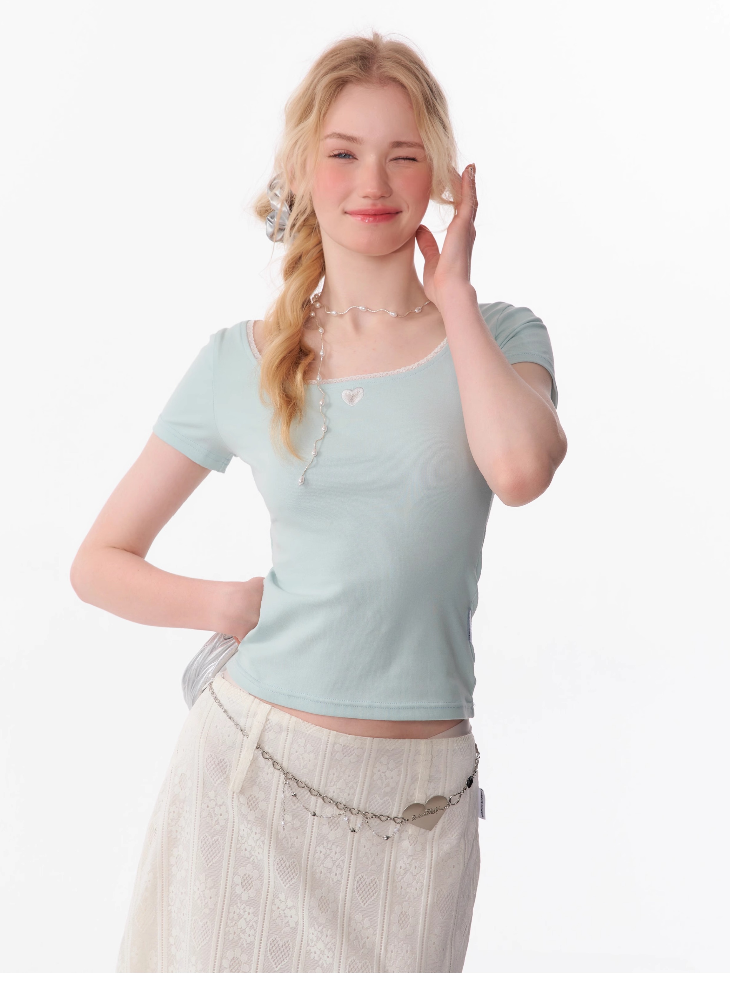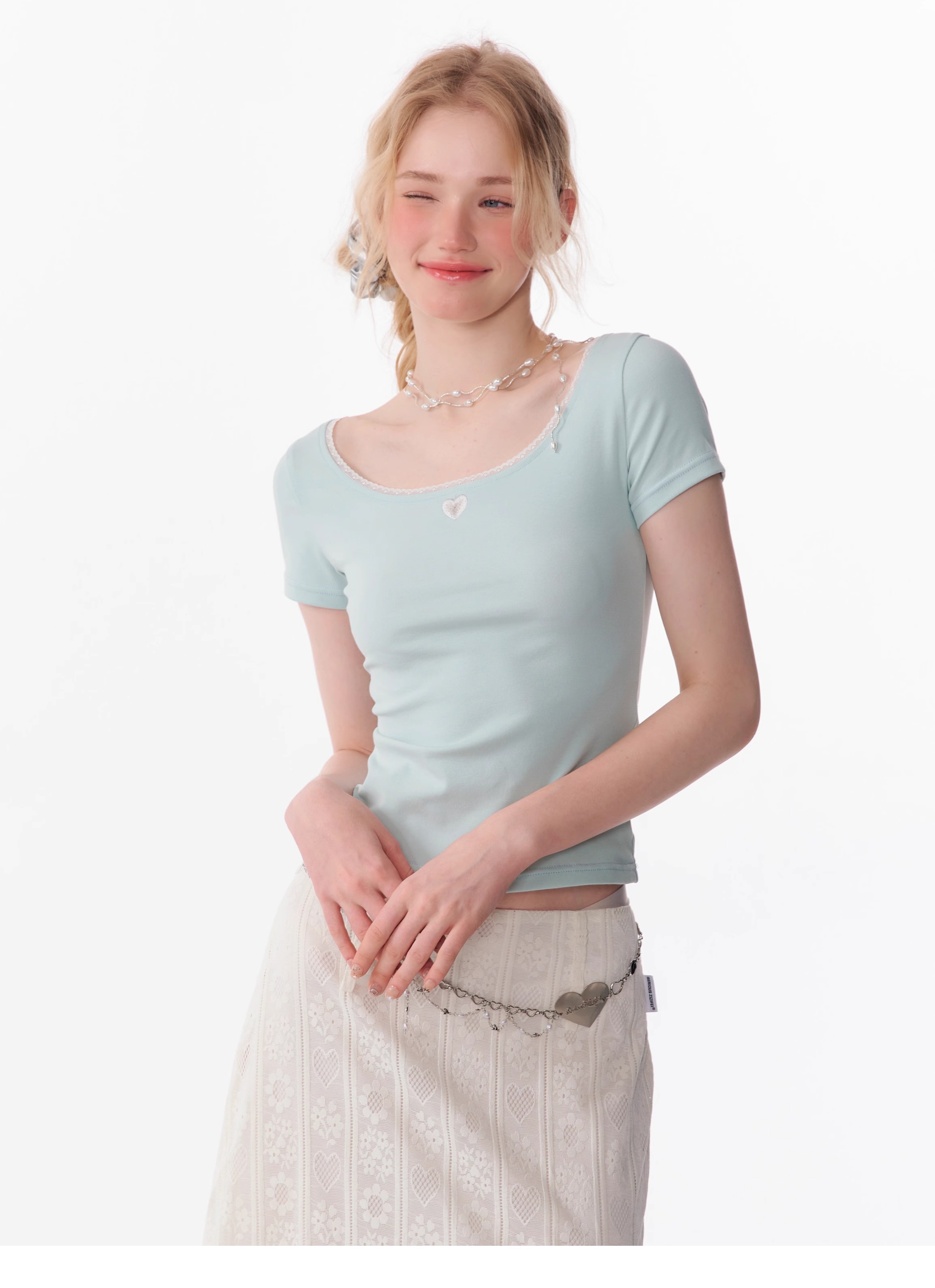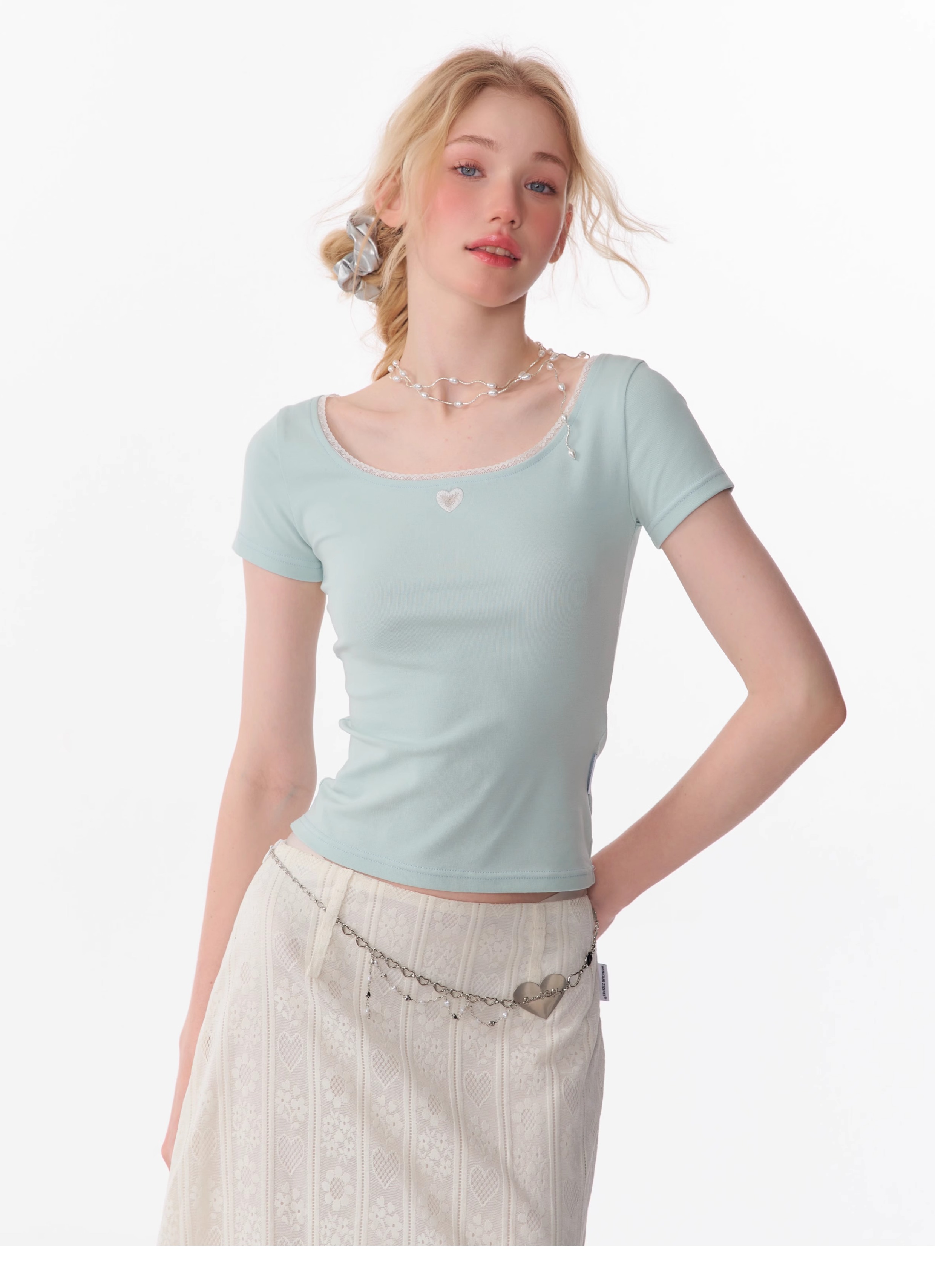 Love Embroidered Lace T-shirt | Right Shoulder Slim Fit Retro Design for Summer