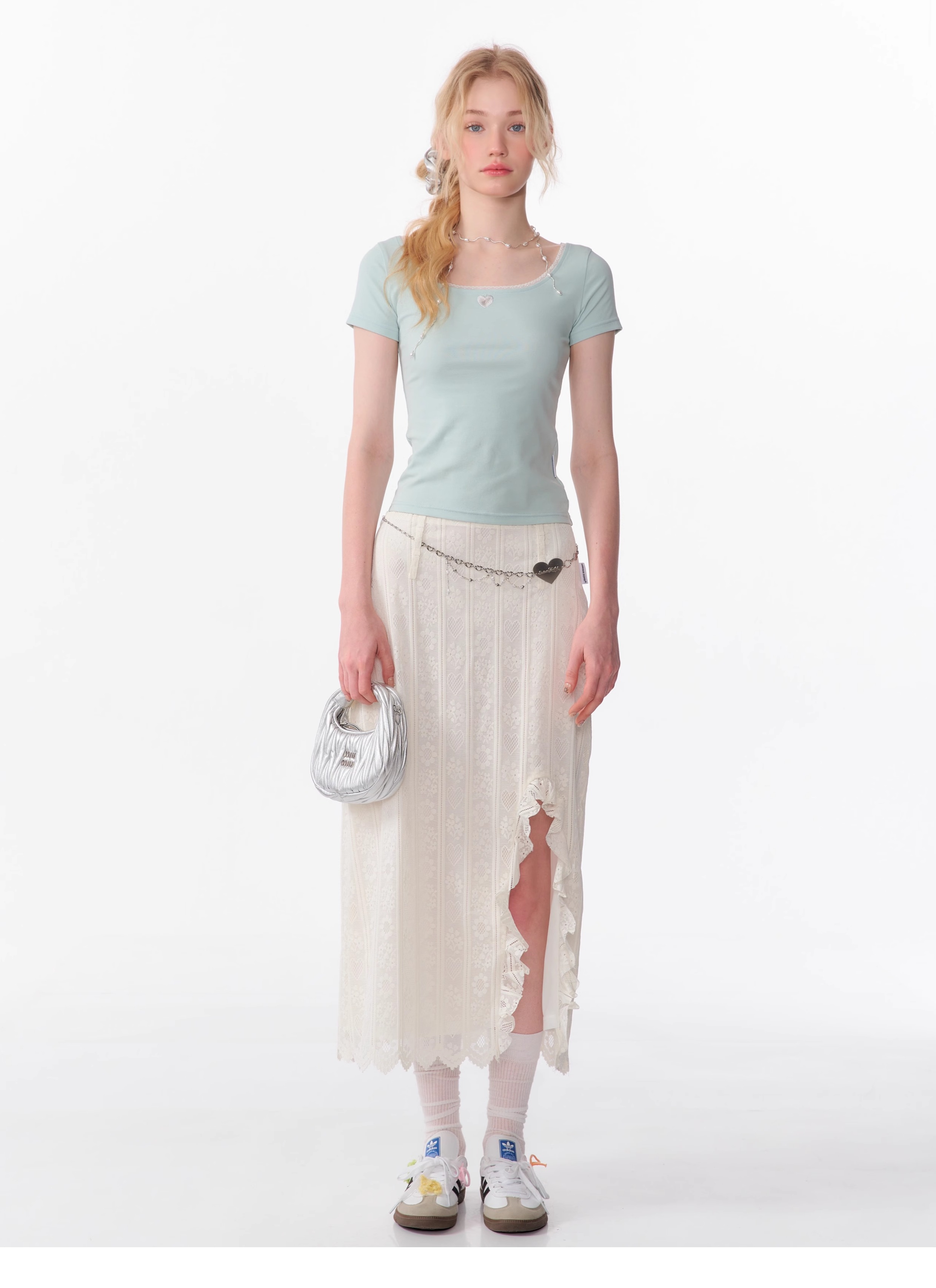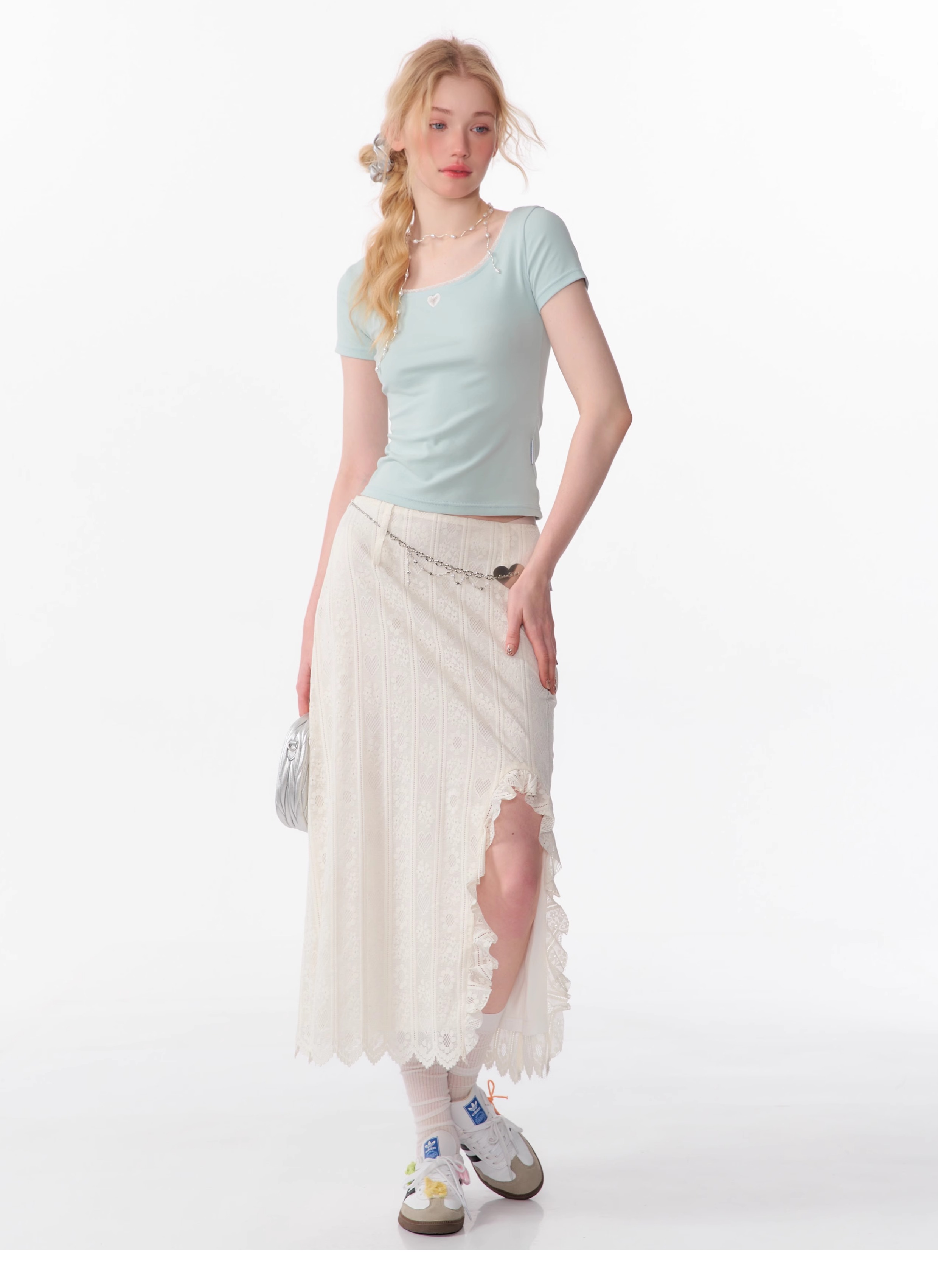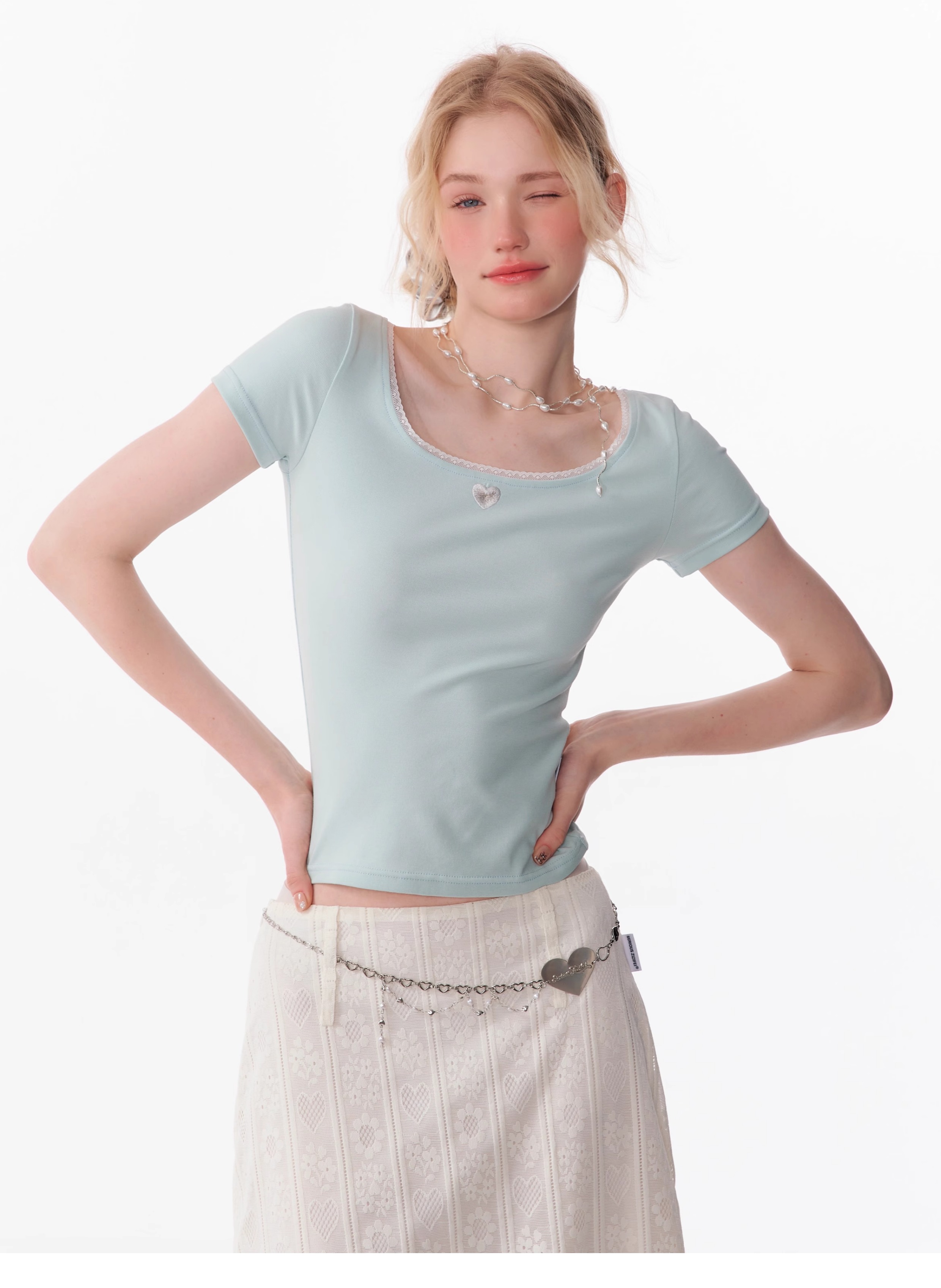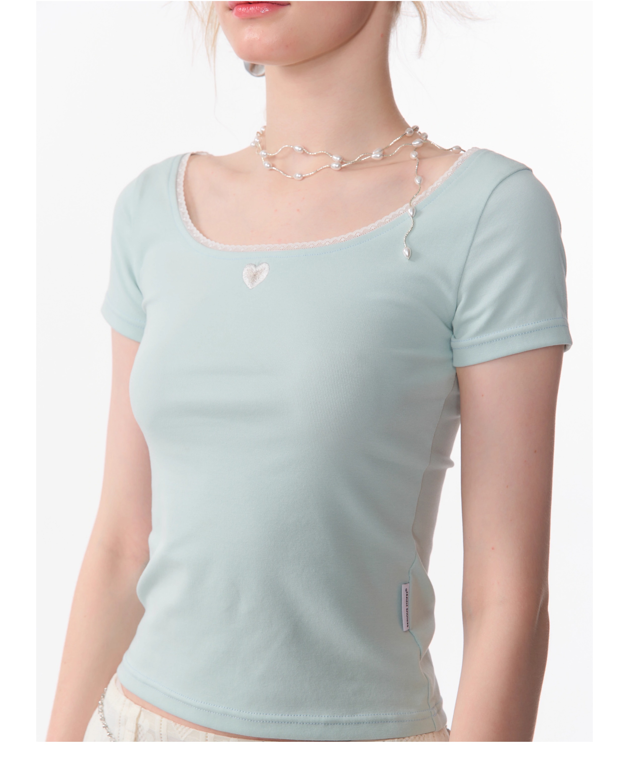 Love Embroidered Lace T-shirt | Right Shoulder Slim Fit Retro Design for Summer