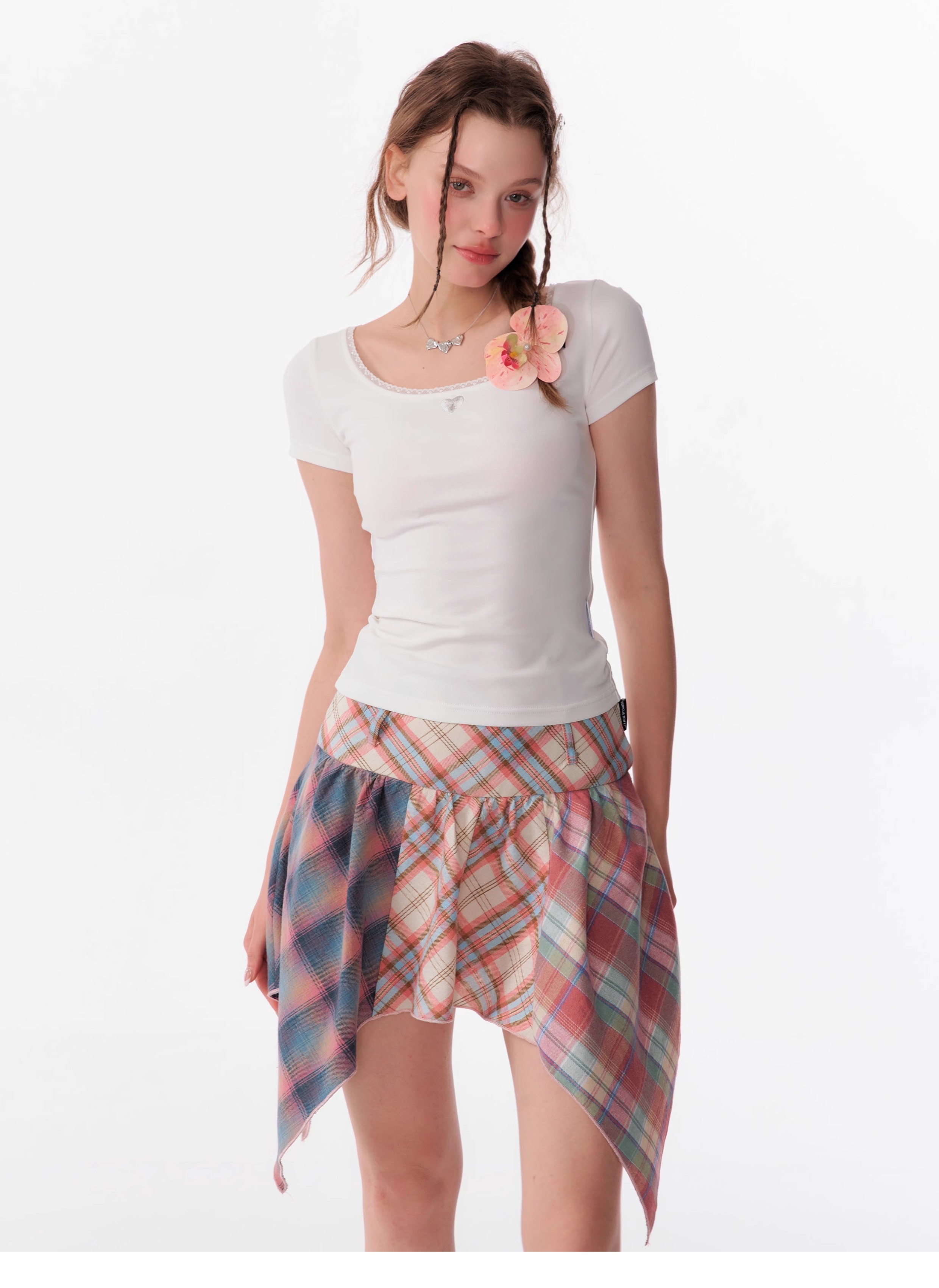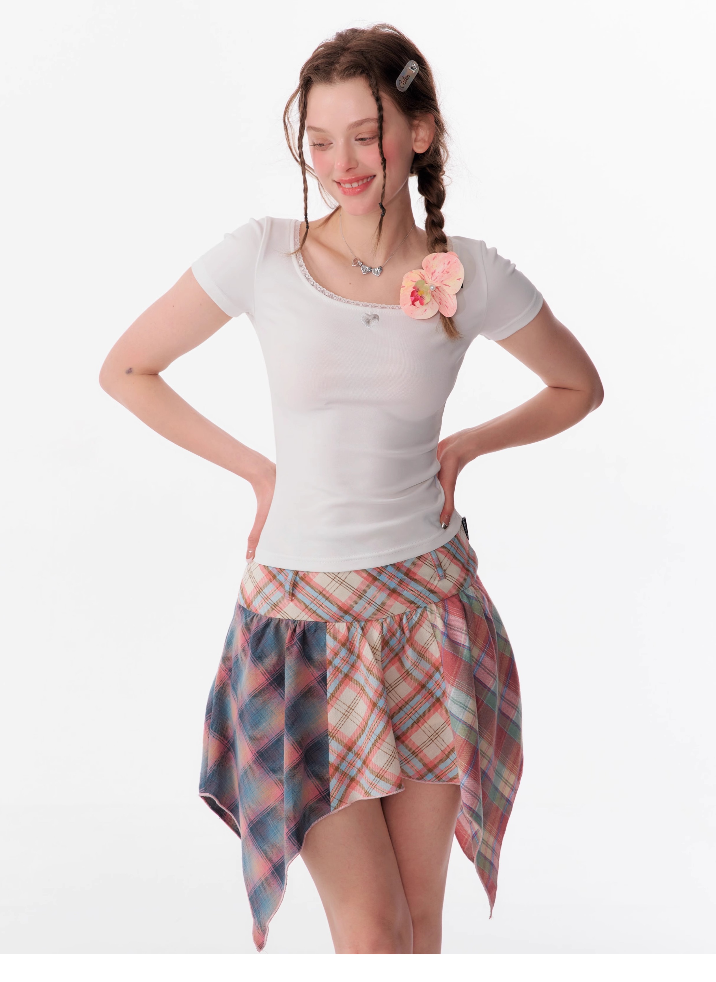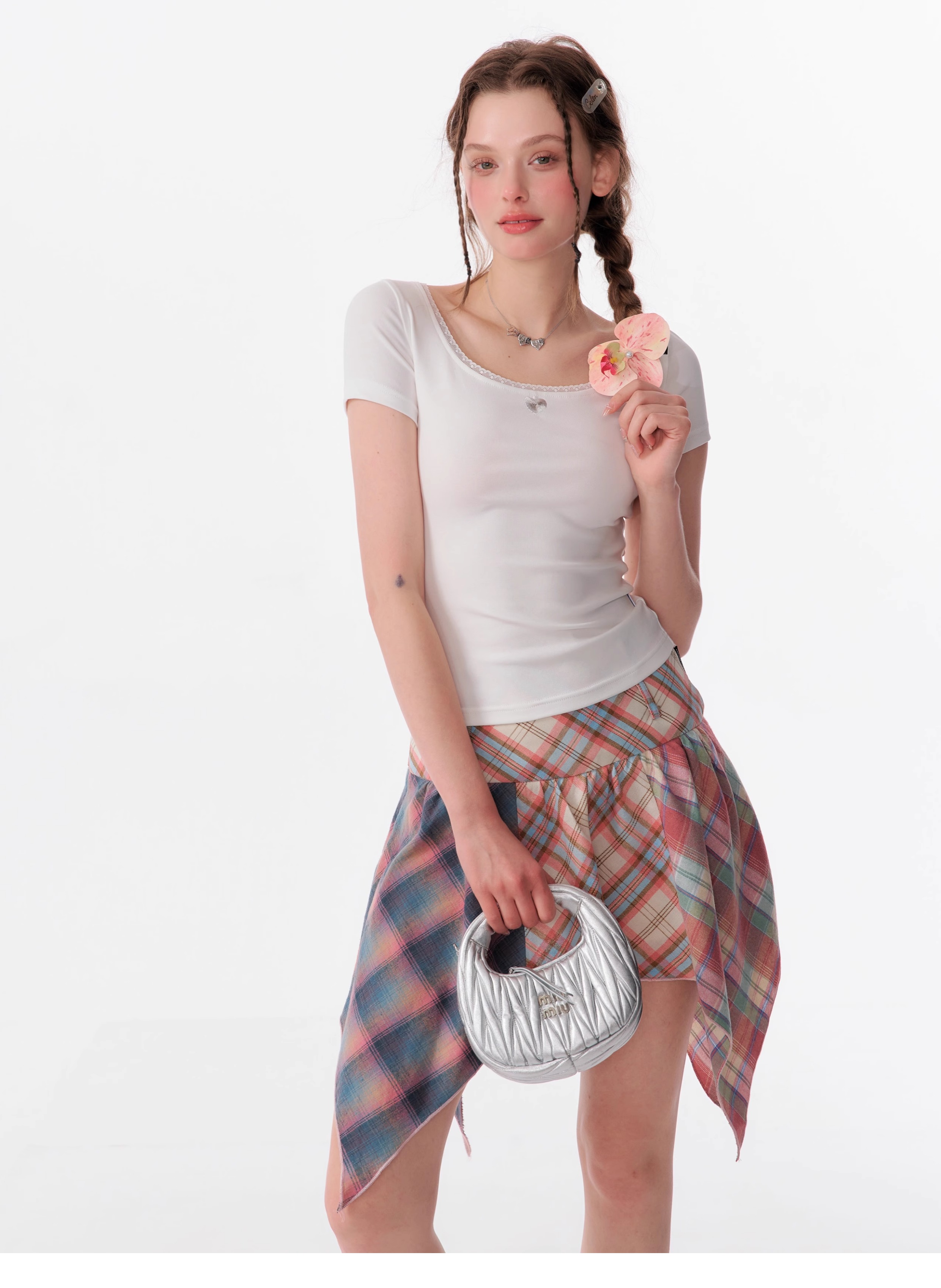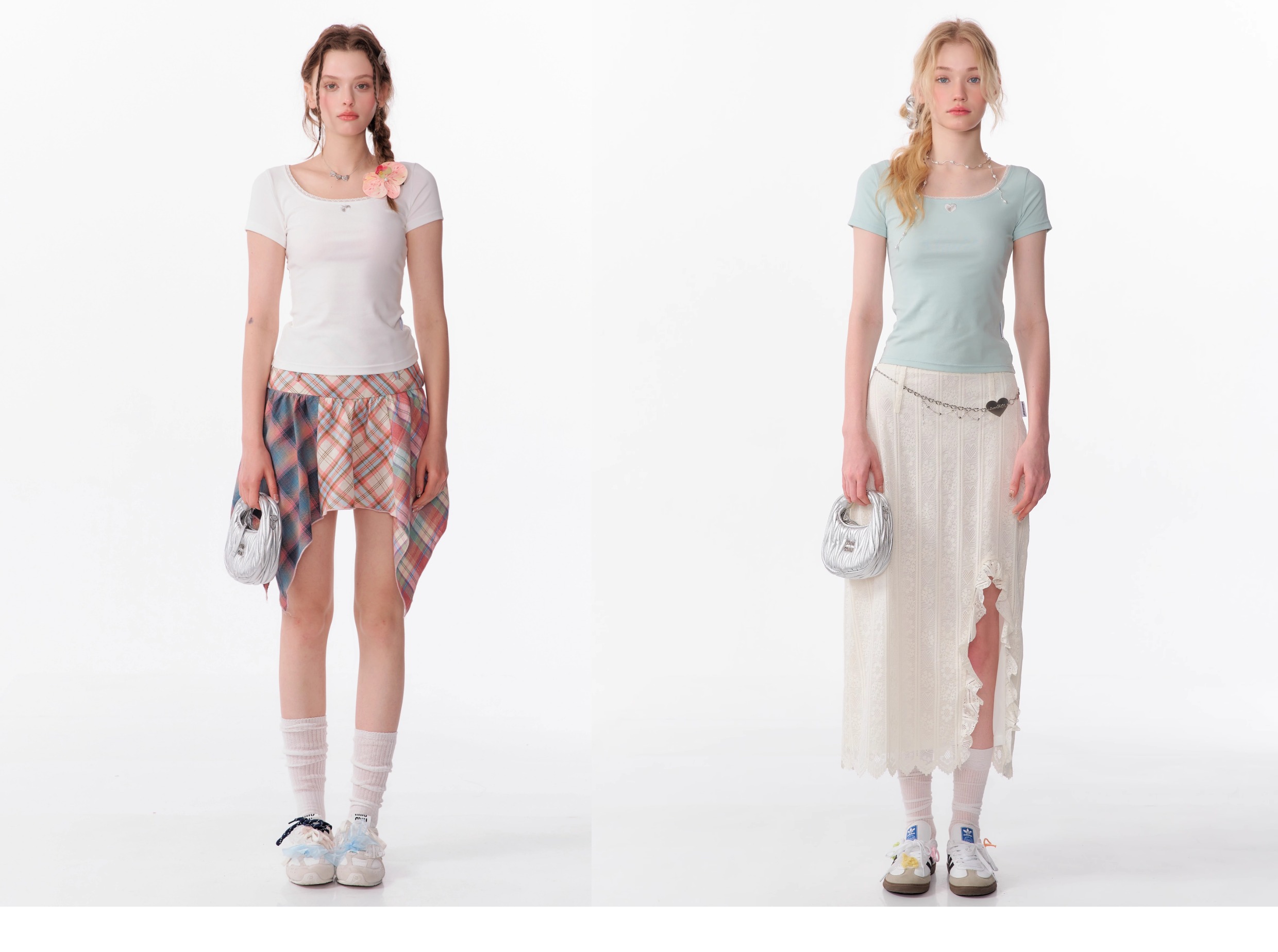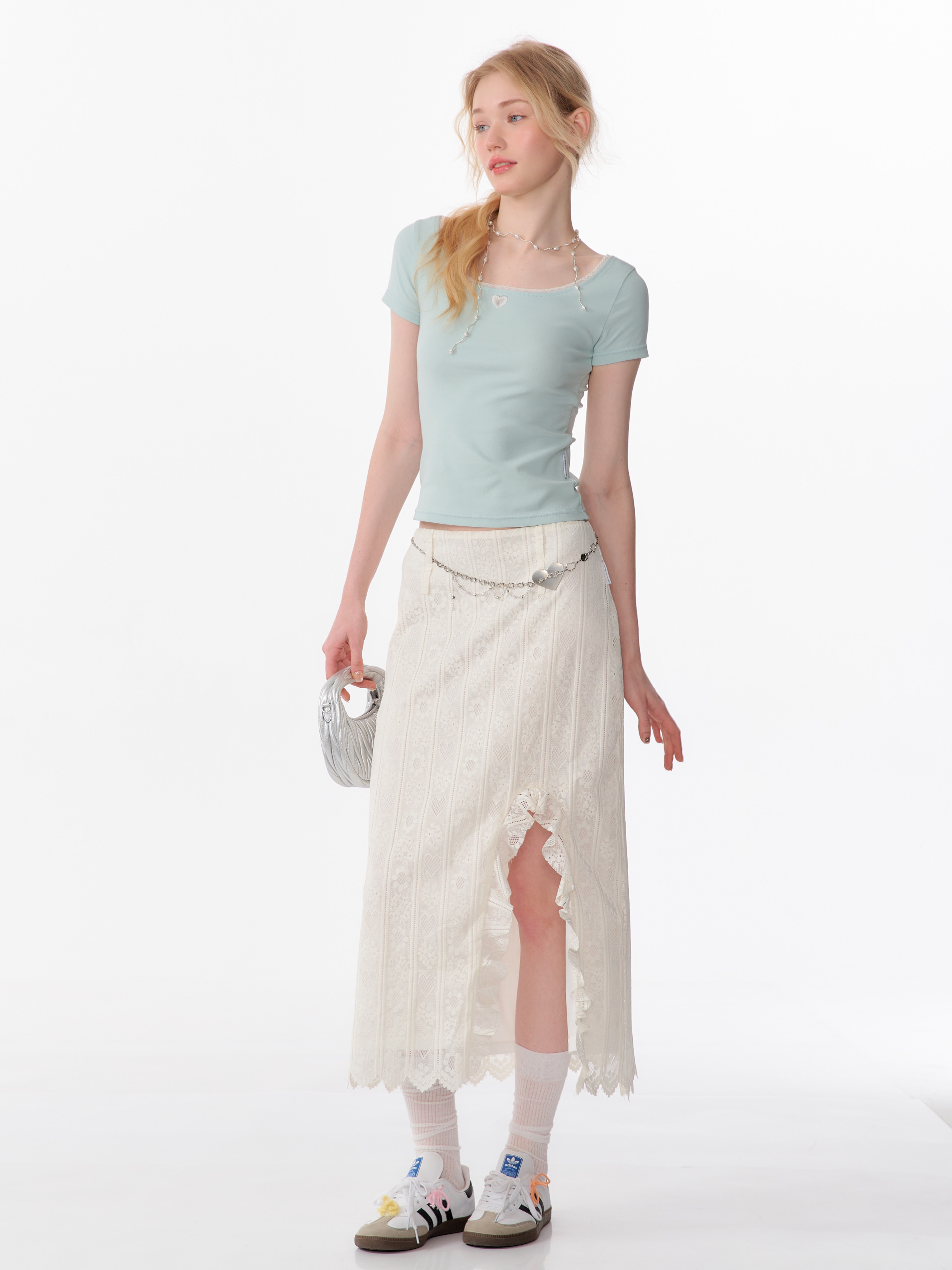 Love Embroidered Lace T-shirt | Right Shoulder Slim Fit Retro Design for Summer