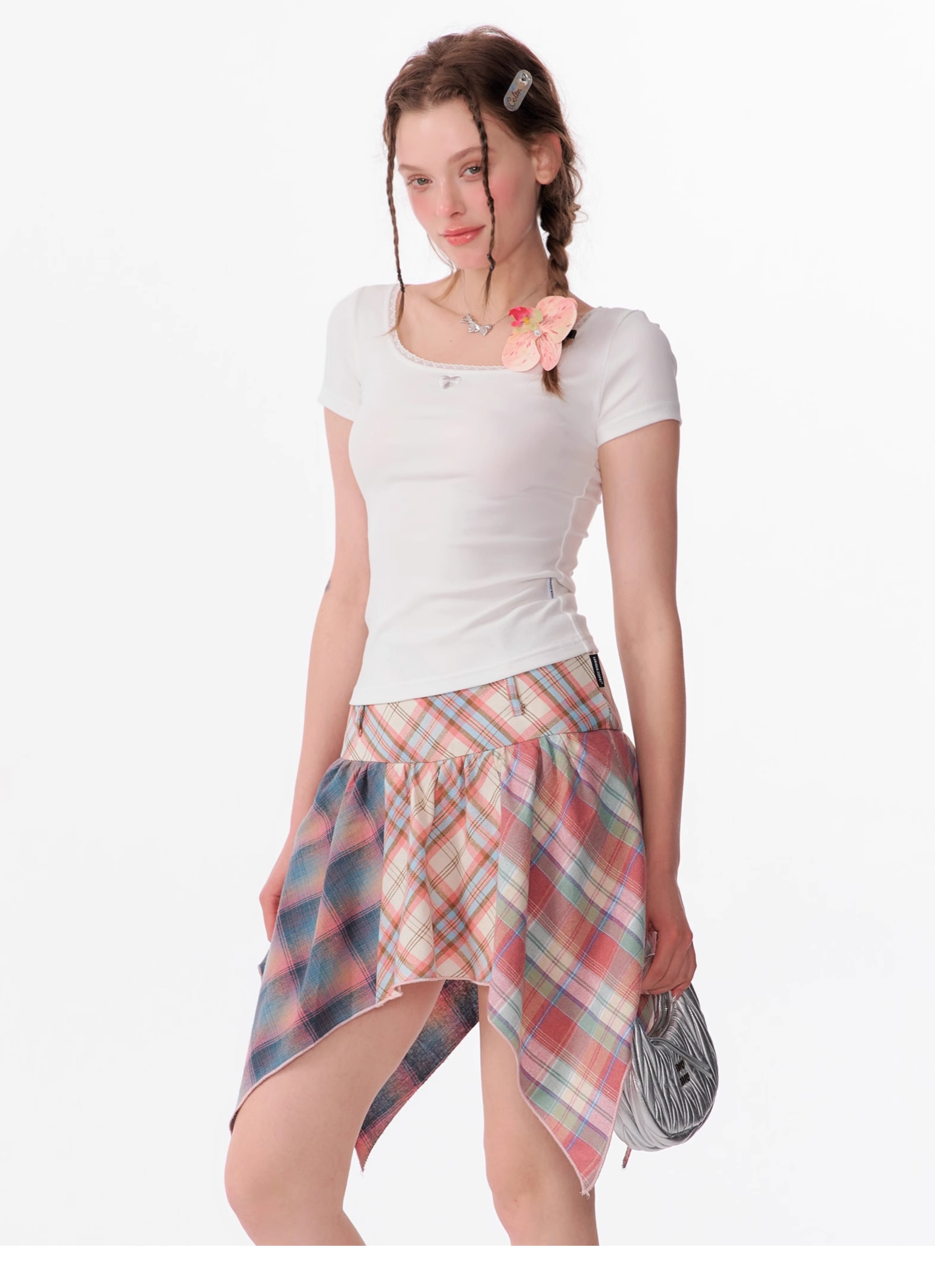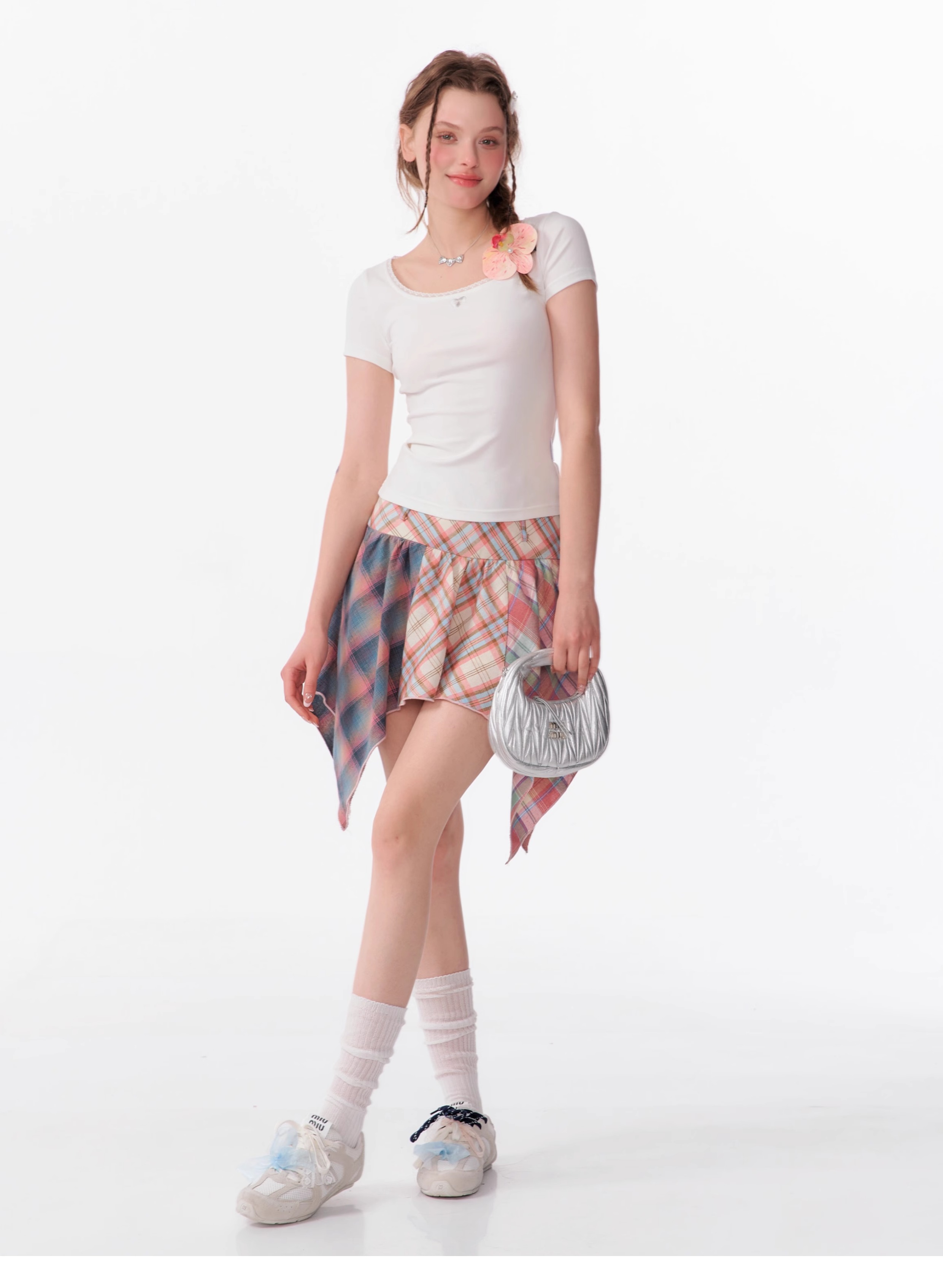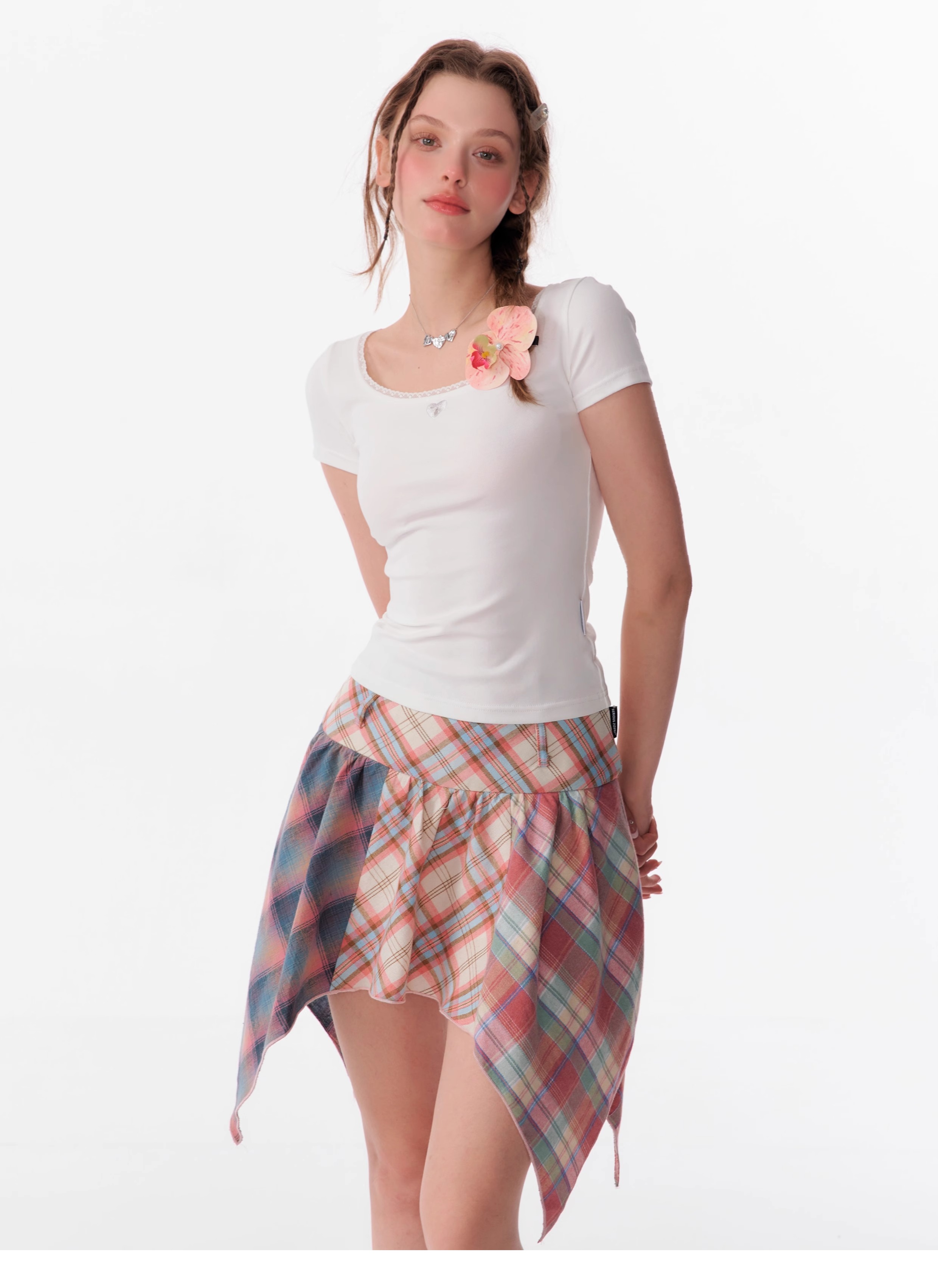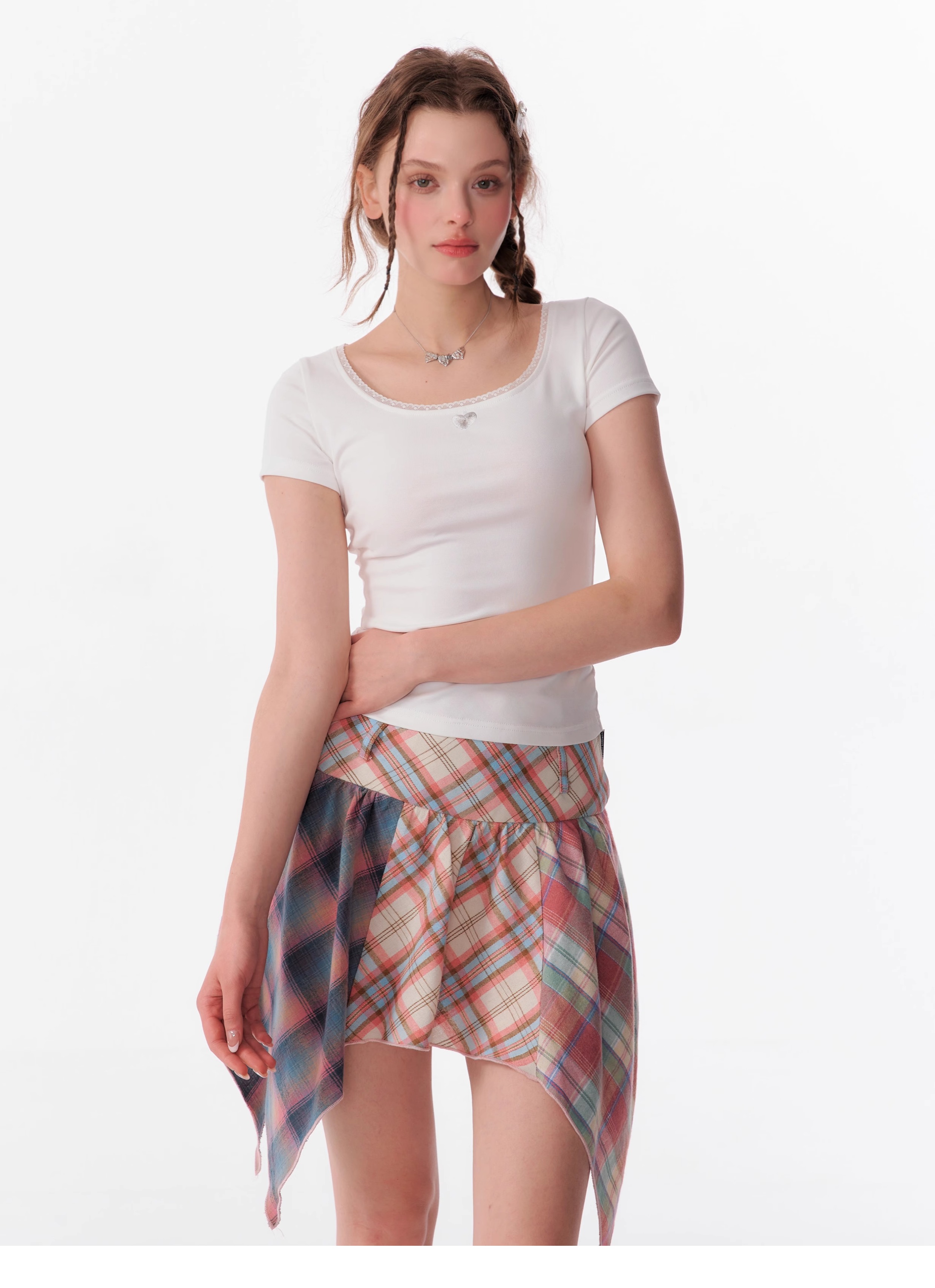 Love Embroidered Lace T-shirt | Right Shoulder Slim Fit Retro Design for Summer