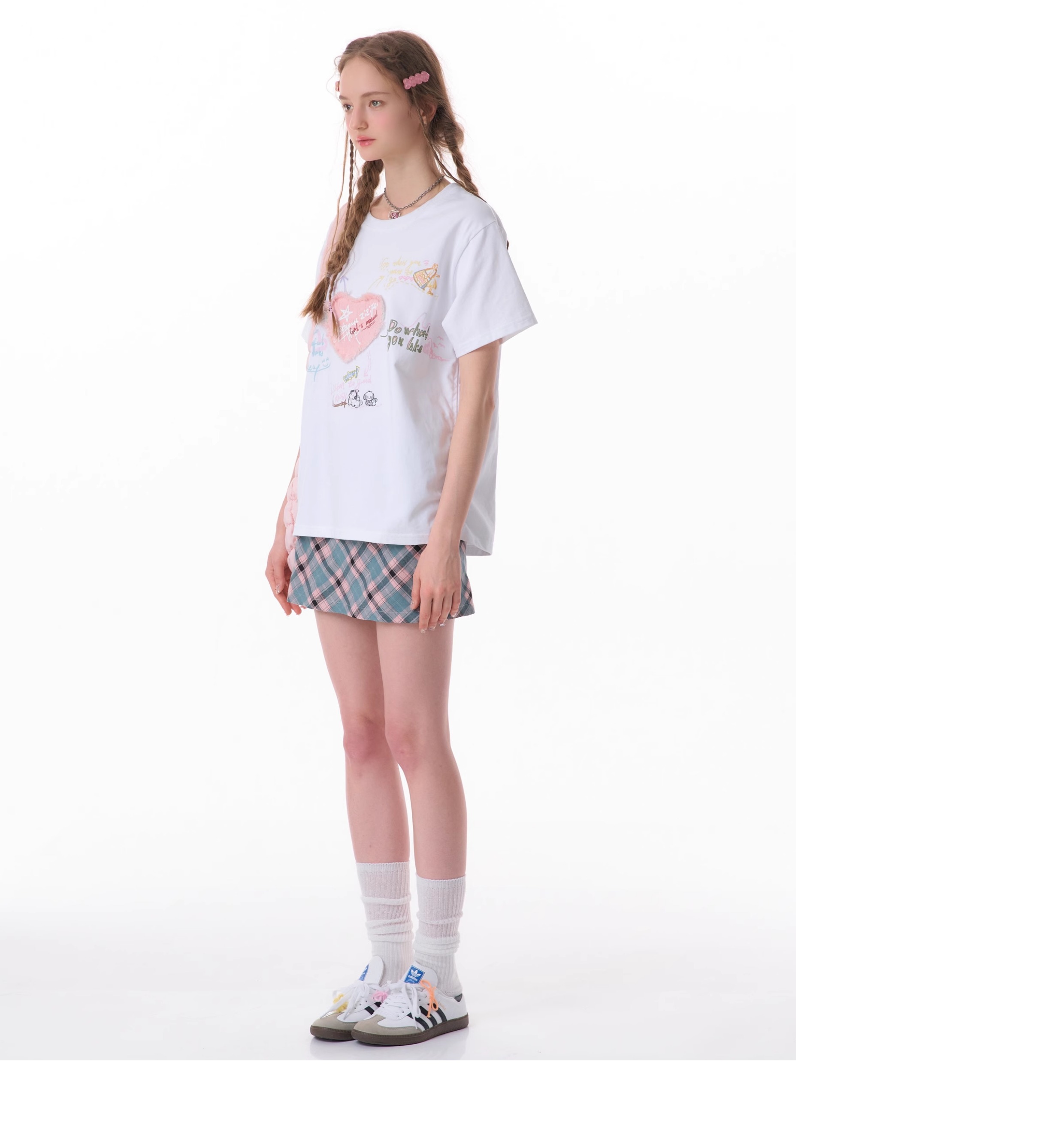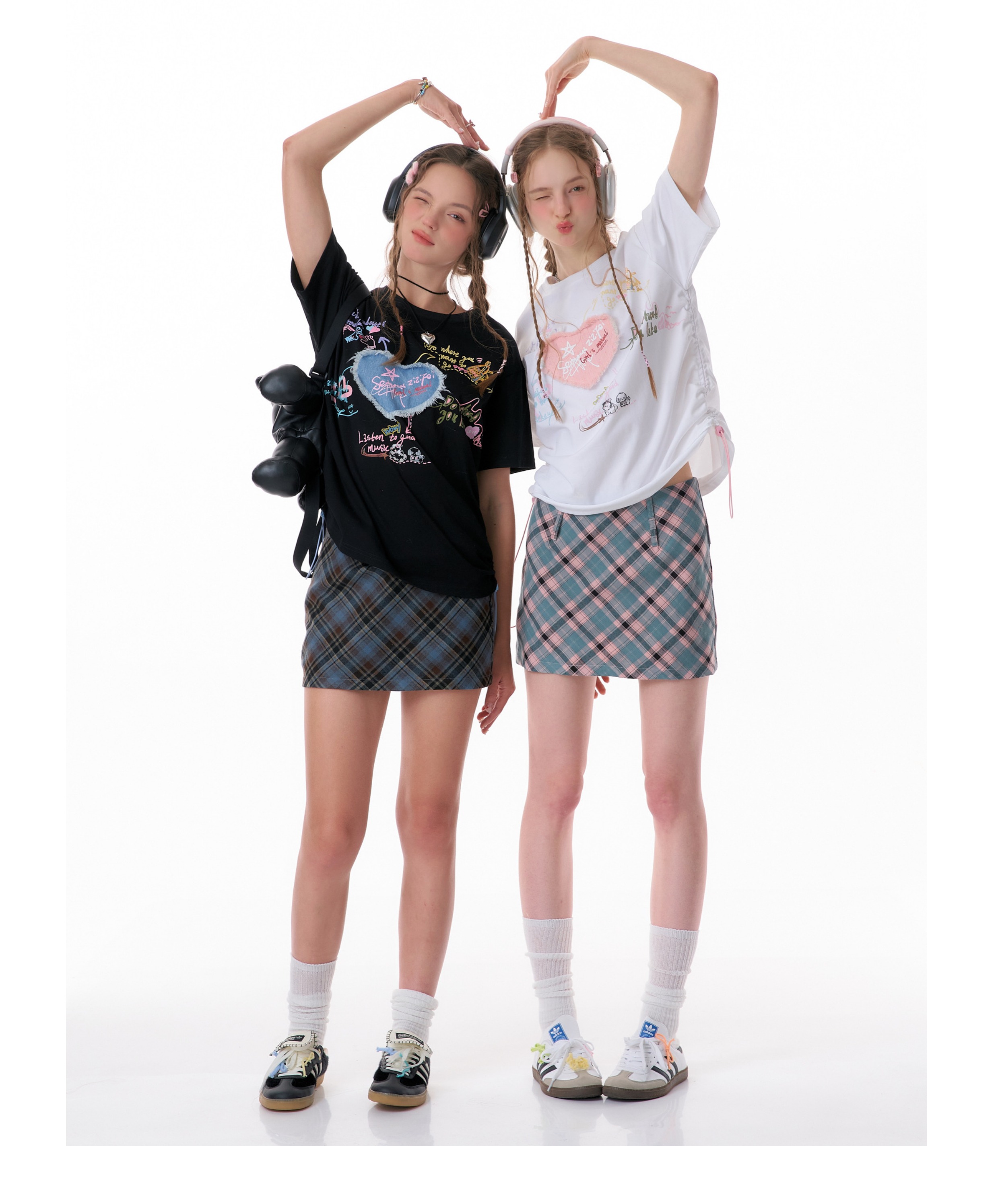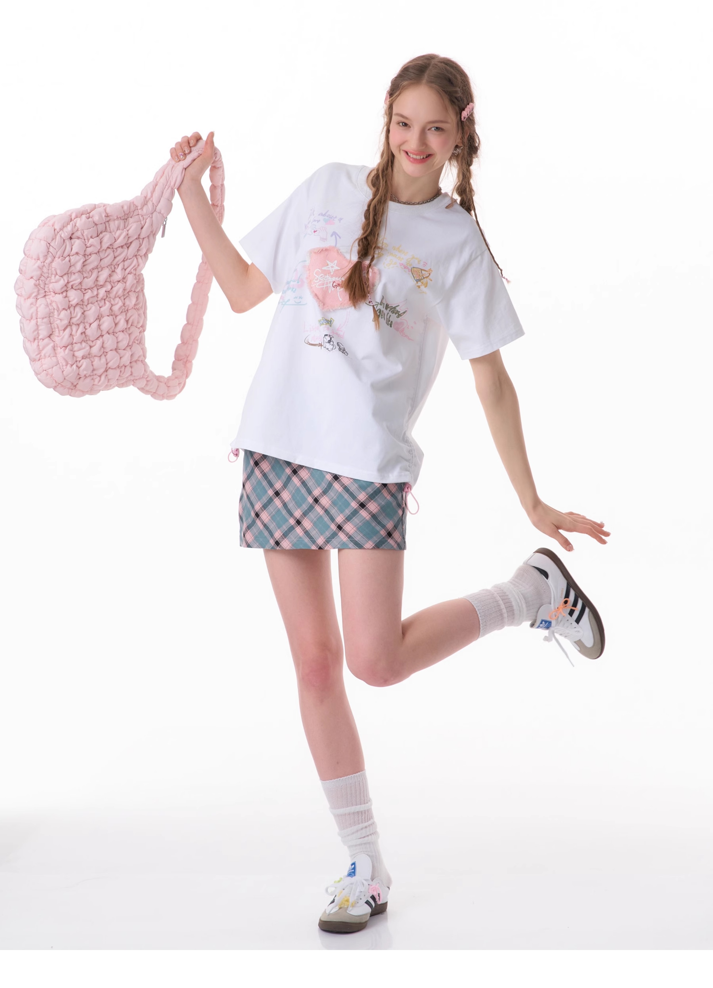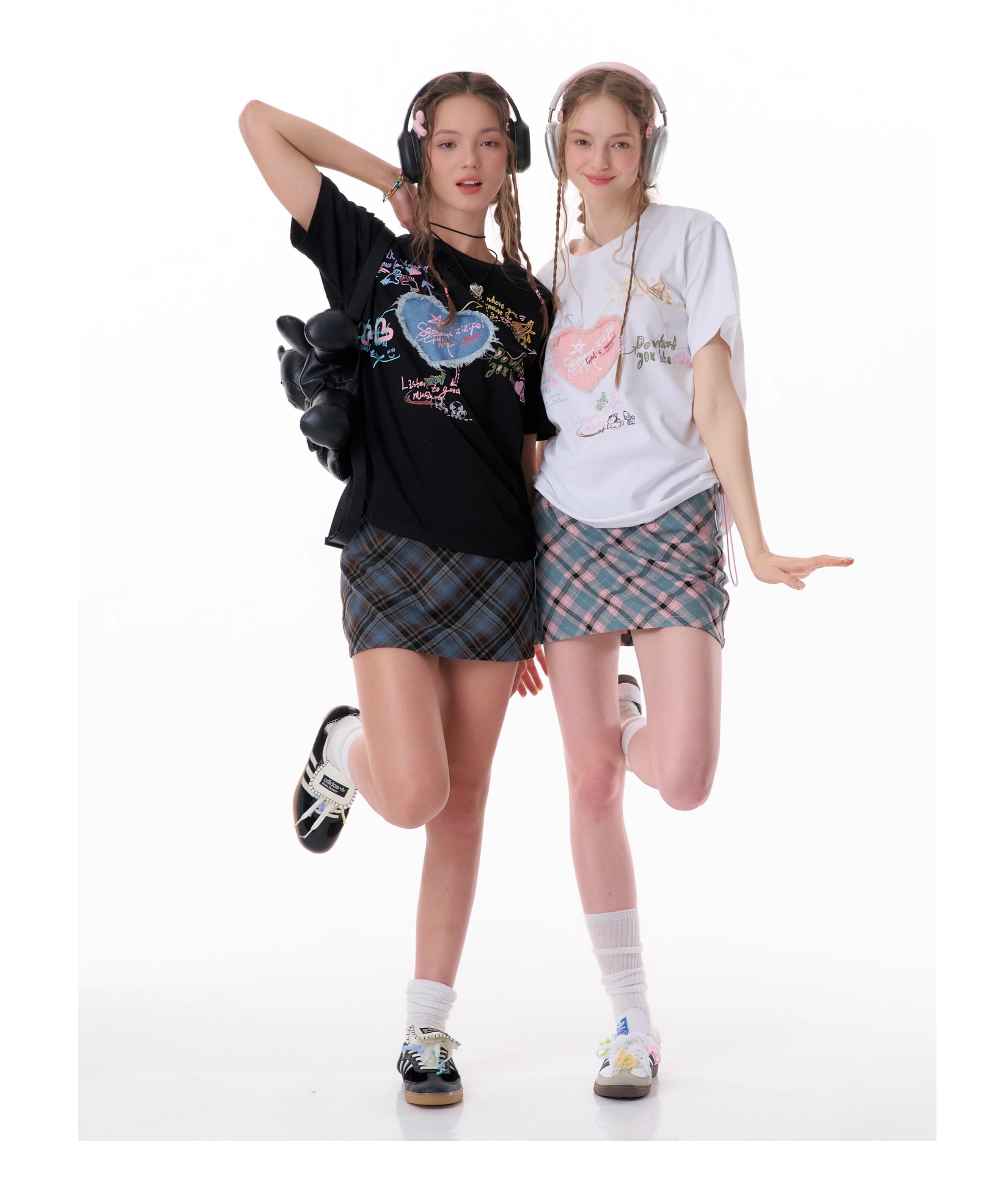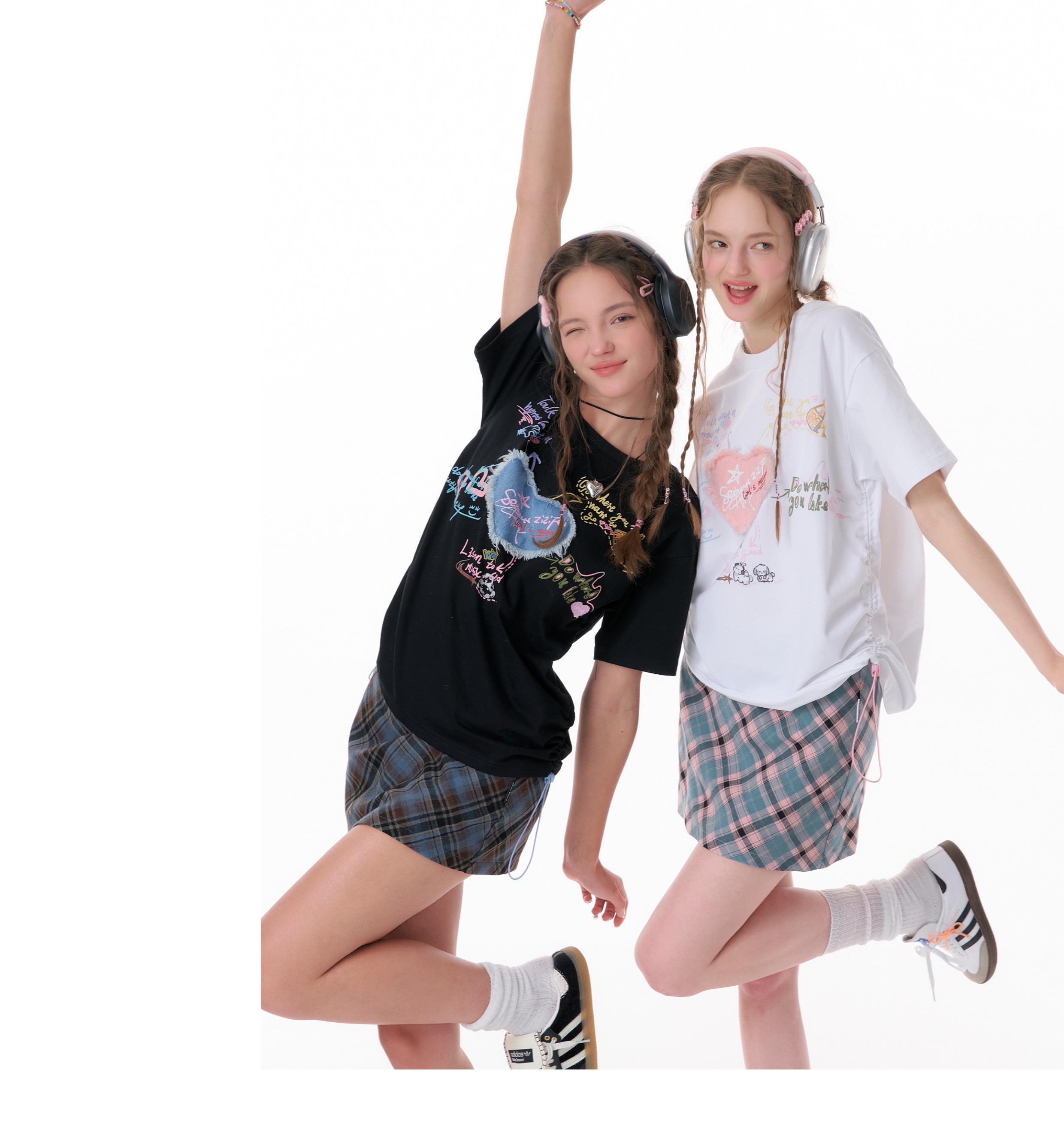Love Patch Printed Drawstring T-shirt | Heavy Industry Round Neck Design for Summer