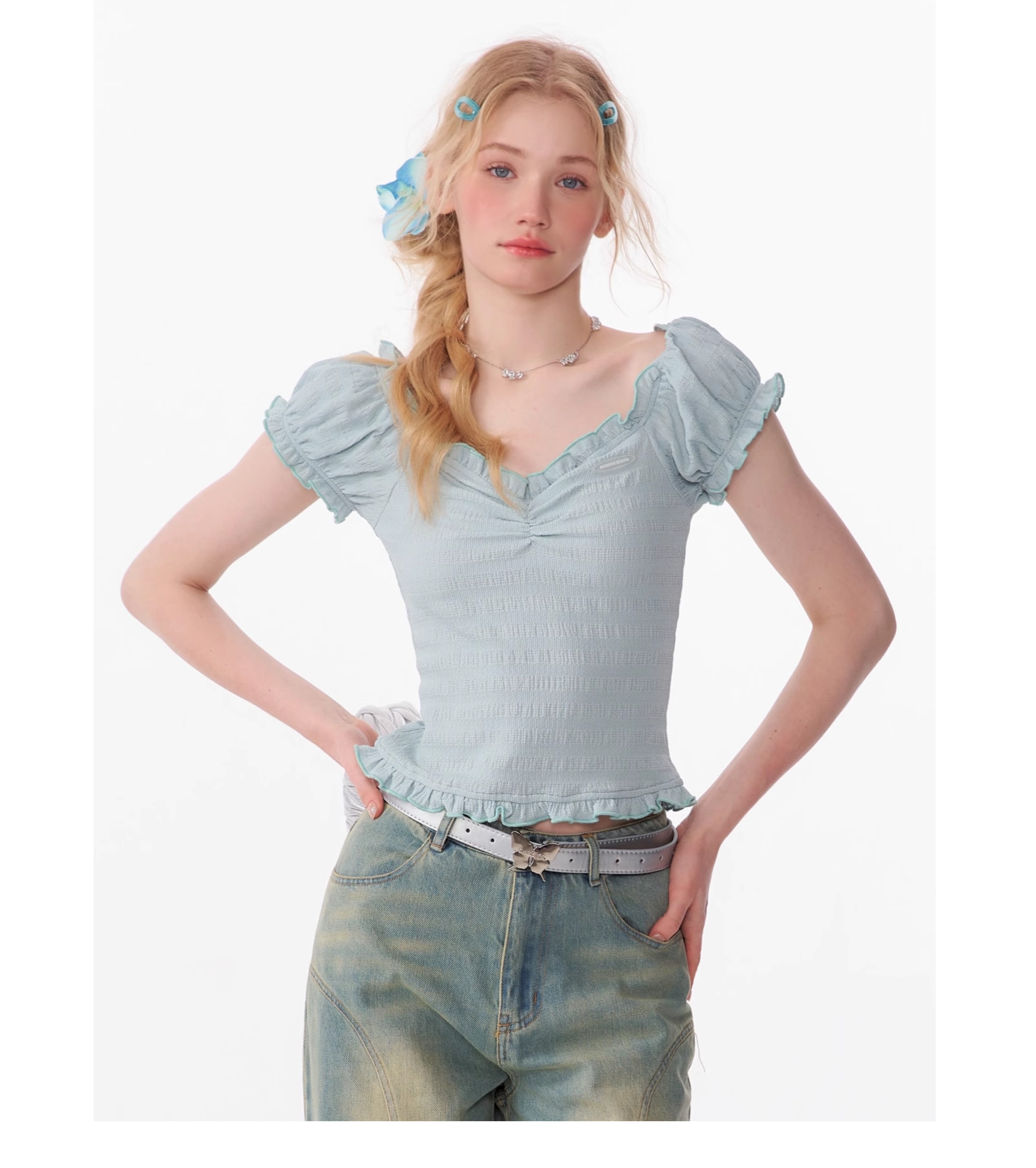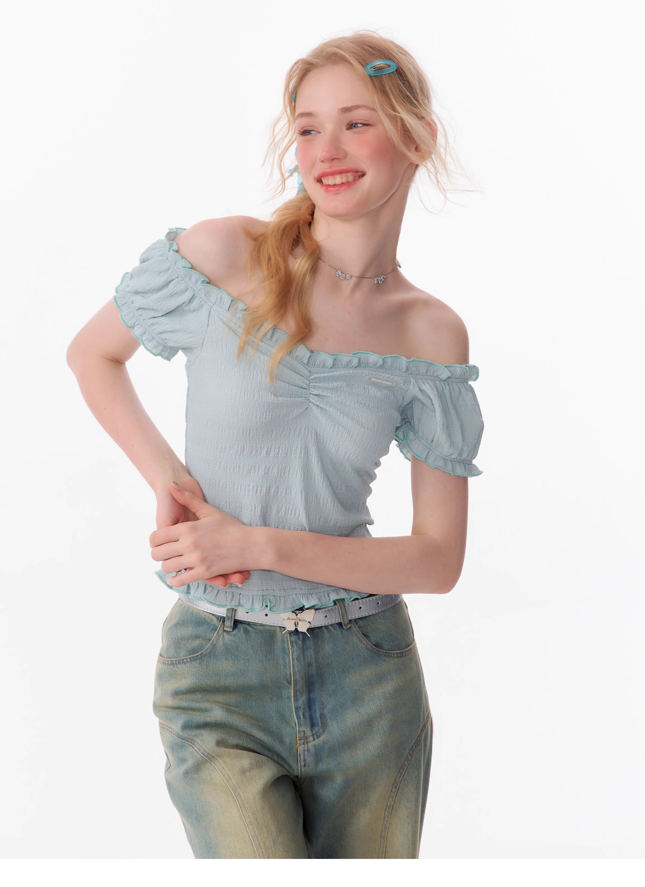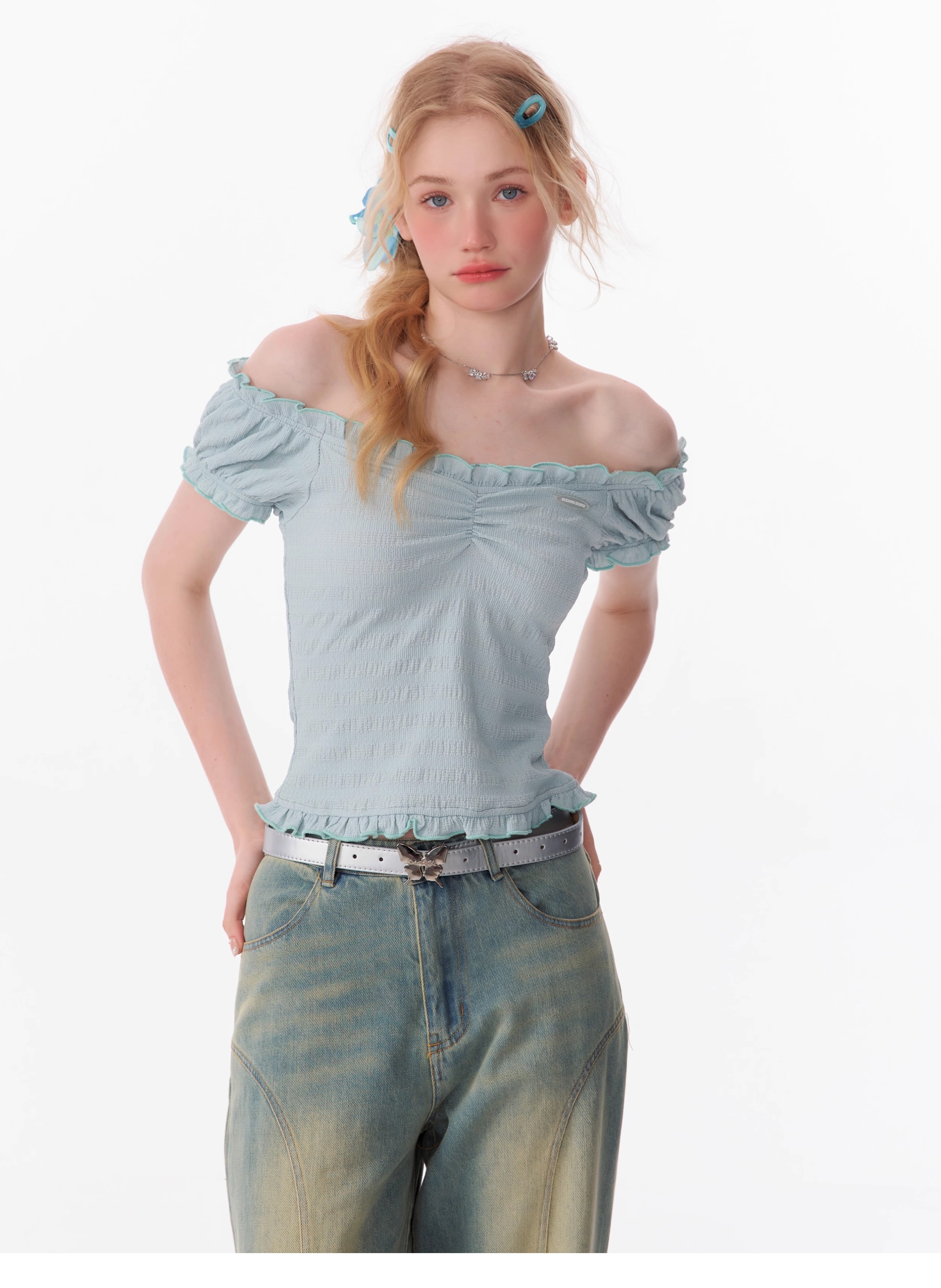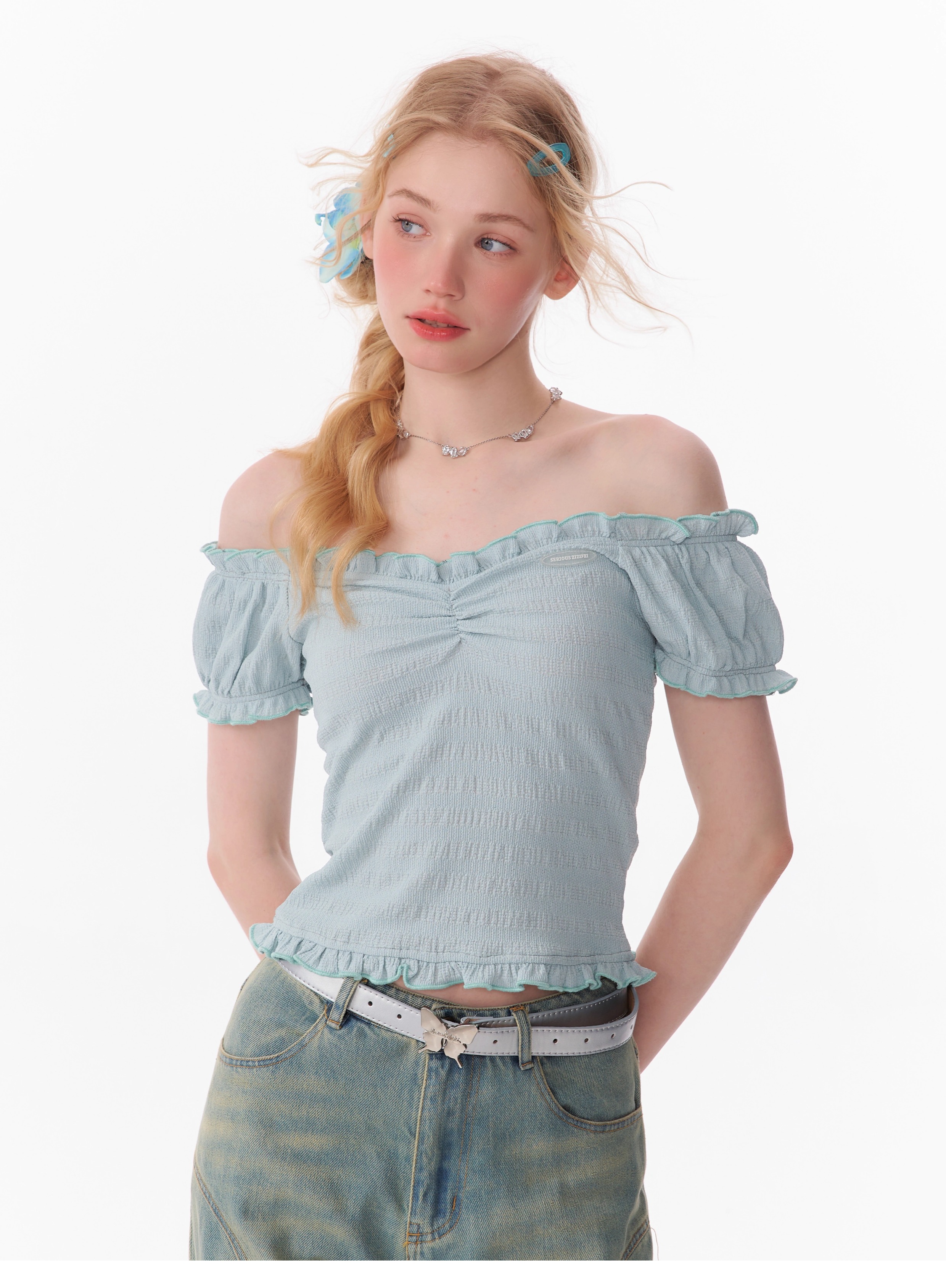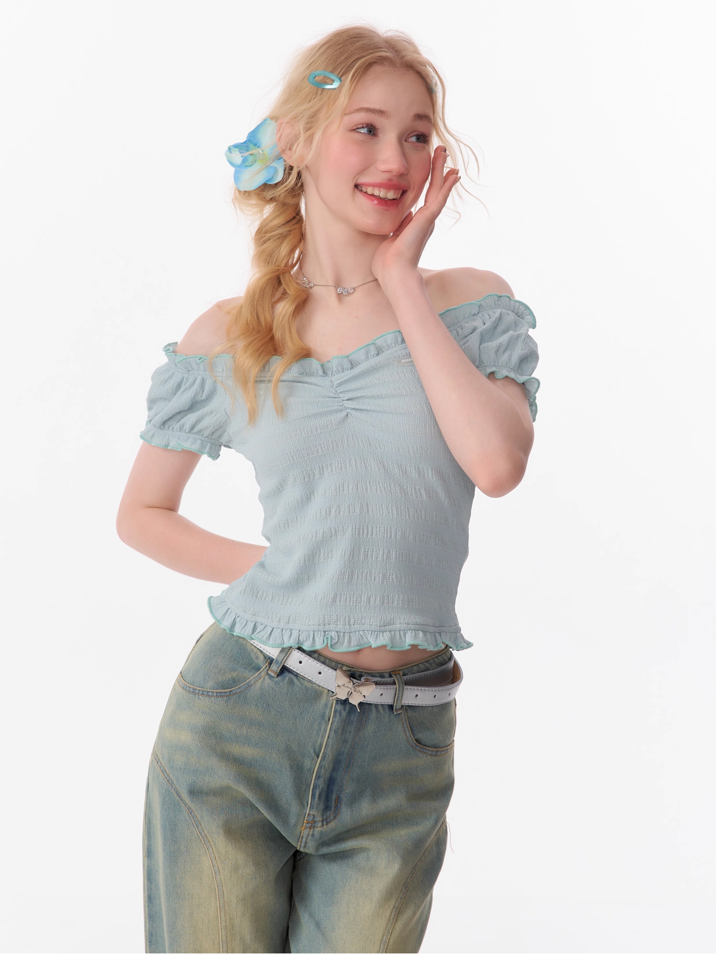 Mushroom Puff Sleeve T-shirt | One-Shoulder Retro Design for Summer