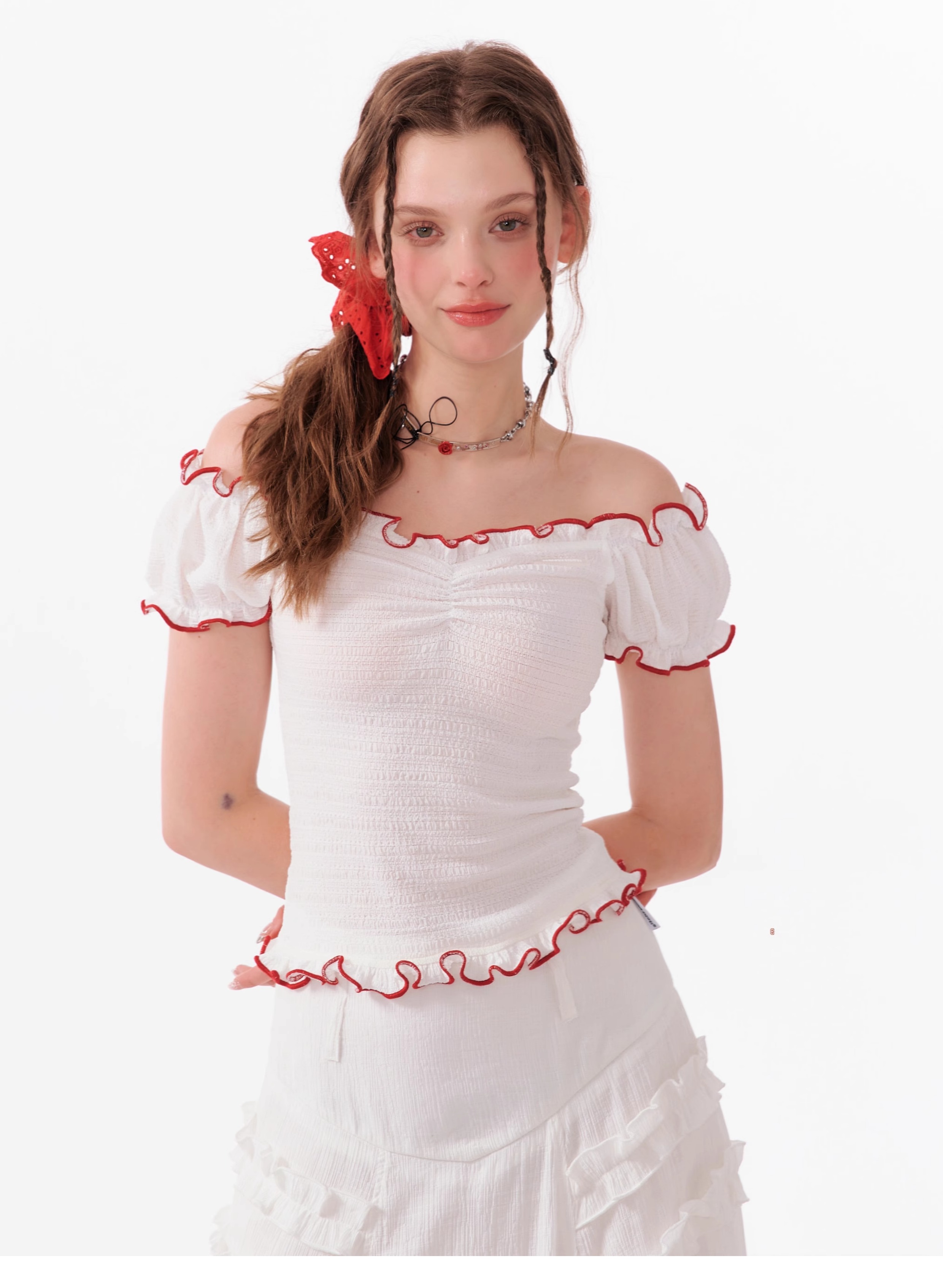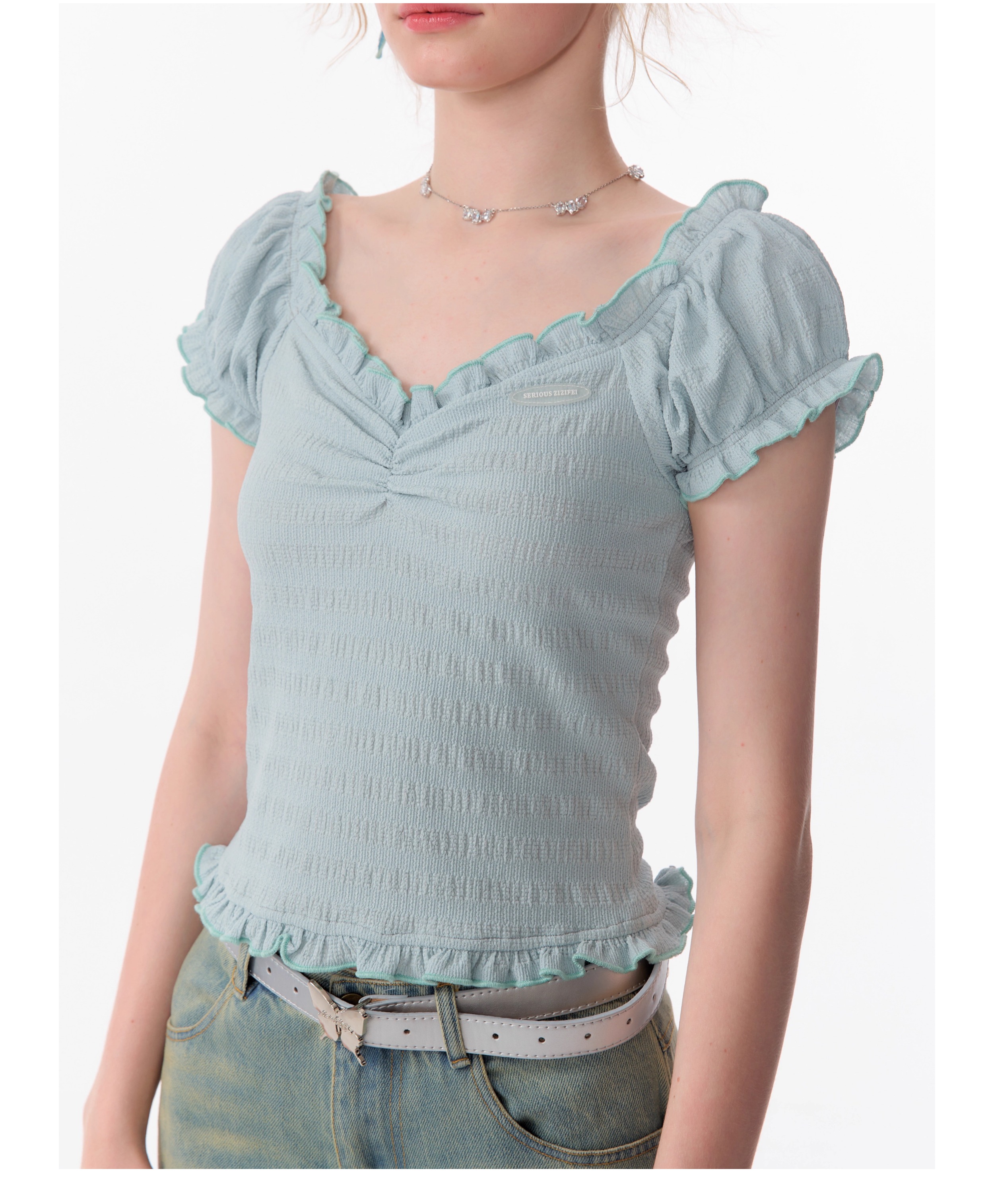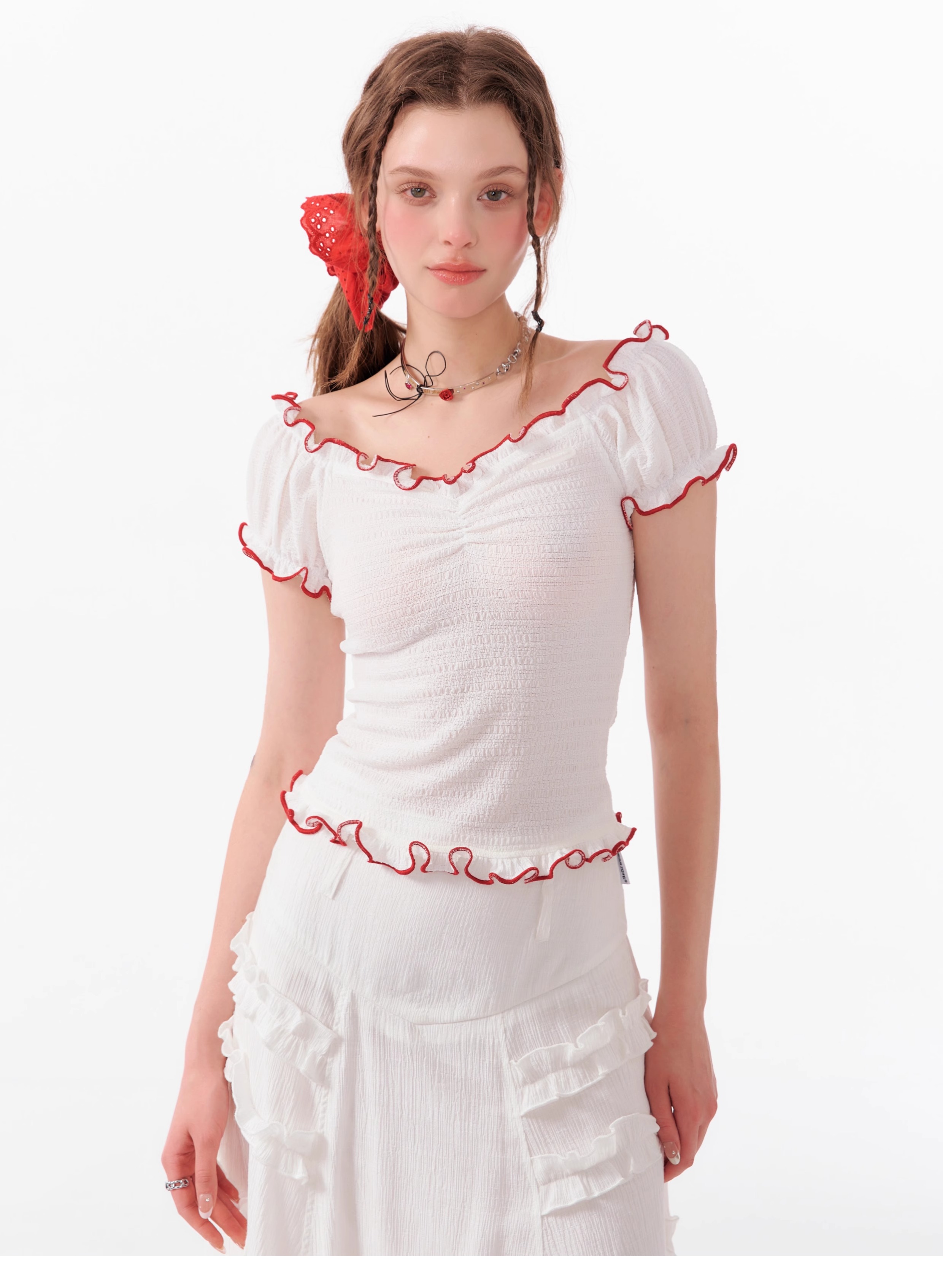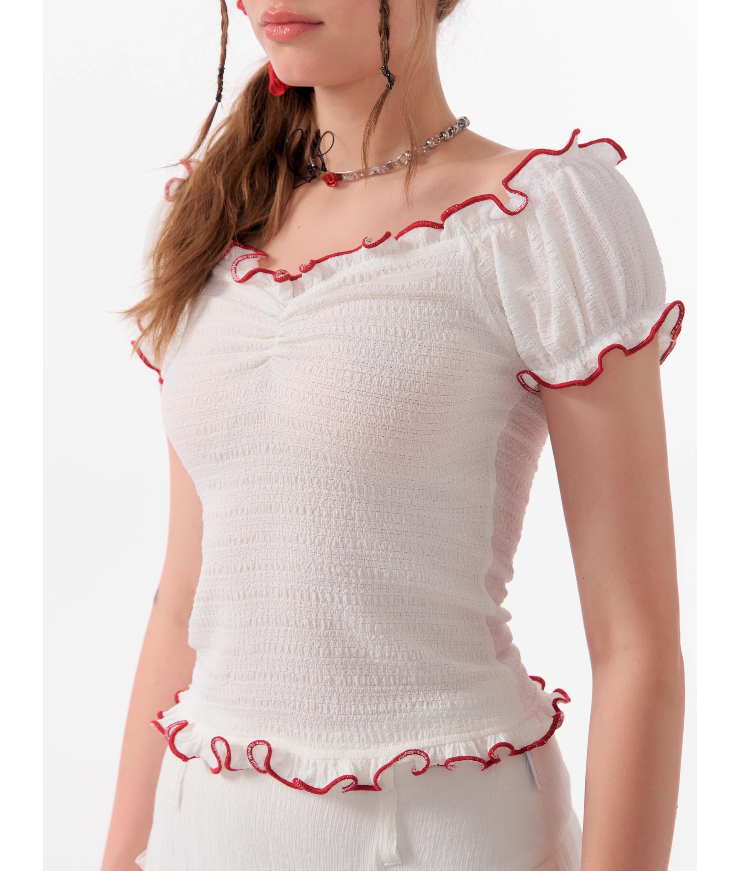 Mushroom Puff Sleeve T-shirt | One-Shoulder Retro Design for Summer
