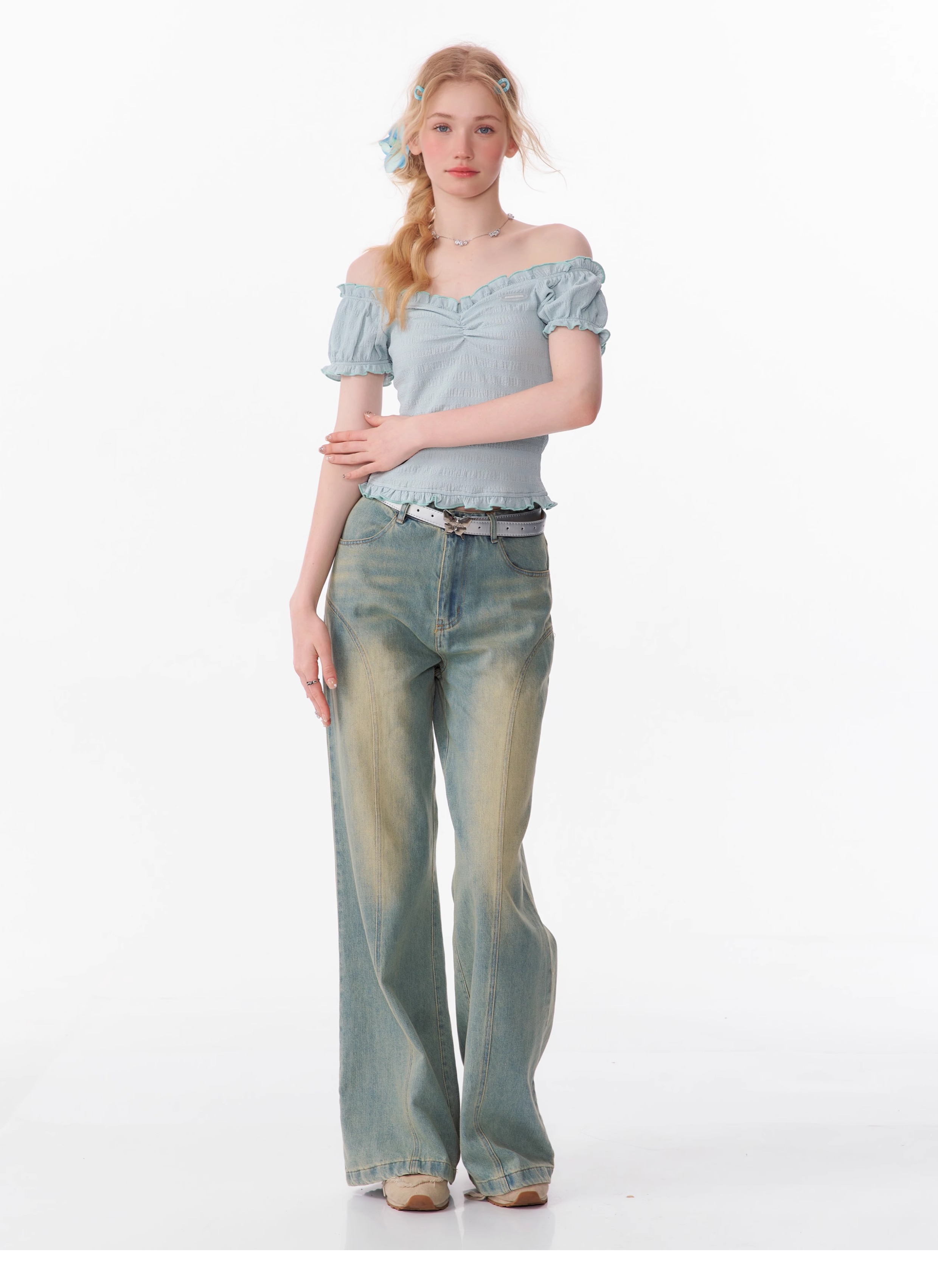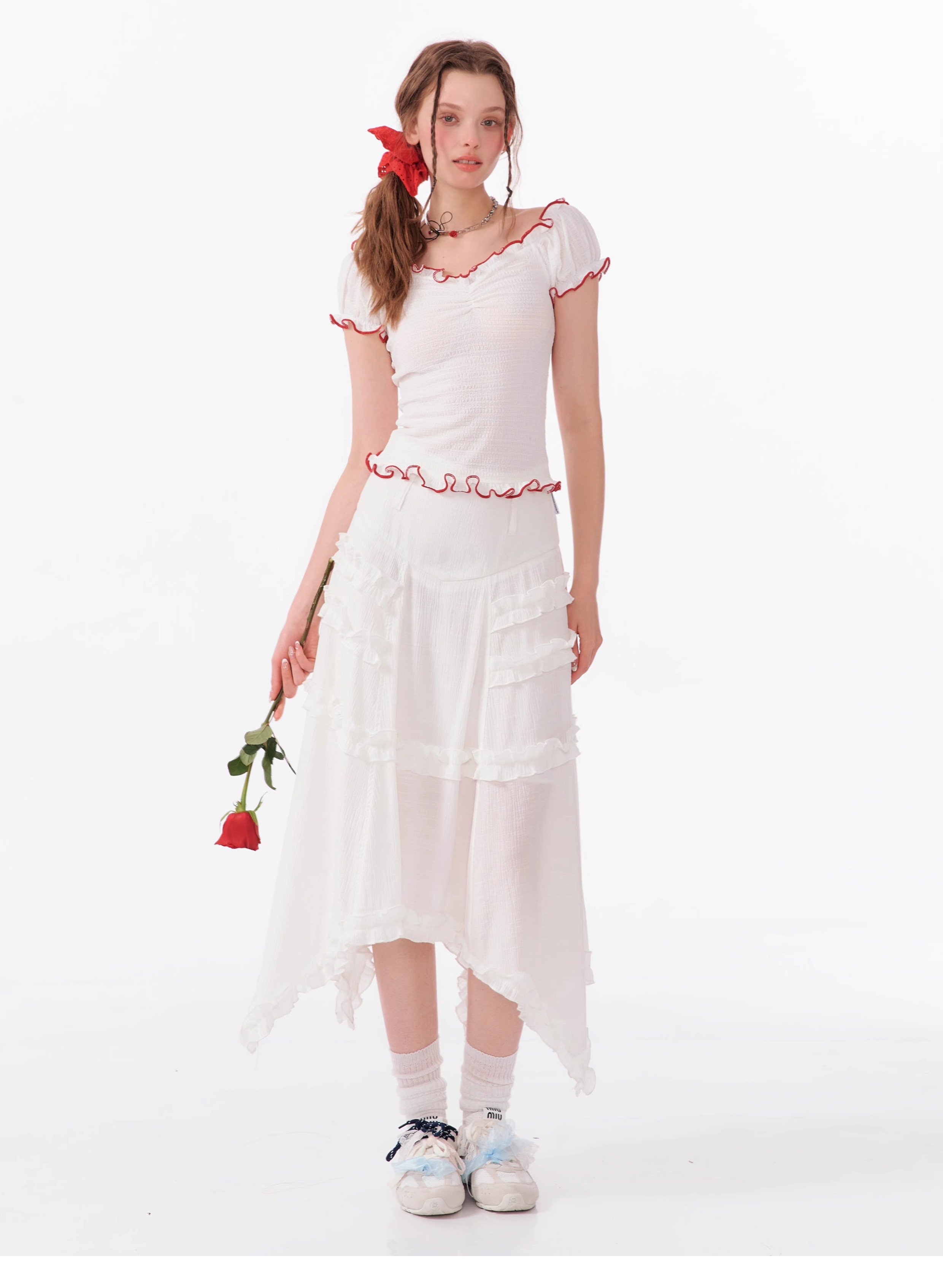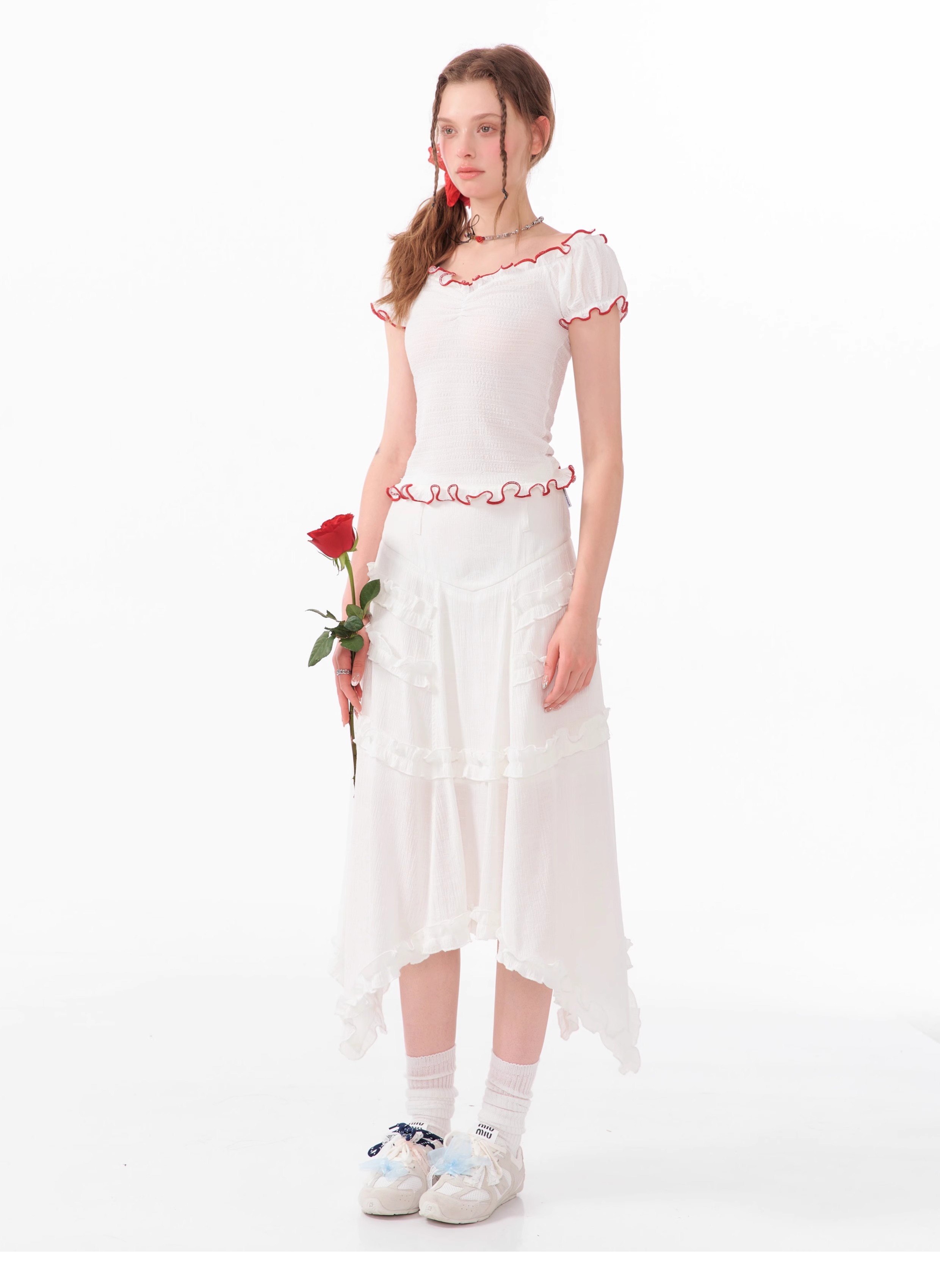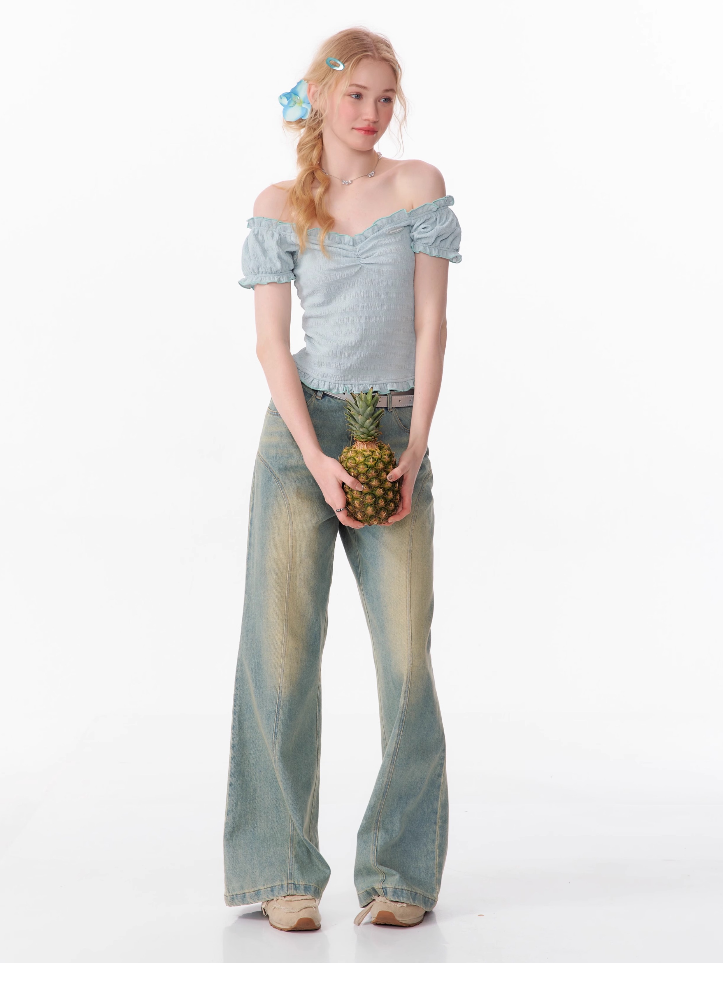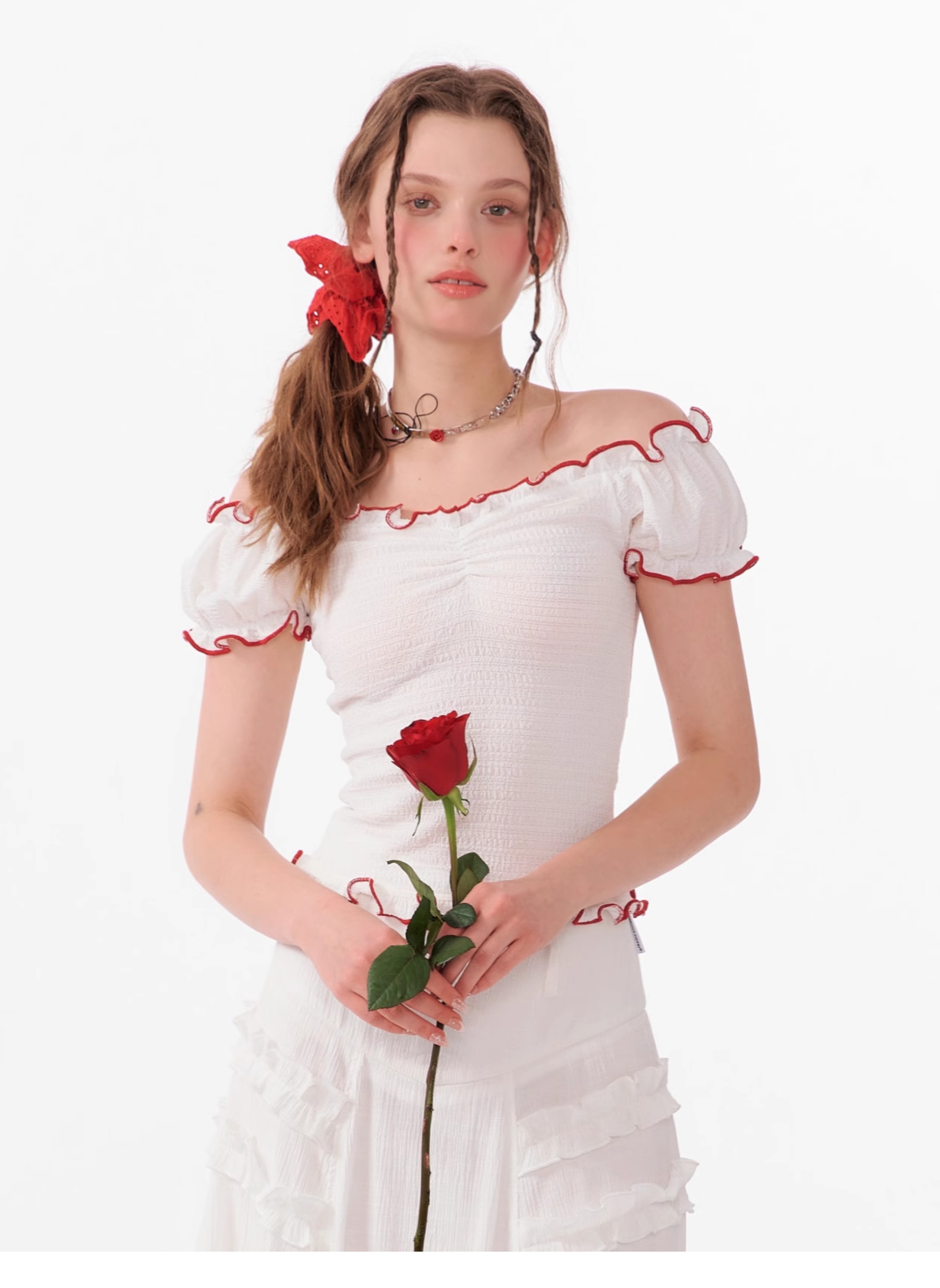Mushroom Puff Sleeve T-shirt | One-Shoulder Retro Design for Summer