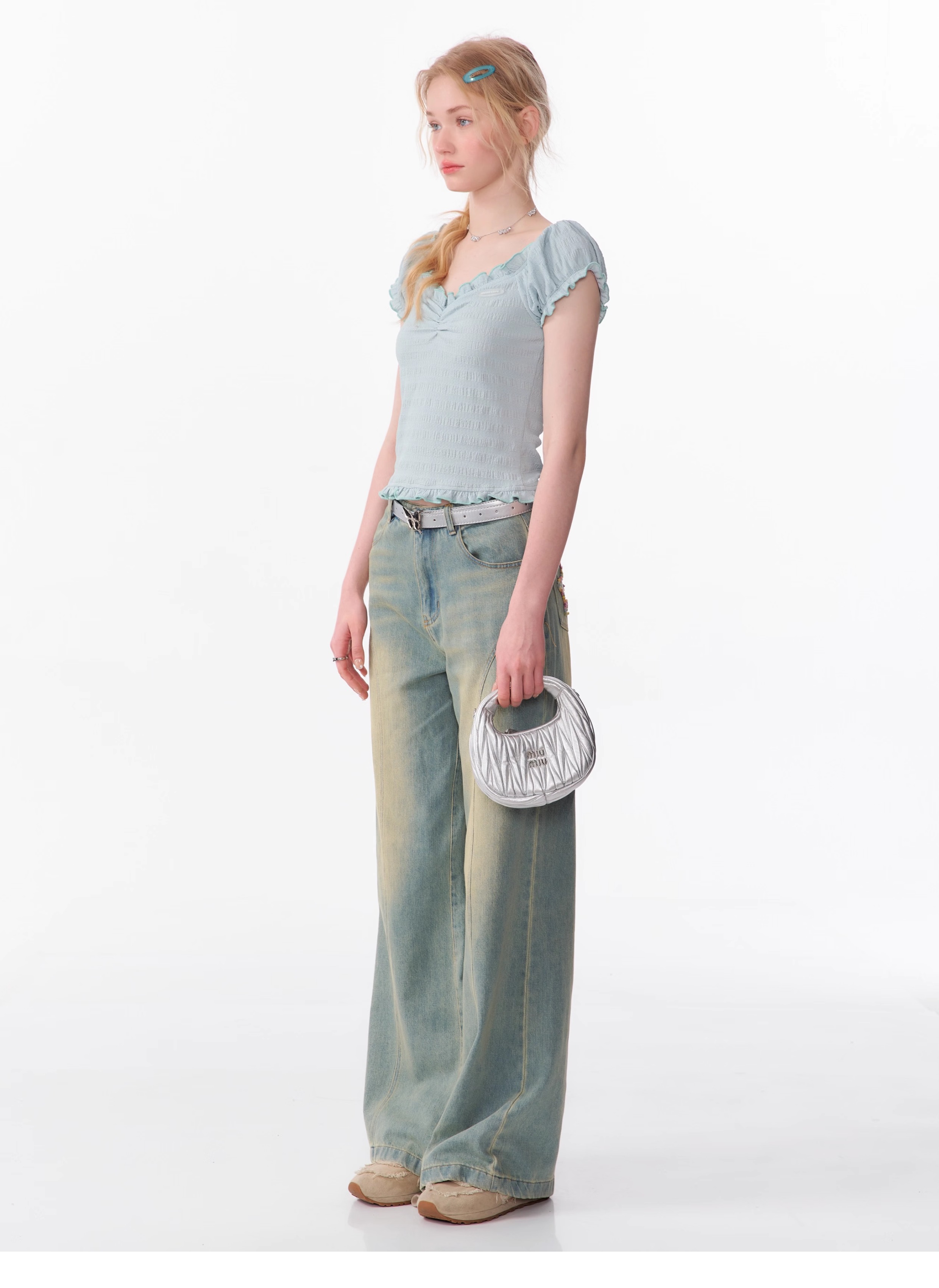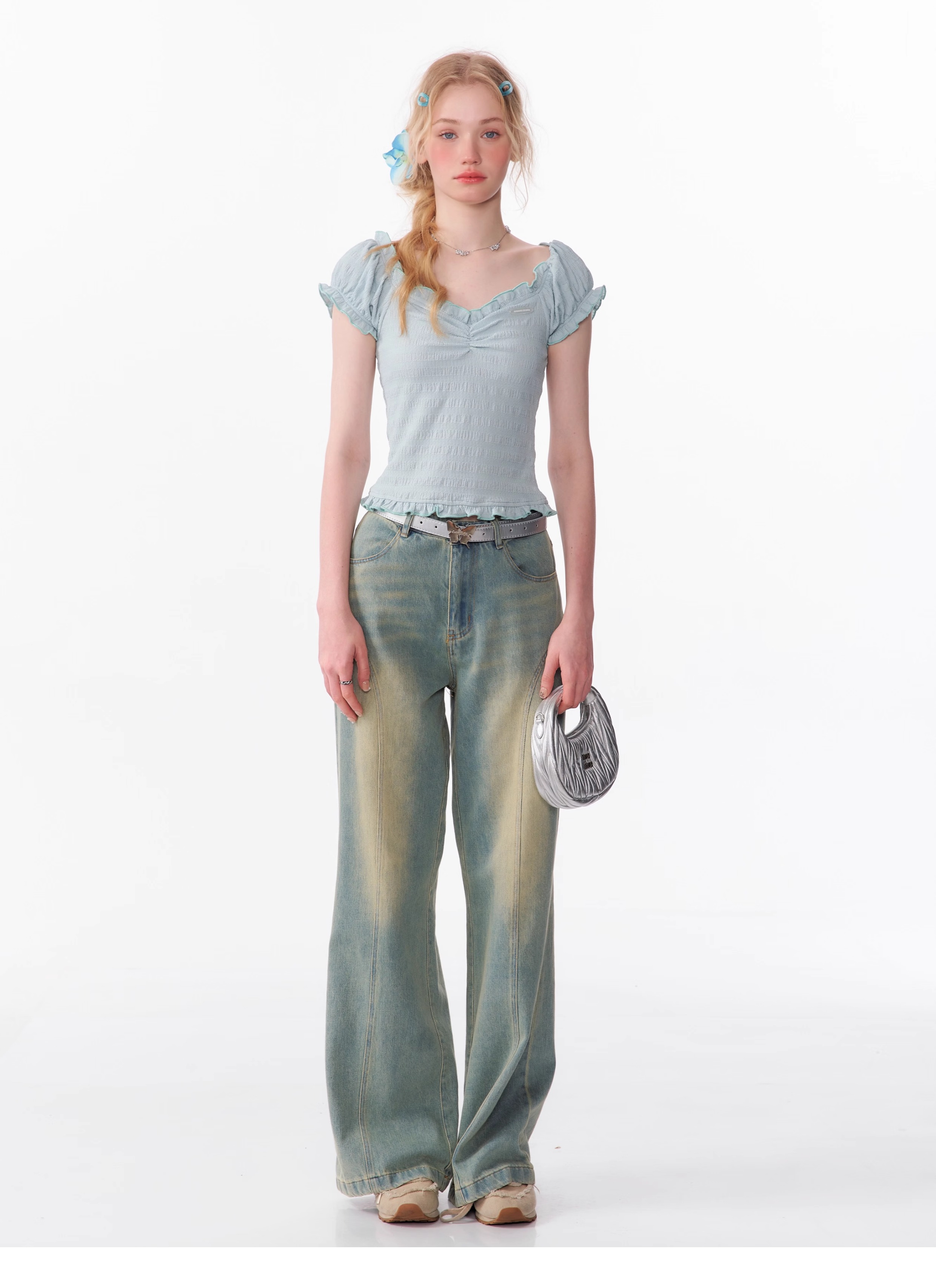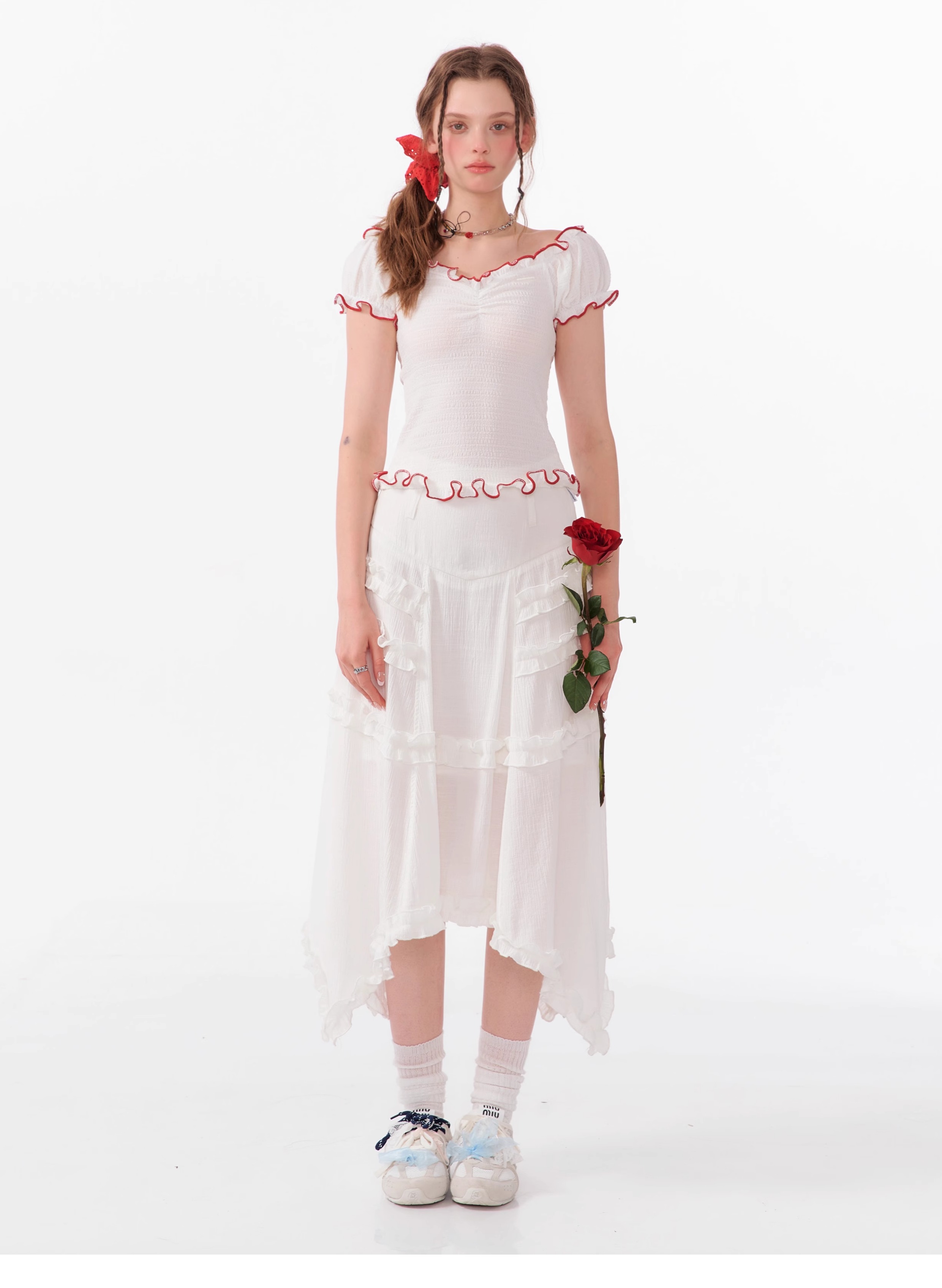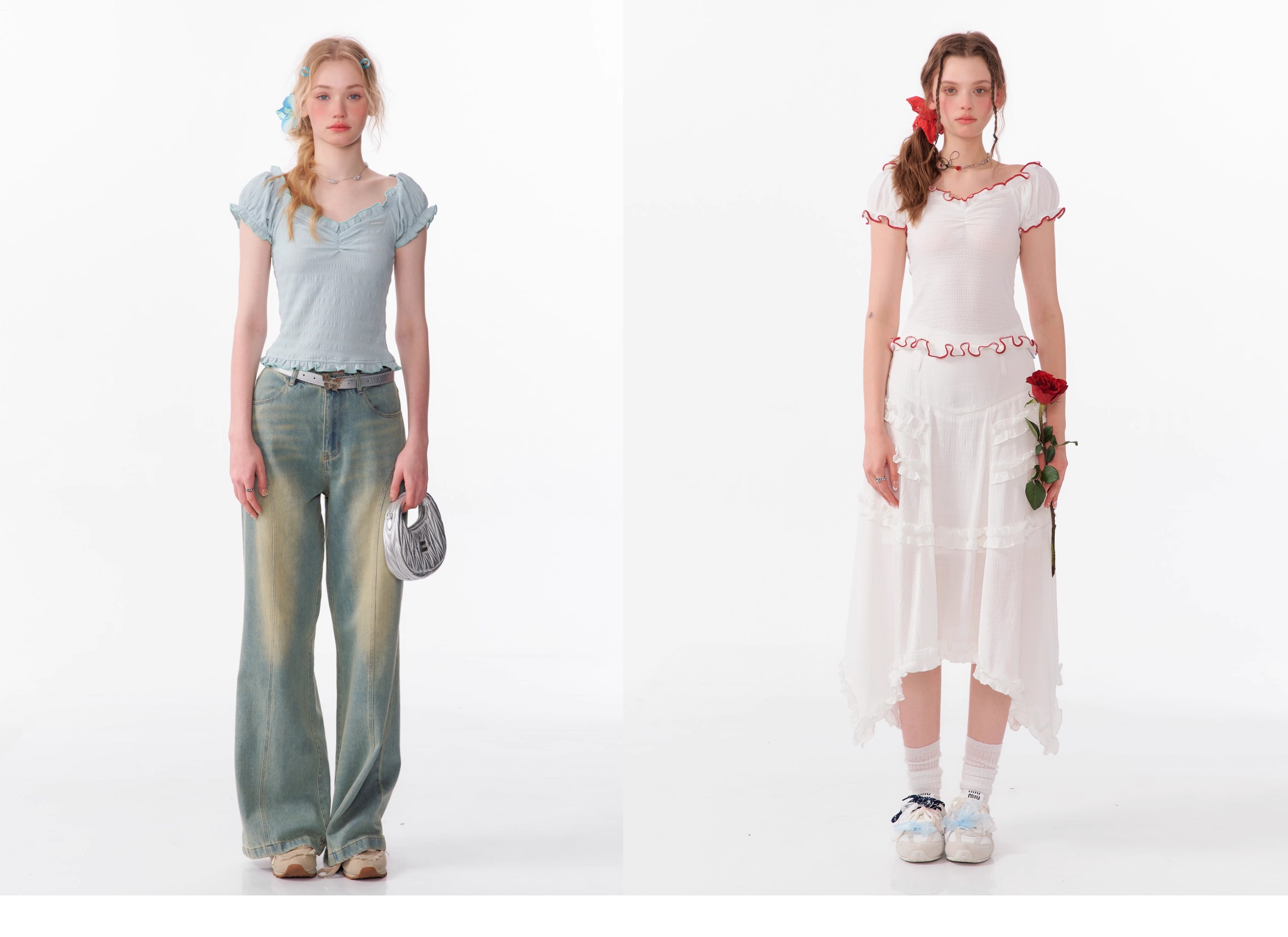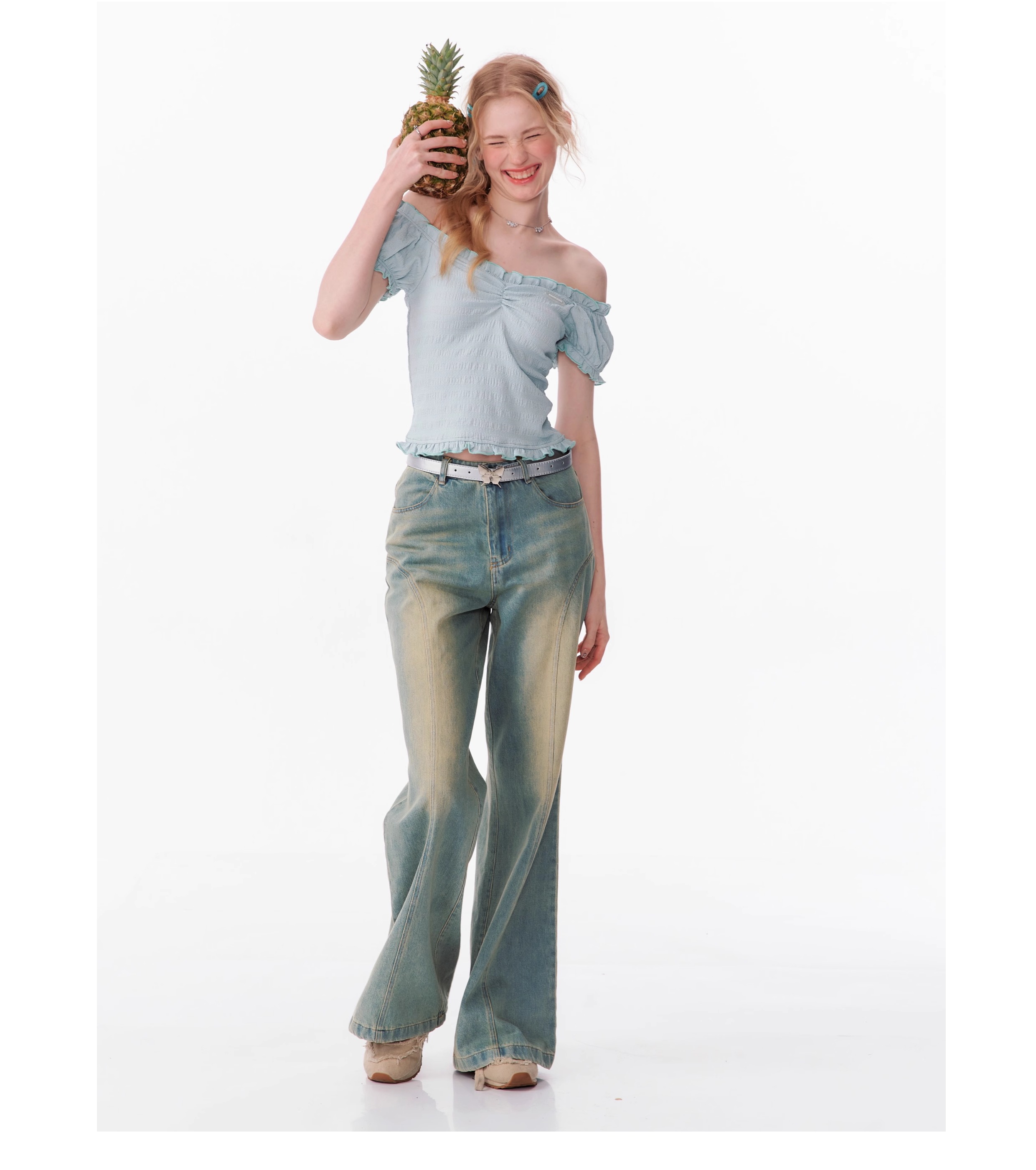 Mushroom Puff Sleeve T-shirt | One-Shoulder Retro Design for Summer