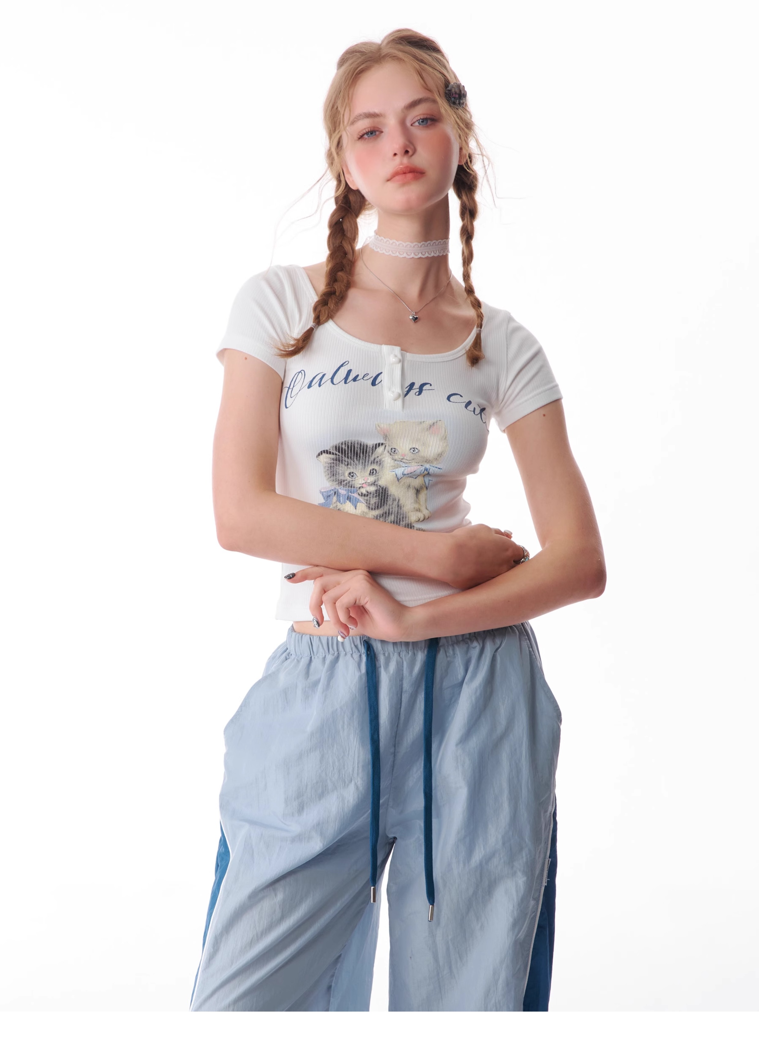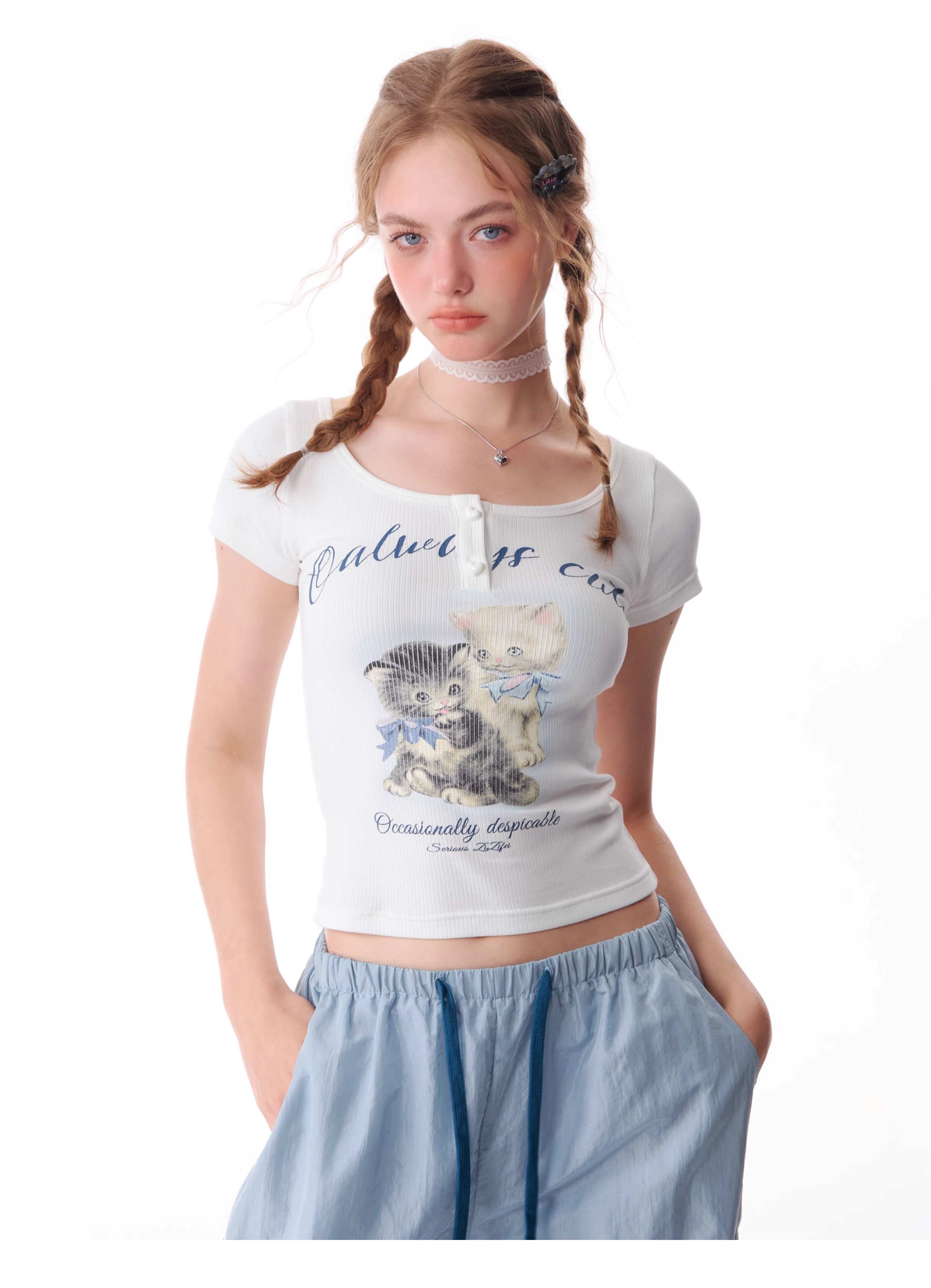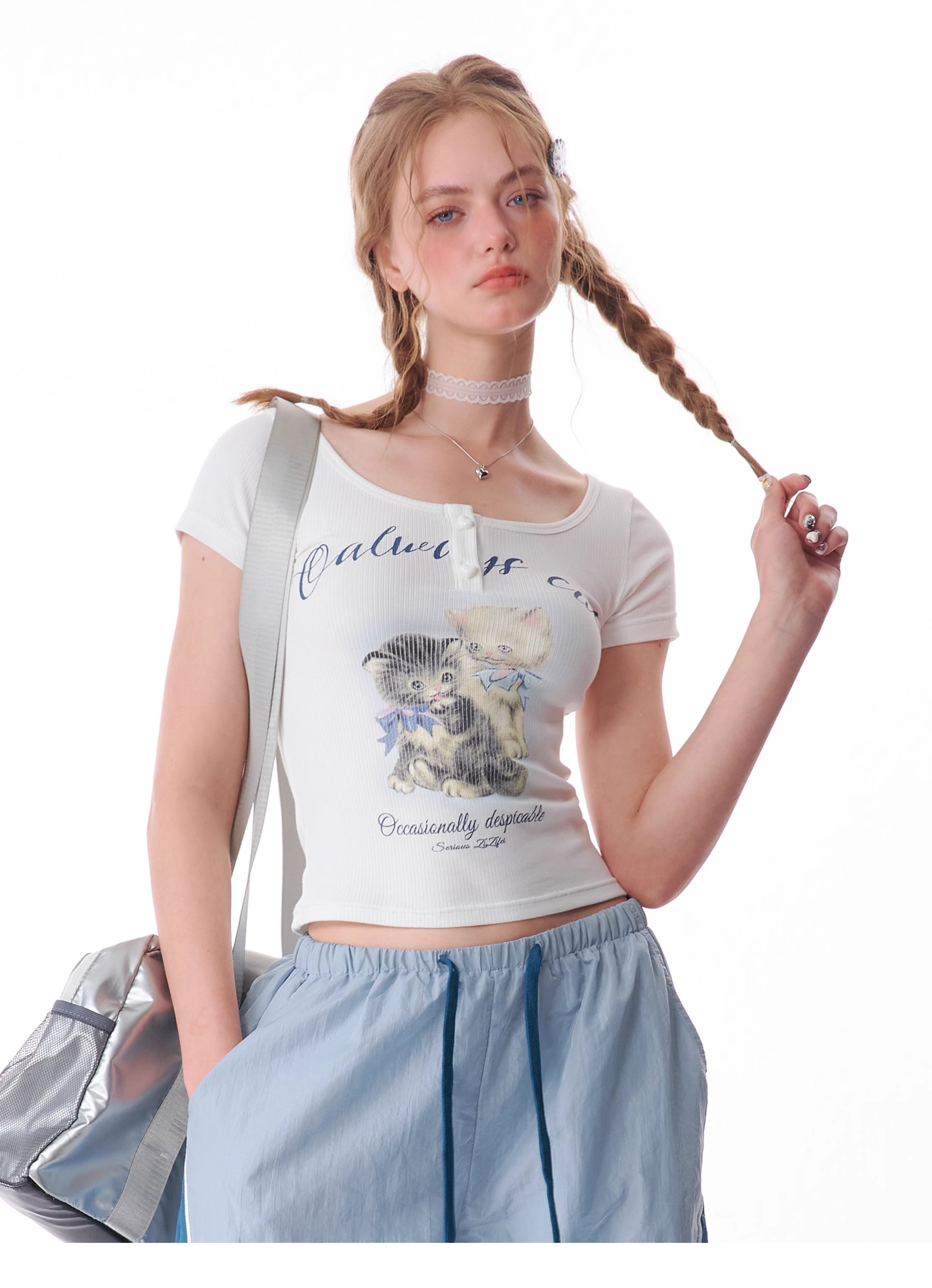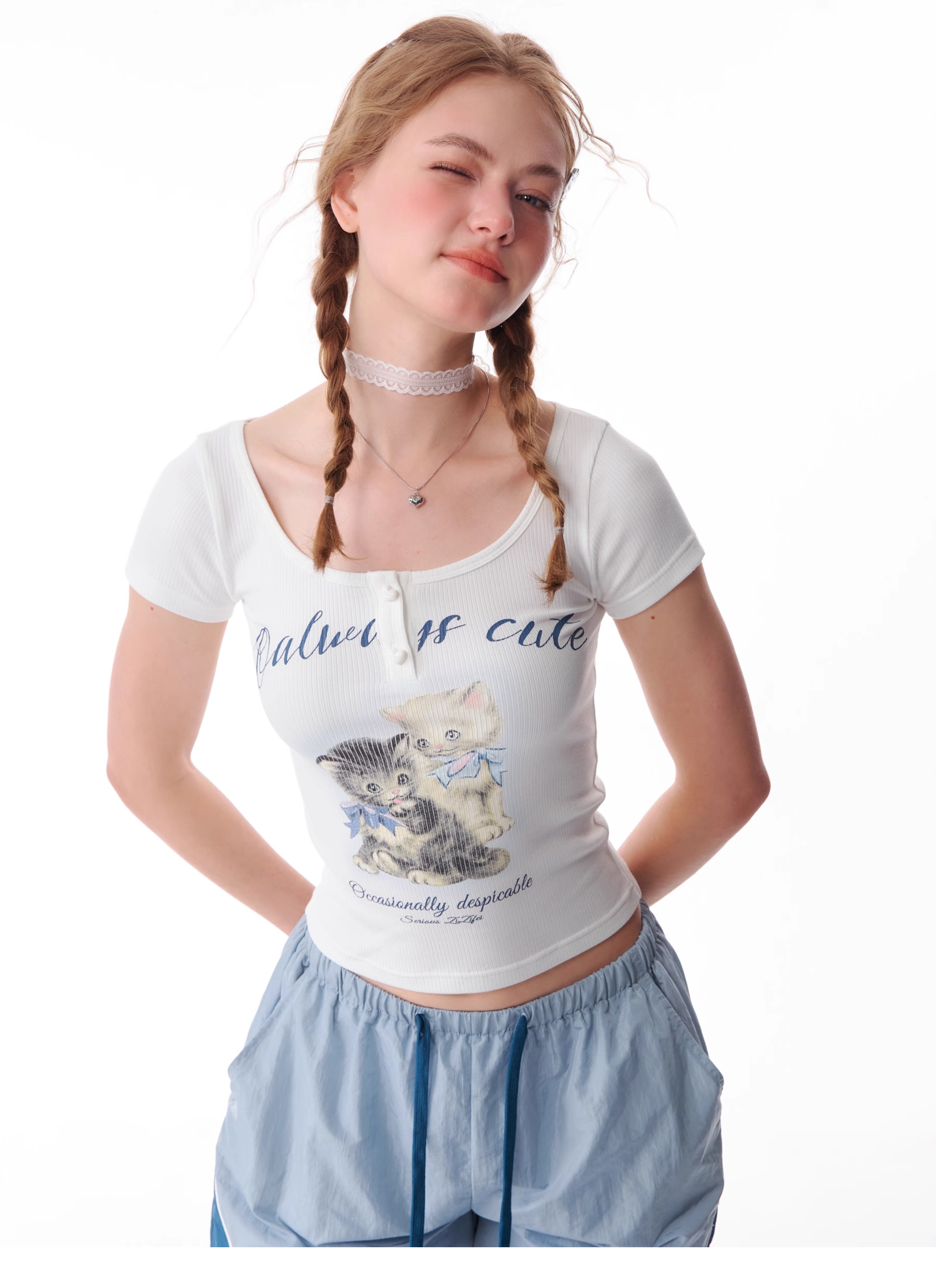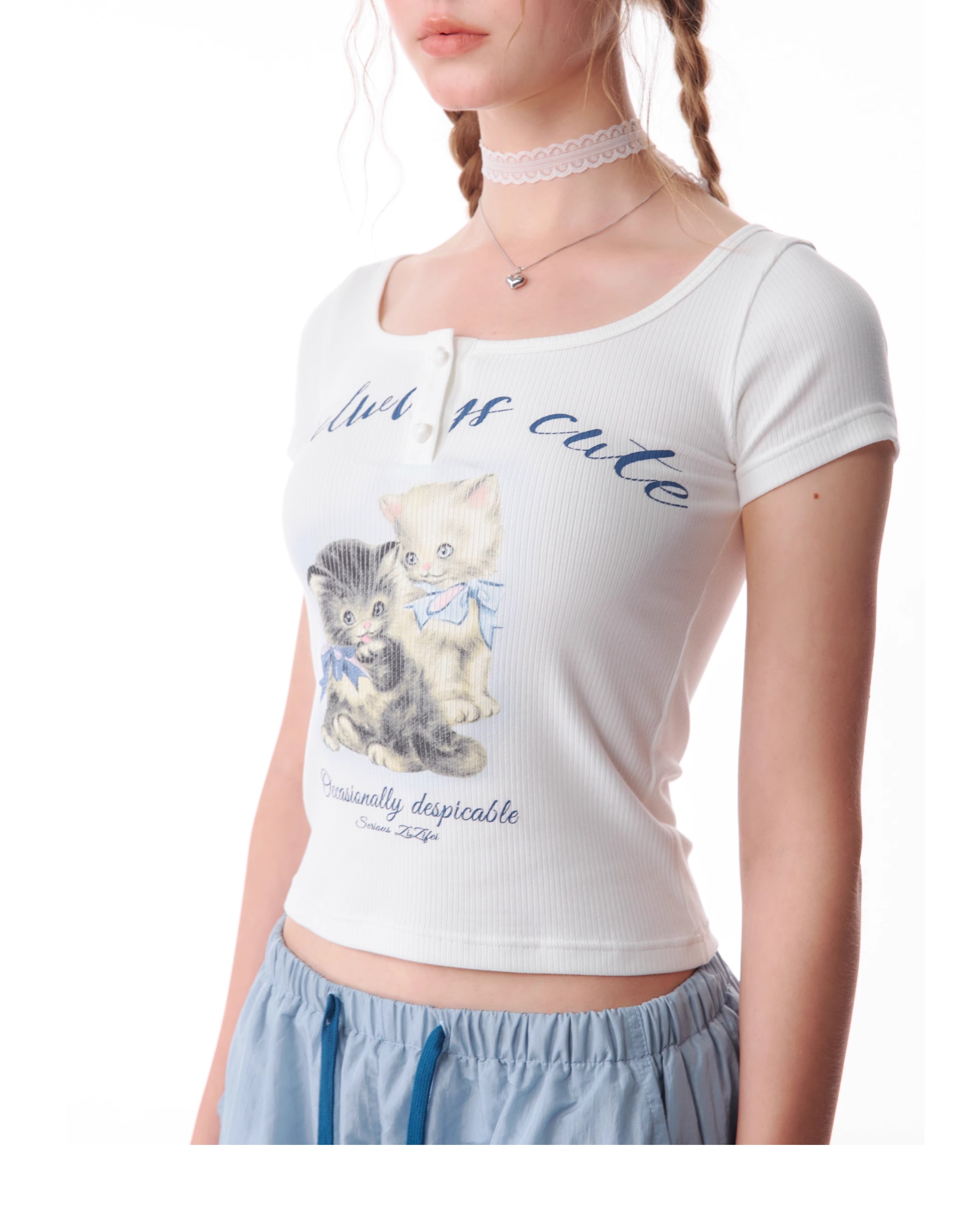 Cat Print Slim Fit T-shirt | Half Sleeve Retro Design for Summer