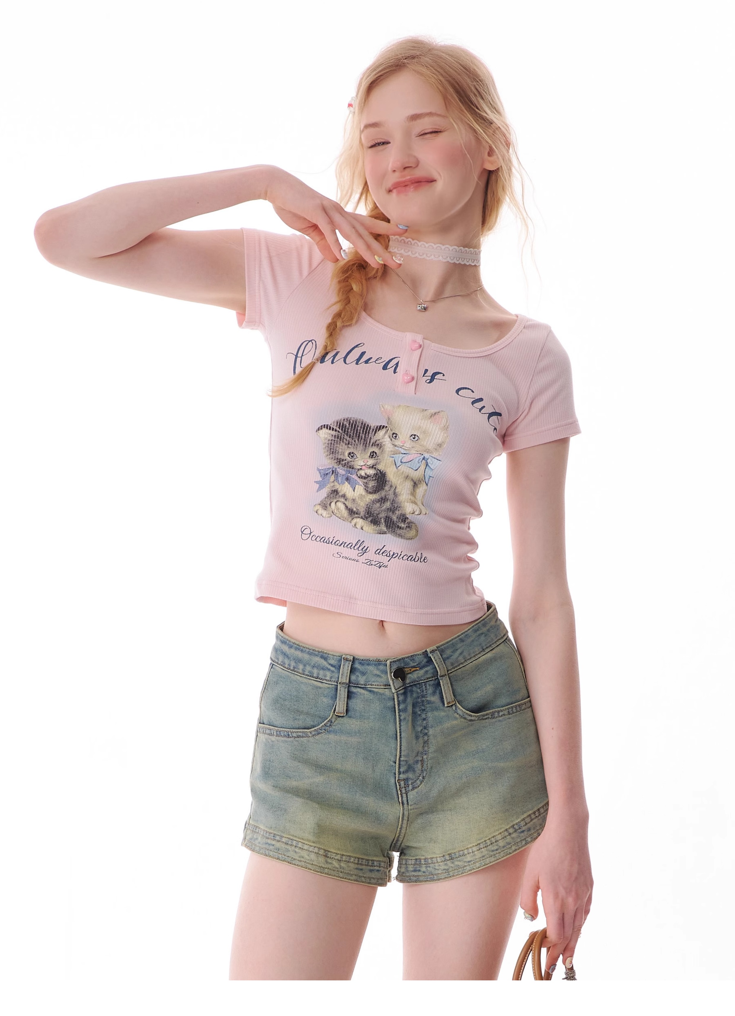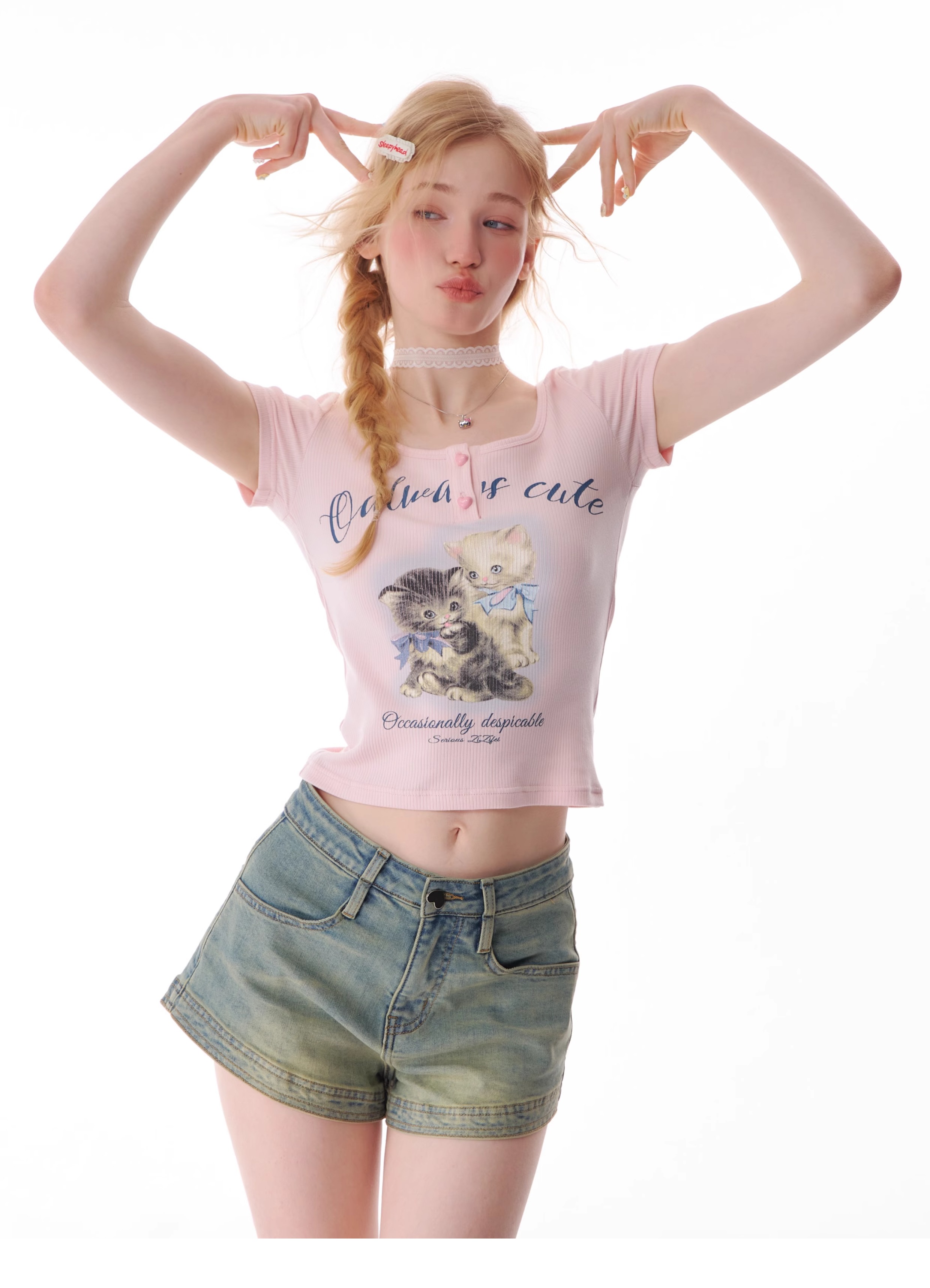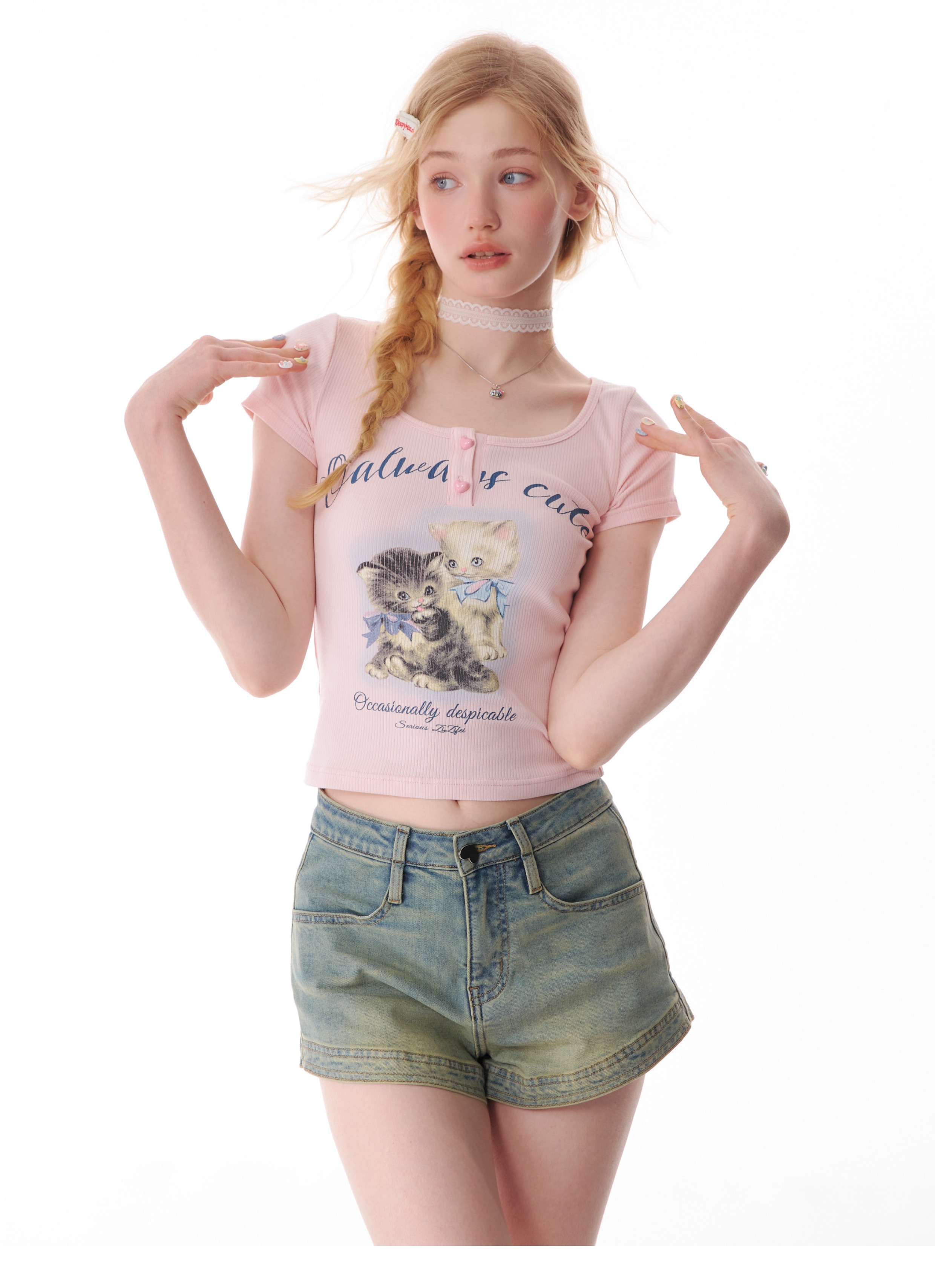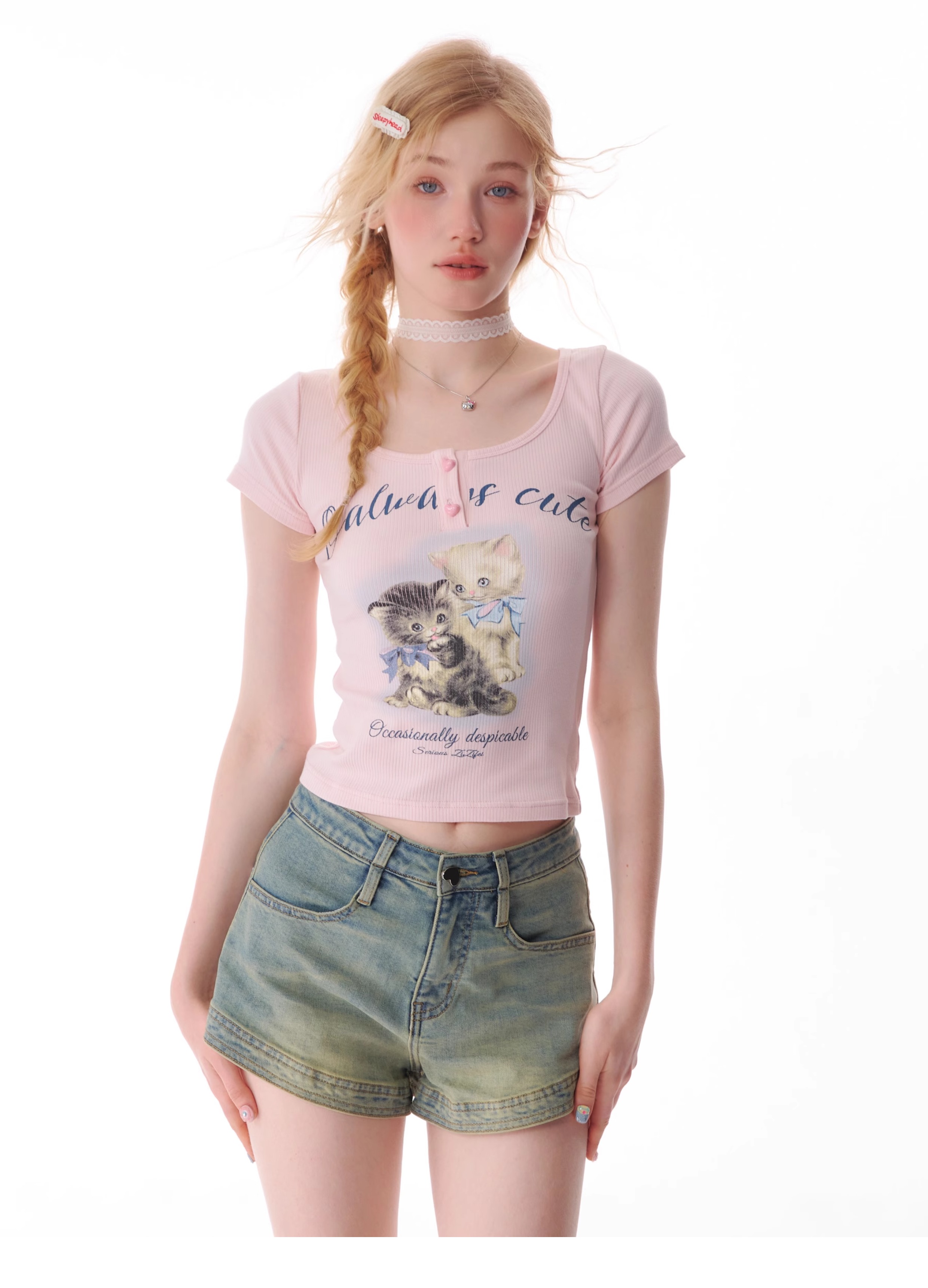 Cat Print Slim Fit T-shirt | Half Sleeve Retro Design for Summer
