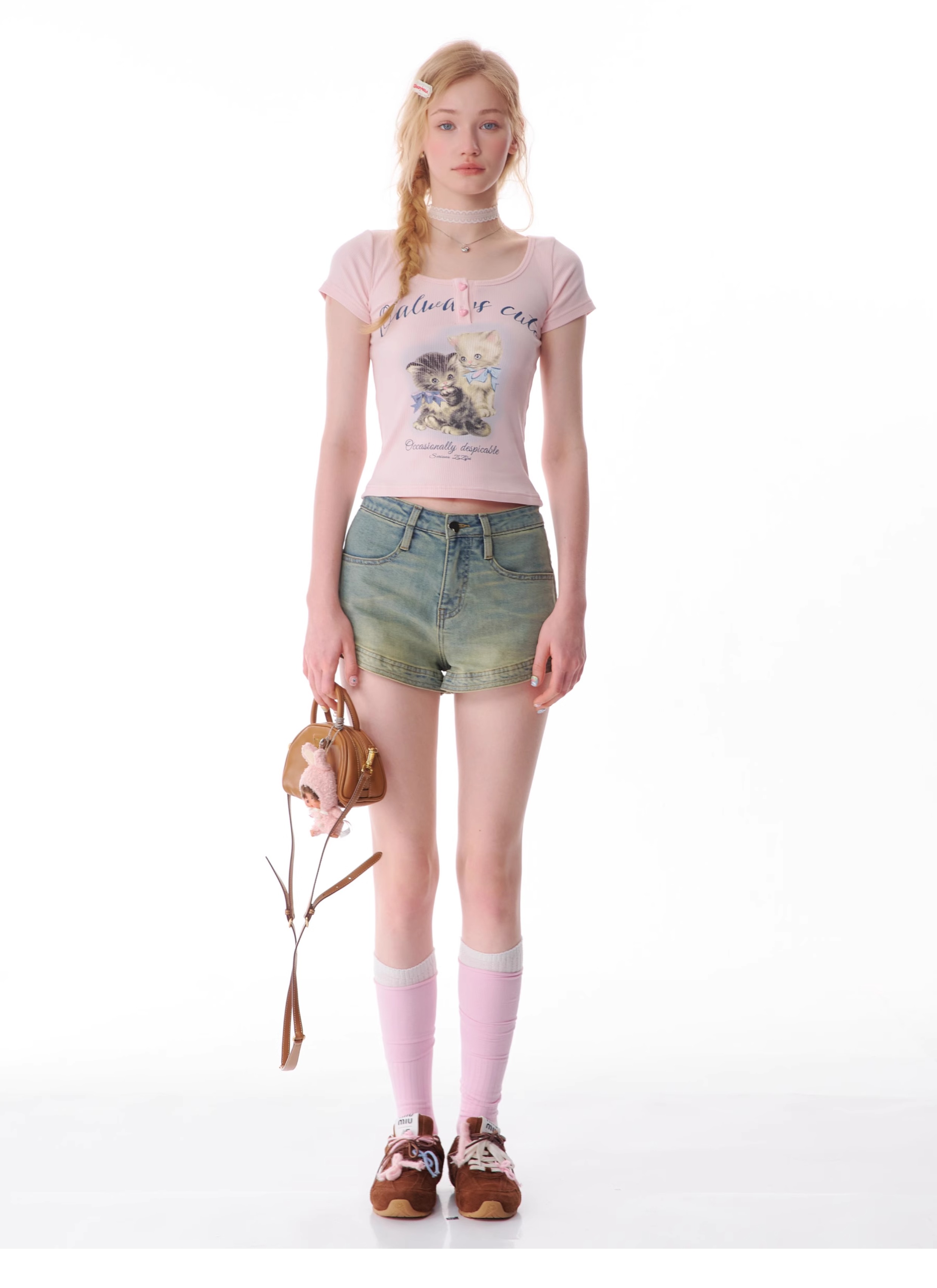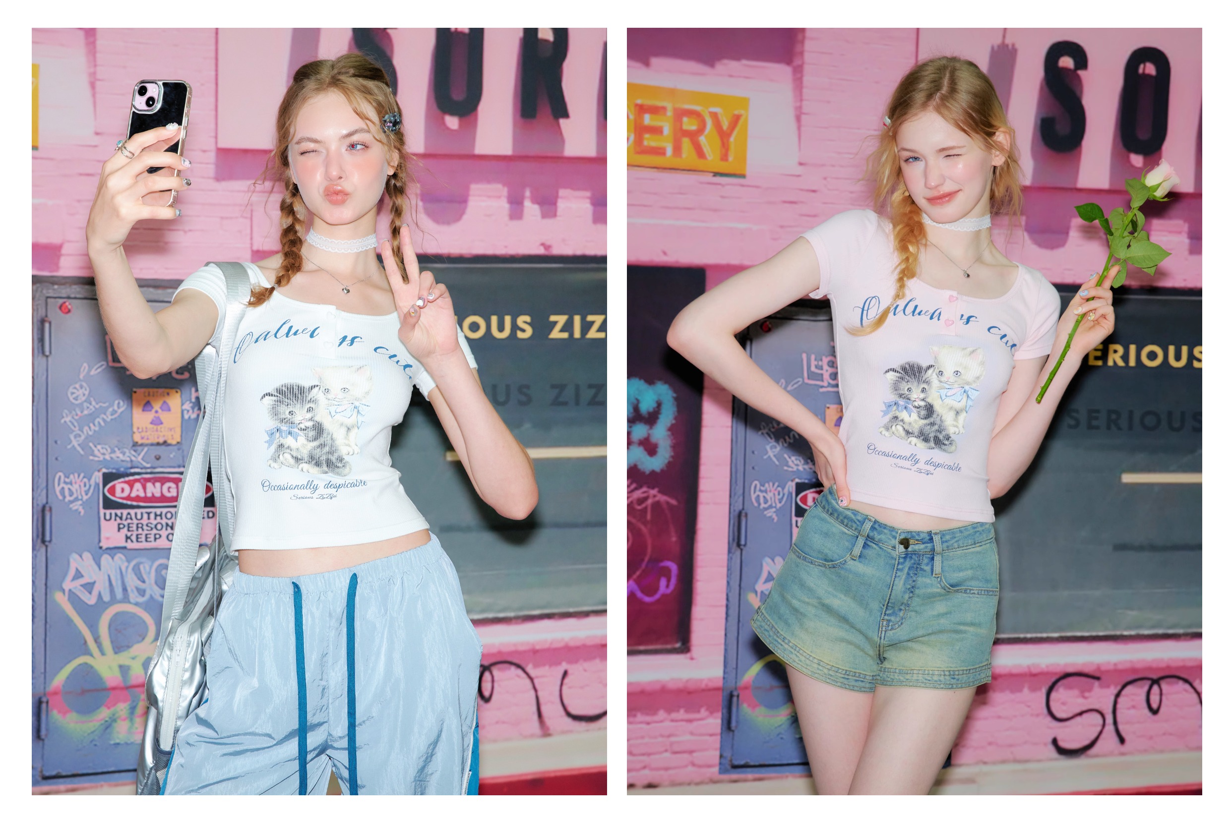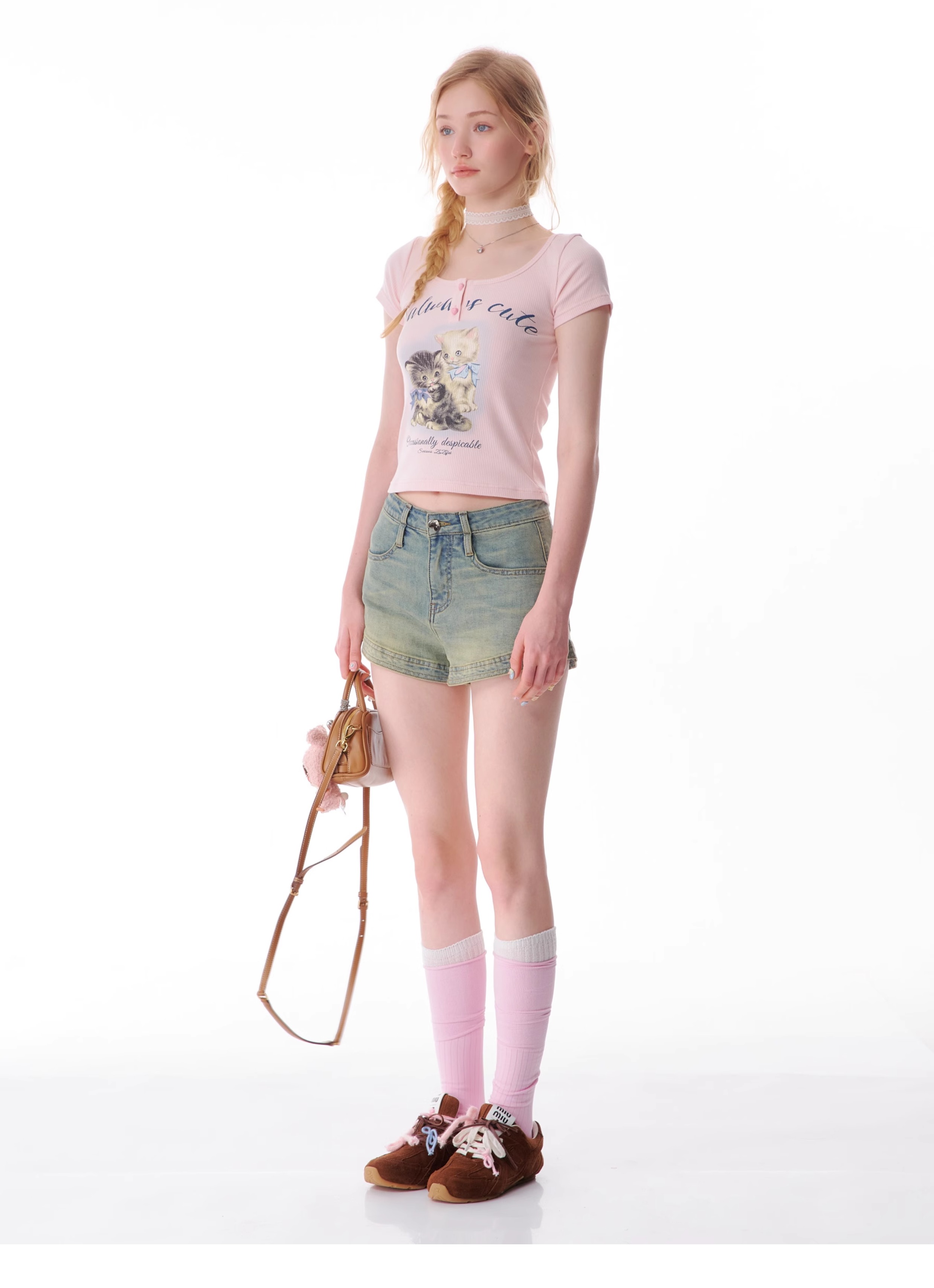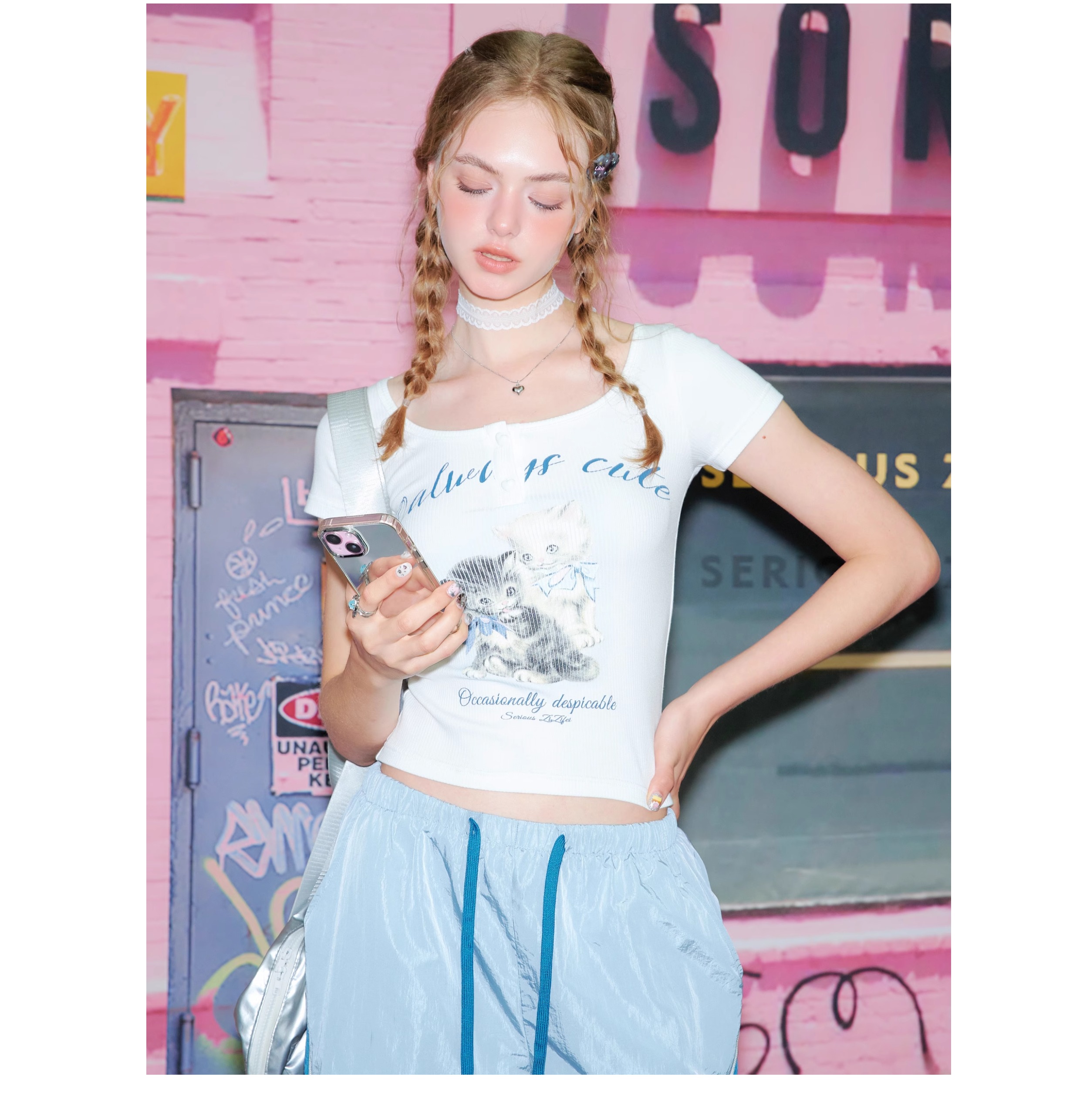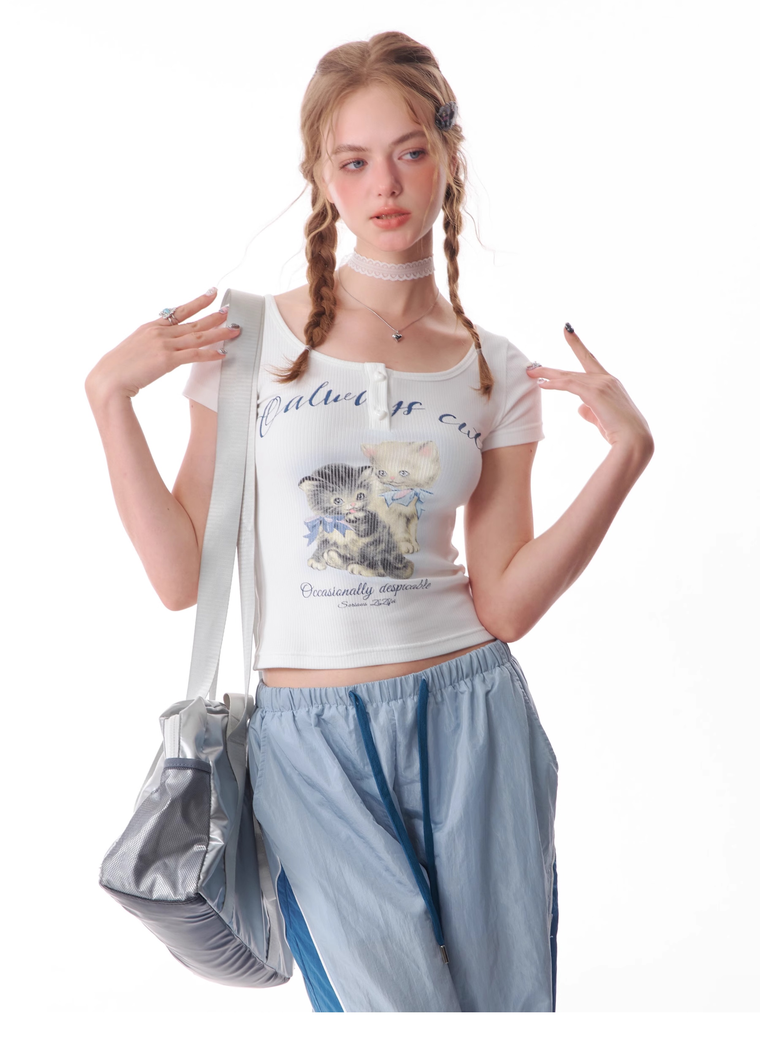 Cat Print Slim Fit T-shirt | Half Sleeve Retro Design for Summer