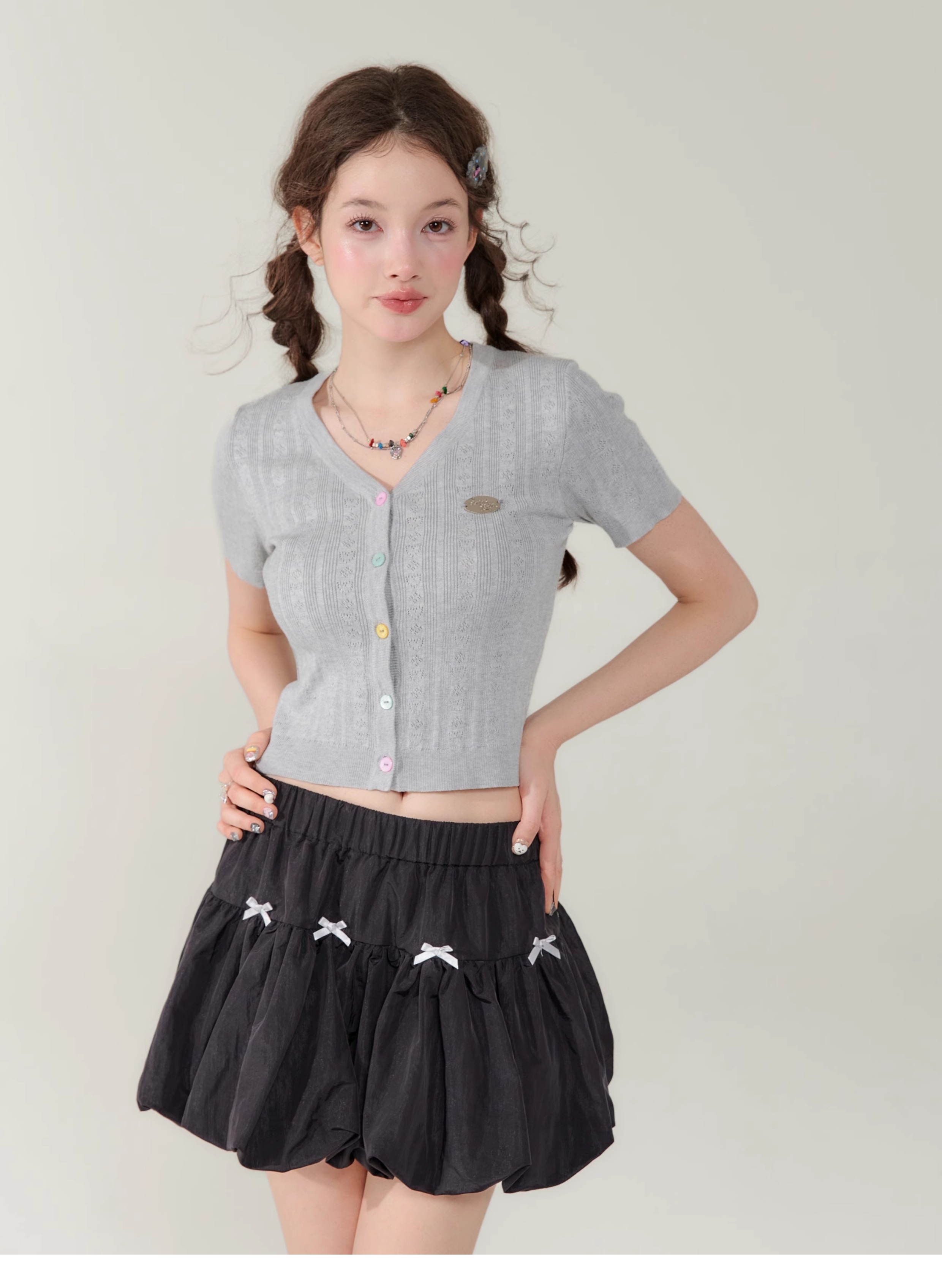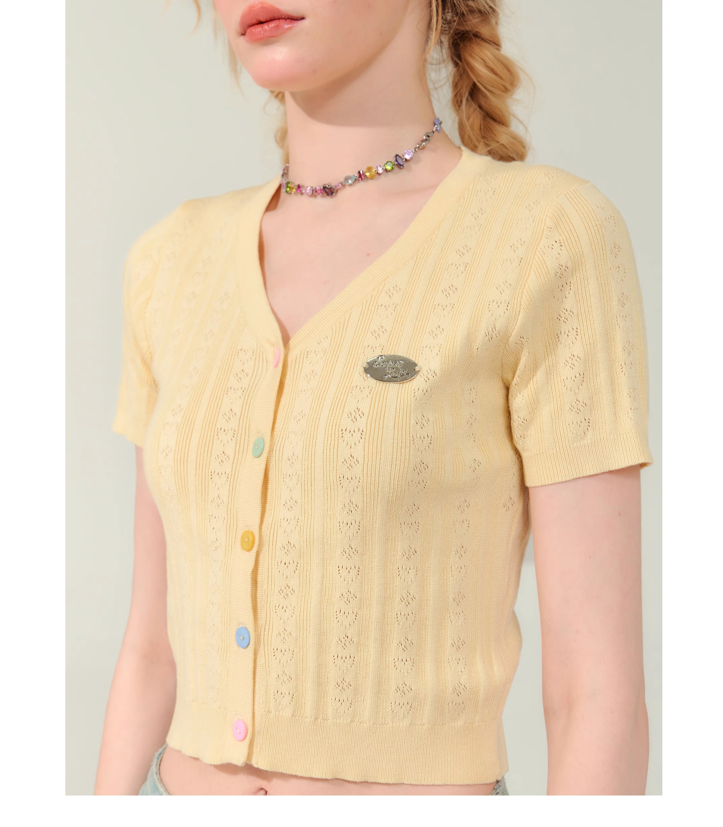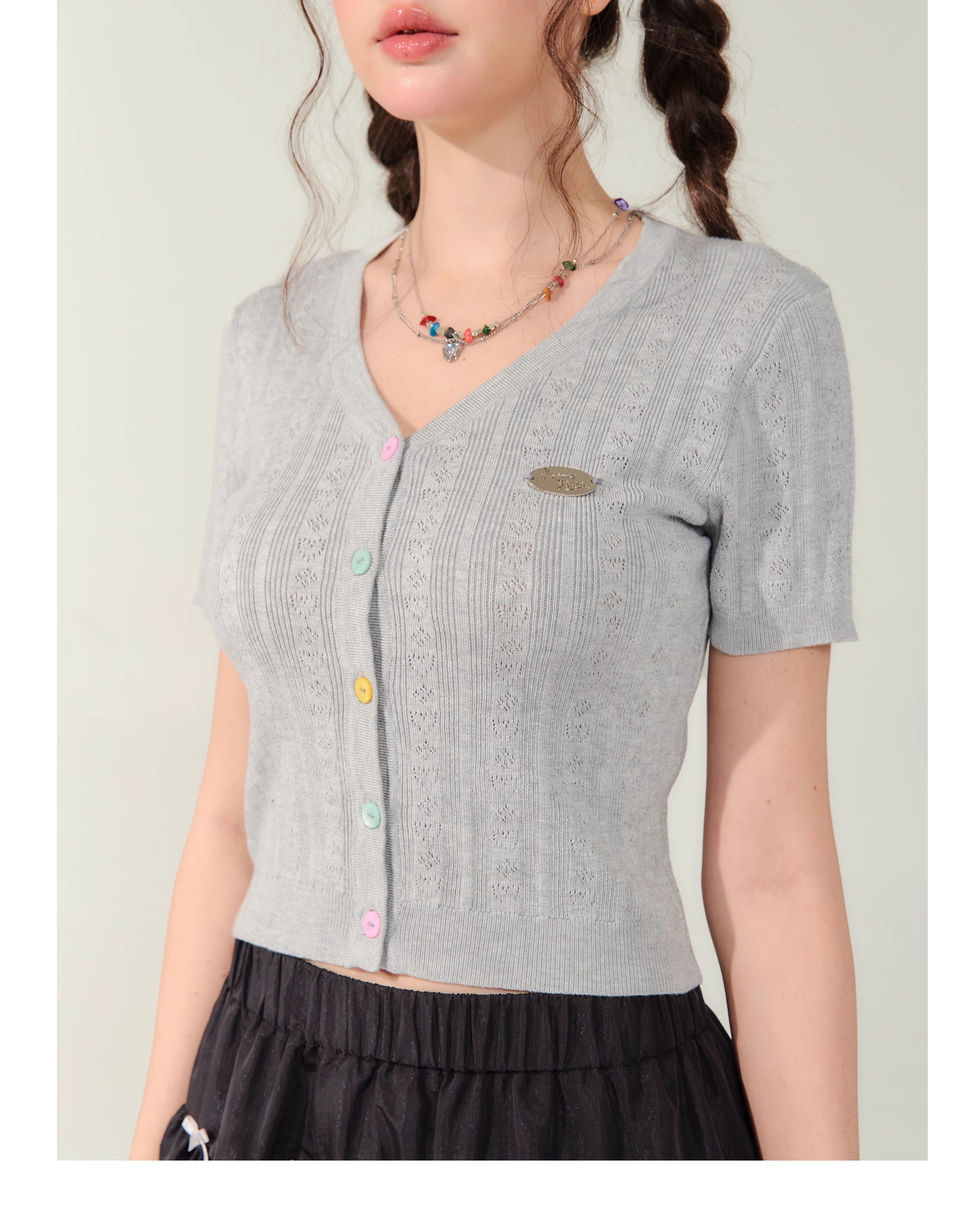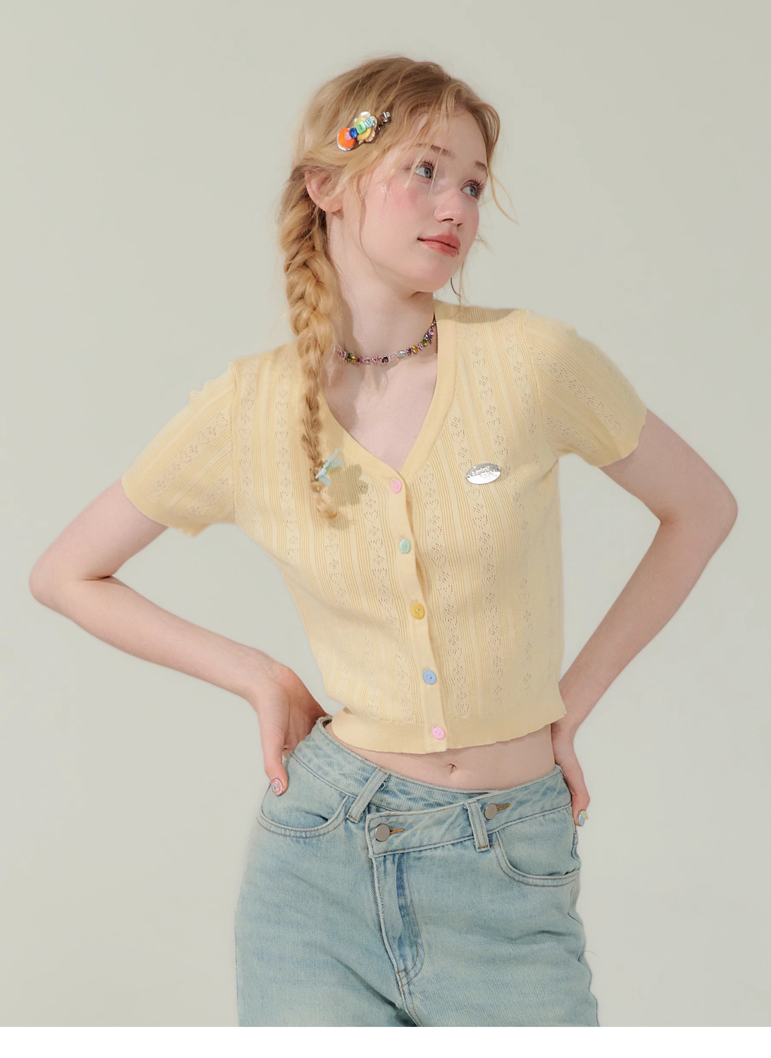 V-neck Cardigan T-shirt | 슬림 핏 Right Shoulder Short Sleeve for Summer