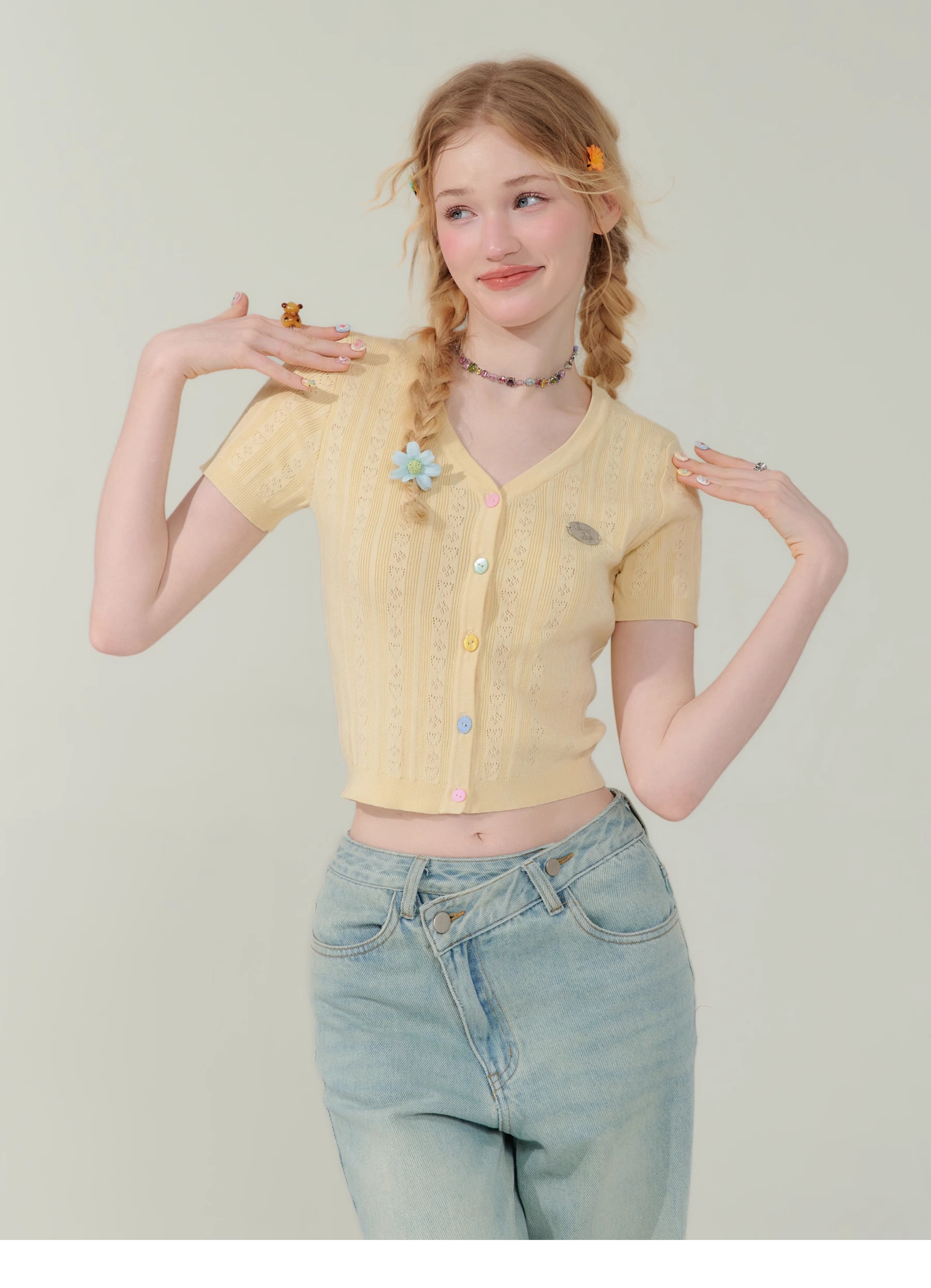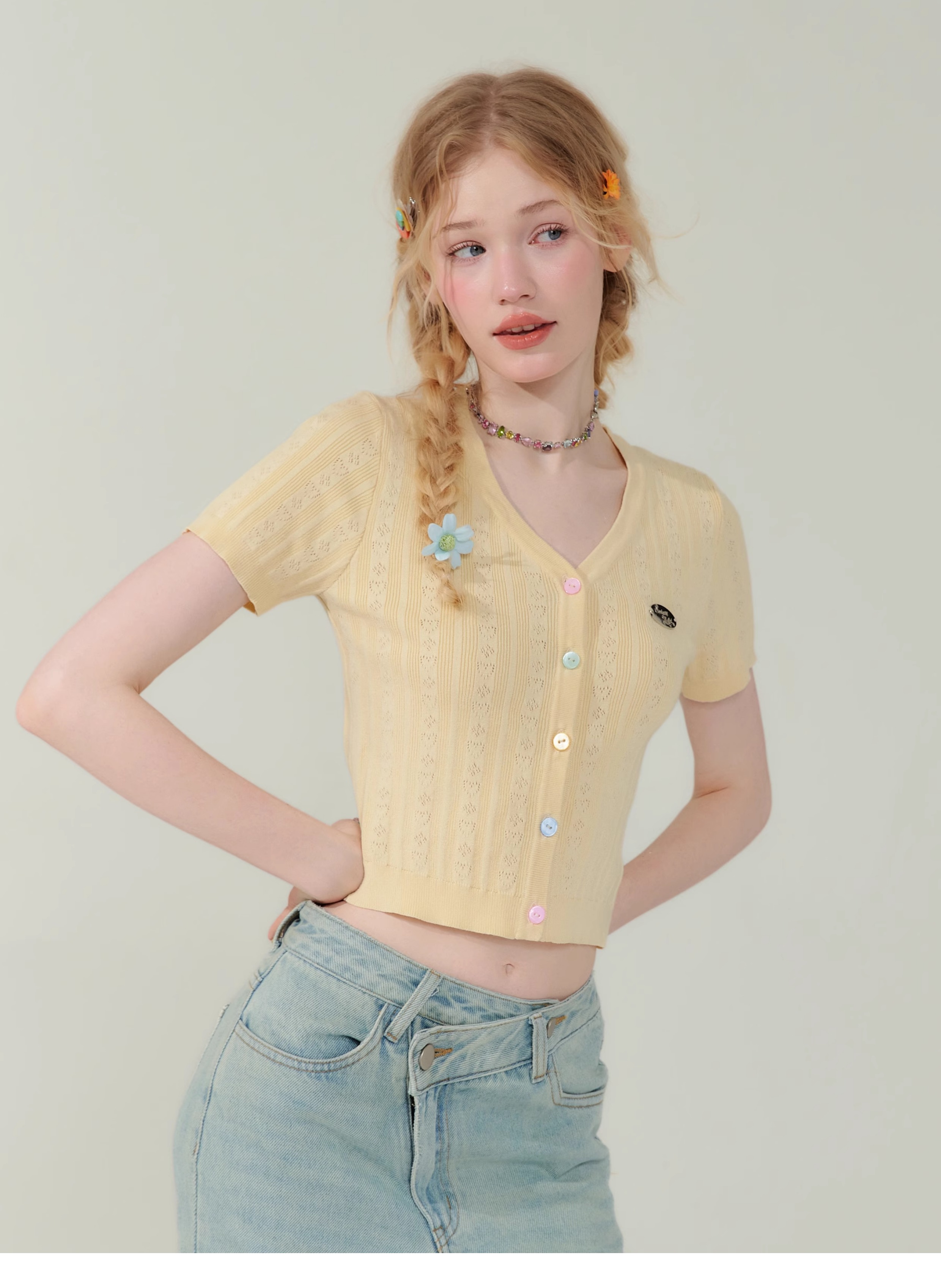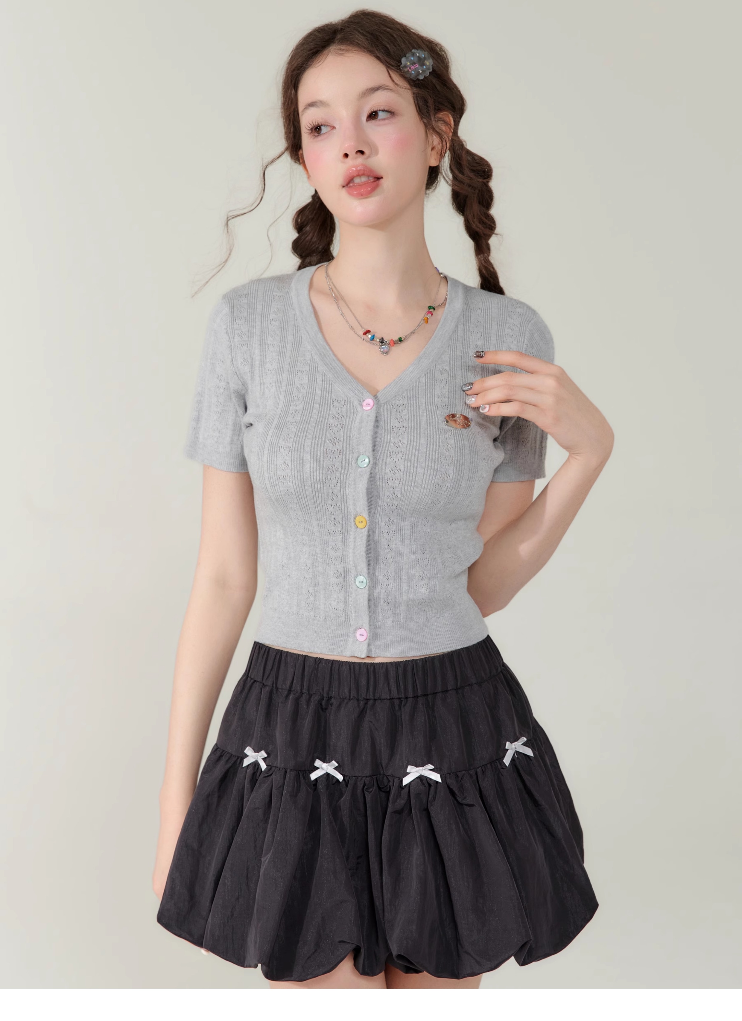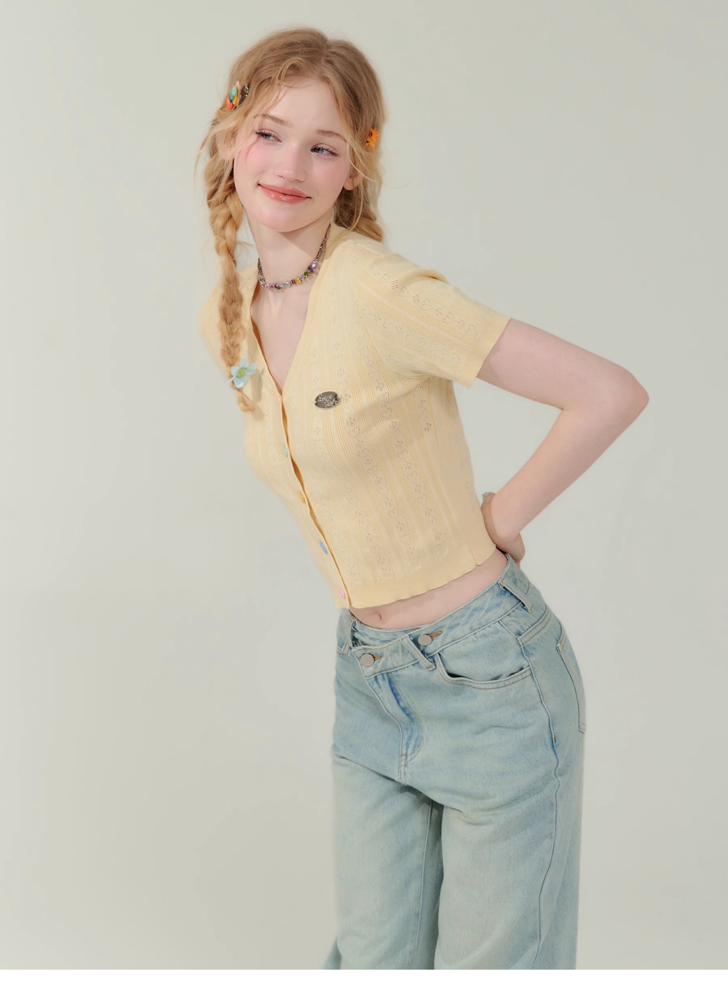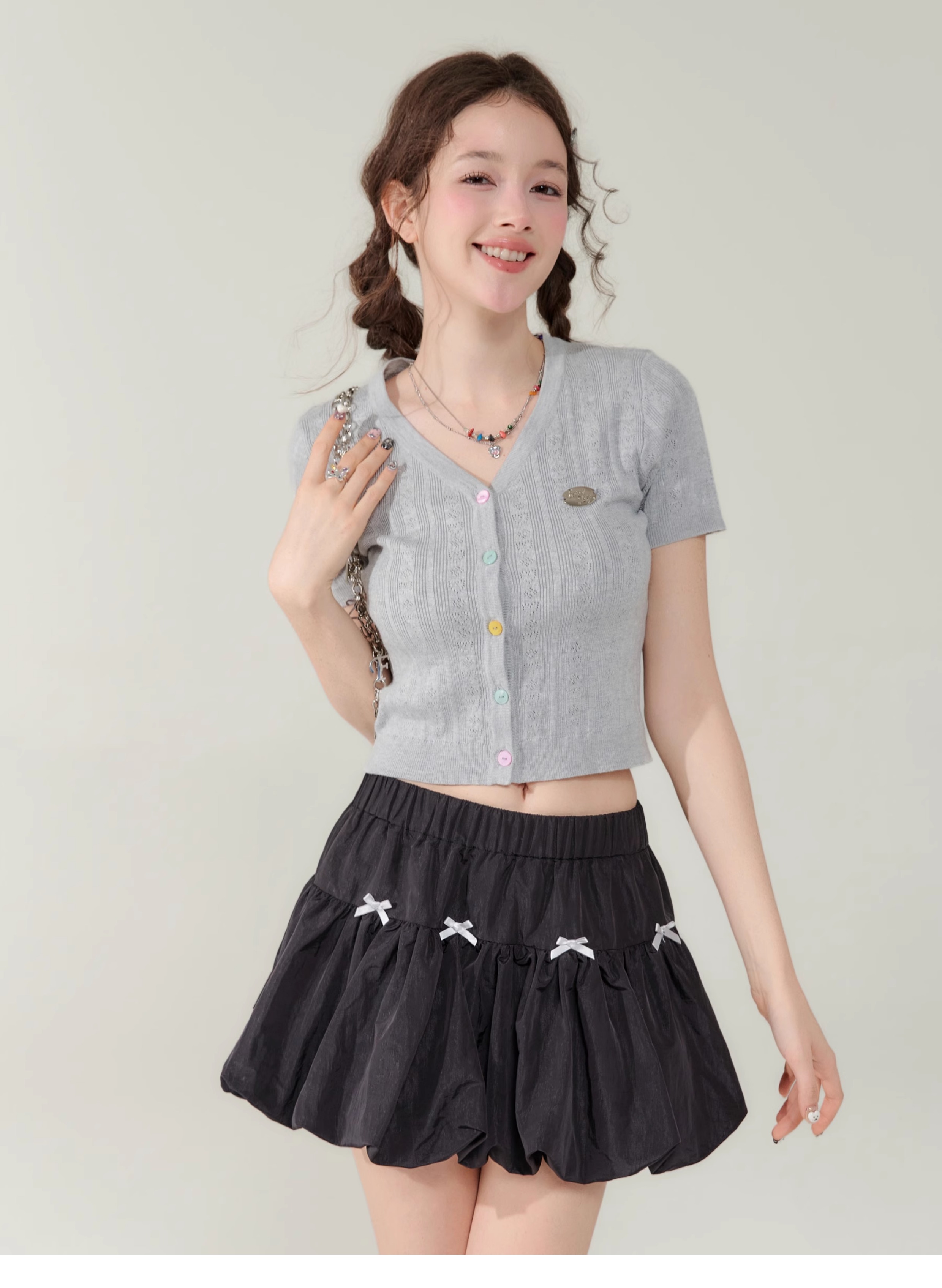 V-neck Cardigan T-shirt | 슬림 핏 Right Shoulder Short Sleeve for Summer