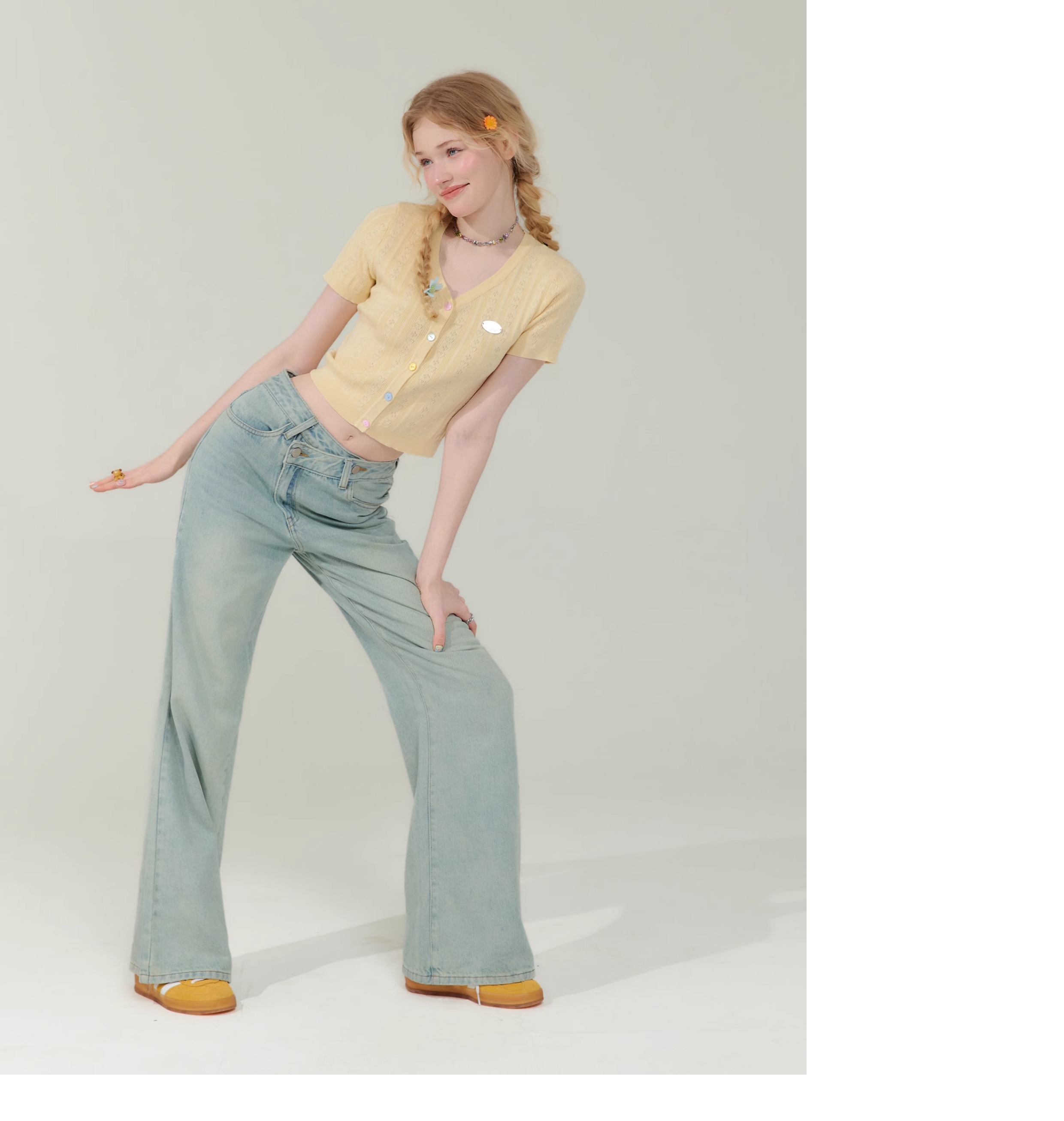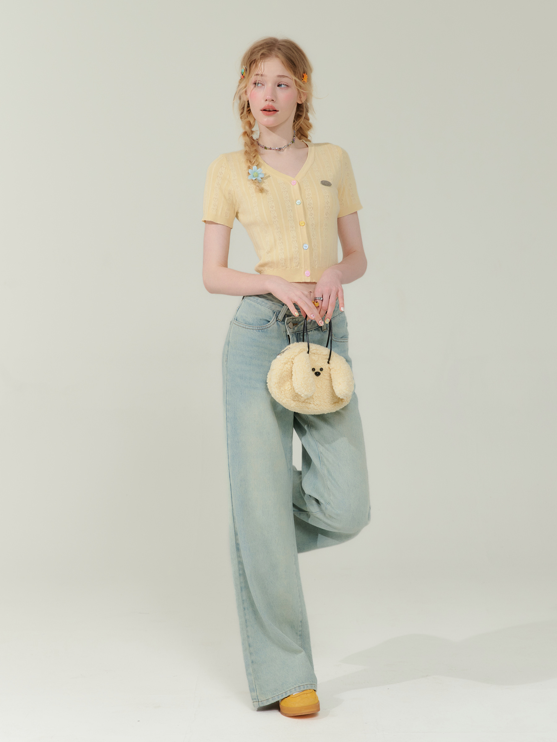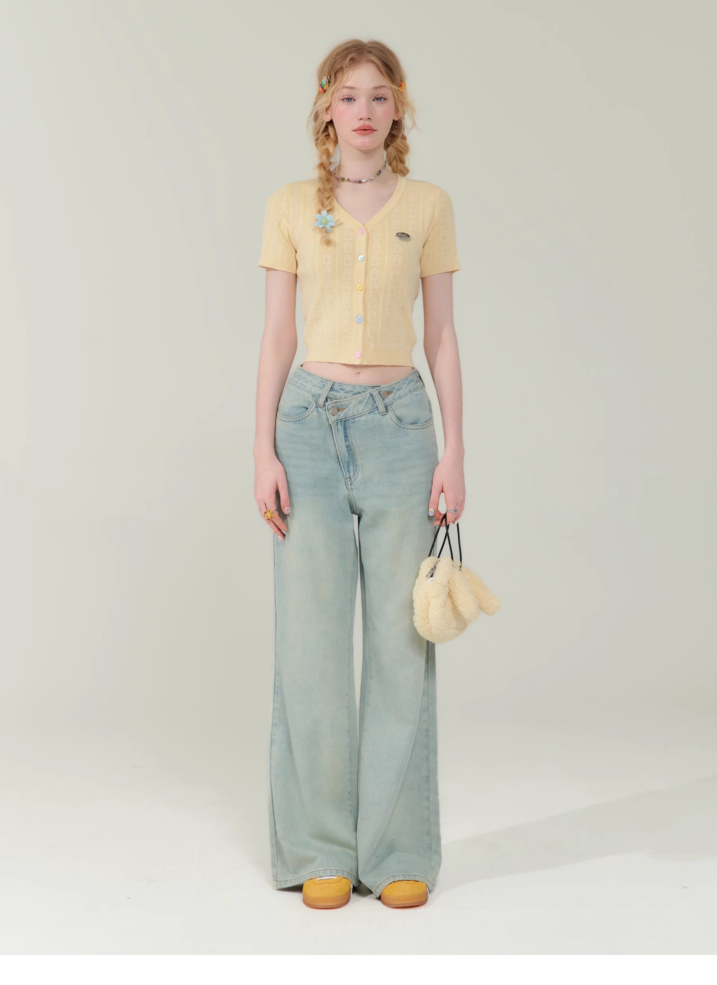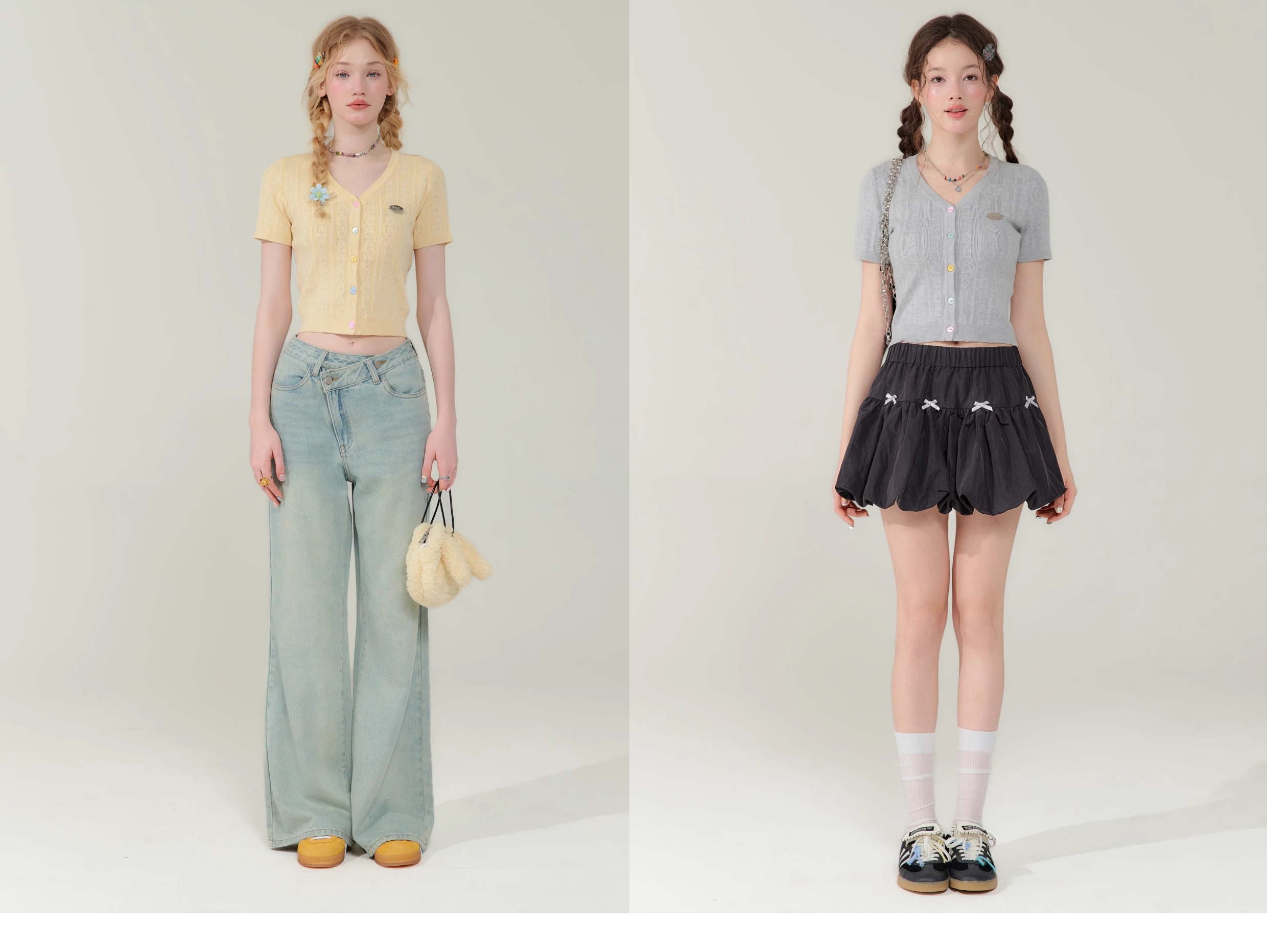 V-neck Cardigan T-shirt | 슬림 핏 Right Shoulder Short Sleeve for Summer