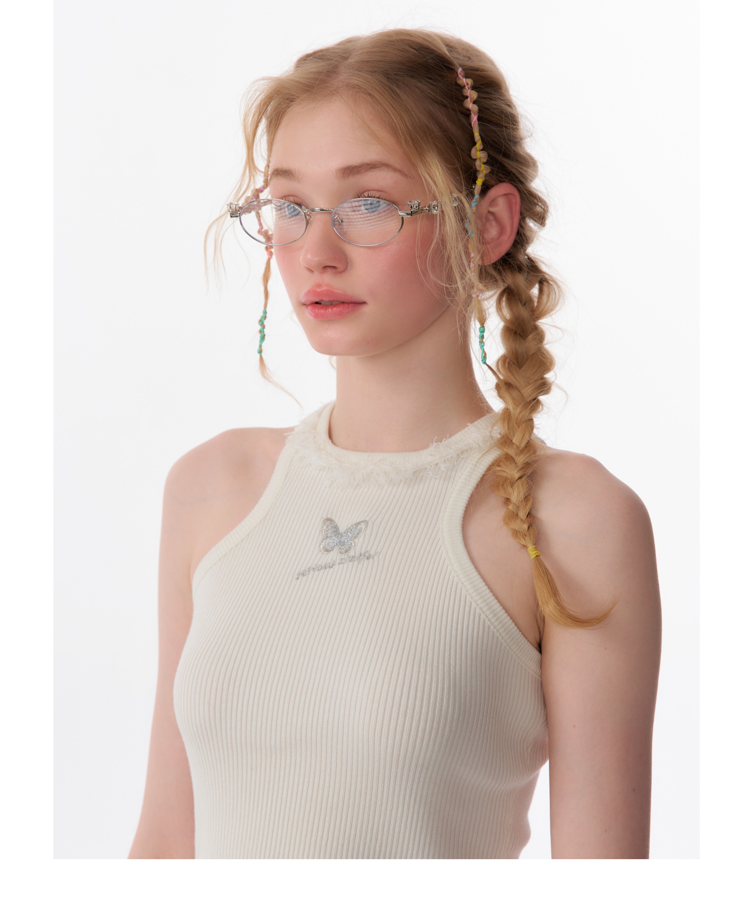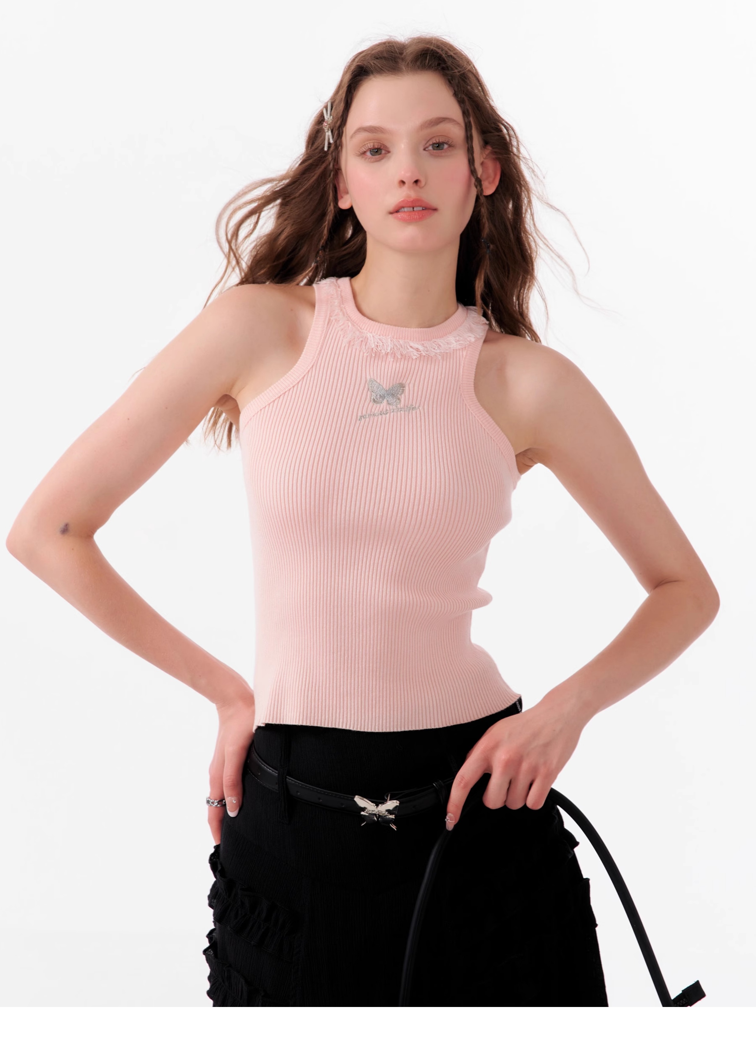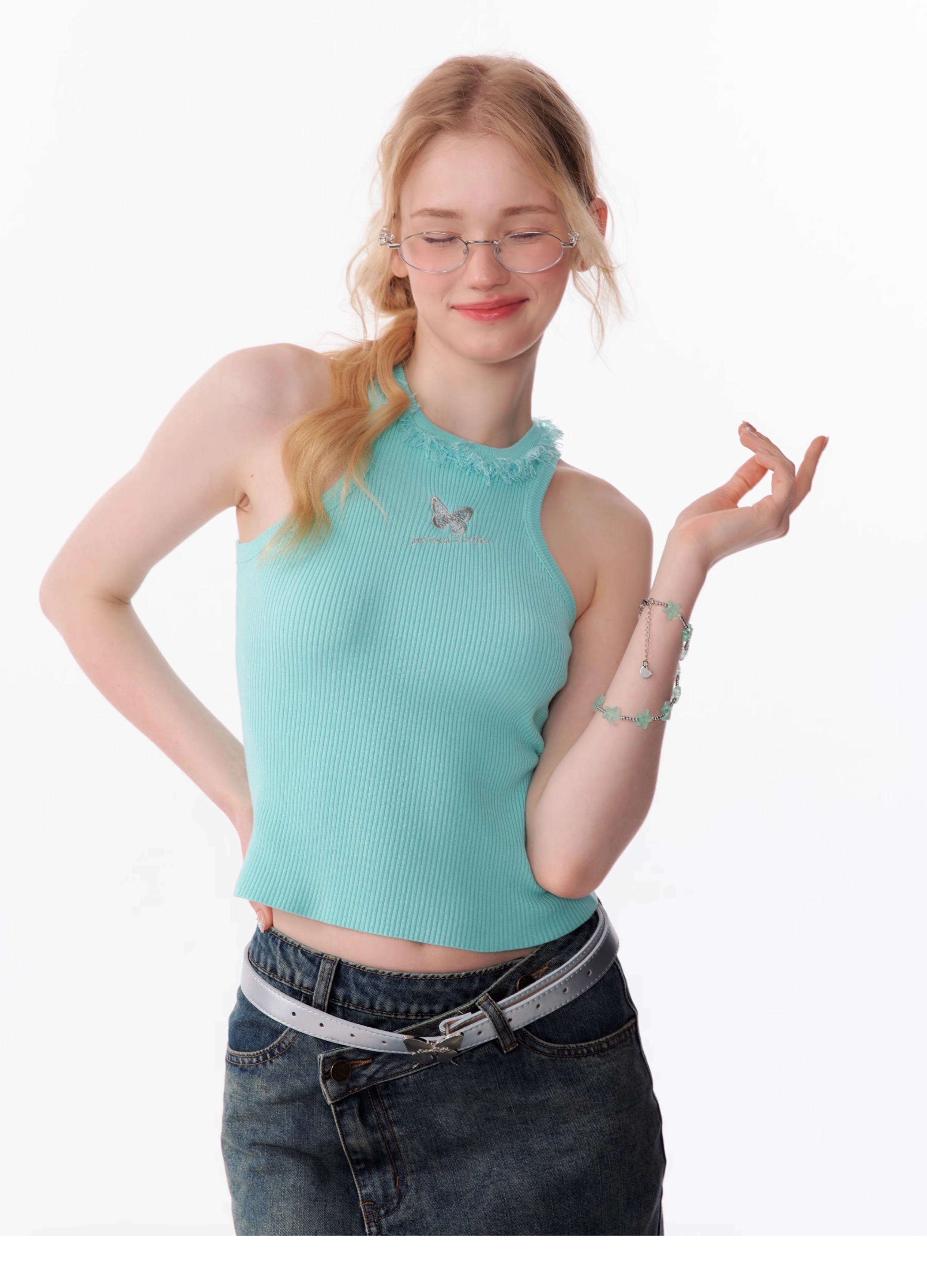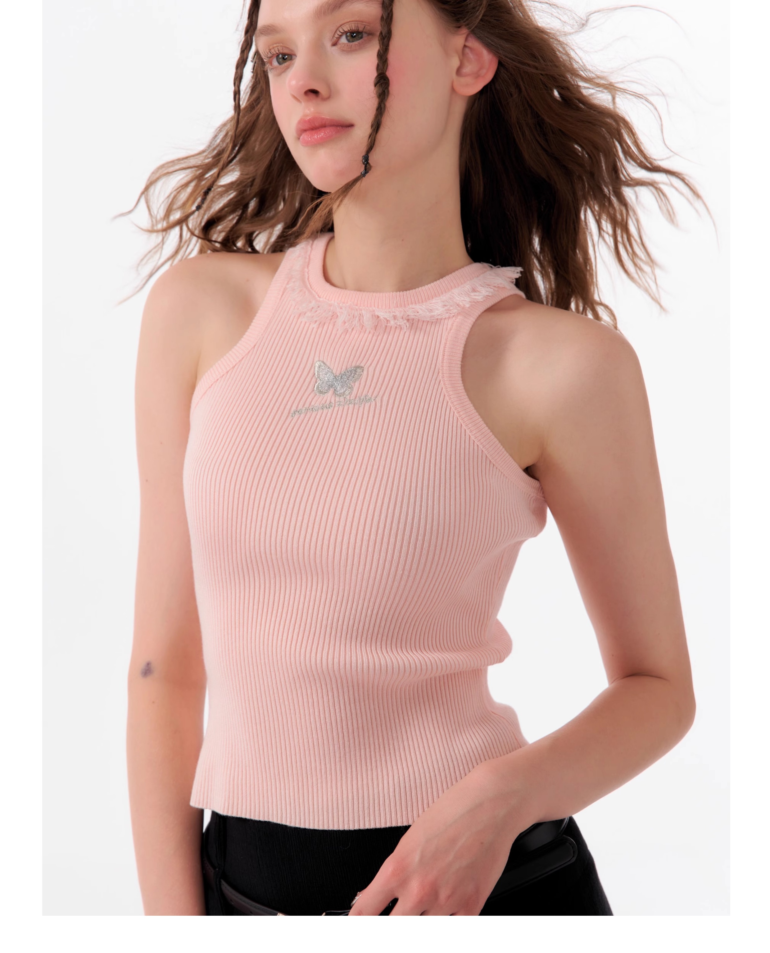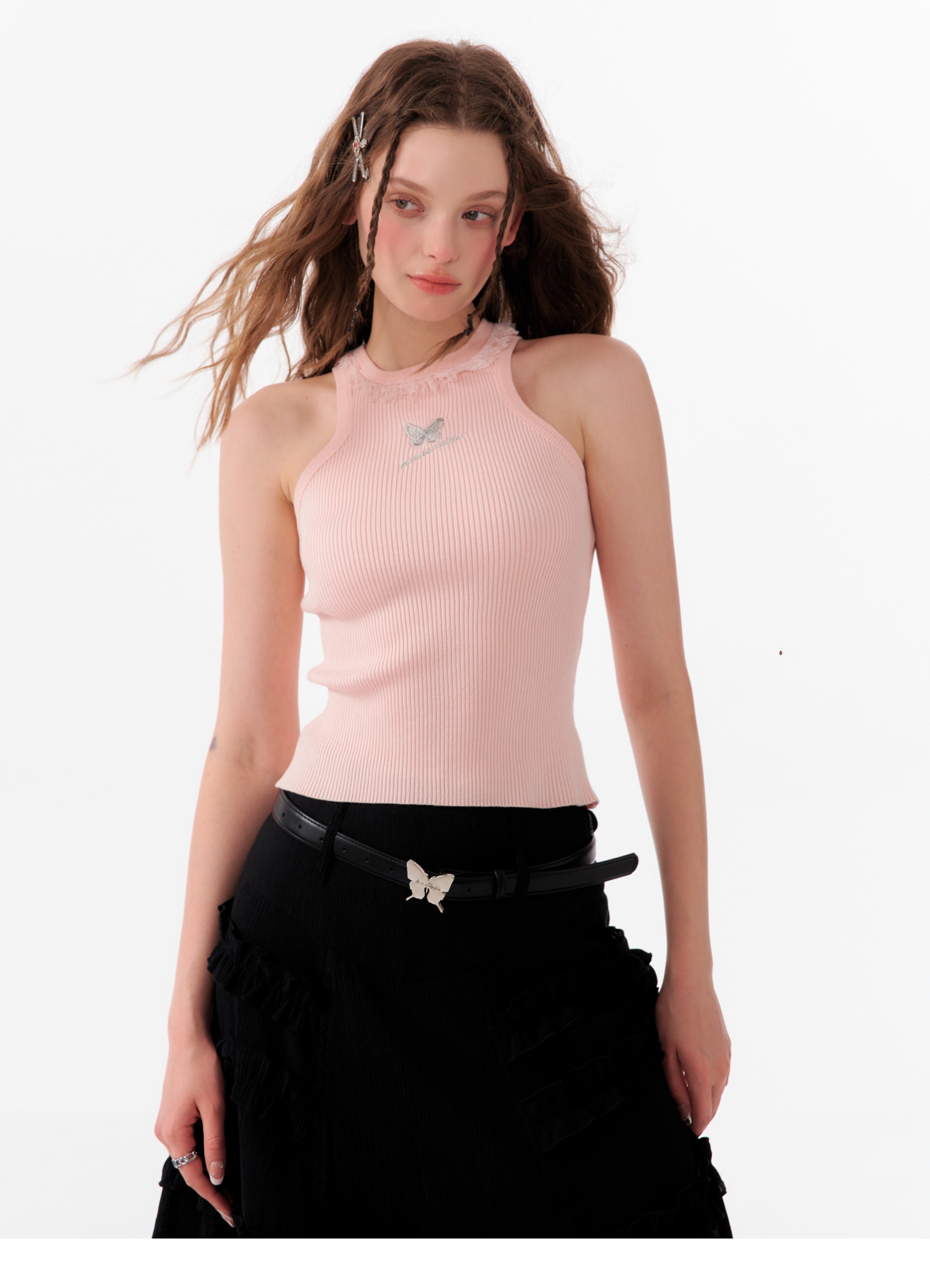 Butterfly Embroidered Backless Tank Top | Retro Sleeveless Knitted Design for Summer